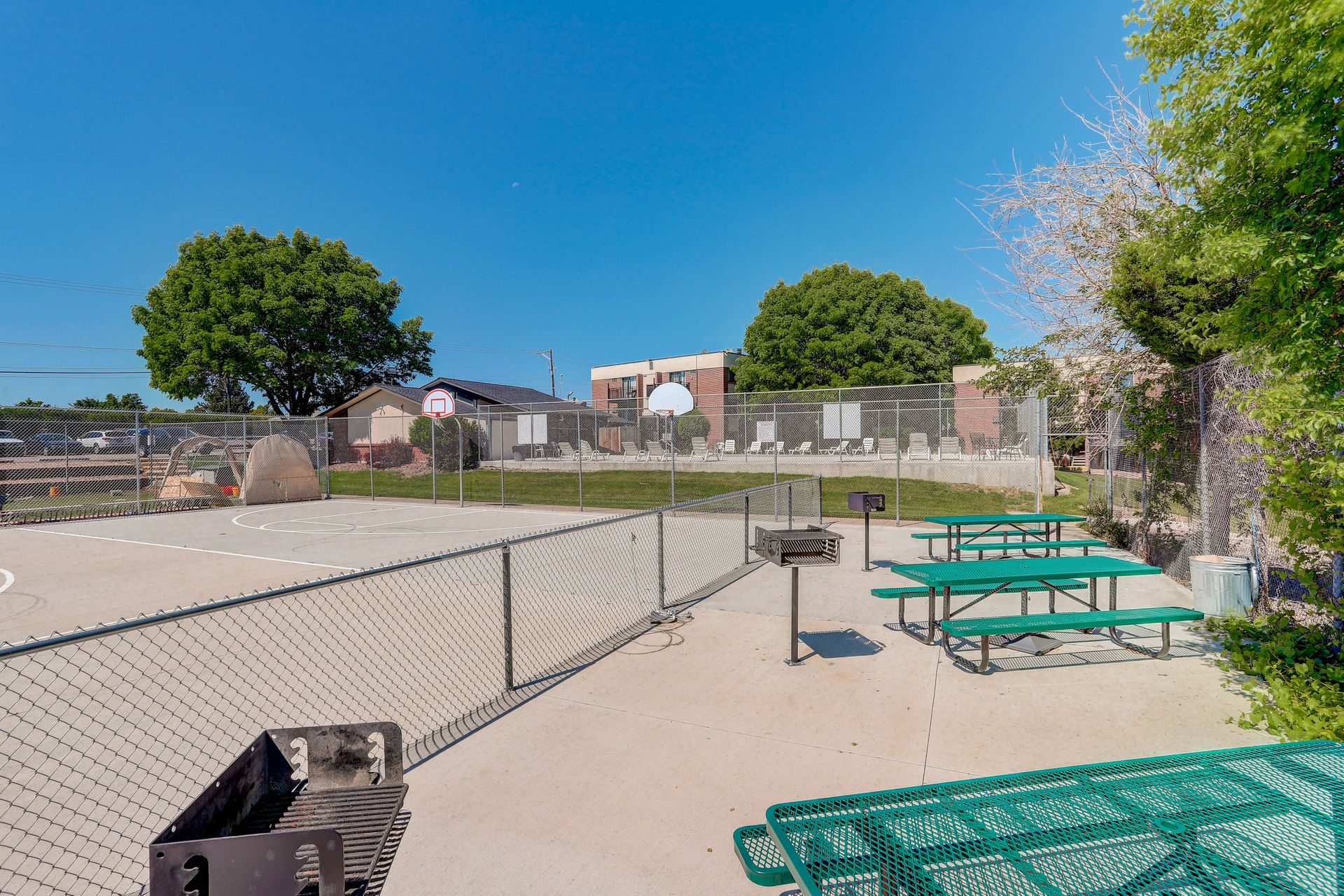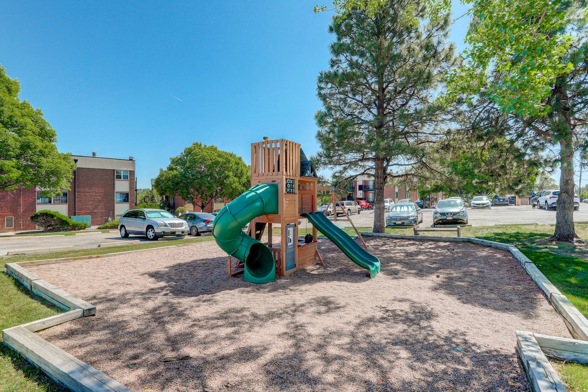 Feast your eyes on this attractively updated two-bedroom, one bath condo with a bright and open concept, in a truly prime location ideal for both an active lifestyle and easy commuting! The cheery interior will welcome you with large windows, brand-new carpet, an updated bathroom (2024), newer kitchen appliances and cabinets (2021), luxury vinyl flooring, in-unit laundry and a delightfully charming balcony! With a spacious open floor plan, this condo allows for effortless entertaining with an updated kitchen and cozy bar area. The larger windows and west-facing balcony allow you to bring all that Colorado sunshine and natural light indoors. Great proximity to multiple trails and bike paths (near Bear Creek Trail) as well as easy access to major highways including 285. This inviting unit is perfect for first-time homebuyers or investors alike combining comfort, accessibility and affordability in this energetic Denver neighborhood. The community has done a lot of recent upgrades and offers multiple amenities, including a remodeled pool, playground and basketball courts! HOA also includes heat and two reserved off-street parking passes!