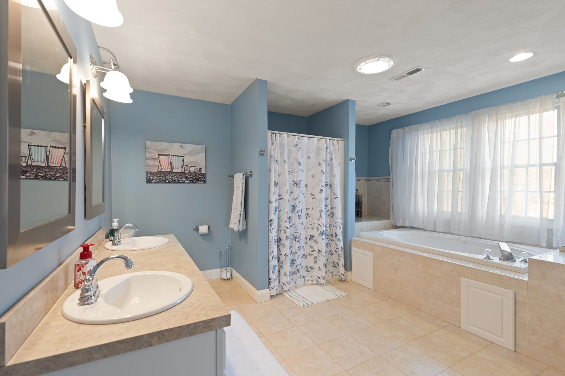 This spacious, high-end, five-bedroom, four-bathroom, 2.4-acre retreat, nestled at the end of a coveted cul-de-sac brings privacy, nature, and resort-like outdoor living. The front entrance opens to a grand, two-story foyer. The main level includes a spacious office, an eat-in kitchen with an island flowing to an oversized living room w/gas fireplace, a dining room with a cozy sitting area, and a half bath. A palatial great room boasts magnificent 25 foot, beadboard ceilings extending up to a lighthouse-inspired cupola, floor-to-ceiling custom windows for an abundance of natural light, and French doors opening to a sprawling composite deck, overlooking a backyard oasis. An exquisite, oversized, custom gunite swimming pool/spa is surrounded by meticulous landscaping and a naturally wooded backdrop. The second floor has a separate laundry room, an expansive primary bedroom with an en-suite and three additional beds sharing a full bath. A walkout lower level contains a guest suite, full bath, kitchen/bar, game room and screened porch with outdoor TV. Please see Matteport for interactive floor plans!
