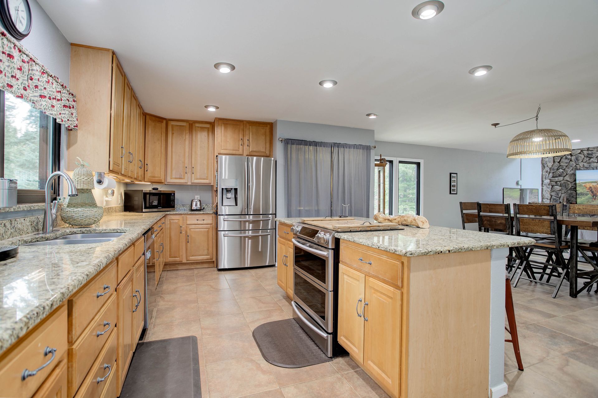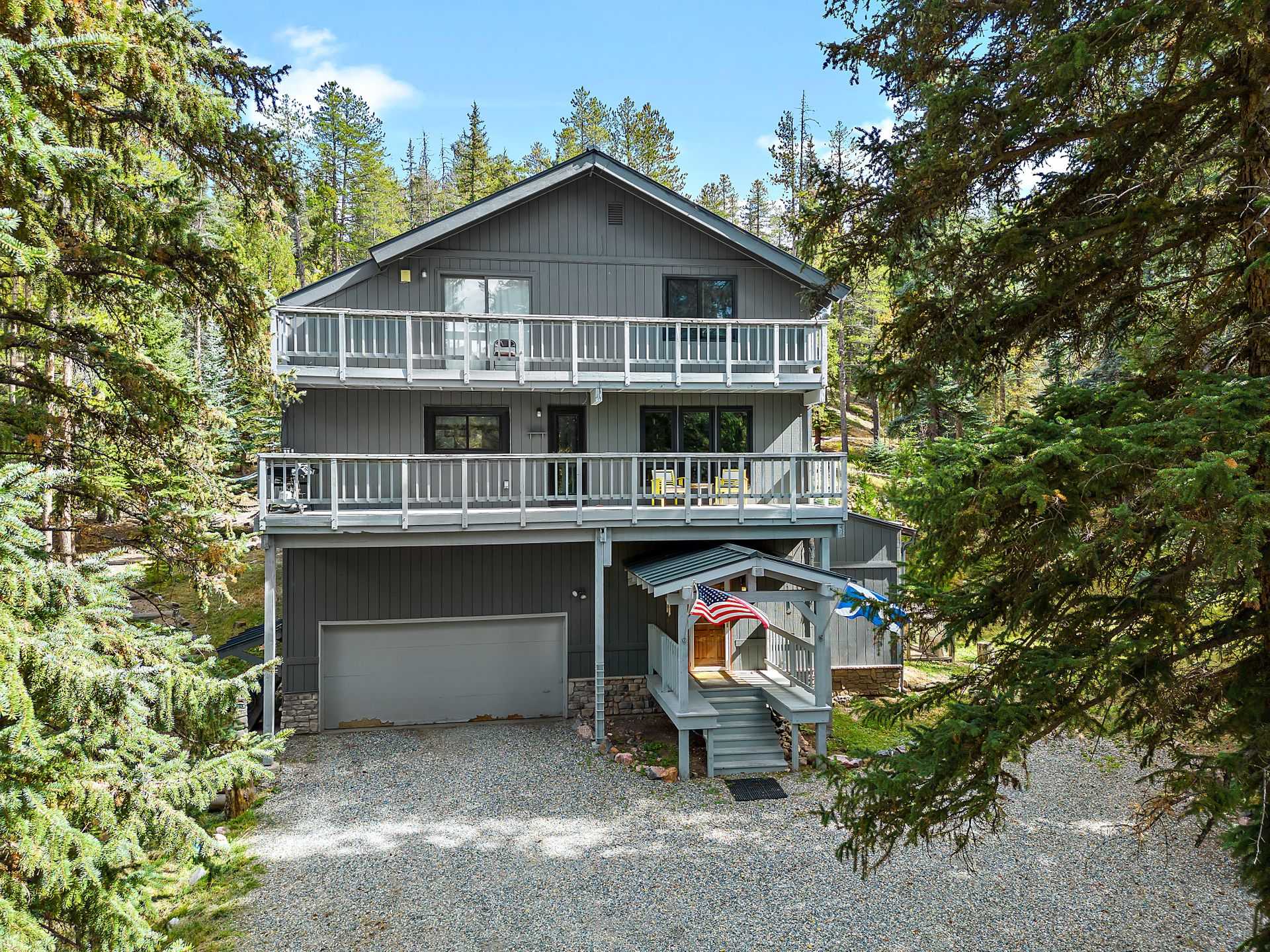 Nestled in the serene landscape of Evergreen, Colorado, this charming two-story mountain home offers a picturesque retreat in the heart of nature. Situated on the tranquil Cub Creek, the property is enveloped by towering pines and aspens, with the gentle sounds of flowing water creating a calming backdrop. The home itself boasts a rustic yet modern design, featuring large architectural windows and NEW Anderson windows that frame the breathtaking mountain vistas and allow natural light to flood the spacious interiors. The main floor includes an open-plan living area with a cozy fireplace, perfect for chilly evenings, while the kitchen is equipped with modern amenities suited for gourmet cooking. Upstairs, the bedrooms offer peaceful views of the surrounding forest, ensuring a restful night's sleep. Outside, expansive decks provide the ideal space for outdoor entertaining or quiet reflection, making this mountain home a perfect blend of comfort and natural beauty.