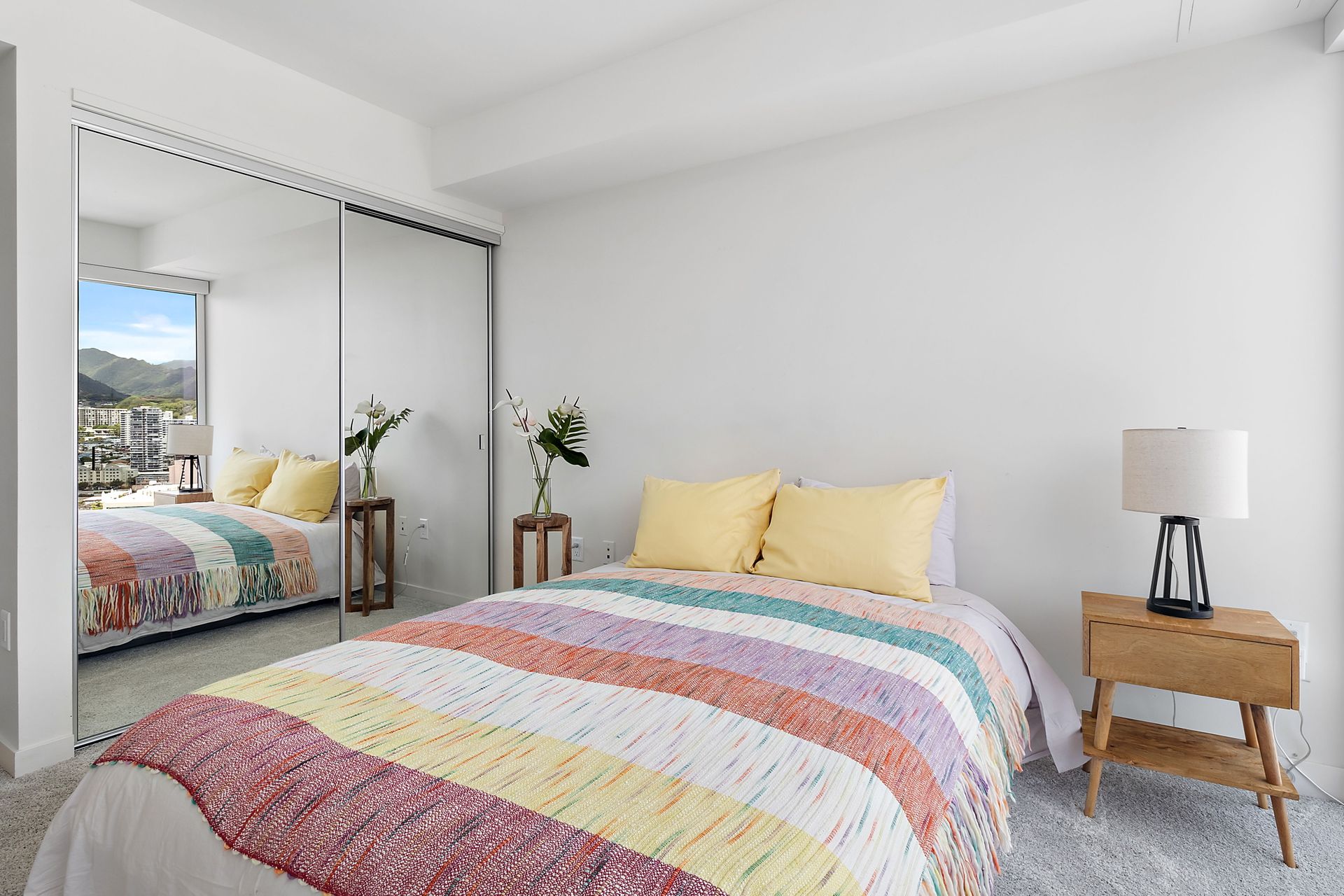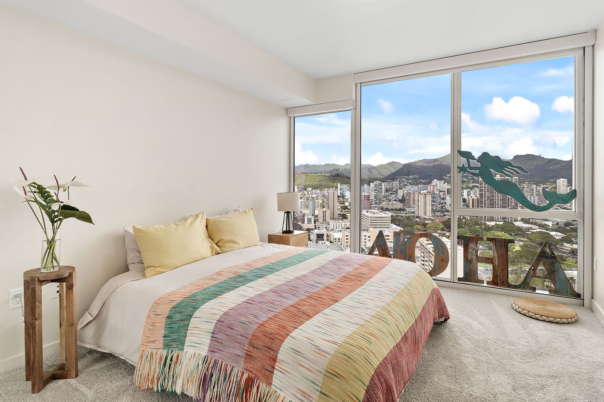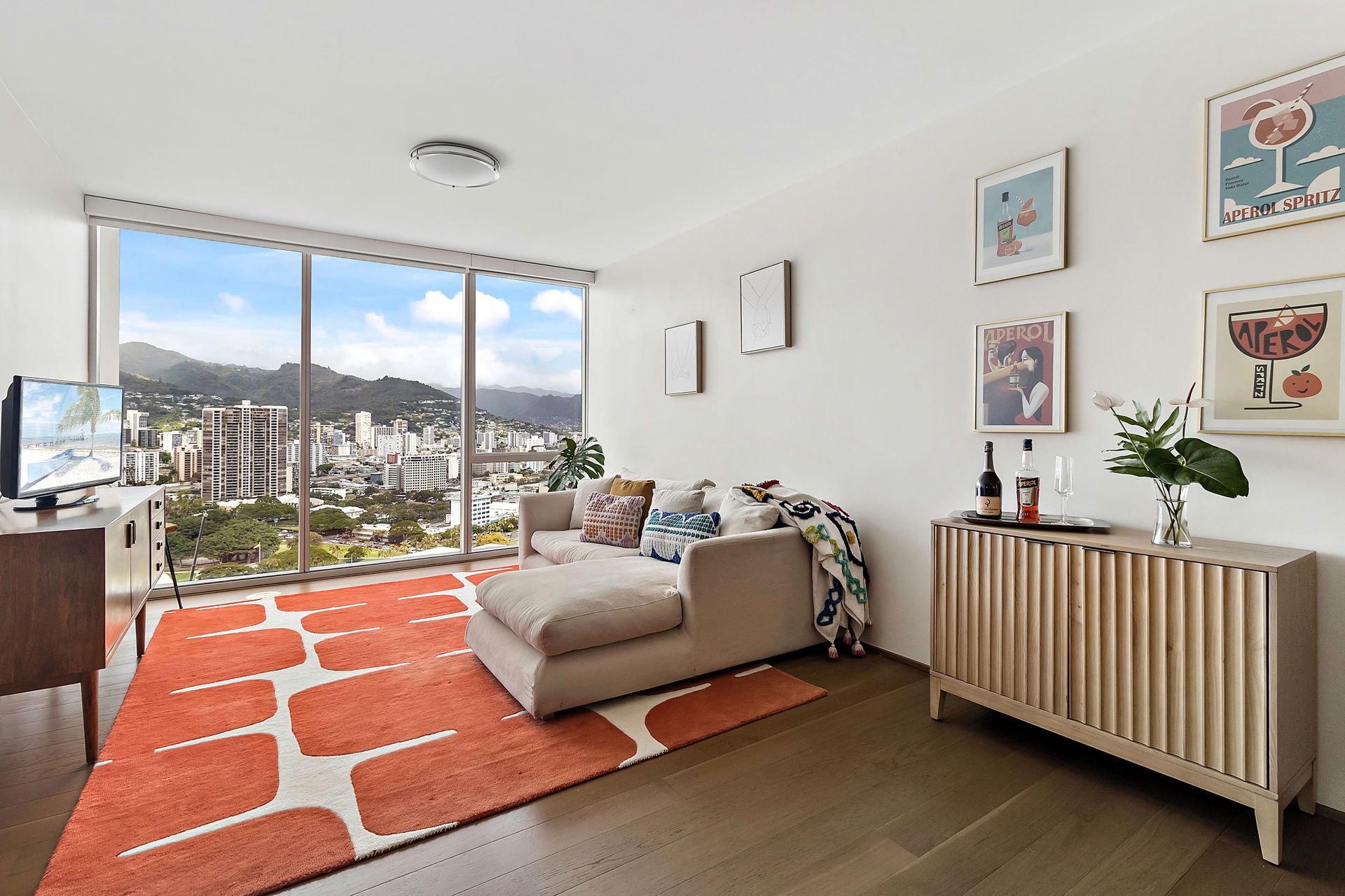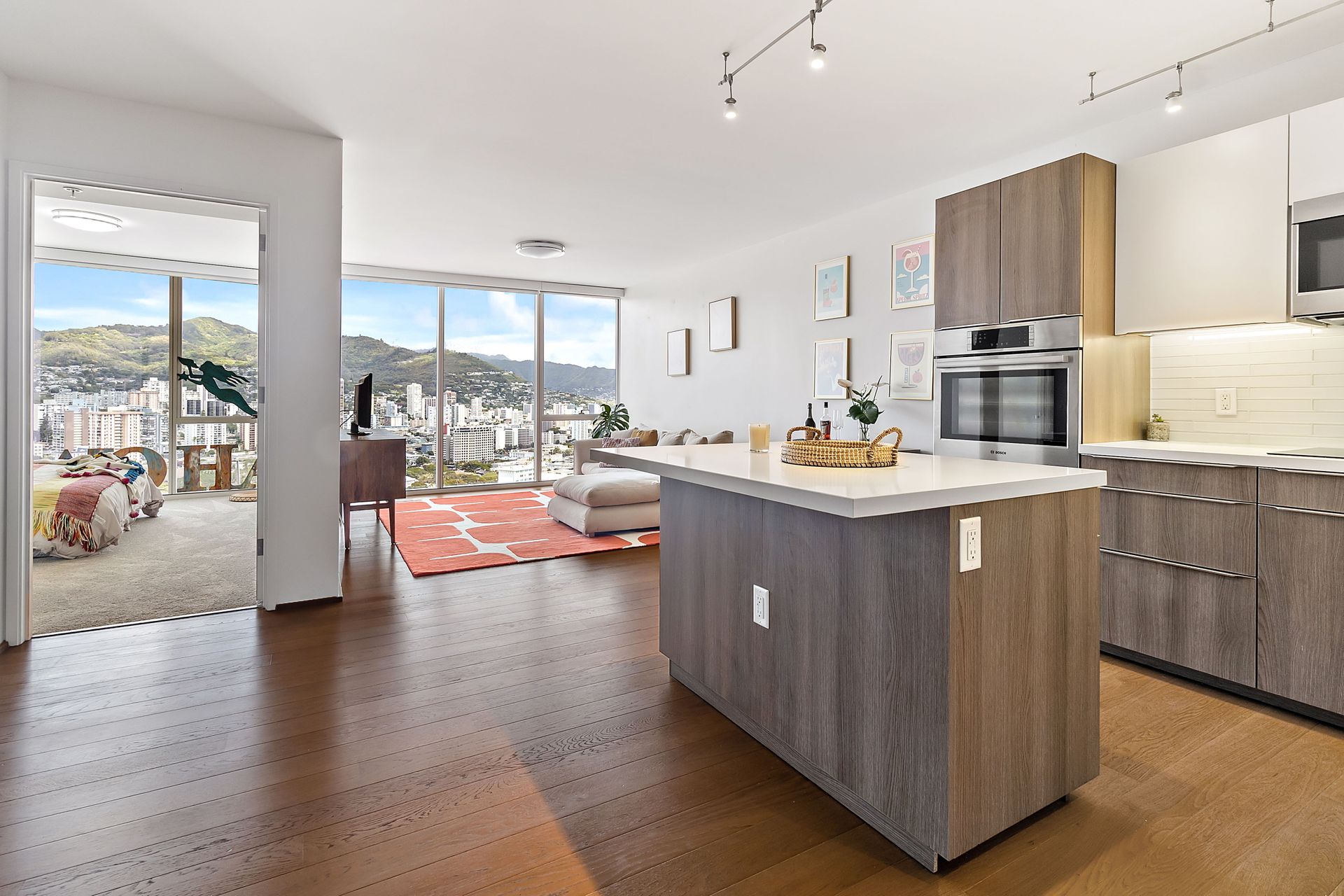 Rarely available, this one bedroom, one bathroom unit is in the highly desired Symphony Honolulu. Built in 2016, this modern condo features high-end finishes and stunning panoramic city and mountain views. The unit is bright and airy with floor-to-ceiling windows throughout. The open-concept floor plan flows seamlessly from the kitchen to the living room. The kitchen boasts stainless steel appliances, granite countertops, plenty of cabinetry and a functional island. Symphony Honolulu has endless amenities like an infinity swimming pool, a large jacuzzi spa, a state-of-the-art fitness center, a clubroom, several outdoor BBQ cabana areas, a sound surround theatre, doggy park and so much more! There is also a 24- hour security and resident specialist to assist with all your needs. There is easy access to shopping, dining and entertainment. This condominium features the most luxurious car dealerships and award-winning MW restaurant. This is the perfect blend of comfort, style and convenience.