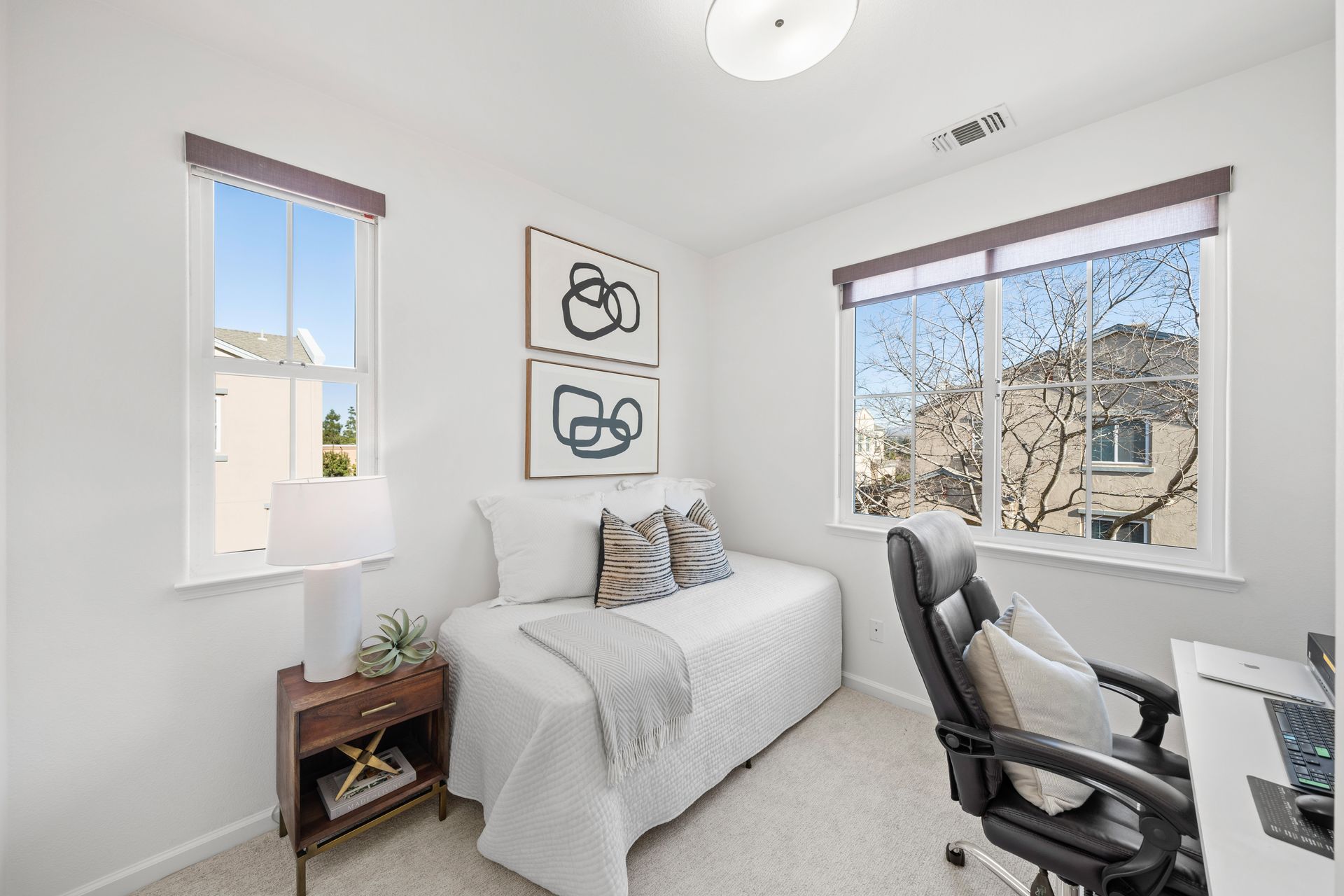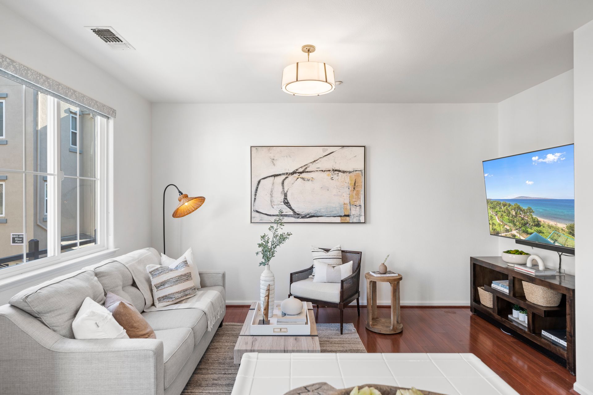 Experience convenient, luxury living in this sparkling end-unit townhouse-style condominium in the highly desirable Willows at San Ramon Village. With approximately 1700 square feet of elegant livable space, this updated home offers comfort and style in a prime Dublin location. Upon entry, you will fall in love with this rarely available floor plan. The living room is the perfect place to relax and enjoy music by the cozy fireplace. The open family room, kitchen and dining room flow together to provide the ideal backdrop for entertaining guests. The spotless white kitchen is a chef’s delight with a center island, five-burner gas cooktop, and lots of storage. You will be mesmerized by the plethora of windows that flood the rooms with natural light. The luxurious primary suite has a walk-in closet with closet organizers. There are three additional bedrooms. This residence boasts the ultimate in city living and offers unparalleled comfort and style. Enjoy fresh paint, newly installed carpets in bedrooms, and updated light fixtures. You will appreciate the convenience of being close to commute options, shopping, and dining along with twelve years of award-winning schools. There is a spacious two-car garage featuring epoxy floors and a tankless water heater. There is plenty of guest parking too!