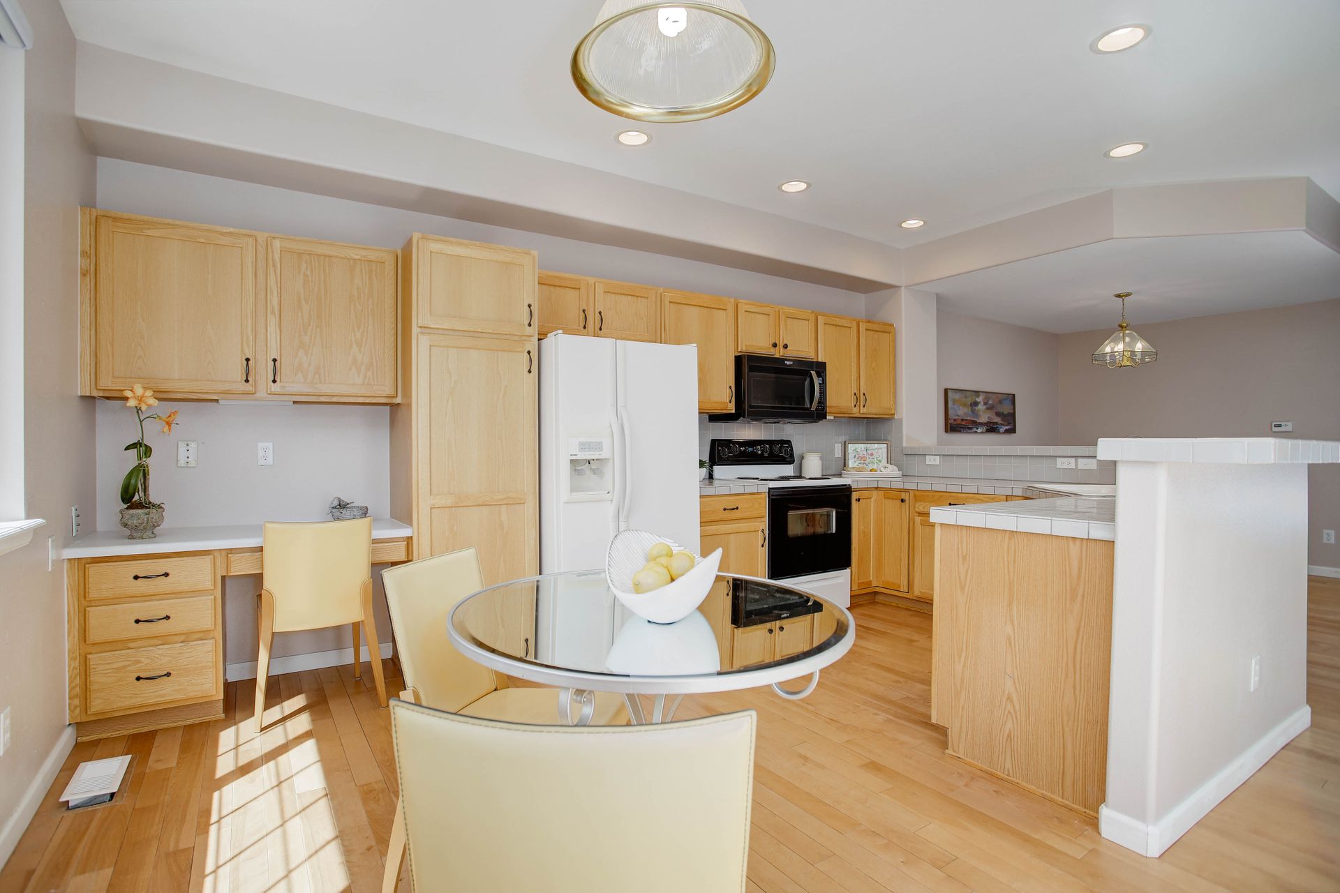 Remarkable end-unit townhome in the conveniently located Village at Dakota community. Venture into the living room and be captivated by the cathedral ceilings and massive windows that flood the space with natural light. The private fenced-in patio, complete with a storage shed, provides a tranquil outdoor space for relaxation or entertaining. The large kitchen is designed for both dining and hosting guests. This home features three spacious bedrooms and two and a half baths, ensuring plenty of room for everyone. The primary suite is complimented by an en-suite bathroom and large walk-in closet with window. A two-car attached garage has room for both parking and storage. Additionally, the newer HVAC systems and hot water heater will provide peace of mind. Located near the community pool, you can enjoy the benefits of a refreshing swim without the hassle of maintenance. Don't miss out on the opportunity to own this special townhome. Contact us today to schedule a private showing.