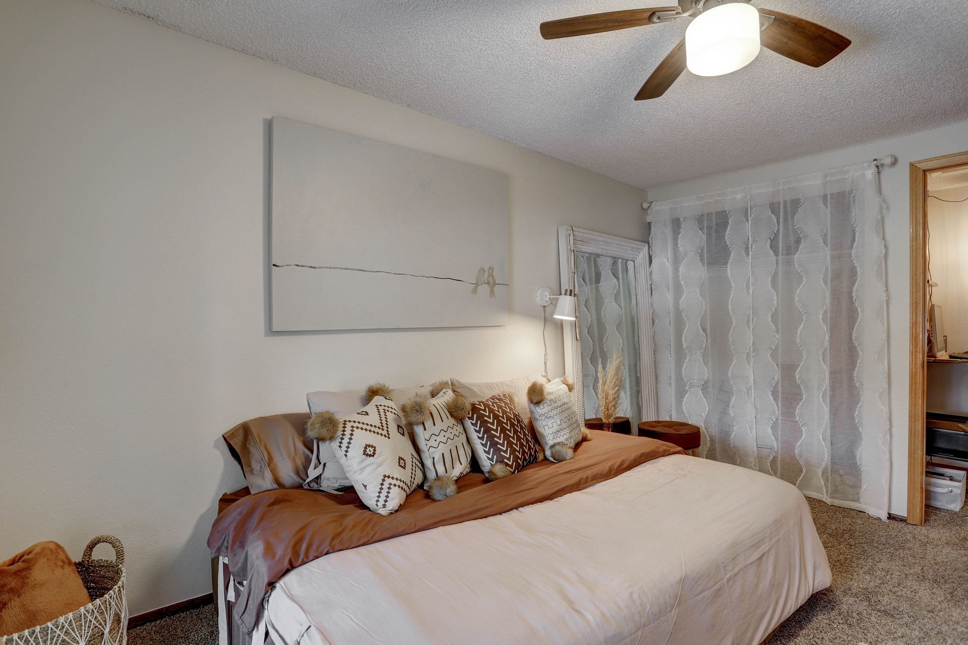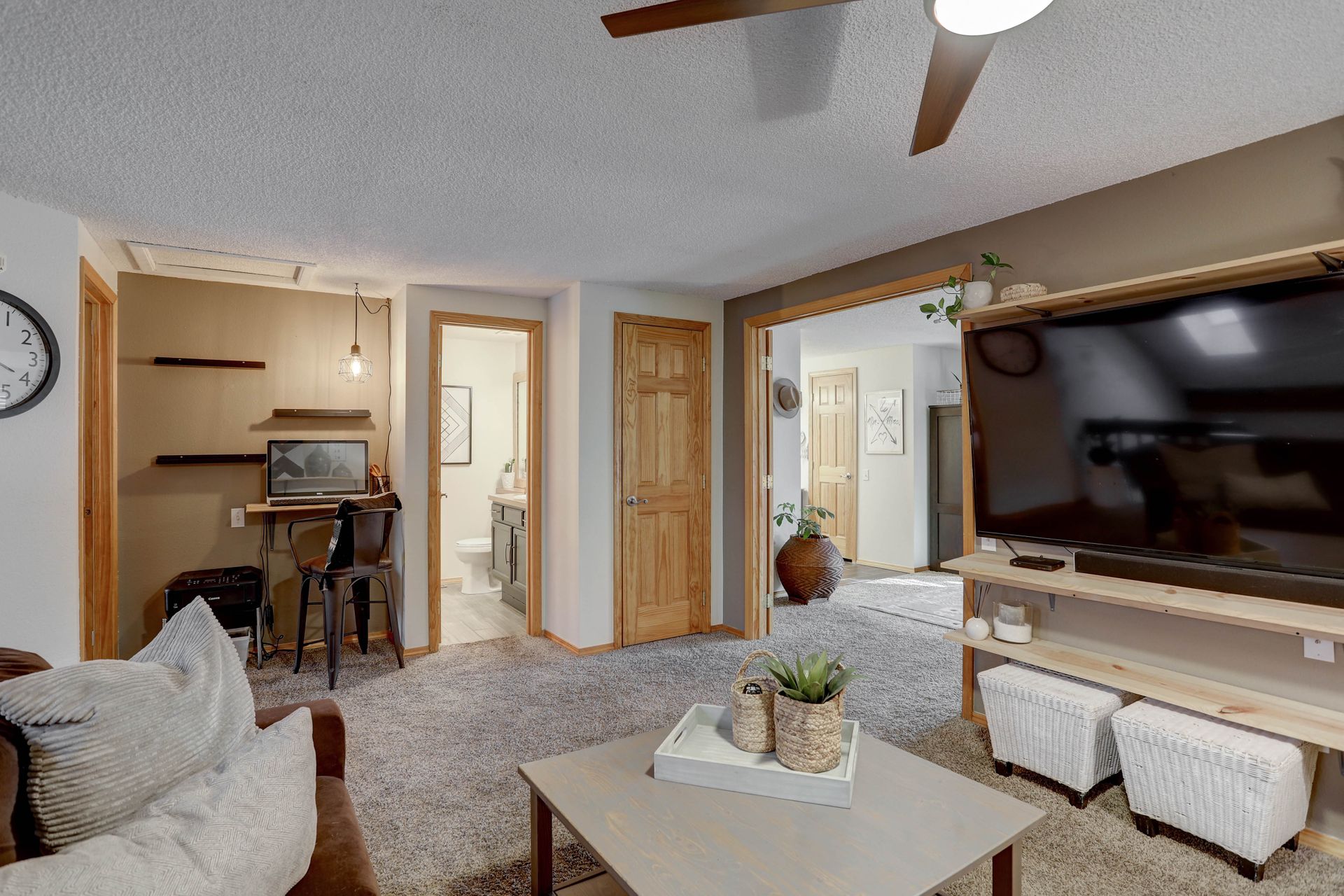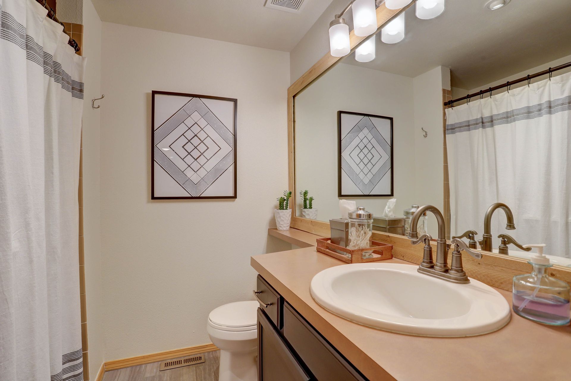 This townhome offers an open floor plan with vaulted ceilings and skylights. There is new interior paint, newer laminate flooring, newer vinyl windows, solid wood doors, and updated, stylish lighting throughout. The kitchen is open to the living area and hosts newer stainless steel appliances, tile backsplash, and a breakfast bar. The dining room walks out to a comfortable patio. Upstairs there is a large loft and two bedrooms including a spacious master bedroom. The master bedroom includes a private bath with a deep soaking tub, a vanity with stone countertop, tile floors, and a walk-in closet. The fully finished basement, with a built-in wet bar, has plenty of room that could be modified to add an additional bedroom. There is an attached oversized two-car garage. New roof, new oversized gutters, and newer A/C. Located in a great community with a pool, tennis courts, and clubhouse. Close to restaurants, shopping, public transportation, parks, and much more.