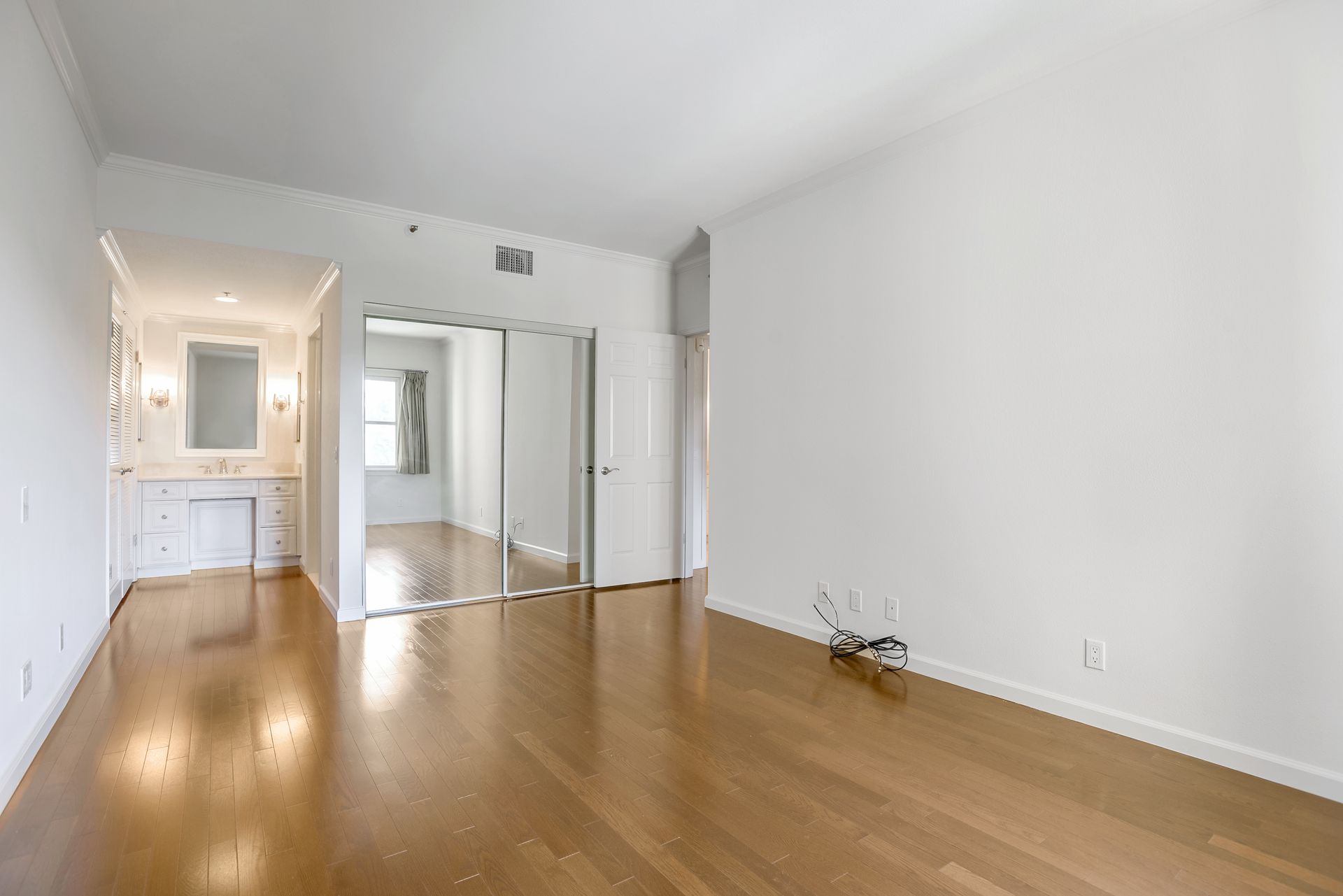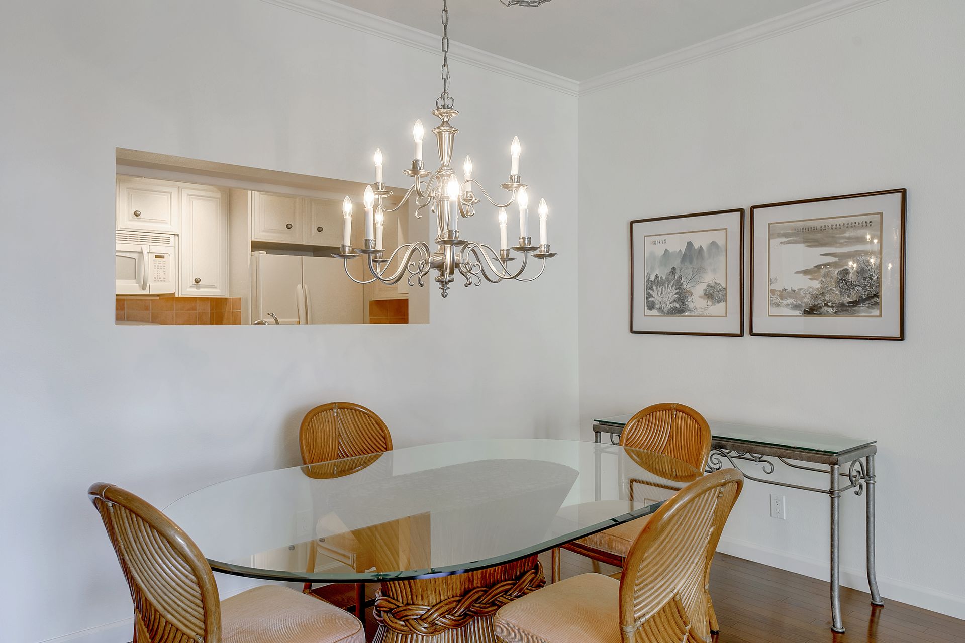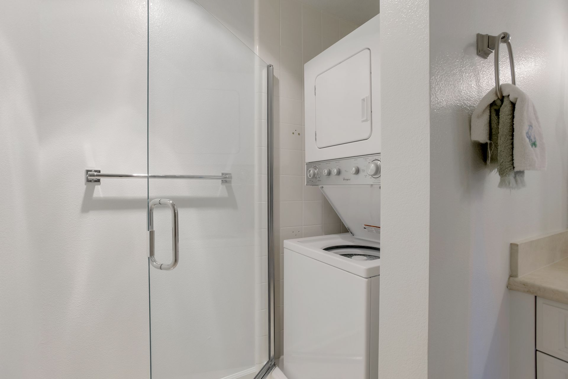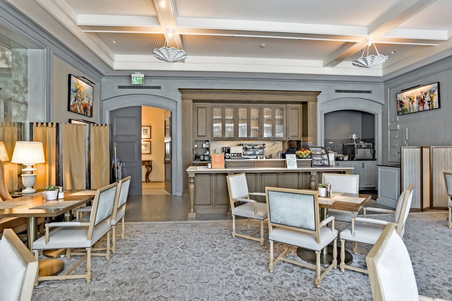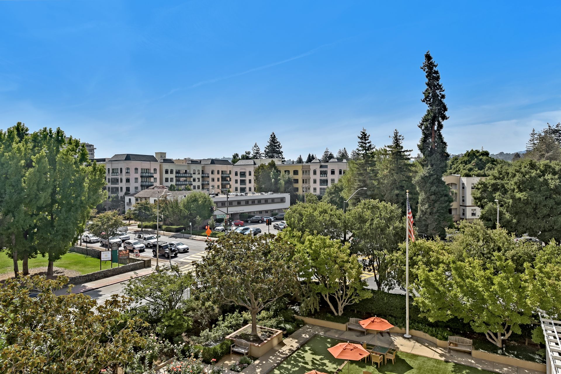 Enjoy life in this active adult community! This bright, single-level unit has been meticulously remodeled and boasts crown molding, wood flooring, faux fireplace, gourmet kitchen and elegant touches which make entertaining a delight. Custom kitchen cabinetry is accented by tile counters, specialized lighting and tile flooring. There is a large open pass-through from the kitchen to the dining area. Gorgeous wood flooring throughout the living areas is stained a walnut color, accentuating the light walls, crown molding and neutral ceilings. The large living room expands to an updated open area which has a built-in bar area and faux fireplace. A wonderful balcony overlooks the western gardens, bocce ball court and sunset views. The hallway bathroom has granite counters and a stacked washer/dryer. The primary suite features two separate closets, a substantial bedroom area, custom cabinetry with sink, make up space and bathroom with a generous stall shower. The sophisticated community for those 60-plus years of age offers an exciting lifestyle, complemented with towel and linen service, housekeeping, planned activities such as theater outings, shopping trips, maintenance and much more! There's a scrumptious bistro, amazing dining room, hair salon, gym, transportation and more!