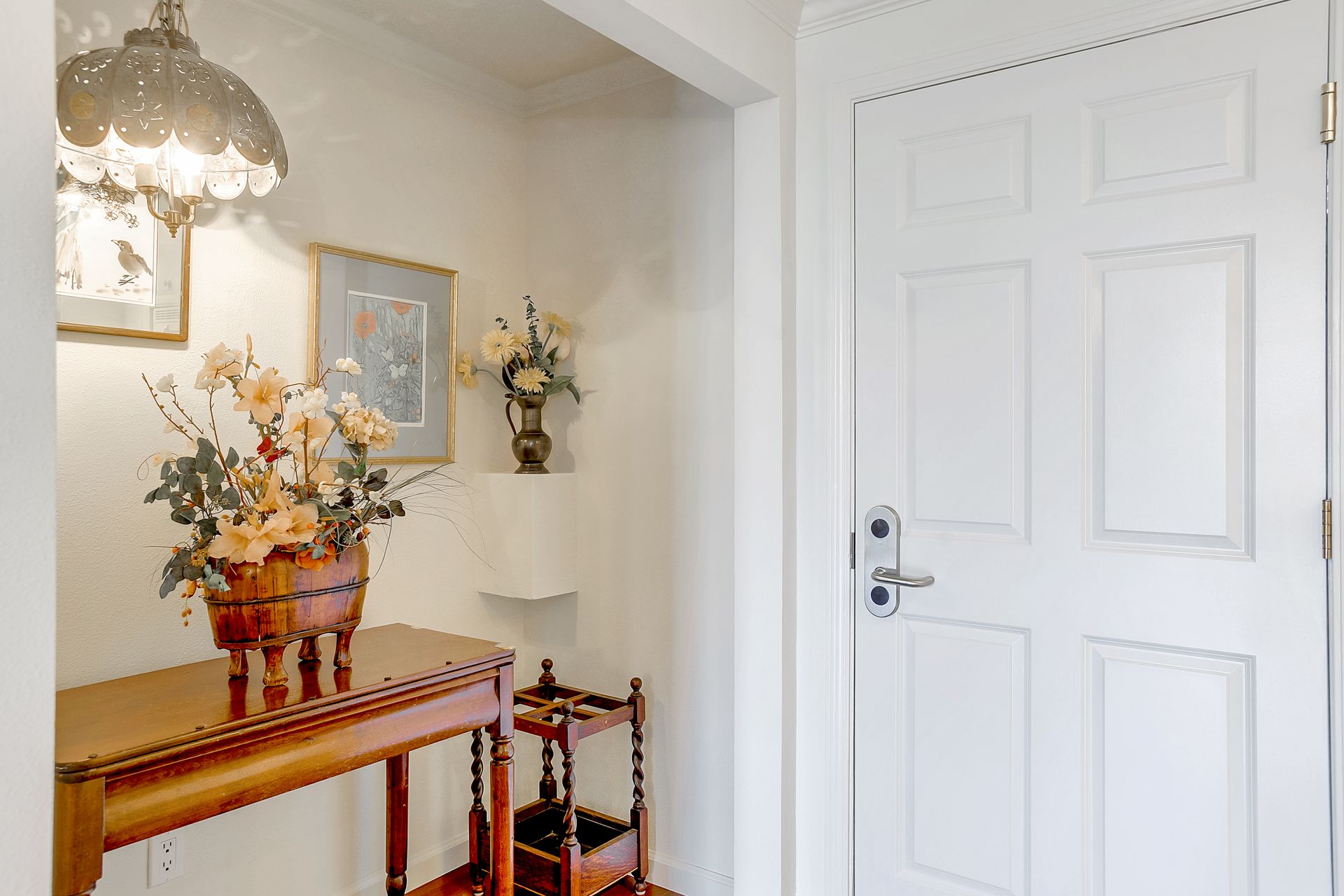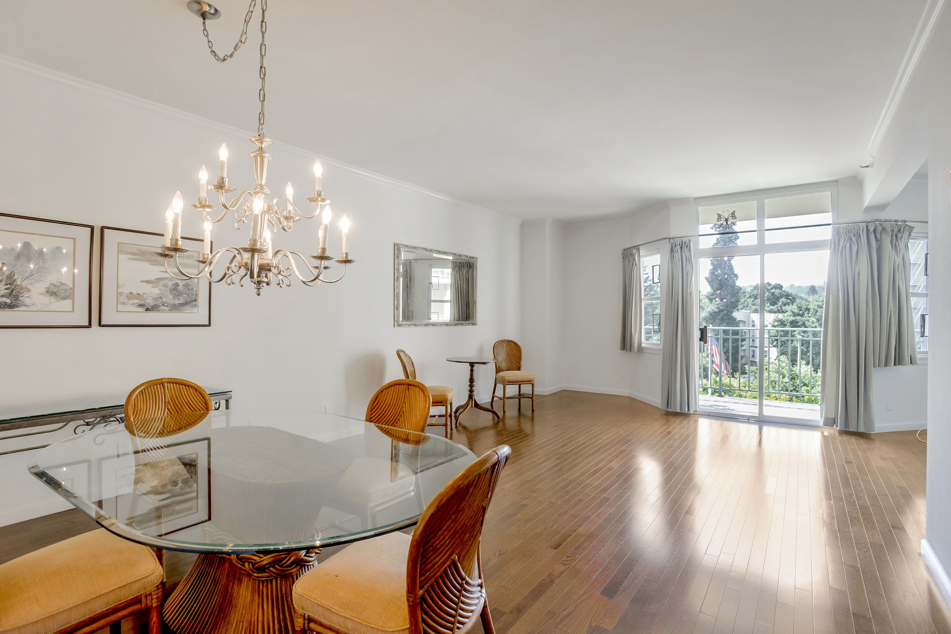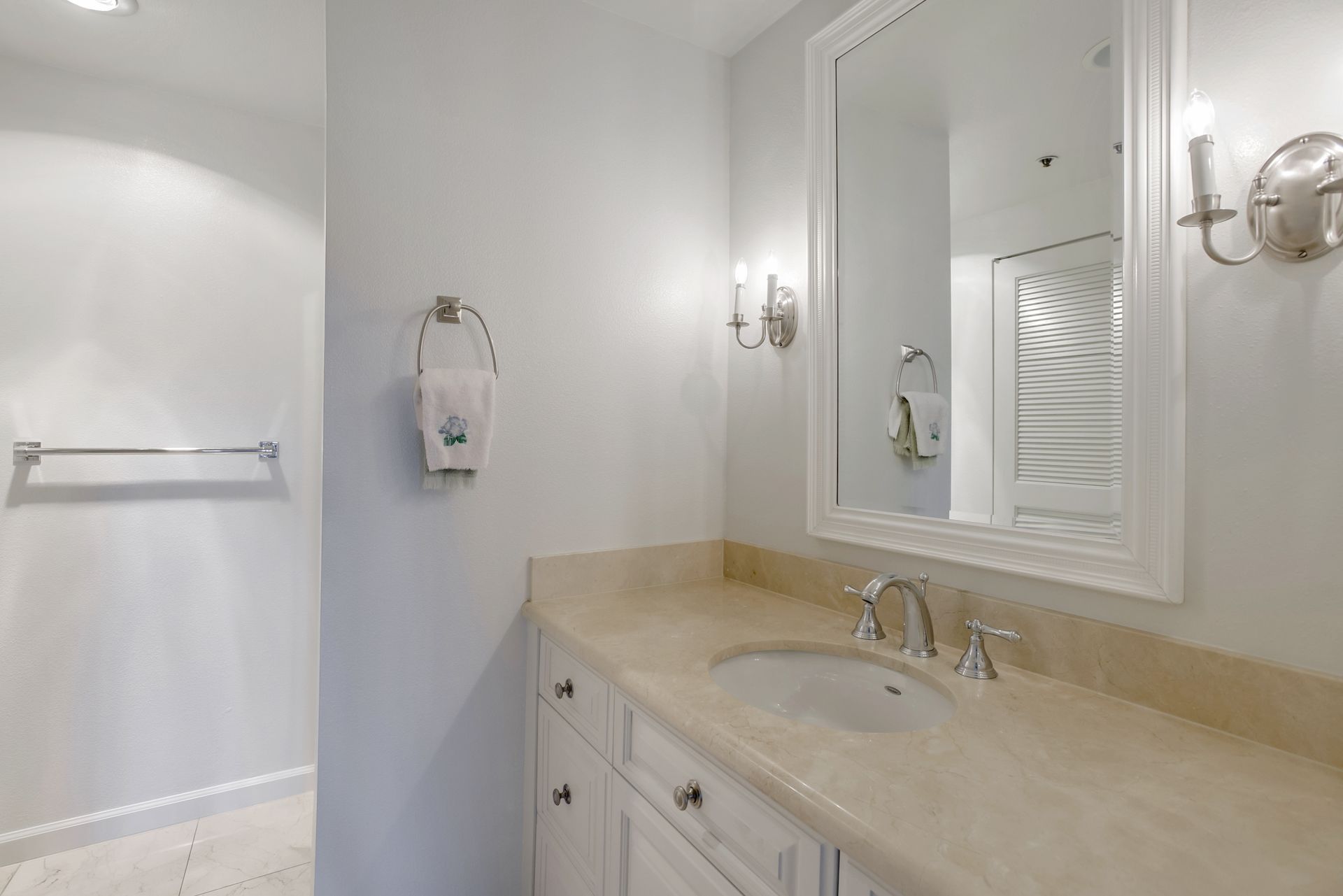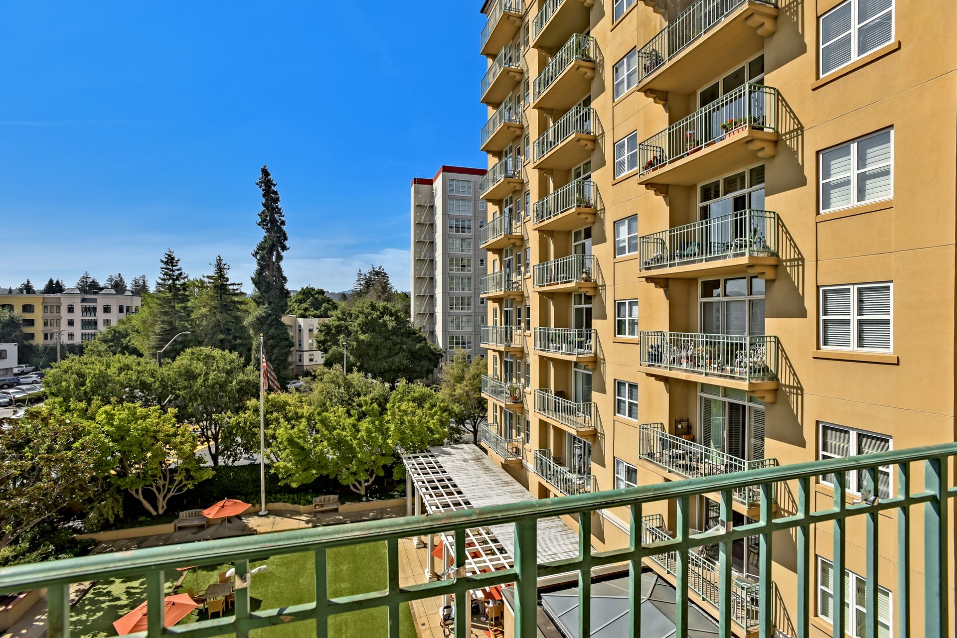 Enjoy life in this active adult community! This bright, single-level unit has been meticulously remodeled and boasts crown molding, wood flooring, faux fireplace, gourmet kitchen and elegant touches which make entertaining a delight. Custom kitchen cabinetry is accented by tile counters, specialized lighting and tile flooring. There is a large open pass-through from the kitchen to the dining area. Gorgeous wood flooring throughout the living areas is stained a walnut color, accentuating the light walls, crown molding and neutral ceilings. The large living room expands to an updated open area which has a built-in bar area and faux fireplace. A wonderful balcony overlooks the western gardens, bocce ball court and sunset views. The hallway bathroom has granite counters and a stacked washer/dryer. The primary suite features two separate closets, a substantial bedroom area, custom cabinetry with sink, make up space and bathroom with a generous stall shower. The sophisticated community for those 60-plus years of age offers an exciting lifestyle, complemented with towel and linen service, housekeeping, planned activities such as theater outings, shopping trips, maintenance and much more! There's a scrumptious bistro, amazing dining room, hair salon, gym, transportation and more!