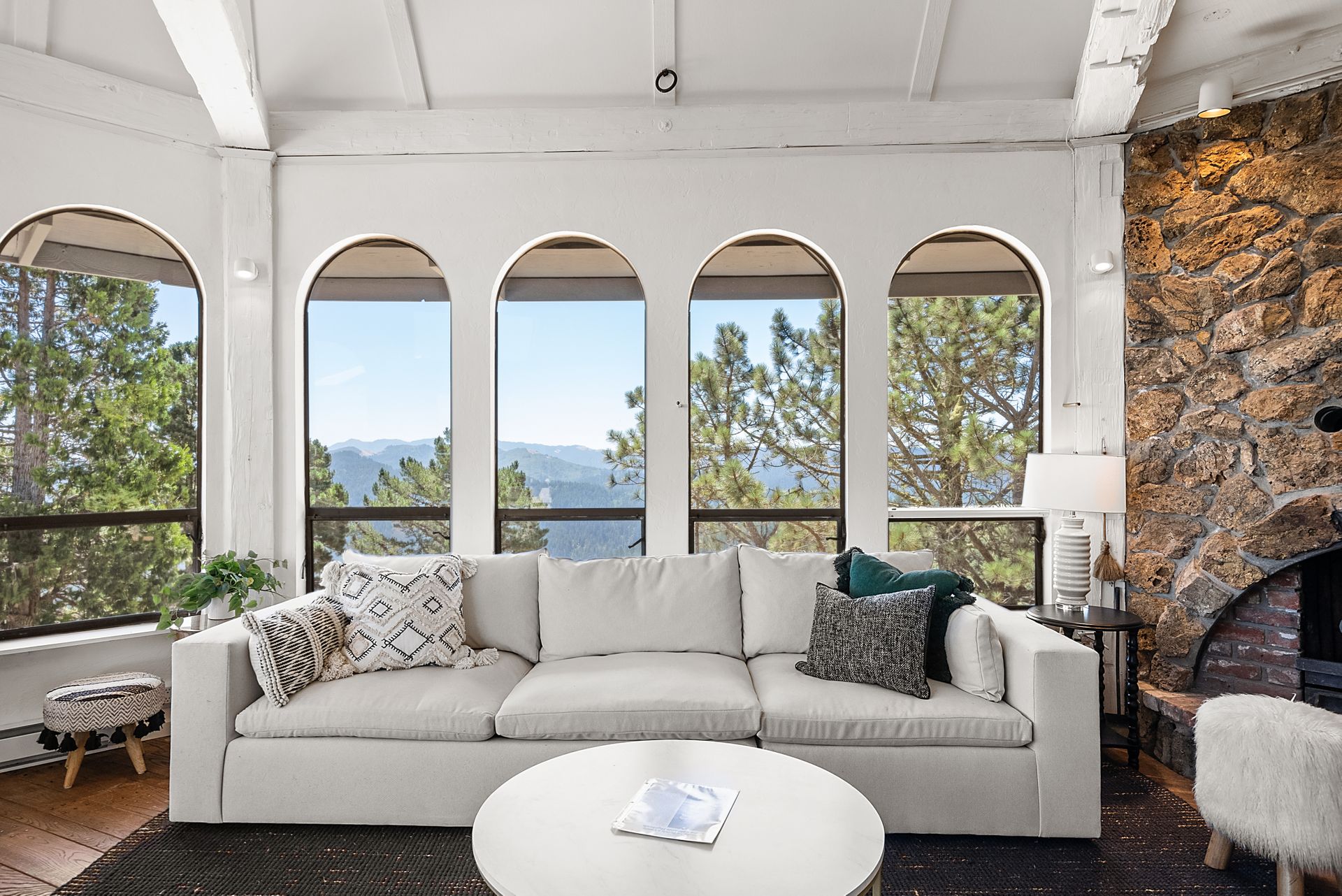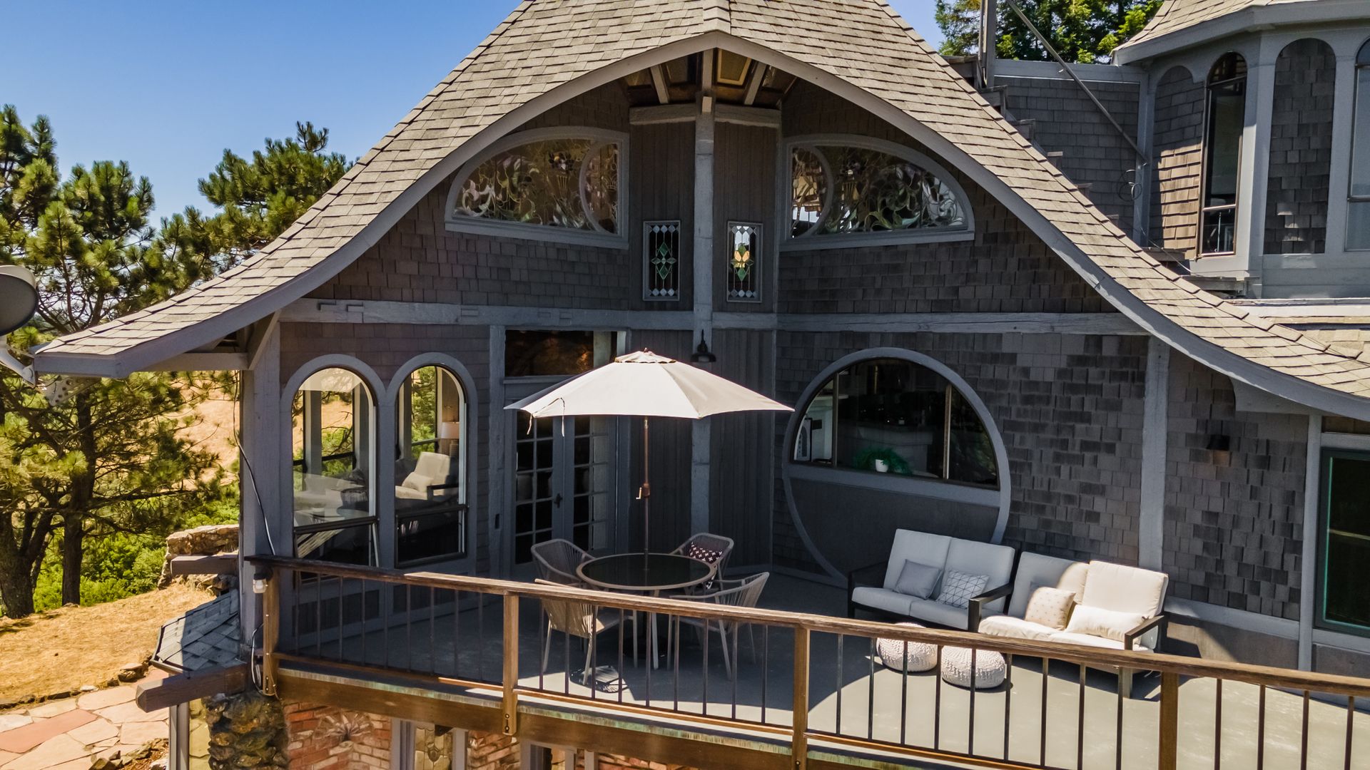 As you ascend the private driveway through the lush, wooded landscape, anticipation builds for the awe-inspiring views that await you at the top. Upon arrival, you are greeted by an architecturally stunning custom home that harmonizes seamlessly with its environment. The design showcases the picturesque surroundings from virtually every room, bringing the outdoors in and providing an unbroken connection to your natural surroundings.