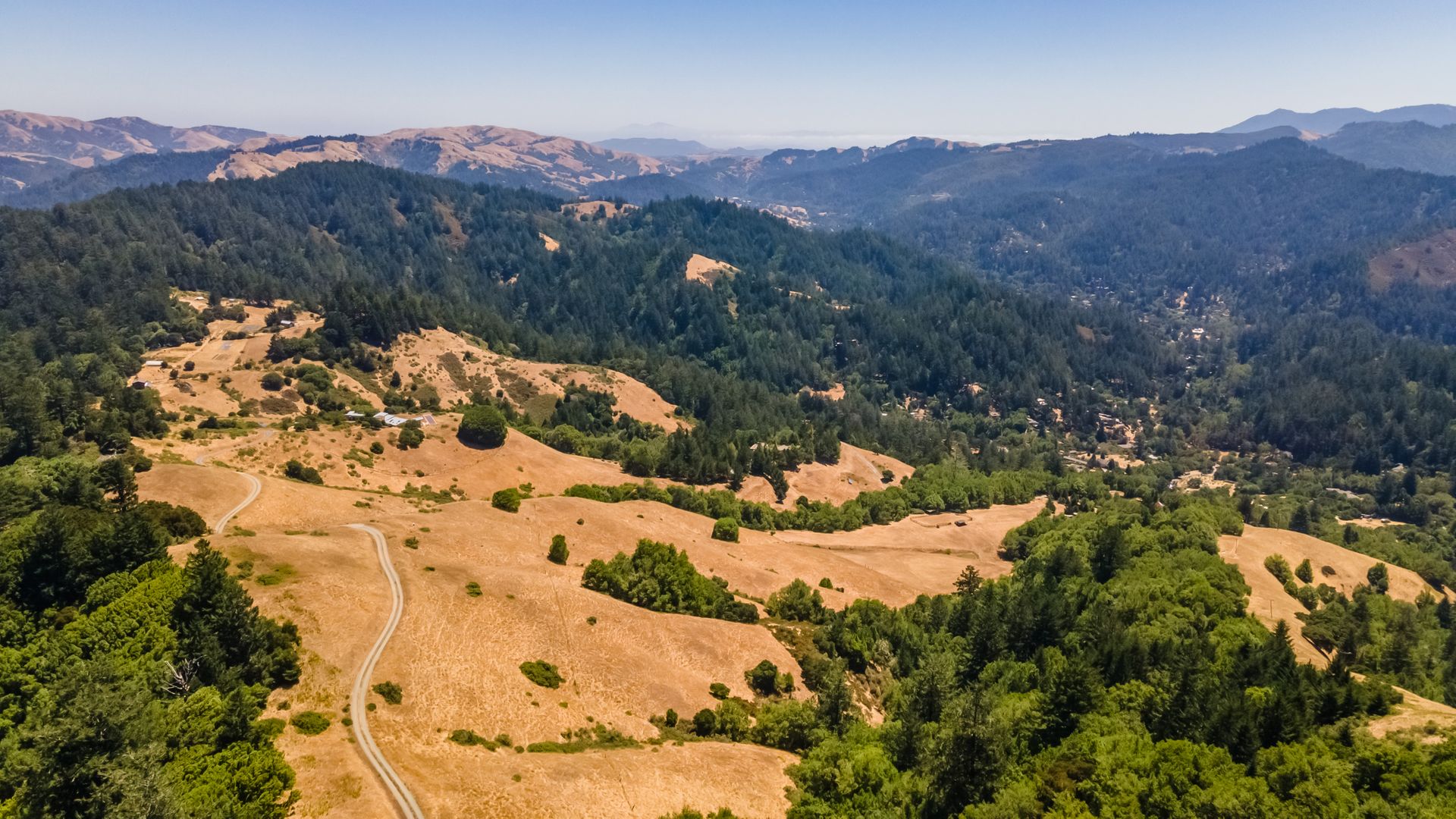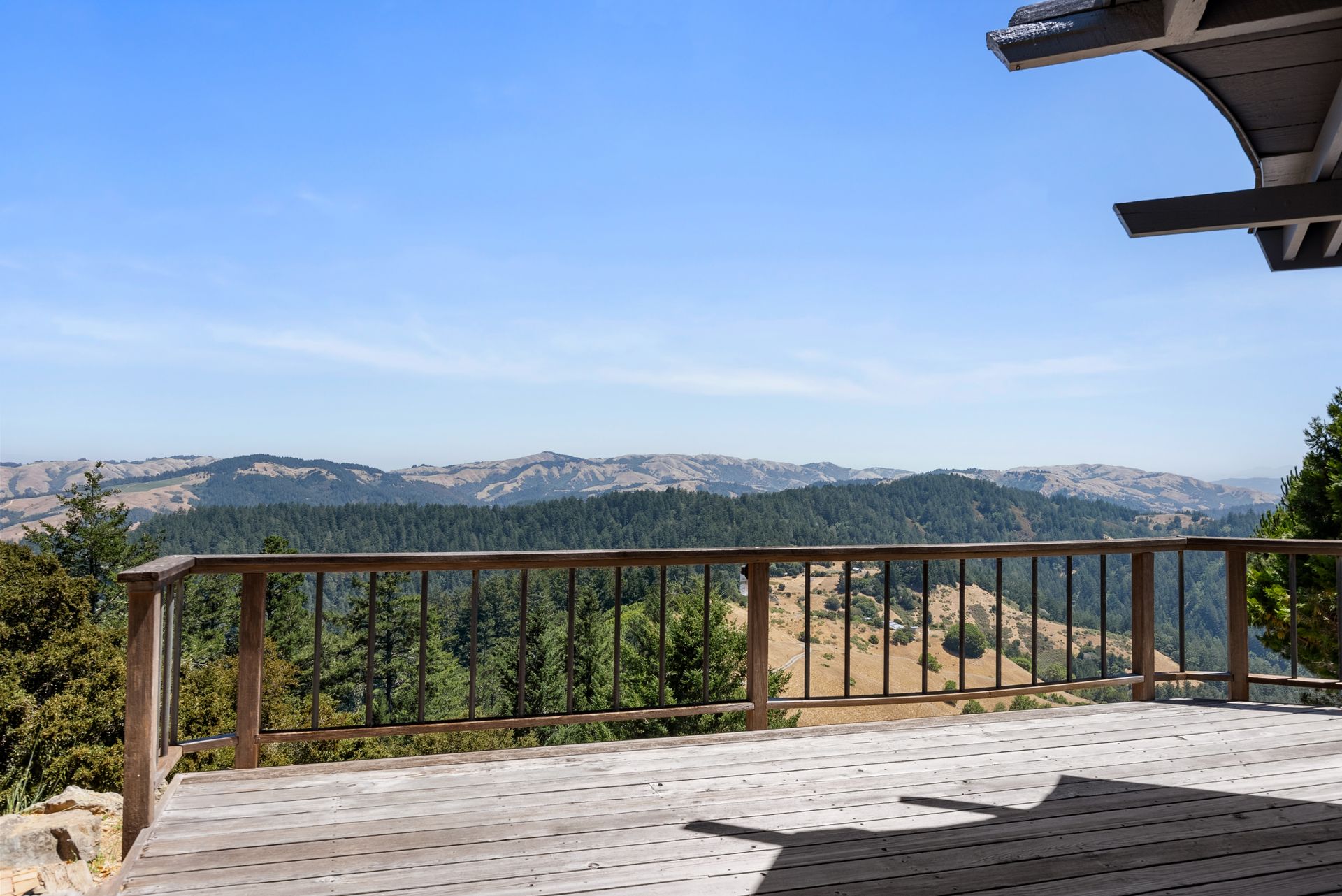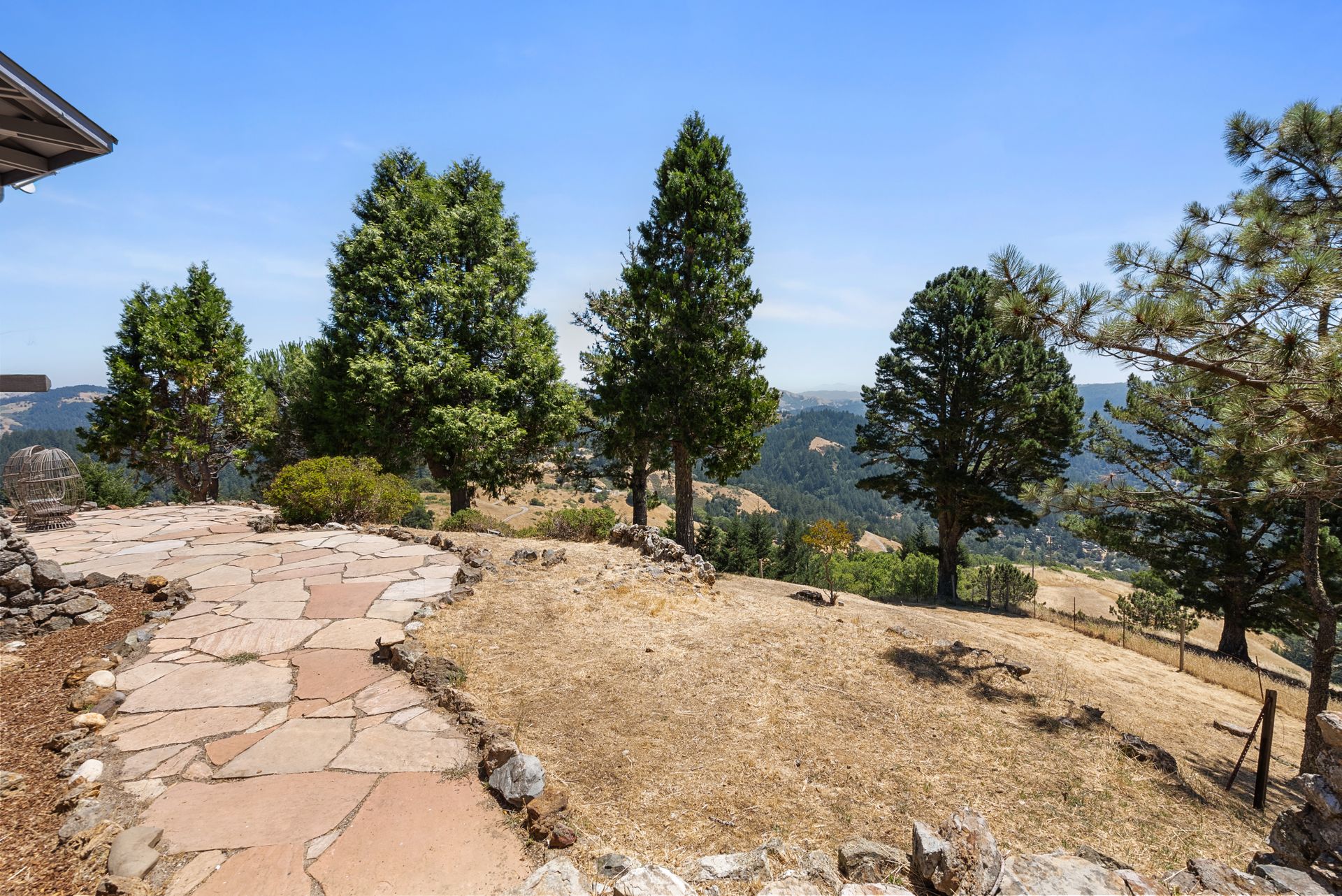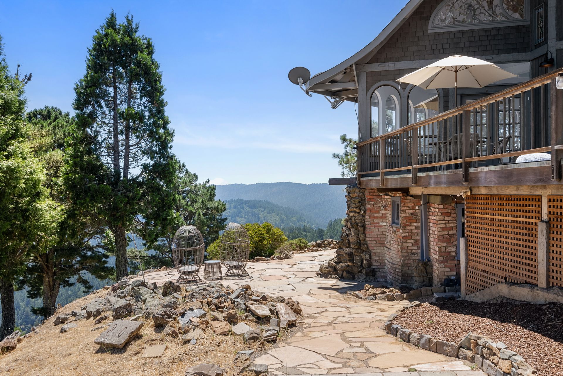 Welcome to 1 Mountain King Road, a breathtaking custom home perched atop Mount Barnabe in Lagunitas, Marin County. This unique property offers an unparalleled living experience at the highest elevation of any residence in the entire county, providing stunning vistas of the surrounding bay area. Set on approximately 50 acres of pristine land, this estate boasts an ideal blend of luxury, seclusion and natural beauty.