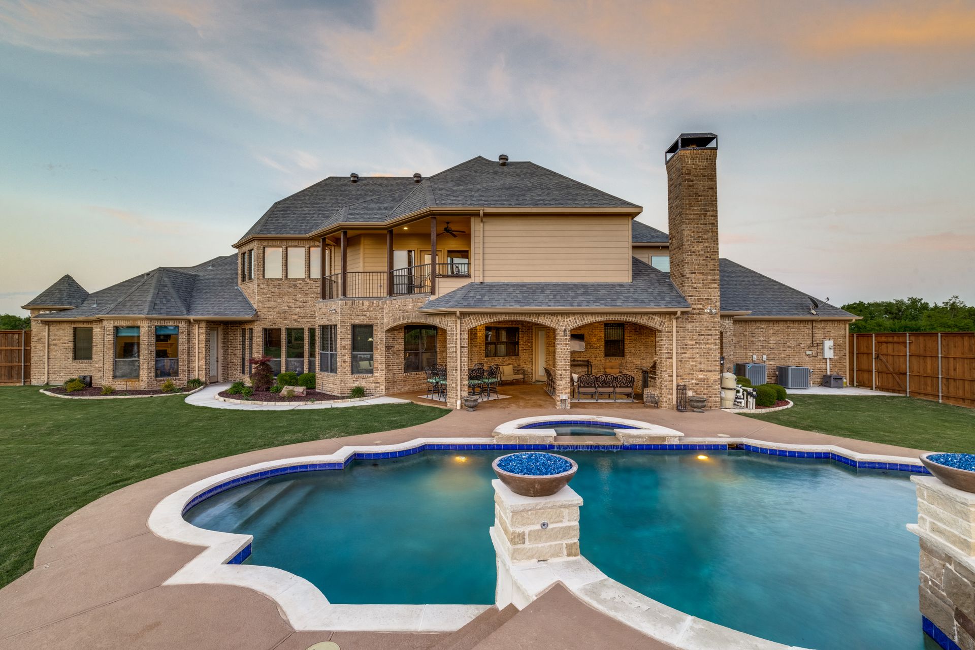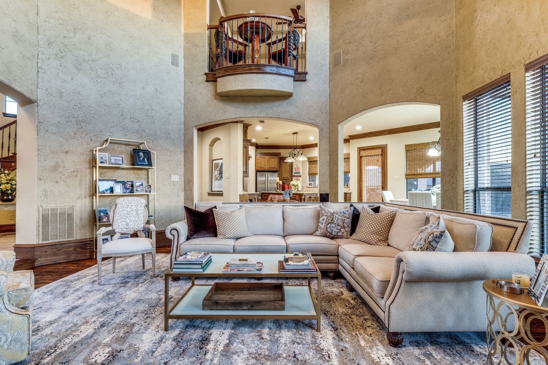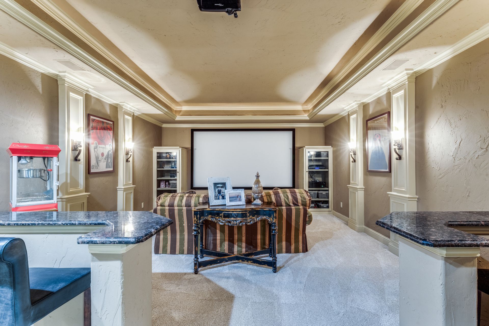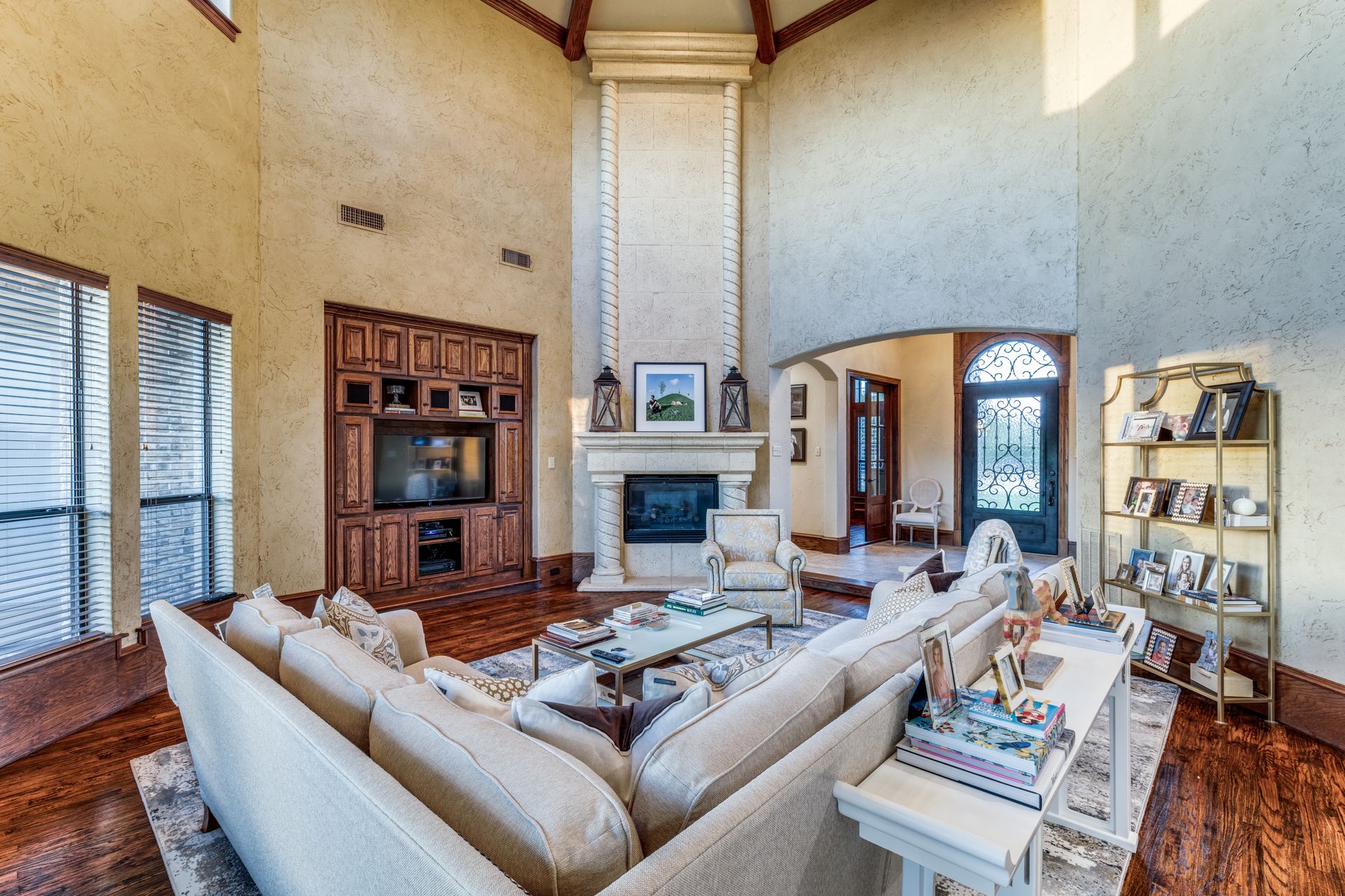 Grand foyer upon entry with elegant curved staircase leading to Juliet balcony and views of cathedral ceilings with stately architecture and detailed millwork throughout. Timeless transitional open floor plan with refreshing natural light. Gourmet kitchen with oversized island, double ovens, and abundant counter space complete with large picture window thoughtfully positioned overlooking the backyard. Custom cabinetry and built-ins throughout. Office featuring coffered ceilings, built in desk and plantation shutters. Retreat-like master suite with fireplace and private pool access. Both game room and media room upstairs fully equipped for any sized gathering with wet bar, and balcony with sweeping views of private lake. Well appointed outdoor living space thoughtfully designed with fireplace, and multiple gathering places. Heated pool with water and light features, spa and much more!