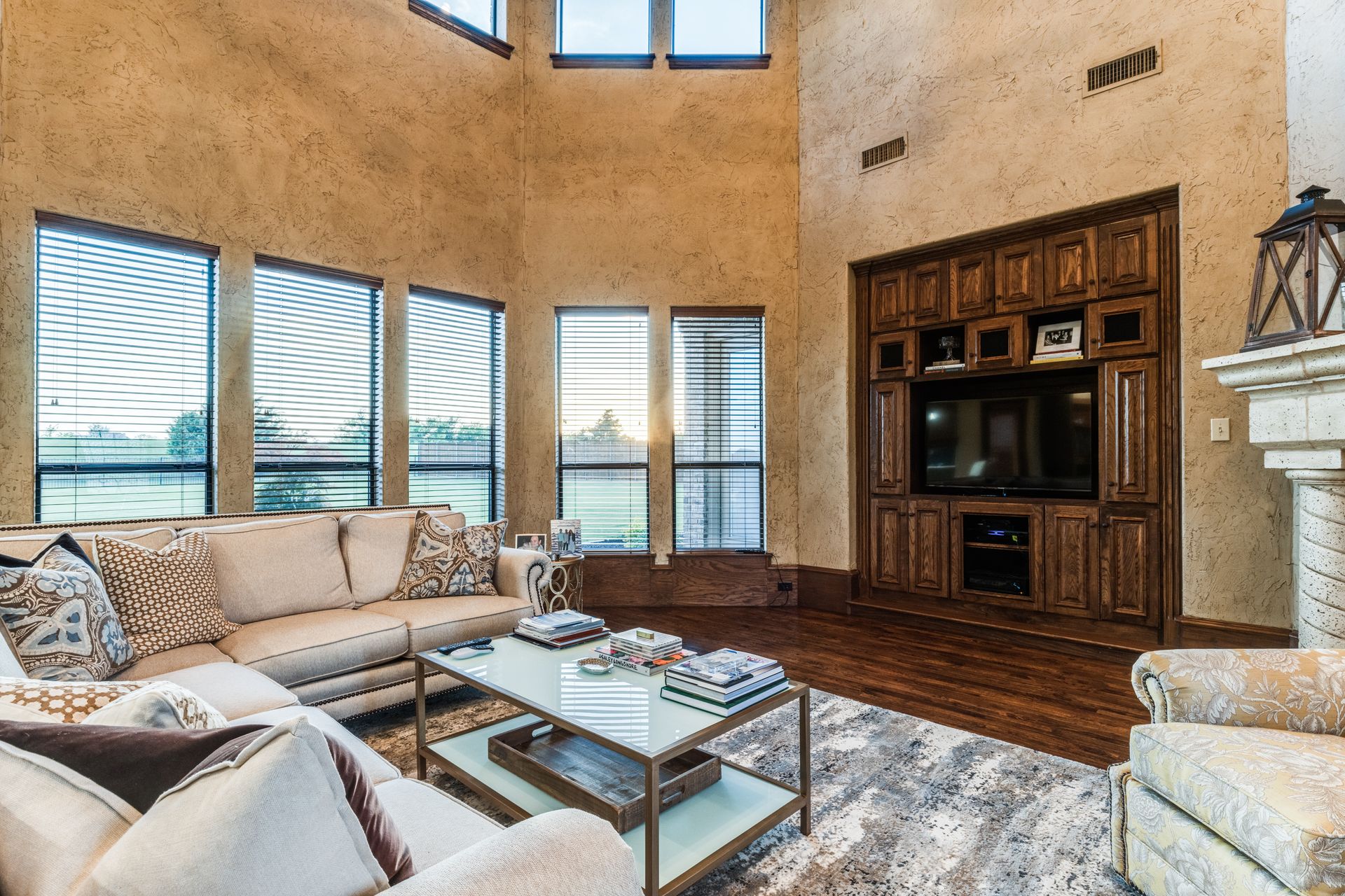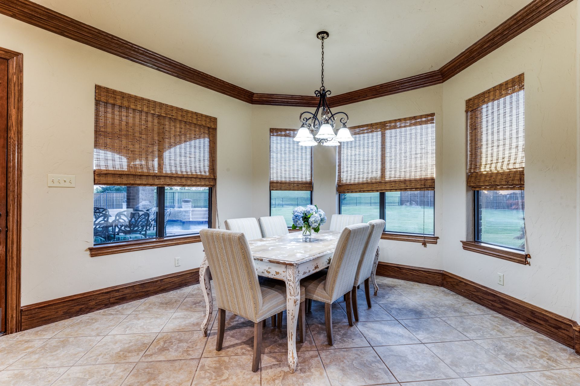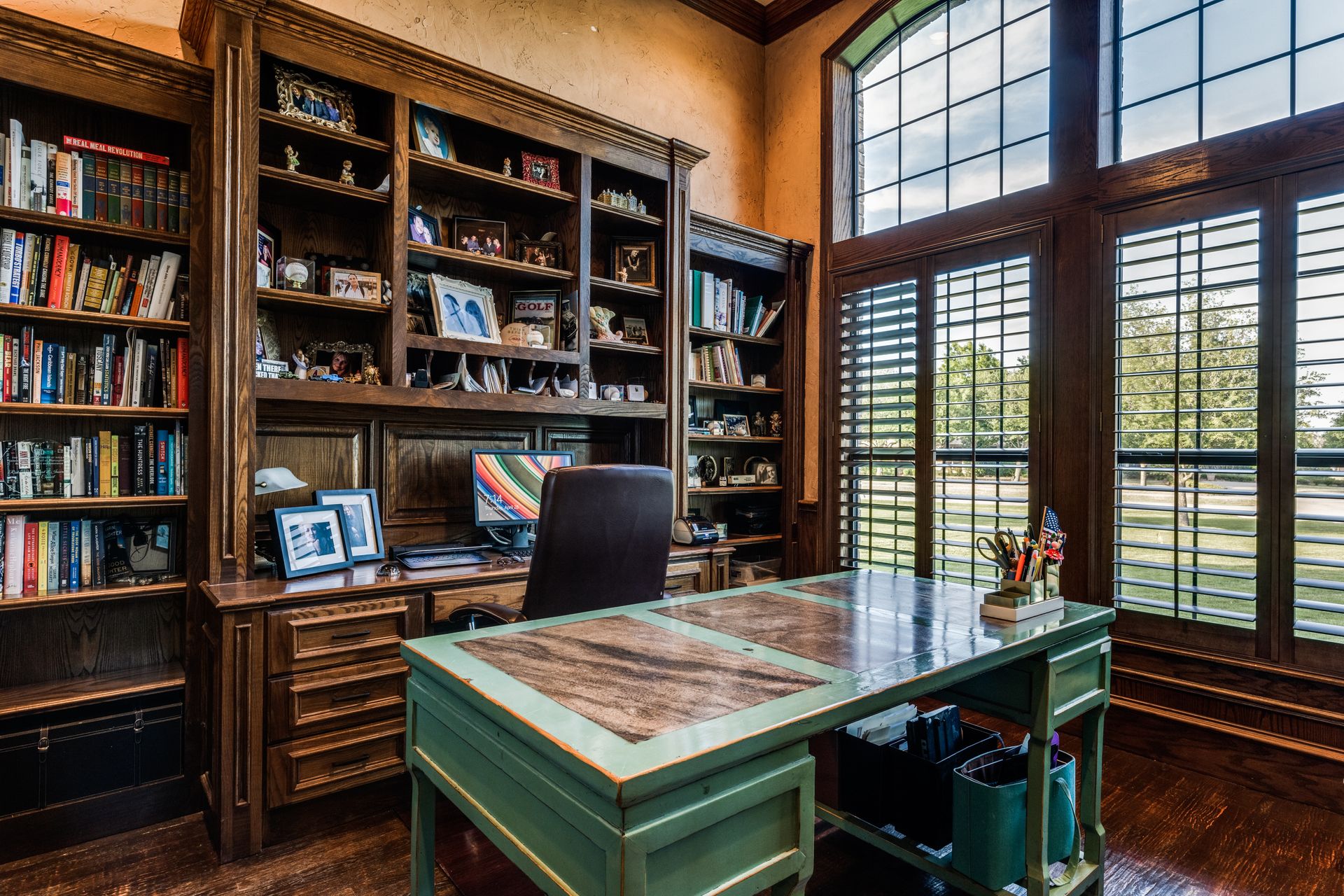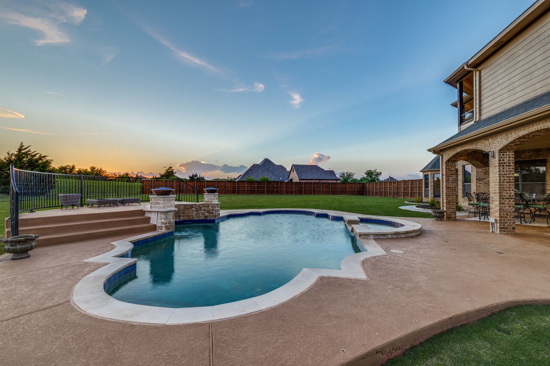 Grand foyer upon entry with elegant curved staircase leading to Juliet balcony and views of cathedral ceilings with stately architecture and detailed millwork throughout. Timeless transitional open floor plan with refreshing natural light. Gourmet kitchen with oversized island, double ovens, and abundant counter space complete with large picture window thoughtfully positioned overlooking the backyard. Custom cabinetry and built-ins throughout. Office featuring coffered ceilings, built in desk and plantation shutters. Retreat-like master suite with fireplace and private pool access. Both game room and media room upstairs fully equipped for any sized gathering with wet bar, and balcony with sweeping views of private lake. Well appointed outdoor living space thoughtfully designed with fireplace, and multiple gathering places. Heated pool with water and light features, spa and much more!