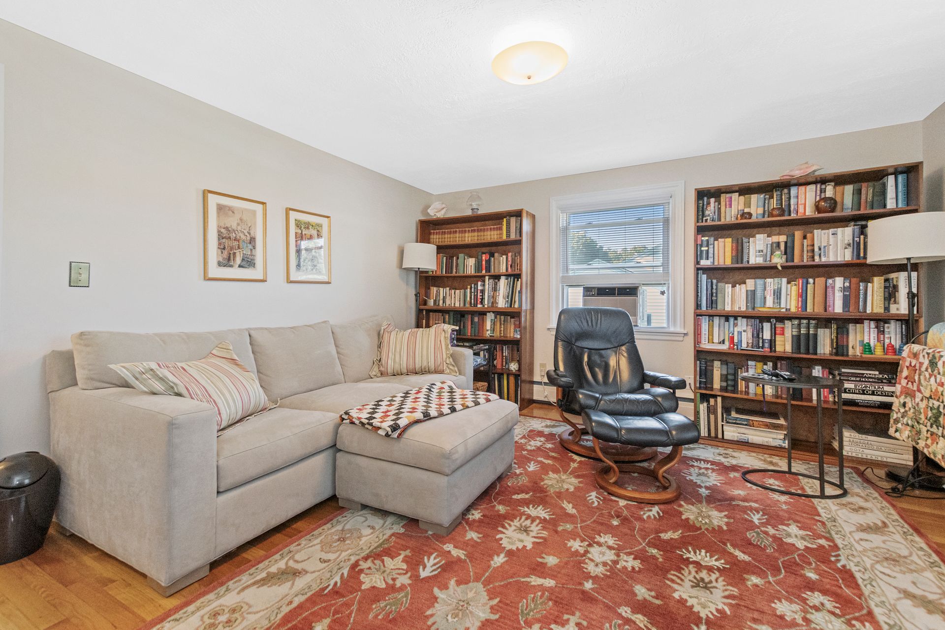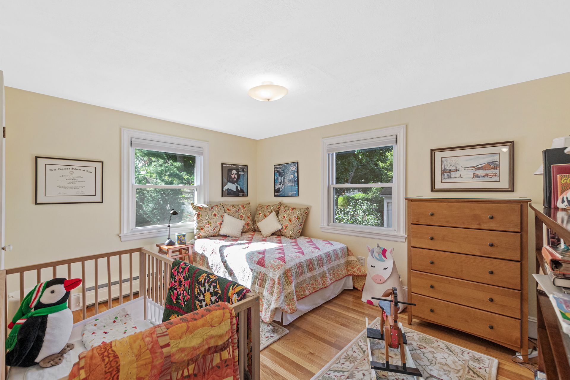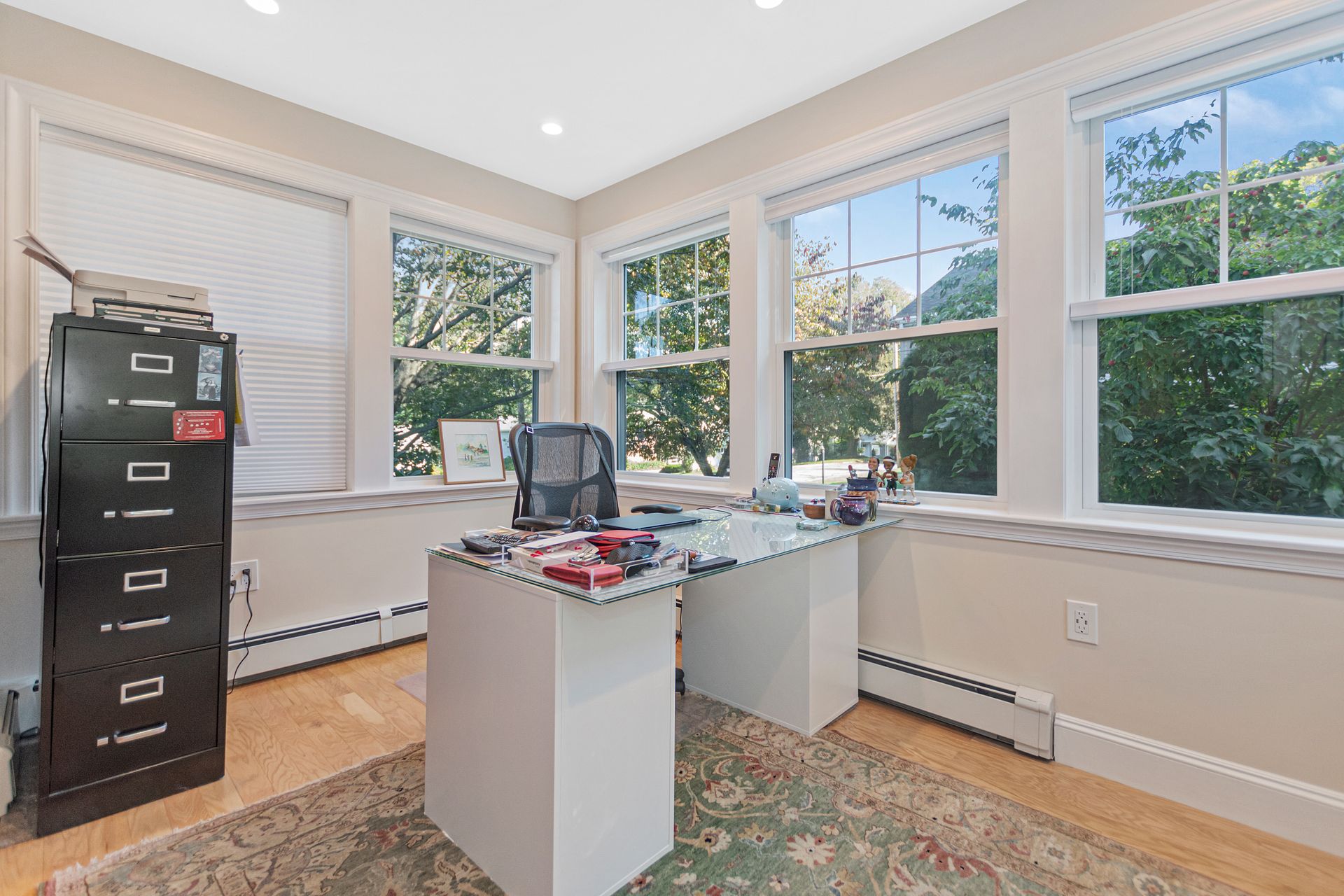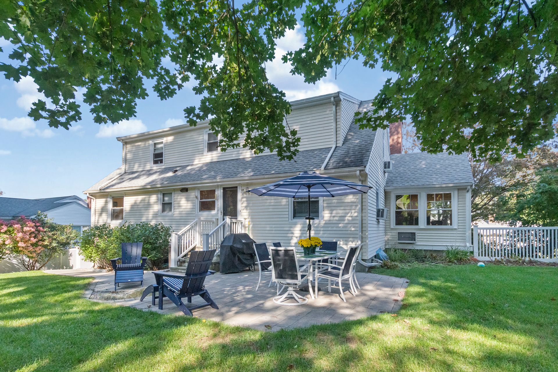 Set on a beautifully landscaped level lot, this traditional cape style home is truly move-in condition and ready for you to enjoy this holiday season. Upon entering, you will sense the pride of ownership found throughout this pristine home. The first floor has a wonderful flow with a lovely fireplaced living room, dining room, an updated eat-in cherry kitchen and a home office filled with natural light. Offering lots of flexibility, you will find two bedrooms and a full bath on the first floor and two very generous bedrooms and an updated full bath on the second floor. Gleaming hardwood floors are found throughout. The finished lower level is a wonderful flex space that offers a fireplaced family room and an additional room ideal for a second office, playroom or home gym. The splendid, fenced yard with beautiful mature plants and a patio is perfect hosting many parties for years to come. Plus, a two-car garage with storage. Conveniently located, close to shopping, bus and schools.