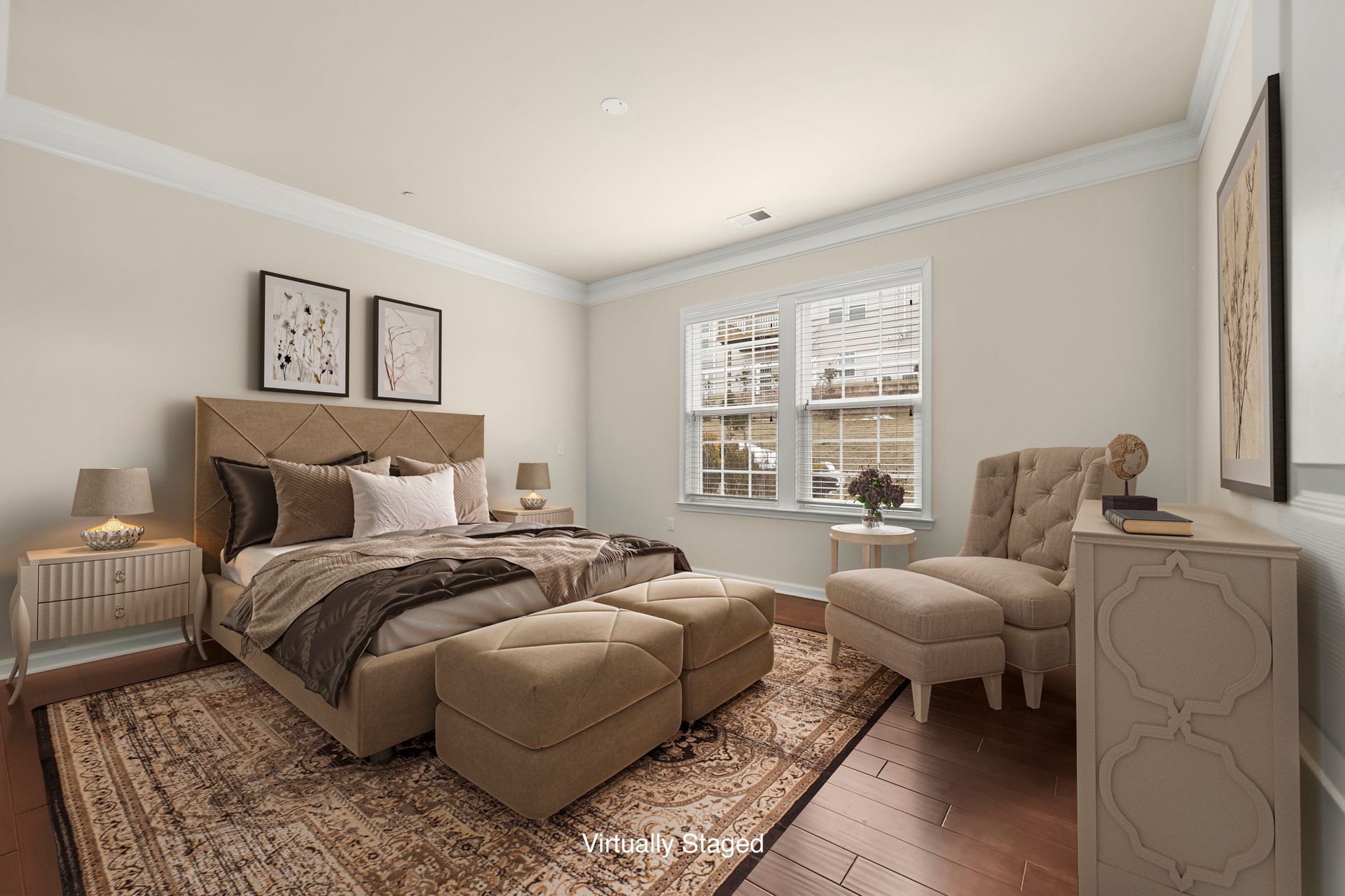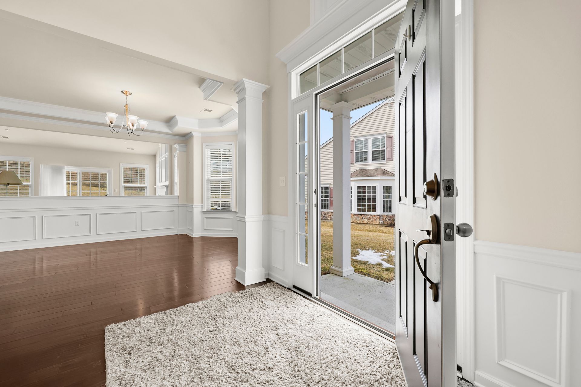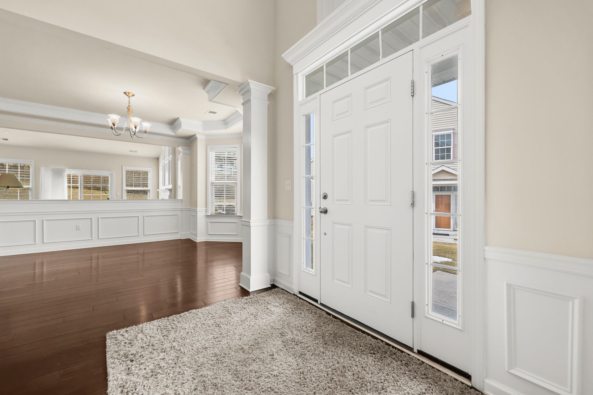 The trim package includes Crown Molding, Columns, Knee wall, picture framing and recessed lighting. Lots of windows and lots of closets, natural gas Heat, PEX manifold system and fire sprinkler system, two car garage.
