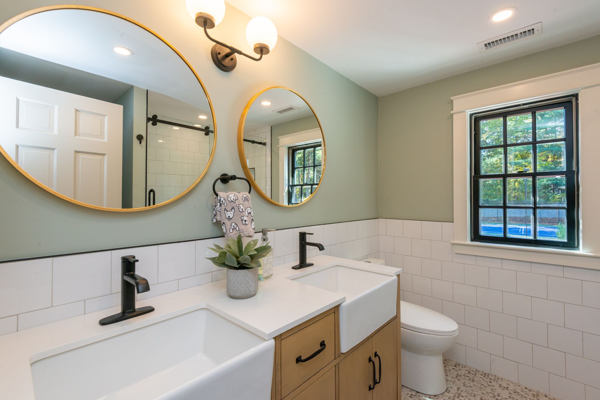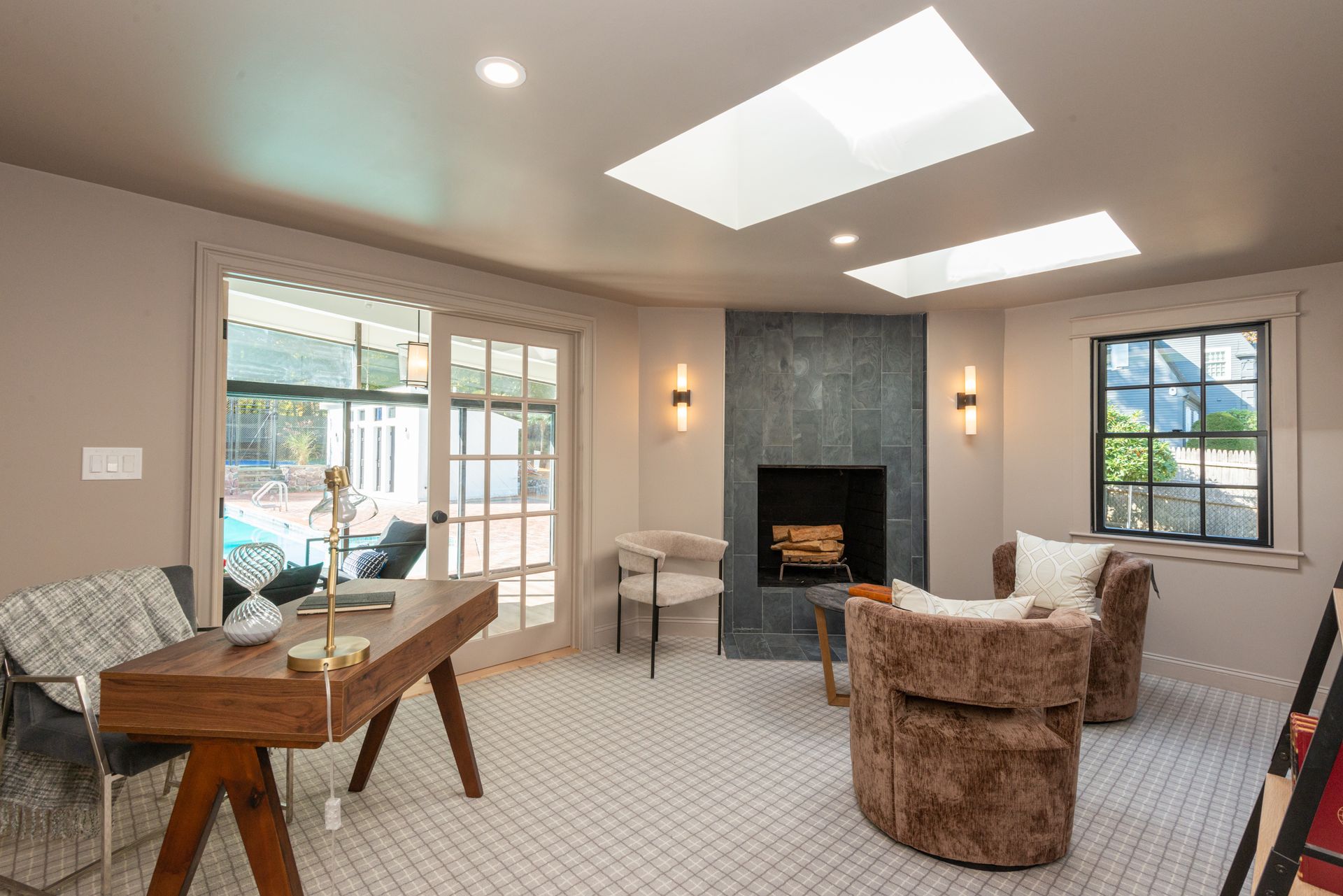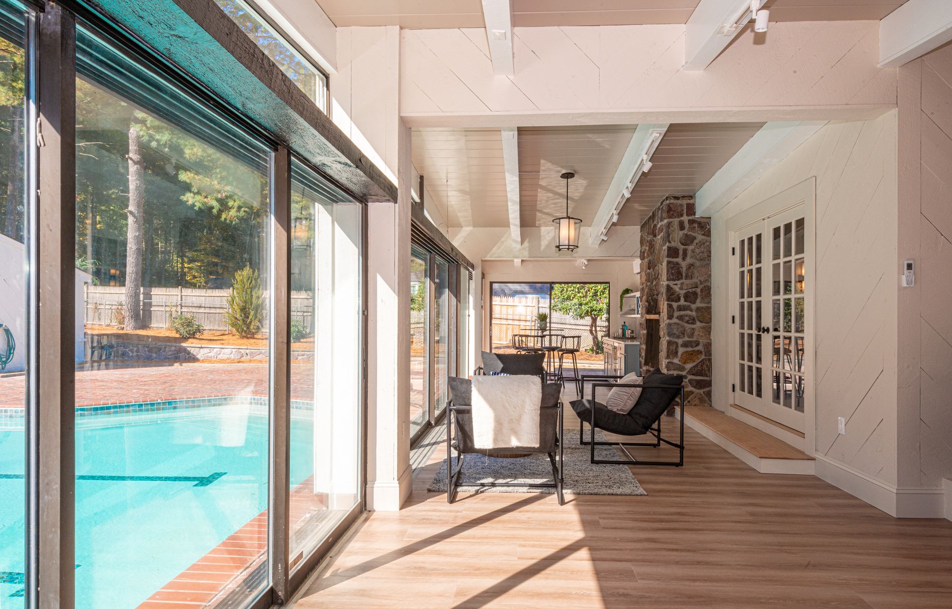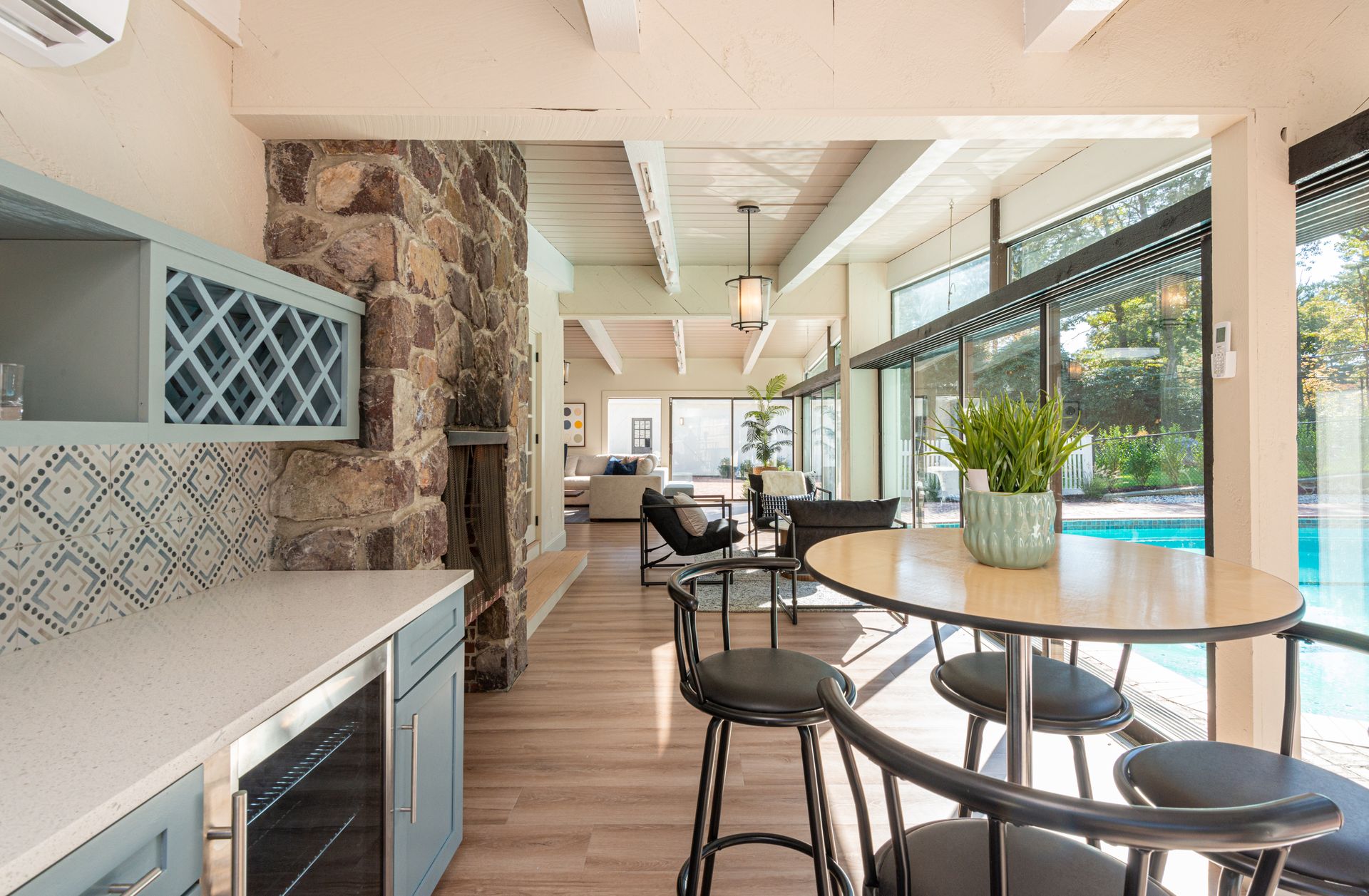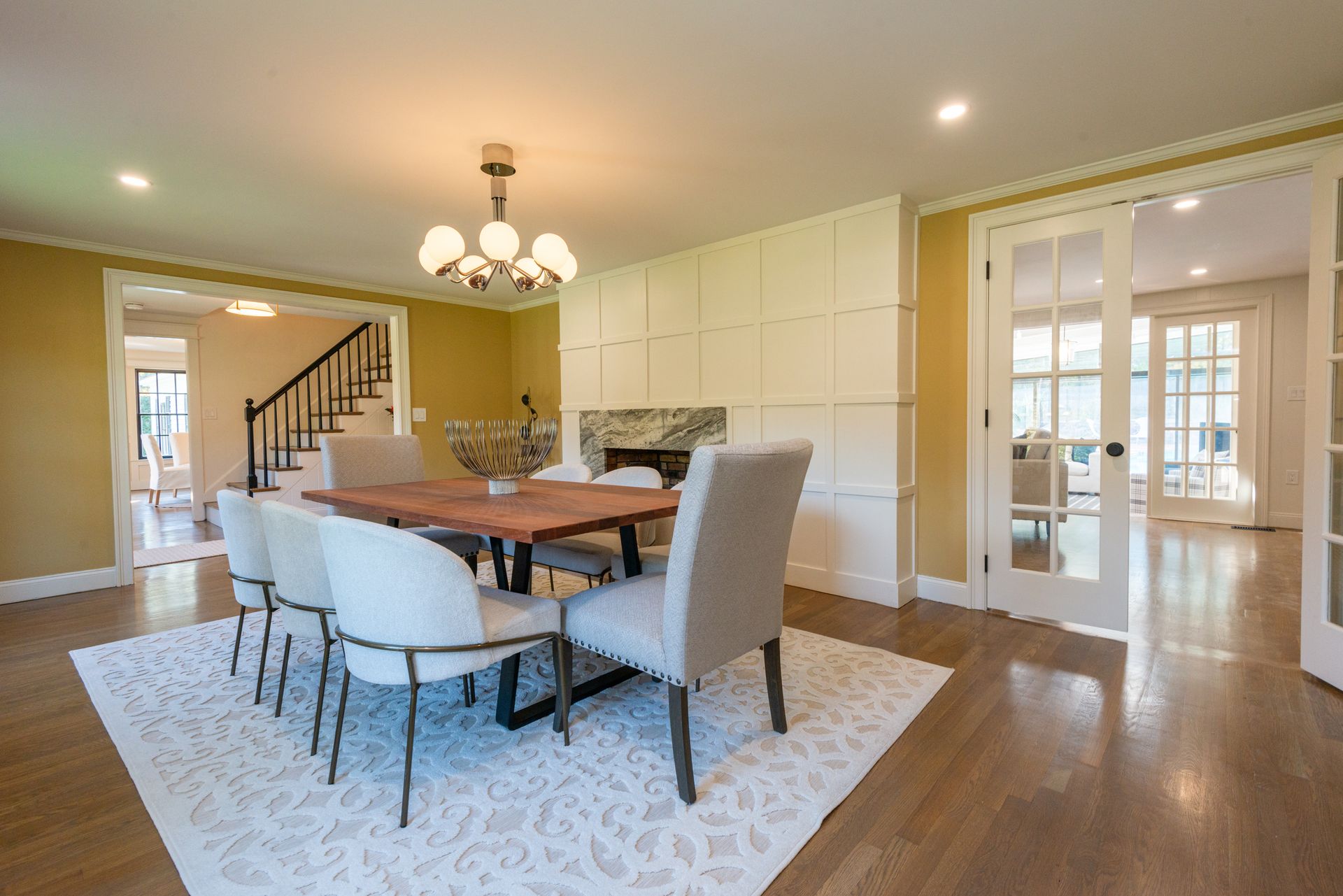 The interior of the home is equally impressive, with a new interior trim package and custom kitchen featuring high-end appliances such as a 42” fridge, Thermador 36” gas pro-series range, and a wine cooler. The countertops are Caesarstone, adding a touch of elegance to the space. Additionally, there are 4.5 new bathrooms, all featuring marble and porcelain tile, heated floors, and a soaking tub in the primary bathroom wet room. The Kohler plumbing fixtures throughout are both functional and stylish.