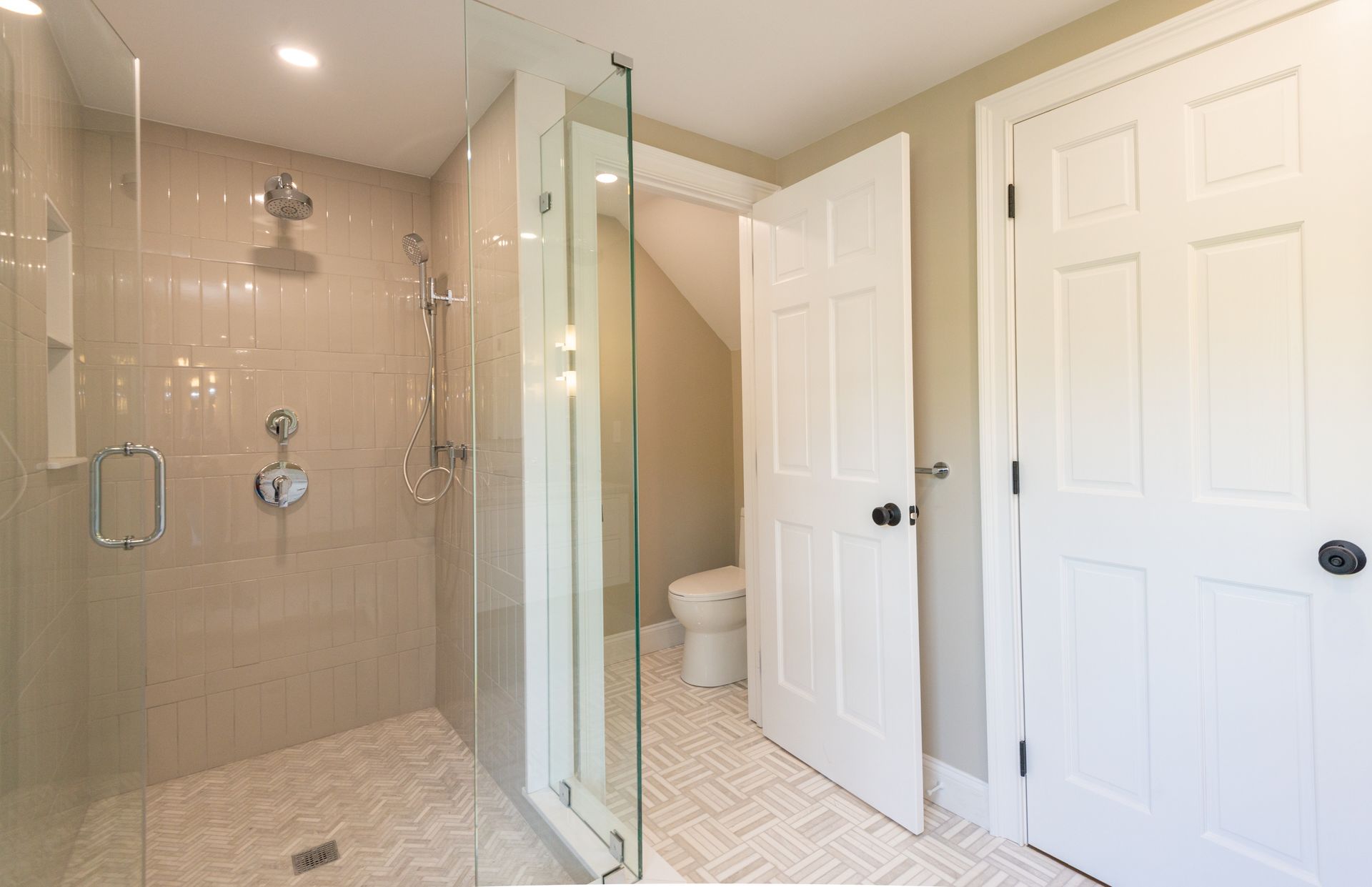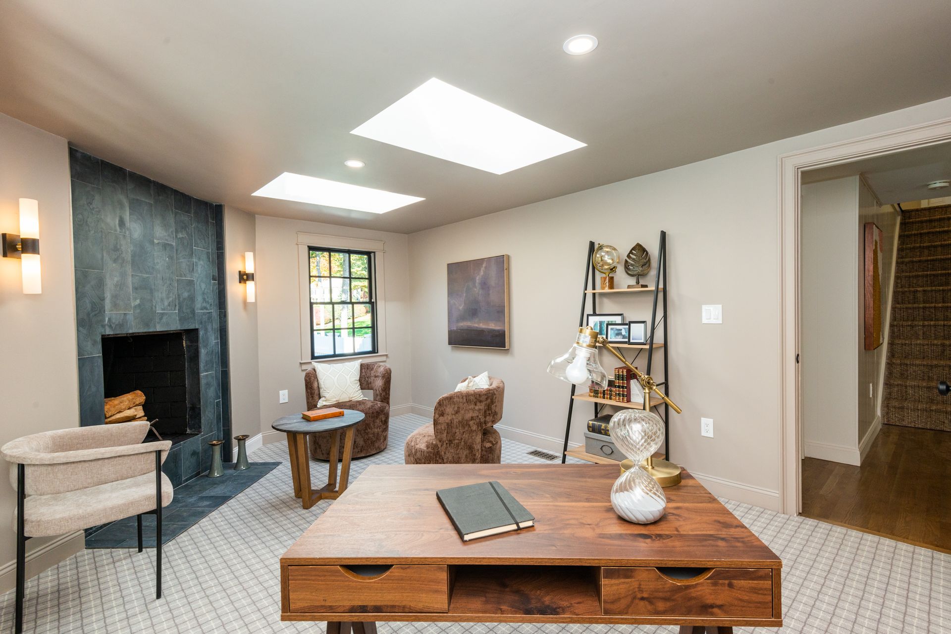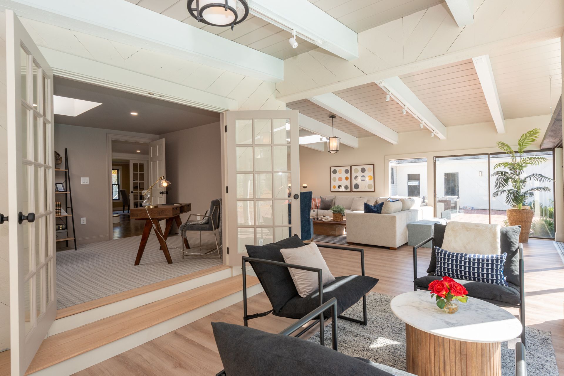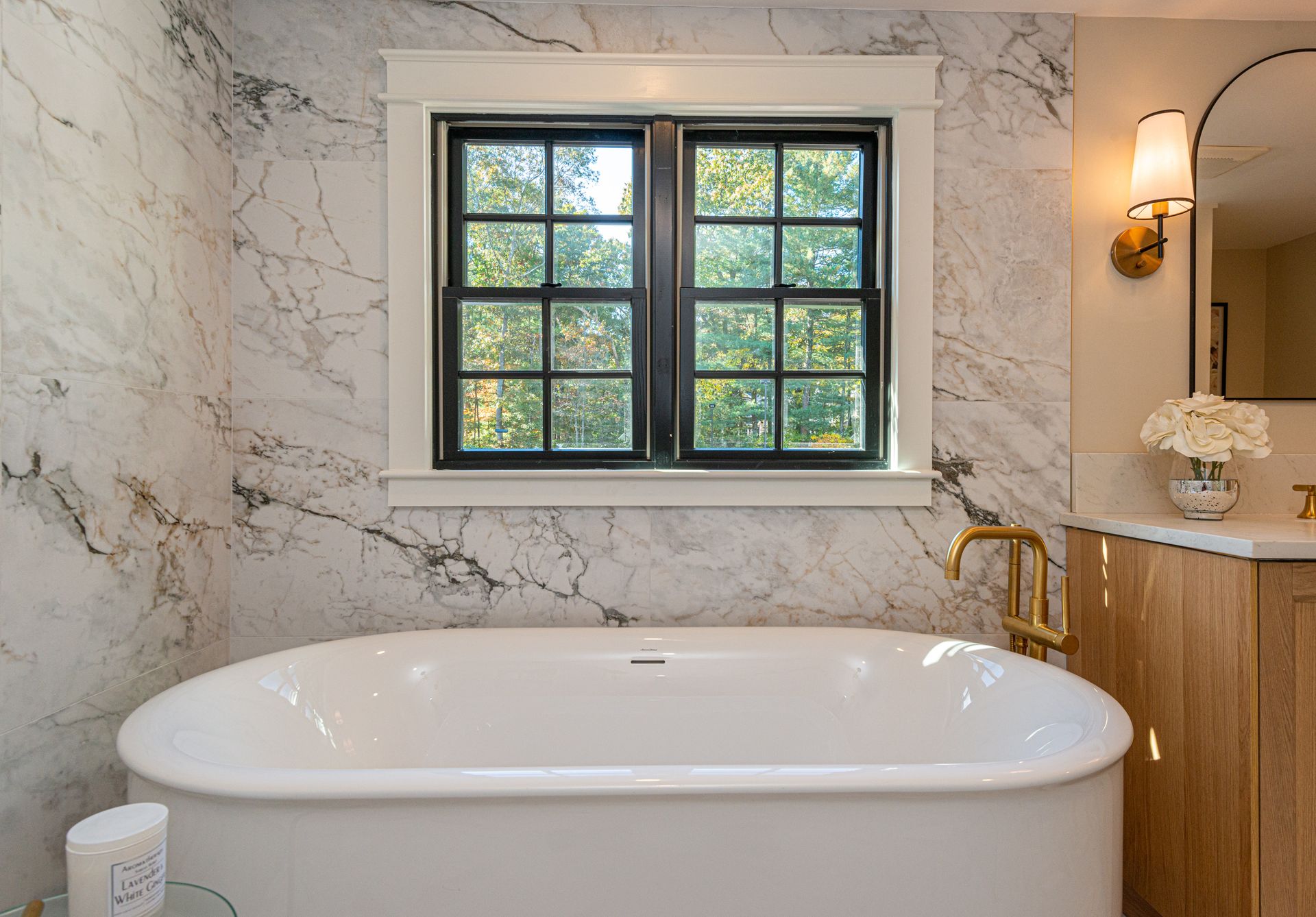 The interior of the home is equally impressive, with a new interior trim package and custom kitchen featuring high-end appliances such as a 42” fridge, Thermador 36” gas pro-series range, and a wine cooler. The countertops are Caesarstone, adding a touch of elegance to the space. Additionally, there are 4.5 new bathrooms, all featuring marble and porcelain tile, heated floors, and a soaking tub in the primary bathroom wet room. The Kohler plumbing fixtures throughout are both functional and stylish.