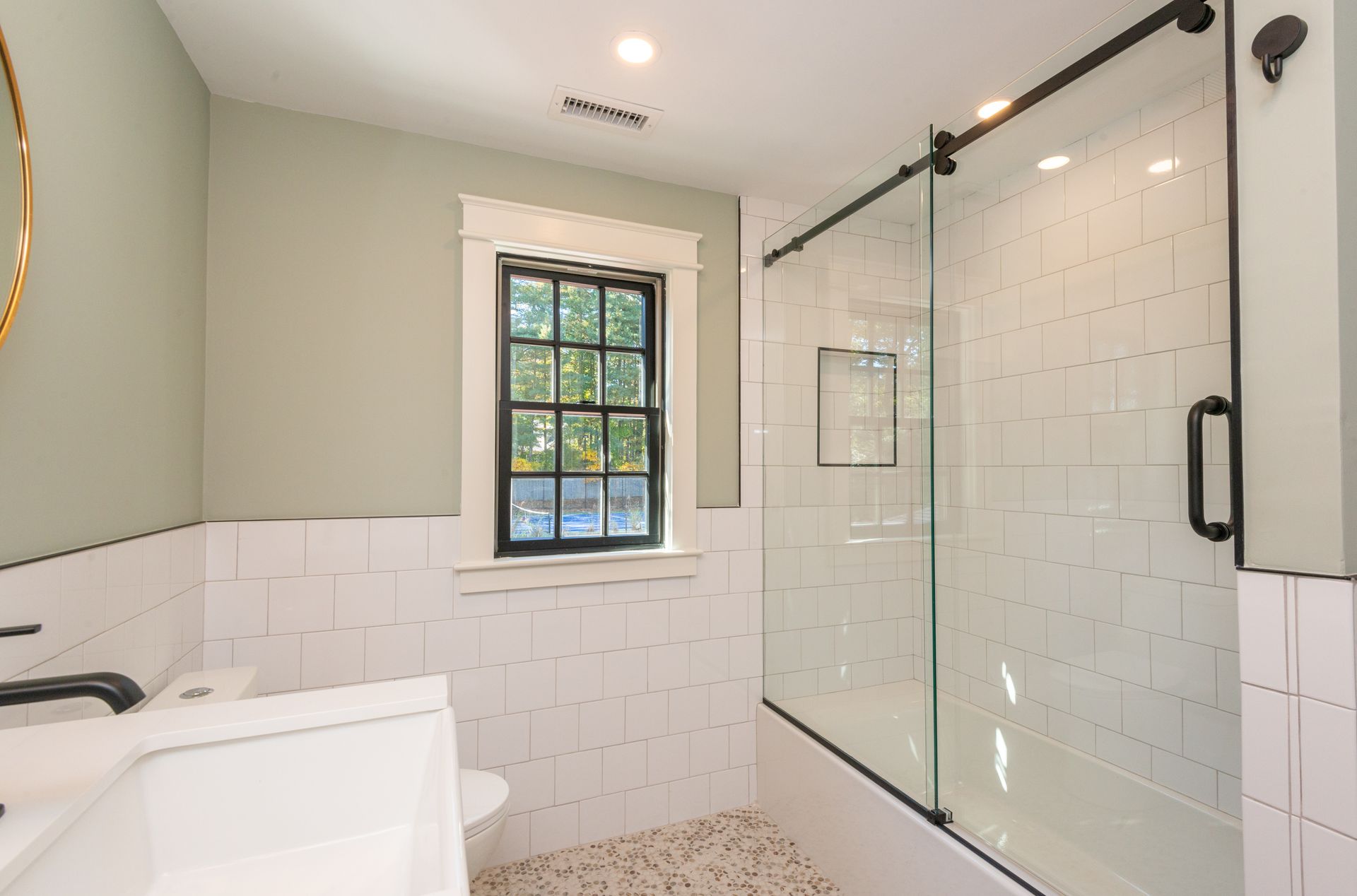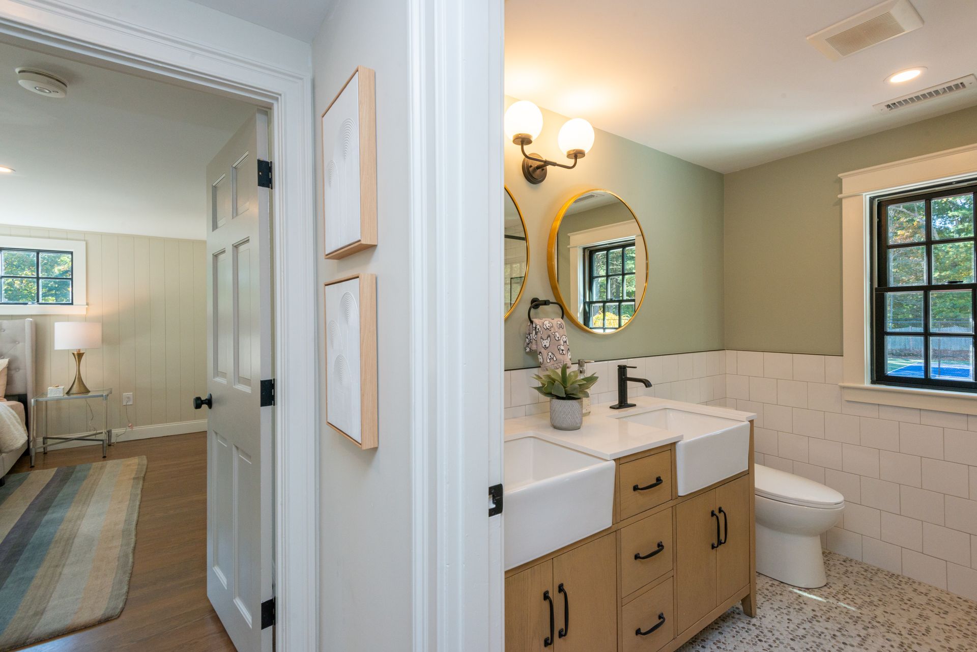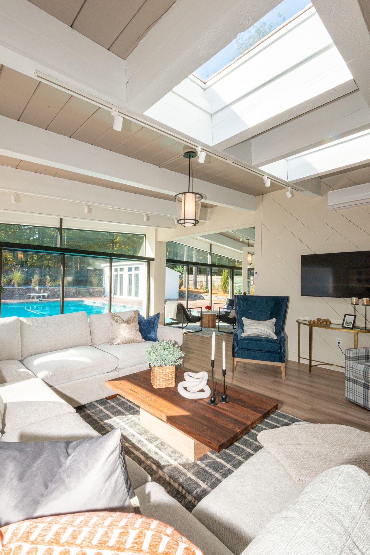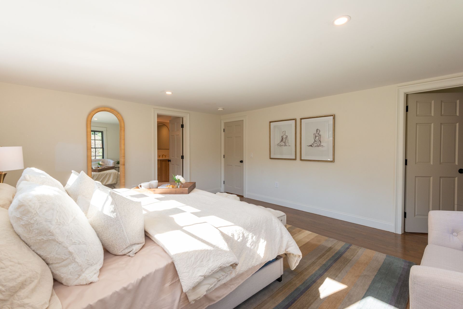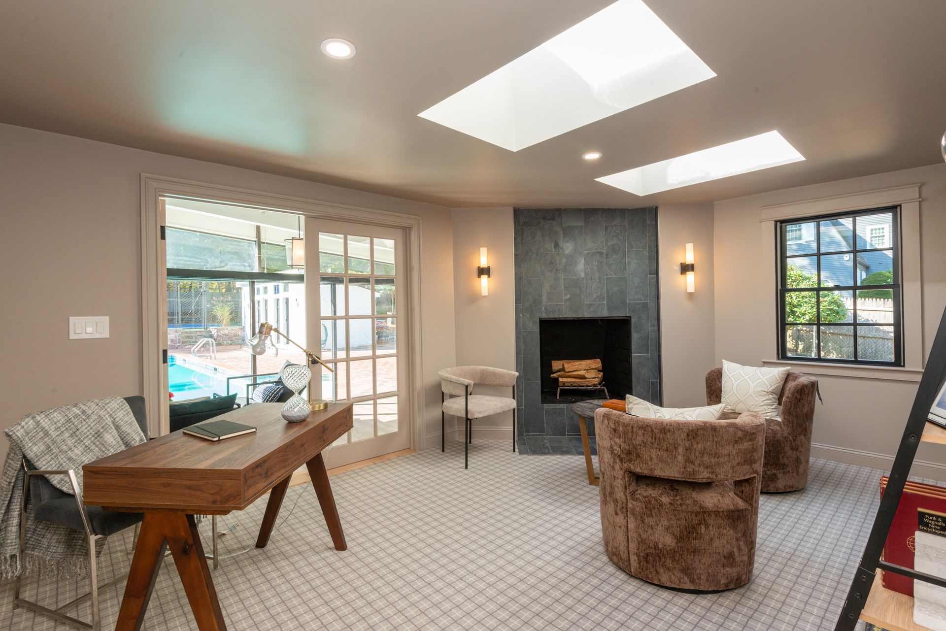 The interior of the home is equally impressive, with a new interior trim package and custom kitchen featuring high-end appliances such as a 42” fridge, Thermador 36” gas pro-series range, and a wine cooler. The countertops are Caesarstone, adding a touch of elegance to the space. Additionally, there are 4.5 new bathrooms, all featuring marble and porcelain tile, heated floors, and a soaking tub in the primary bathroom wet room. The Kohler plumbing fixtures throughout are both functional and stylish.