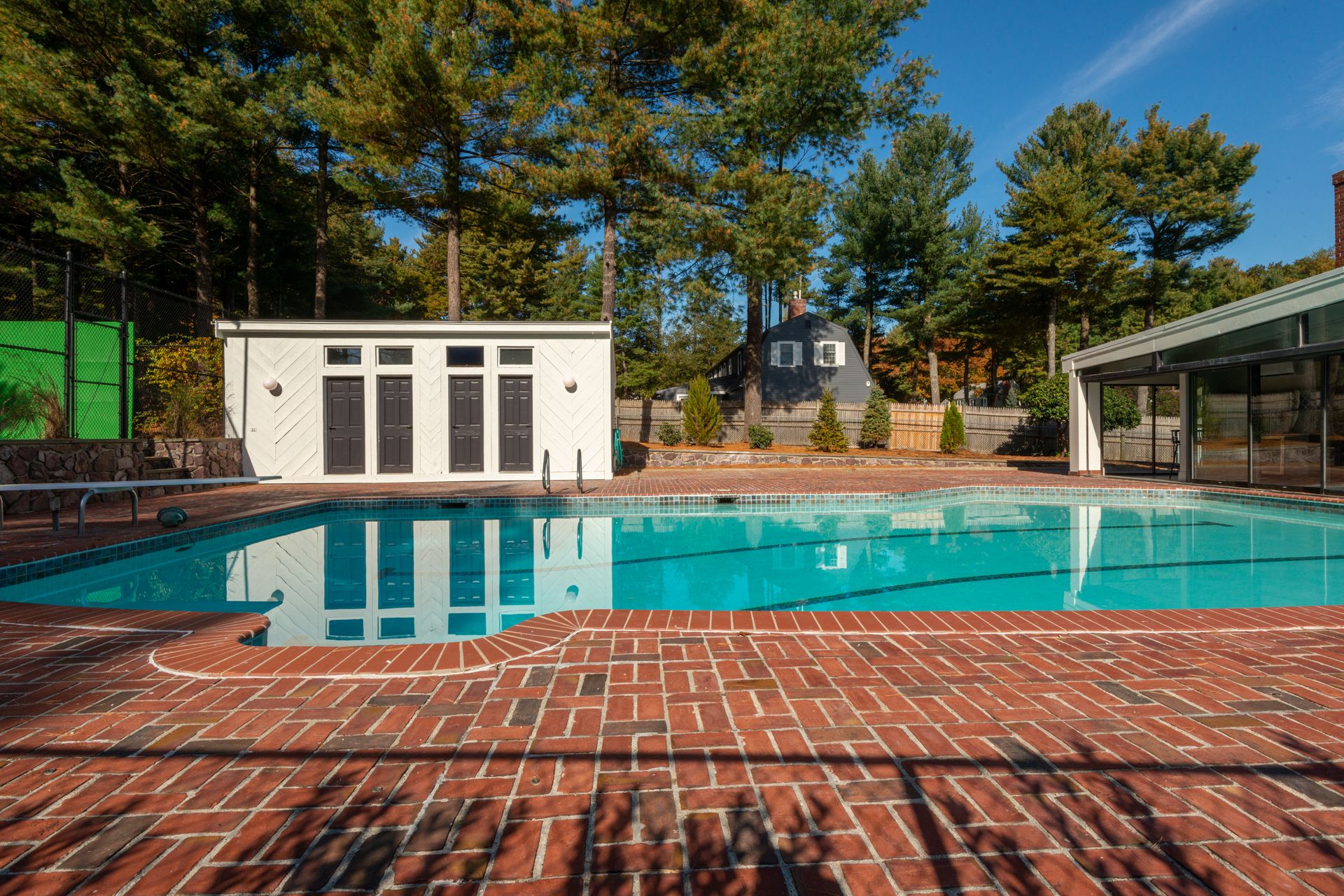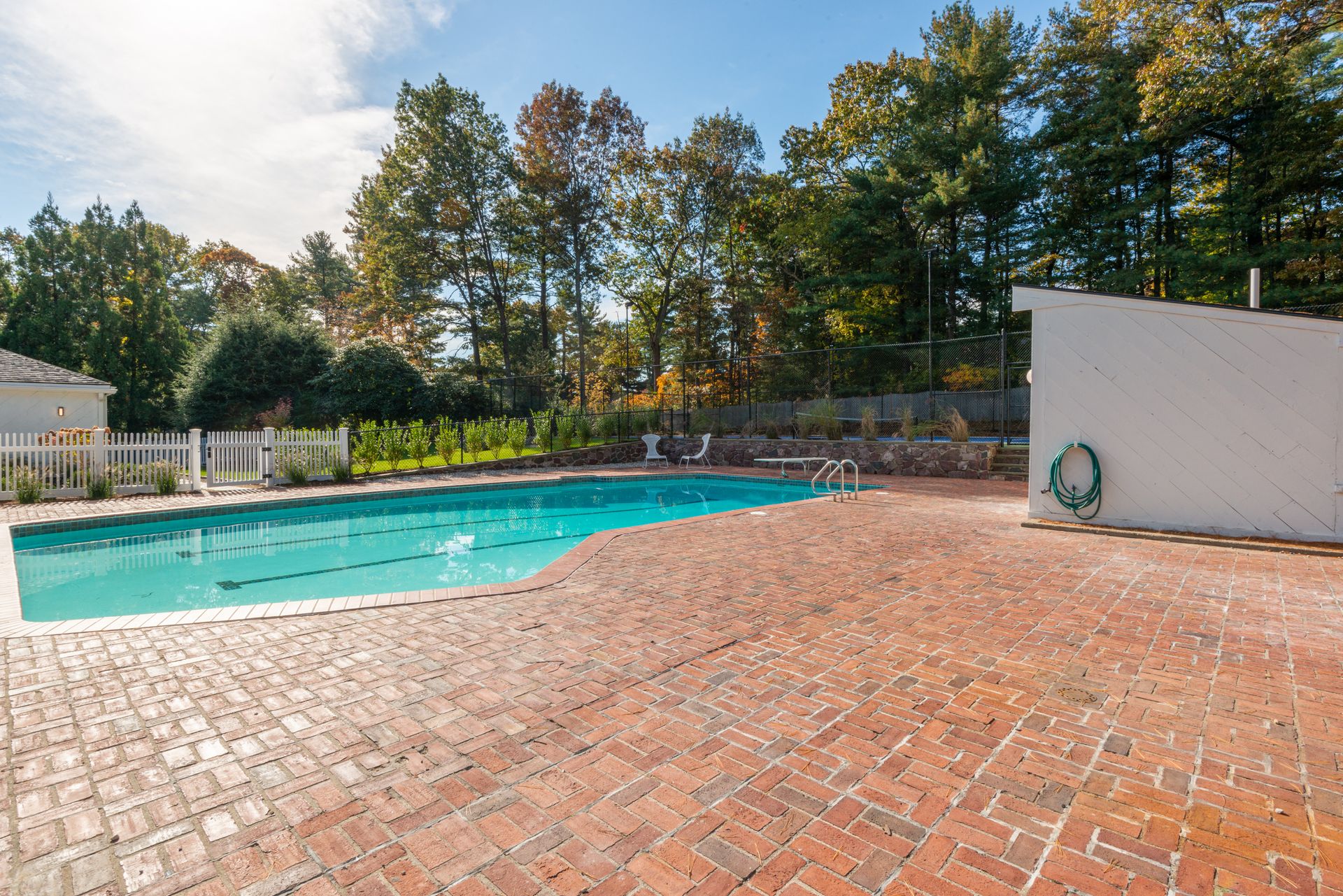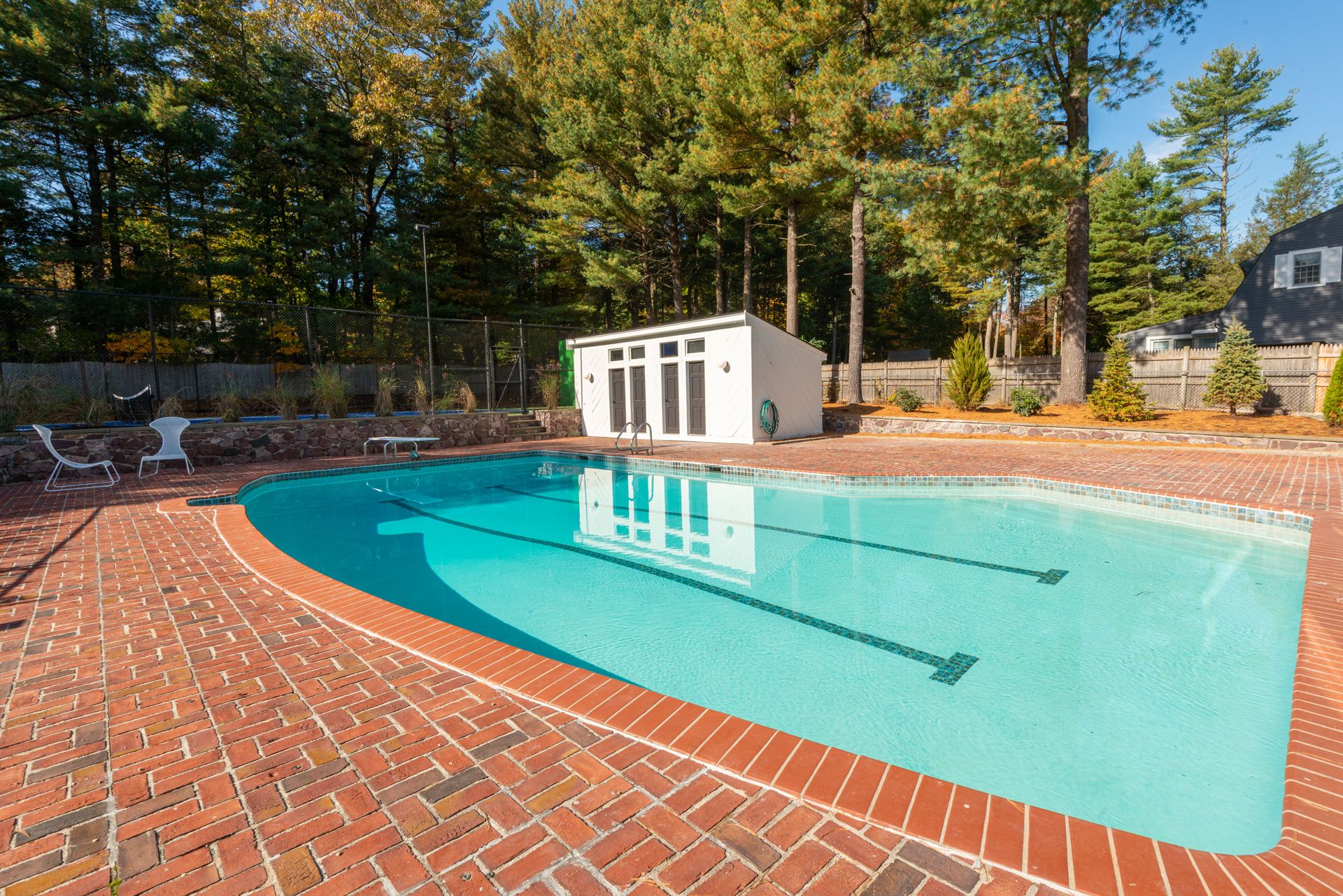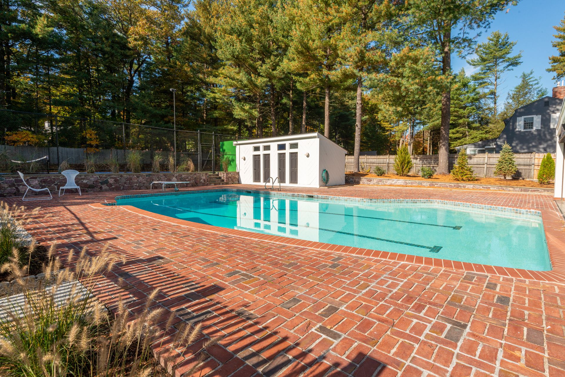 The exterior of the home features a fully refurbished tennis and pickleball court and a 30’ x 50’ heated pool with a cabana that includes a large full bathroom and changing rooms. There are oversized brick patio areas, perfect for entertaining guests. The backyard is fully fenced and sodded, making it ideal for kids and pets. The exterior has also been repainted, and new landscaping has been added in many areas, along with a new irrigation system and fencing upgrades. The property also features a new driveway and a four-car garage, as well as extensive clean storage areas.