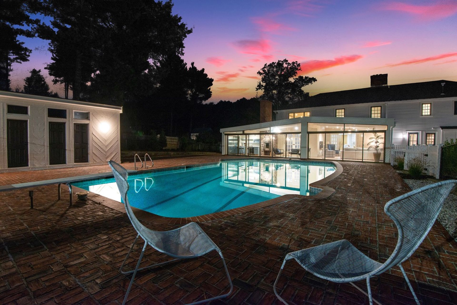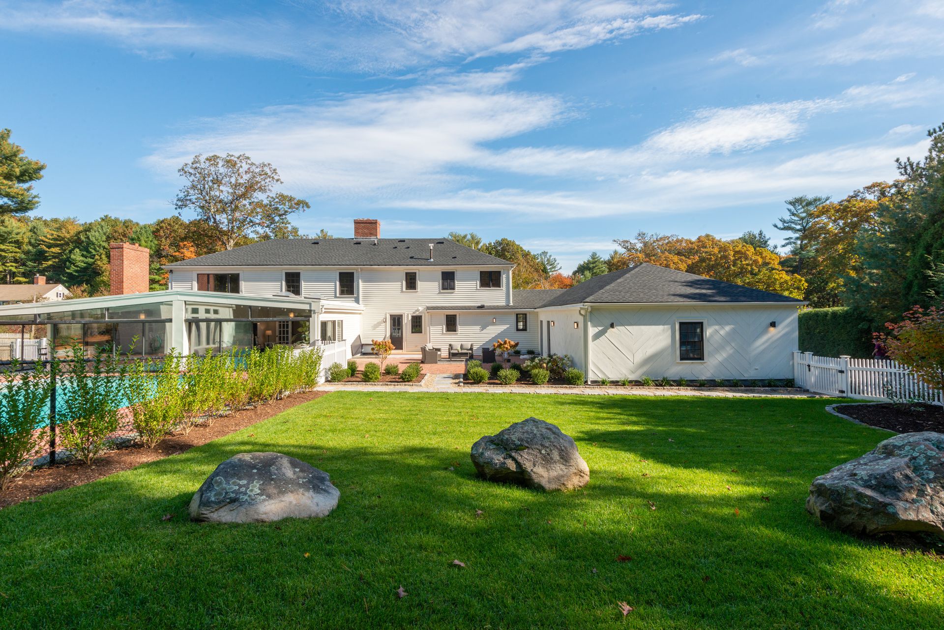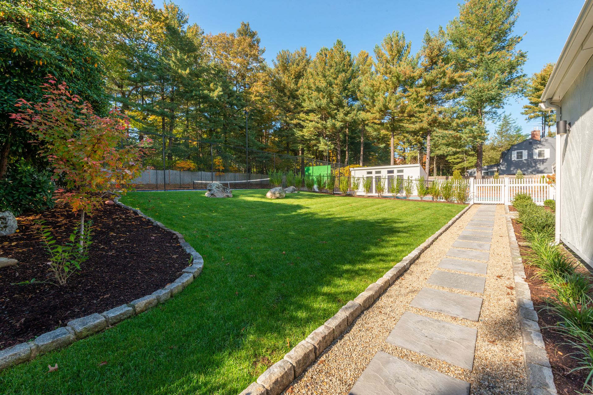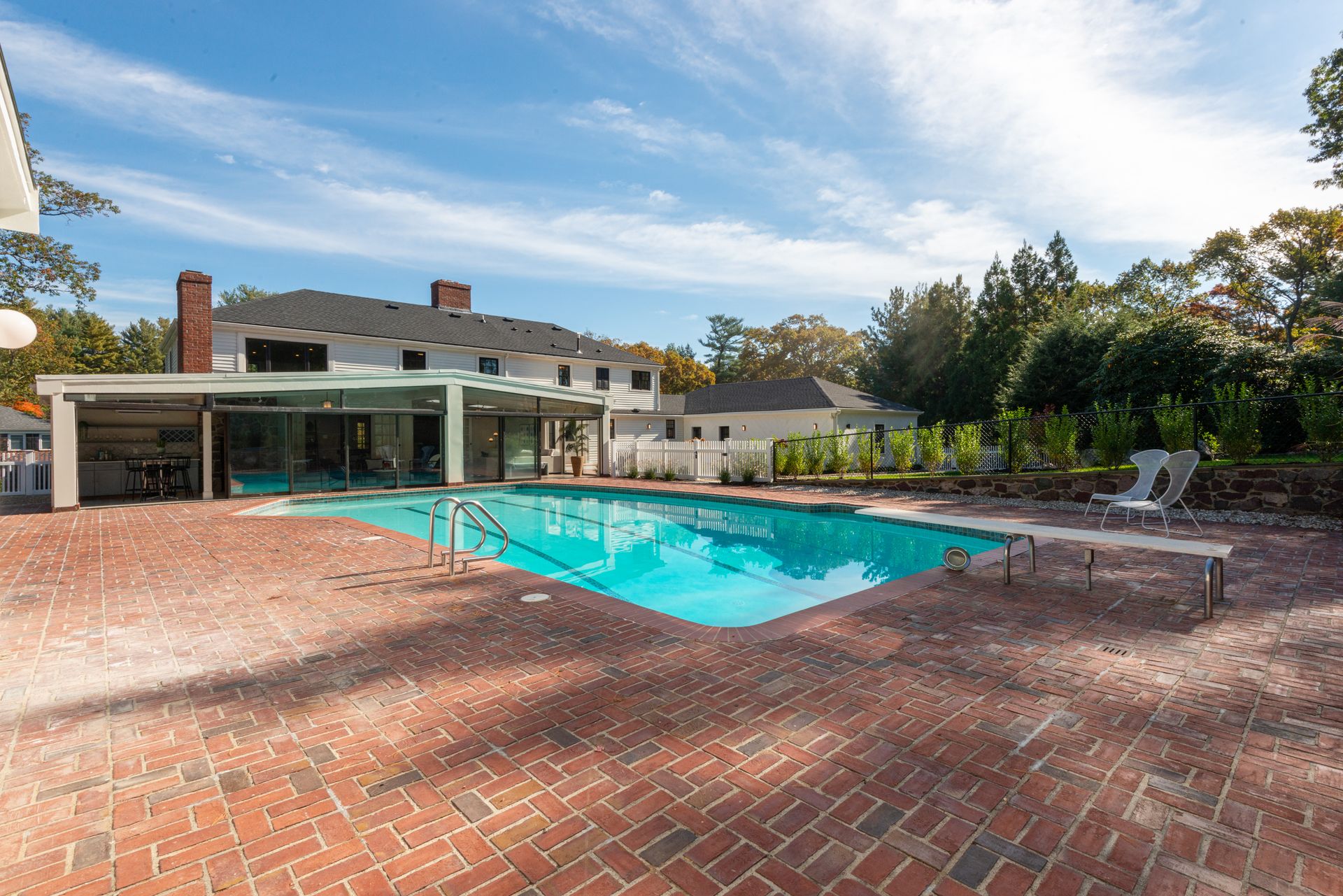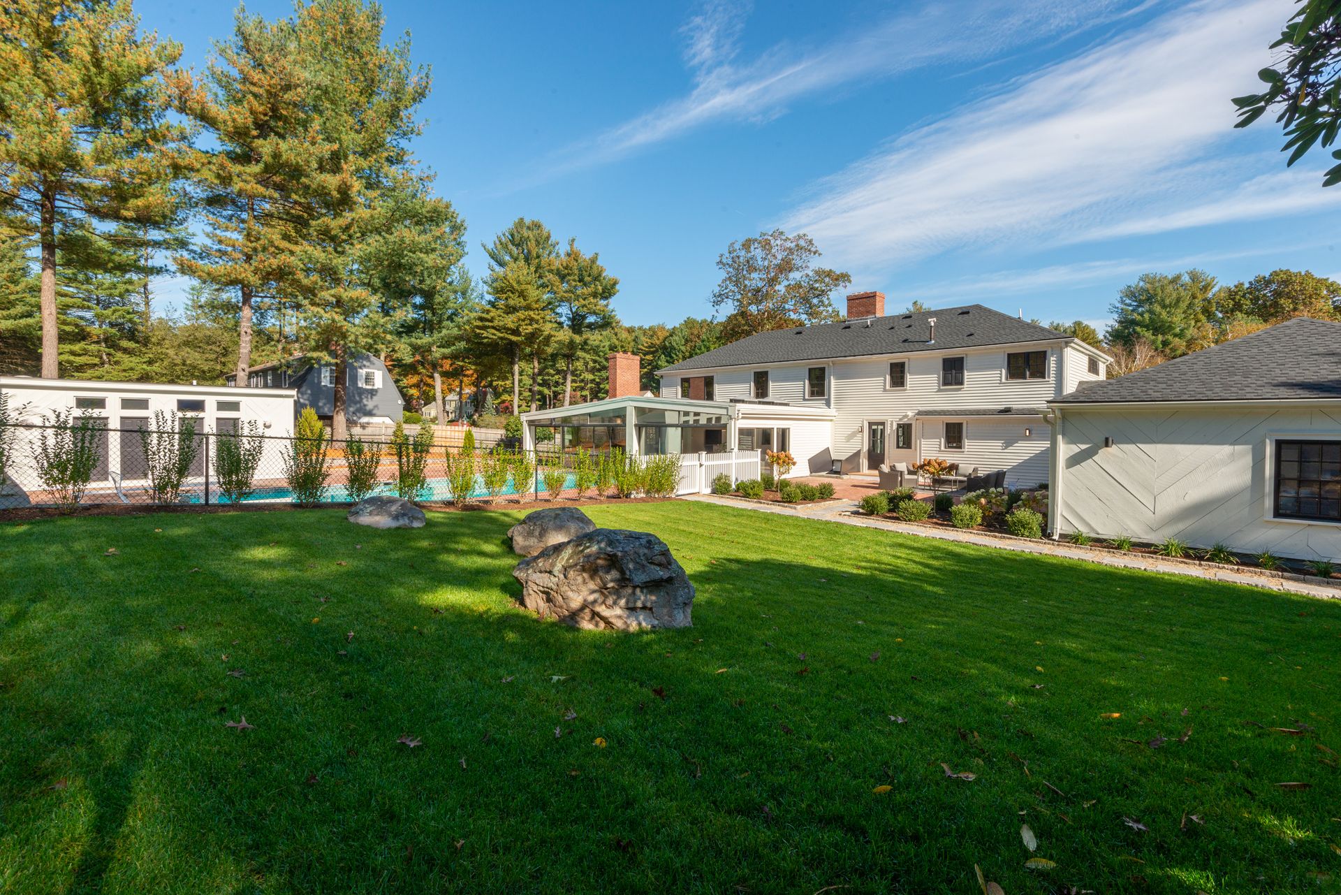 The exterior of the home features a fully refurbished tennis and pickleball court and a 30’ x 50’ heated pool with a cabana that includes a large full bathroom and changing rooms. There are oversized brick patio areas, perfect for entertaining guests. The backyard is fully fenced and sodded, making it ideal for kids and pets. The exterior has also been repainted, and new landscaping has been added in many areas, along with a new irrigation system and fencing upgrades. The property also features a new driveway and a four-car garage, as well as extensive clean storage areas.