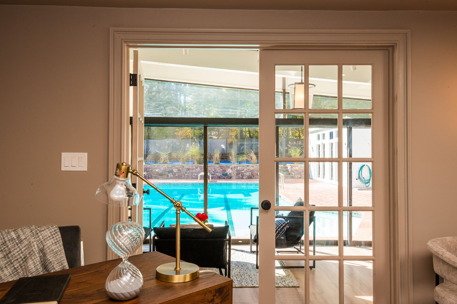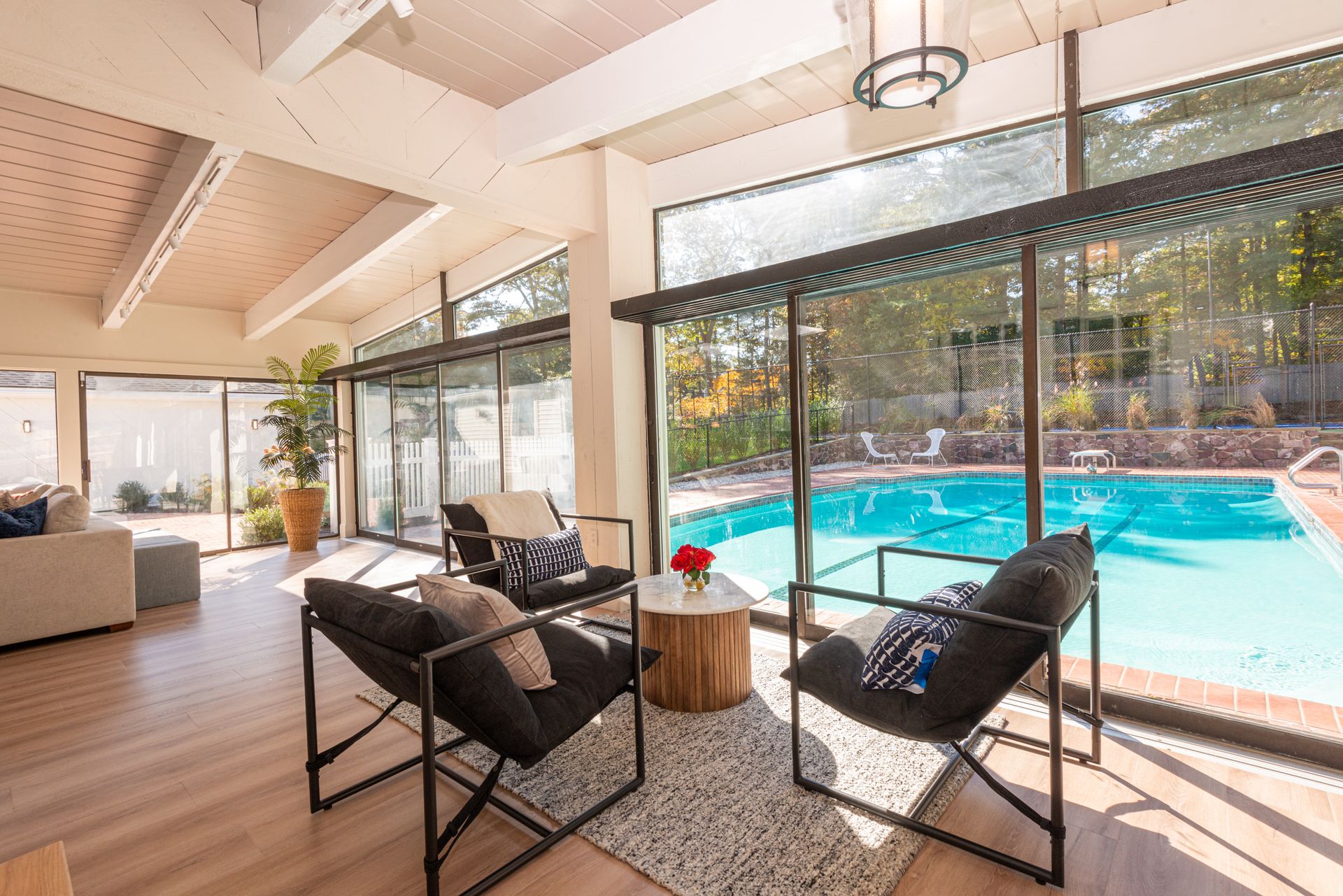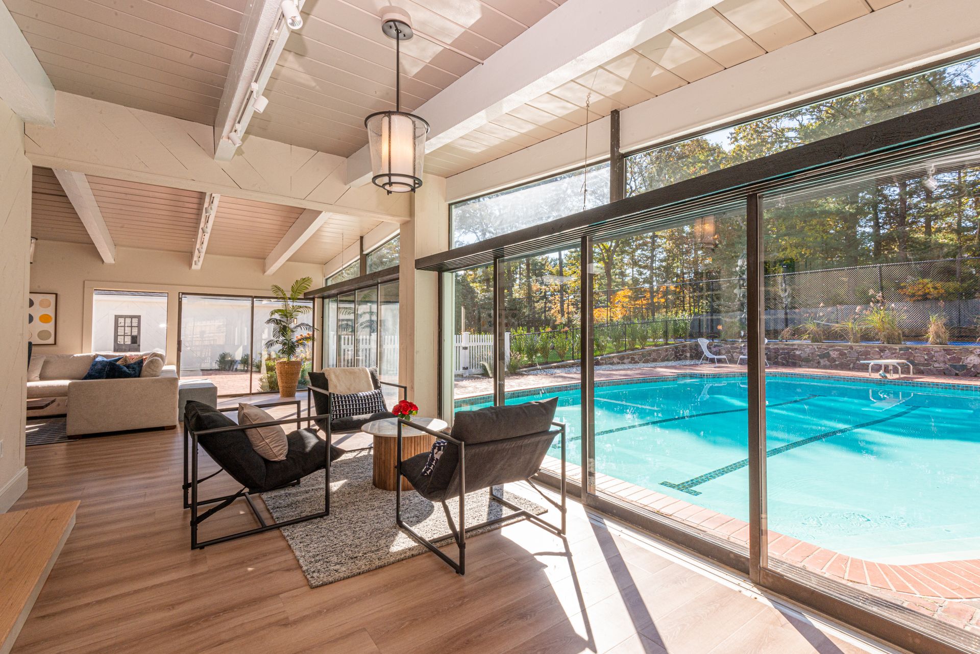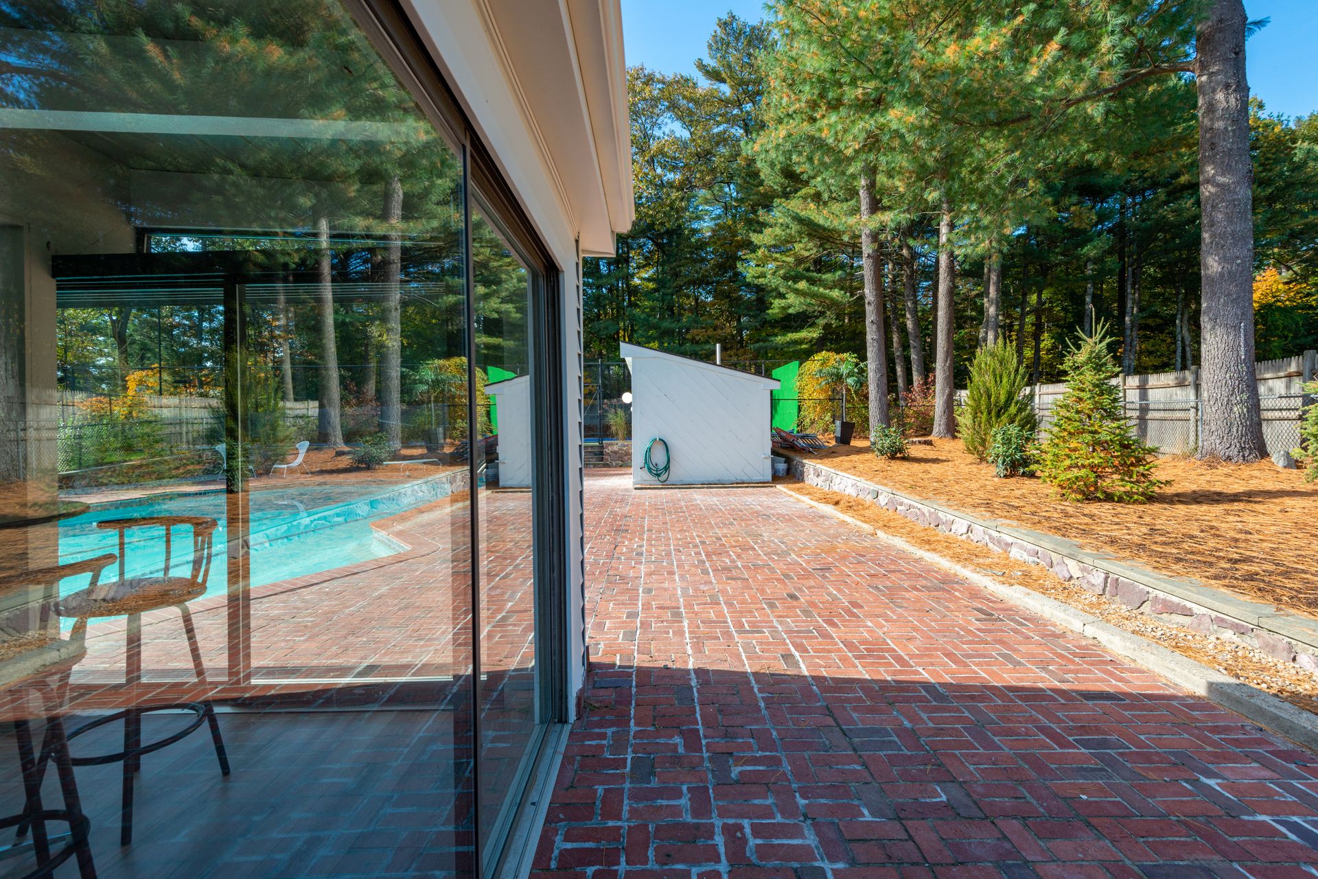 The exterior of the home features a fully refurbished tennis and pickleball court and a 30’ x 50’ heated pool with a cabana that includes a large full bathroom and changing rooms. There are oversized brick patio areas, perfect for entertaining guests. The backyard is fully fenced and sodded, making it ideal for kids and pets. The exterior has also been repainted, and new landscaping has been added in many areas, along with a new irrigation system and fencing upgrades. The property also features a new driveway and a four-car garage, as well as extensive clean storage areas.