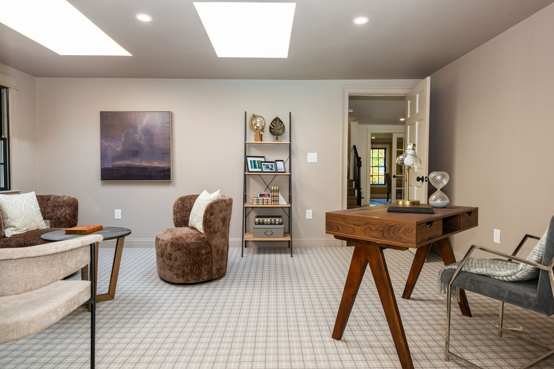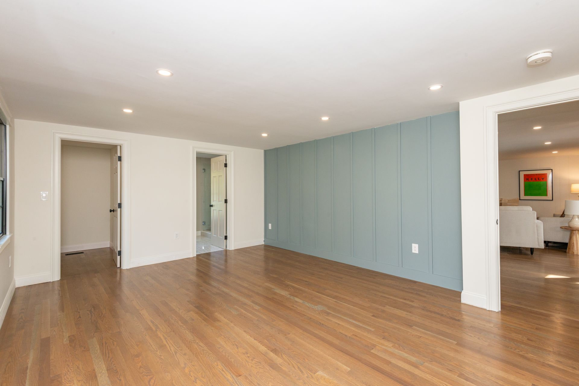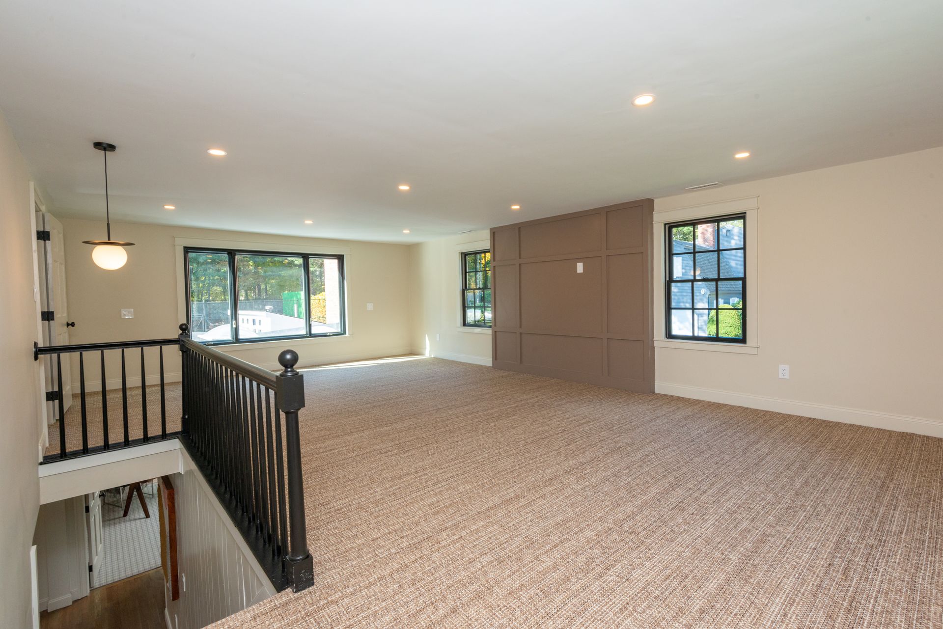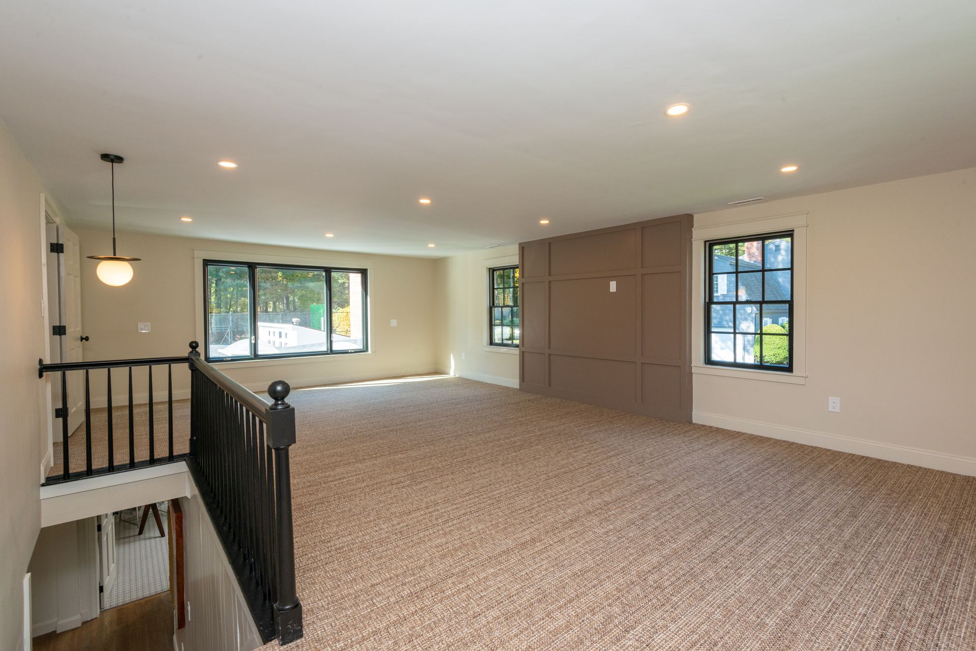 Other interior features include herringbone oak flooring in the foyer, custom millwork, and four fireplaces. The first floor study boasts a fireplace, while the second floor primary bedroom suite has a beautiful bathroom and an amazing custom closet system. There is also an option for a first-floor primary bedroom. The living areas are expansive and include a formal living or dining room, family room, Great room, huge second-floor family room, and a basement playroom or exercise room.
