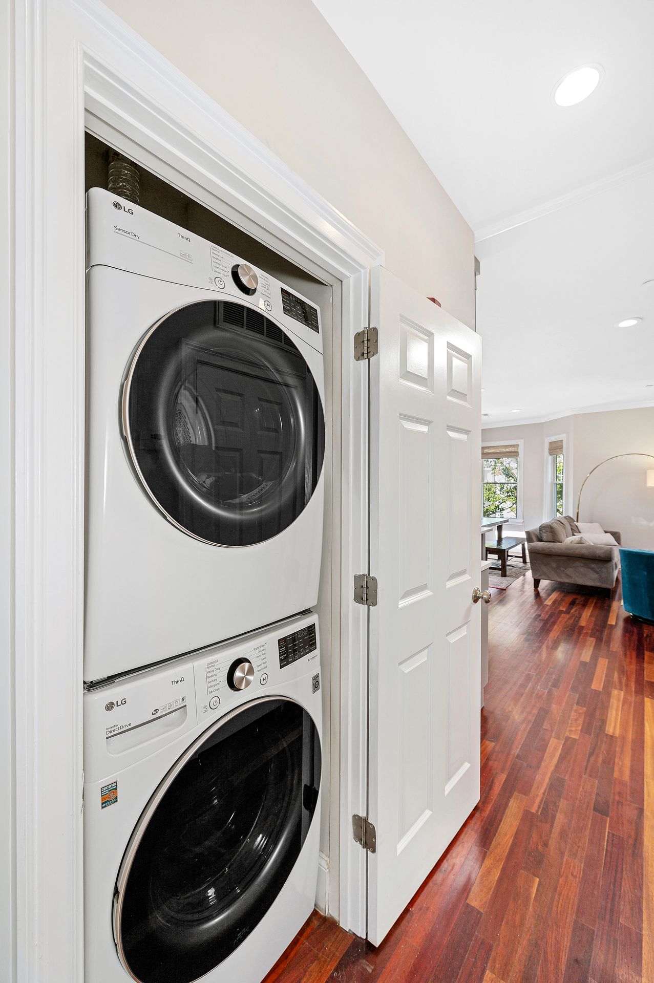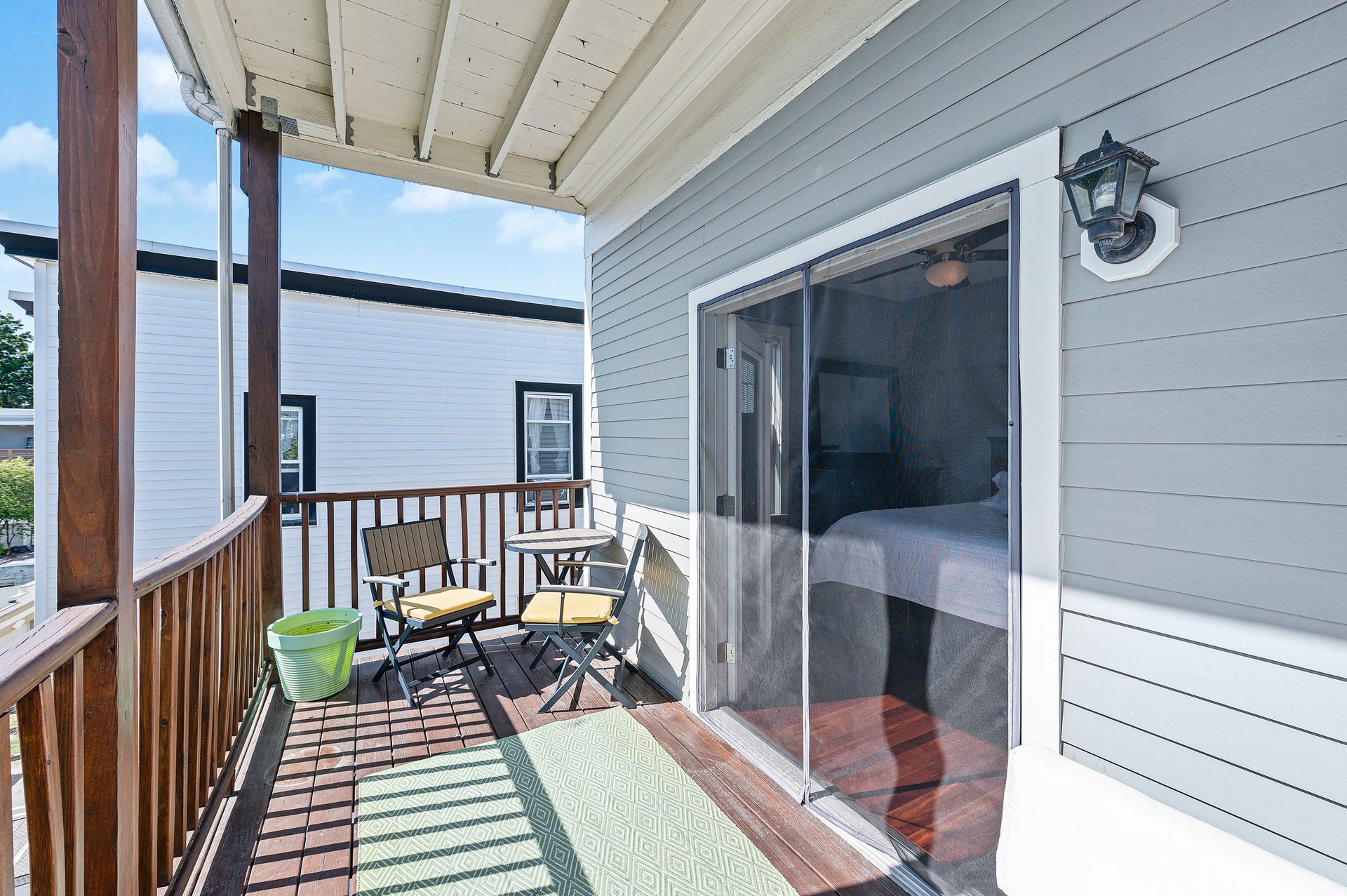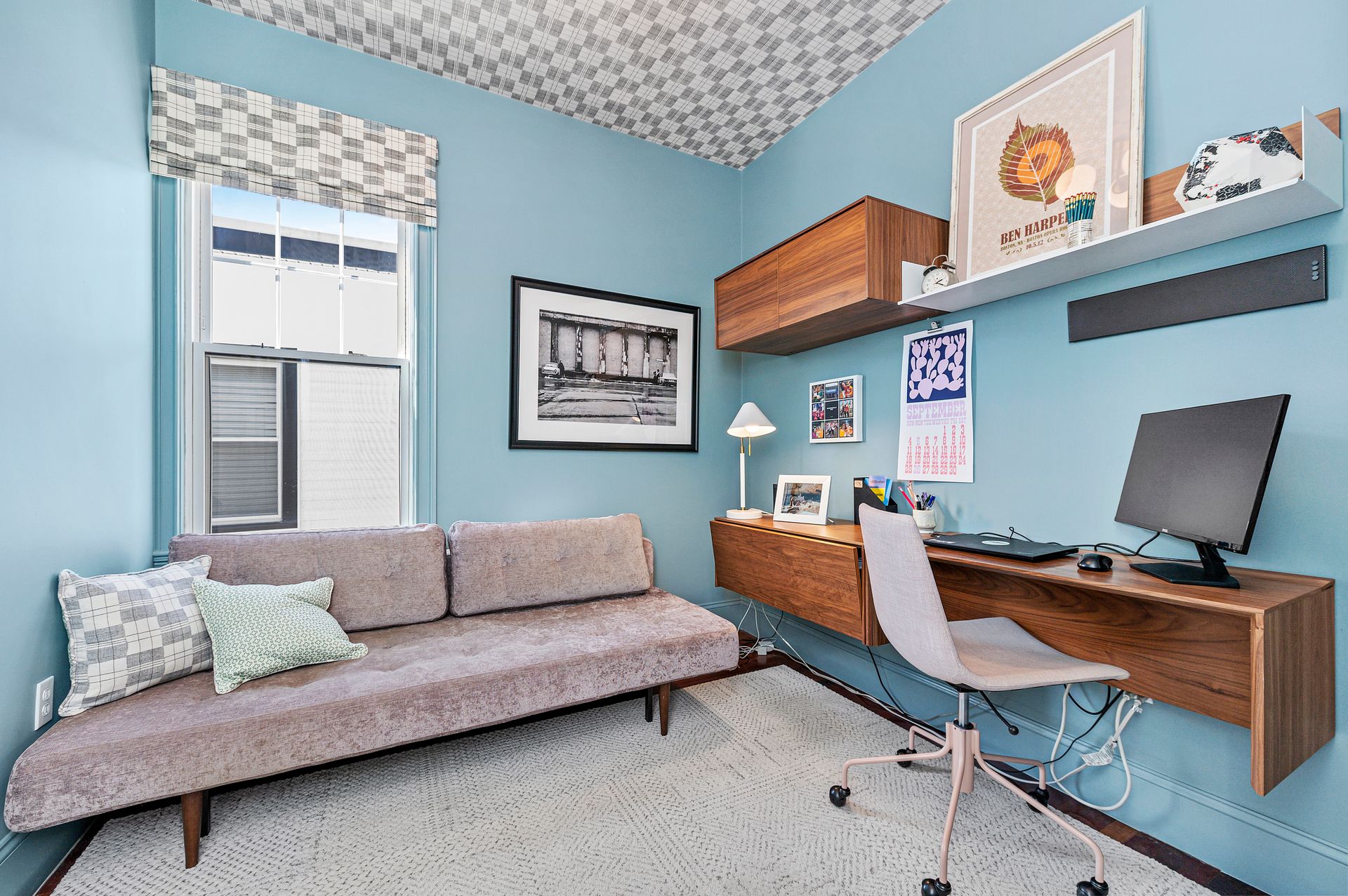 King-size primary bedroom has a custom designed walk-in closet and beautiful French doors to the private back deck. Flexible pro-designed bedroom/office/guest room. One and one-half renovated bathrooms. Roof access and deeded permission for roof deck. Easy access lockable storage area, and large shared fenced quiet patio. Pet-friendly (with conditions).