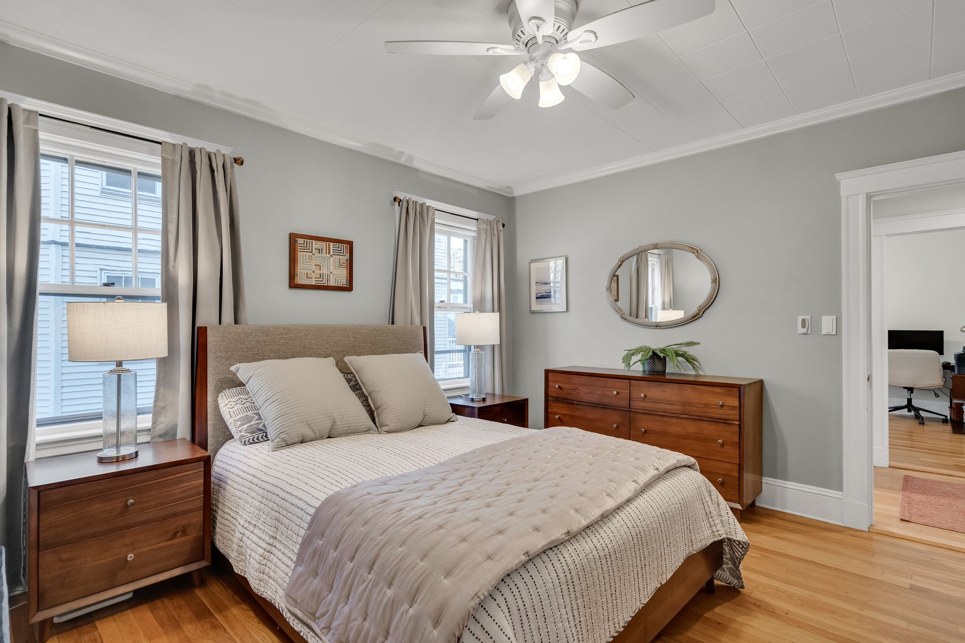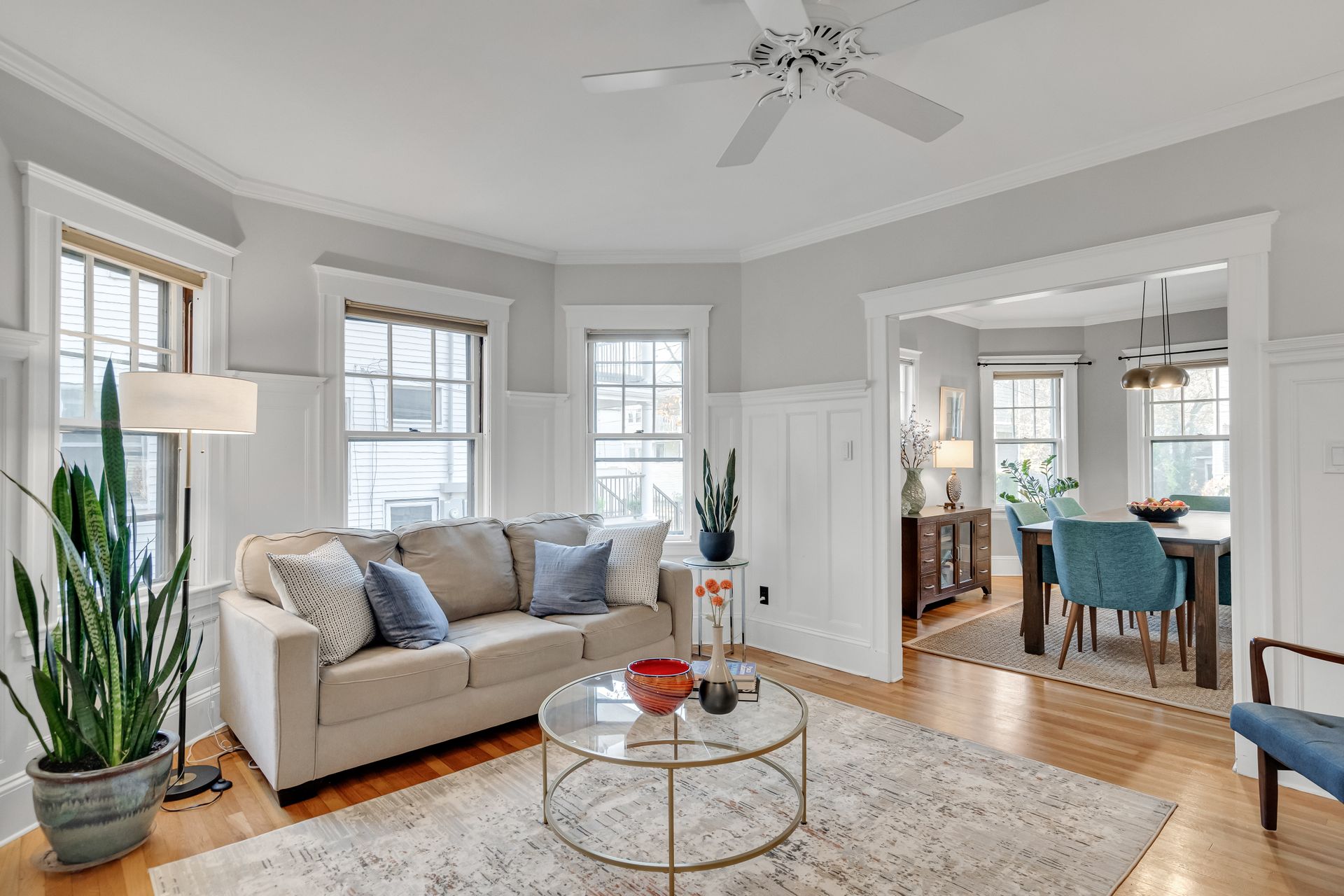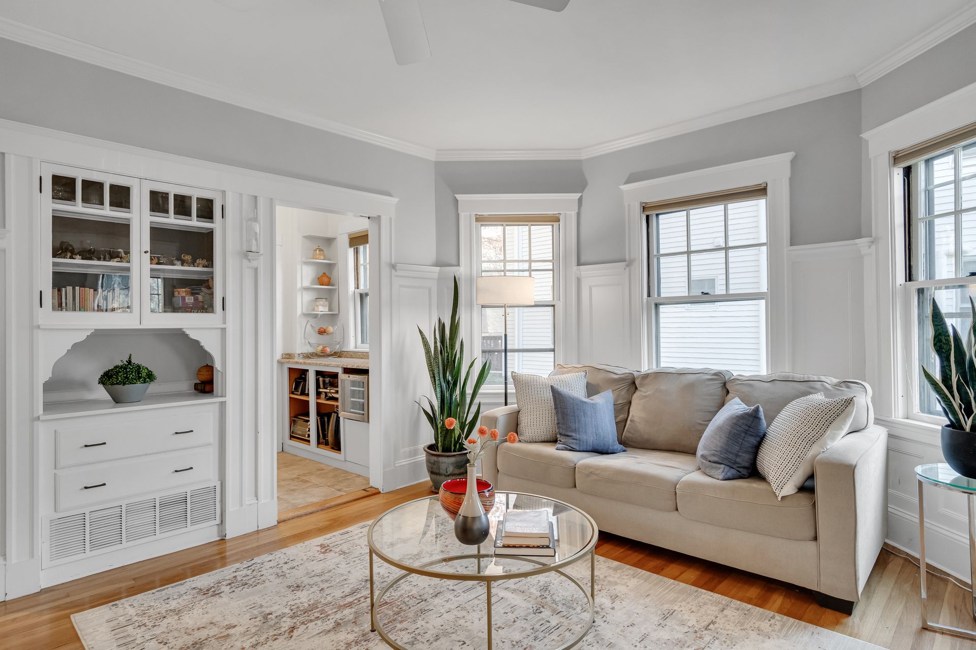 Spacious and cheerful, this beautiful condo blends modern updates with classic charm. Featuring high ceilings, gleaming hardwood floors, and period details, it radiates warmth and character. Great layout with inviting foyer, spacious living-room and formal dining-room, both featuring bow windows, and with good-size bedrooms nicely separated. The white marble bathroom is a show-stopper. Located in the desirable East Arlington, with easy access to Alewife T, the famous bike trail, Magnolia park and playground, Spy Pond, and all the restaurants and shops that make this area so vibrant. Living here can be a breeze!