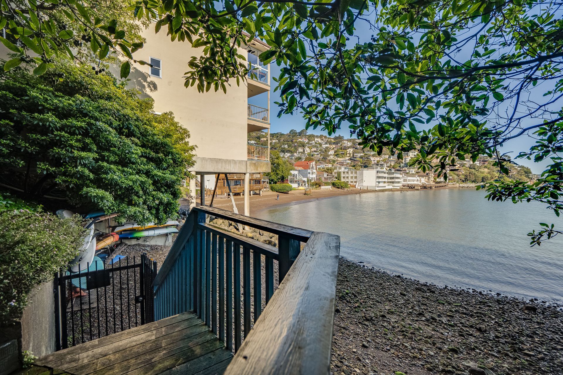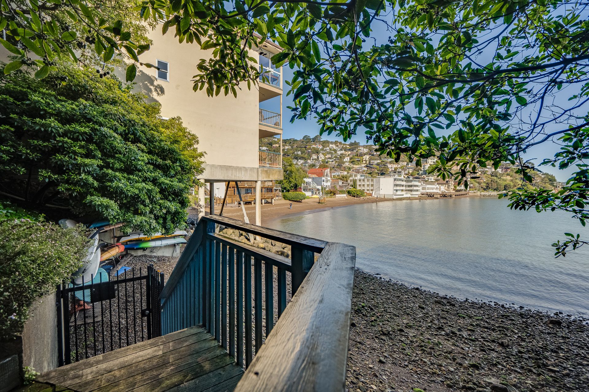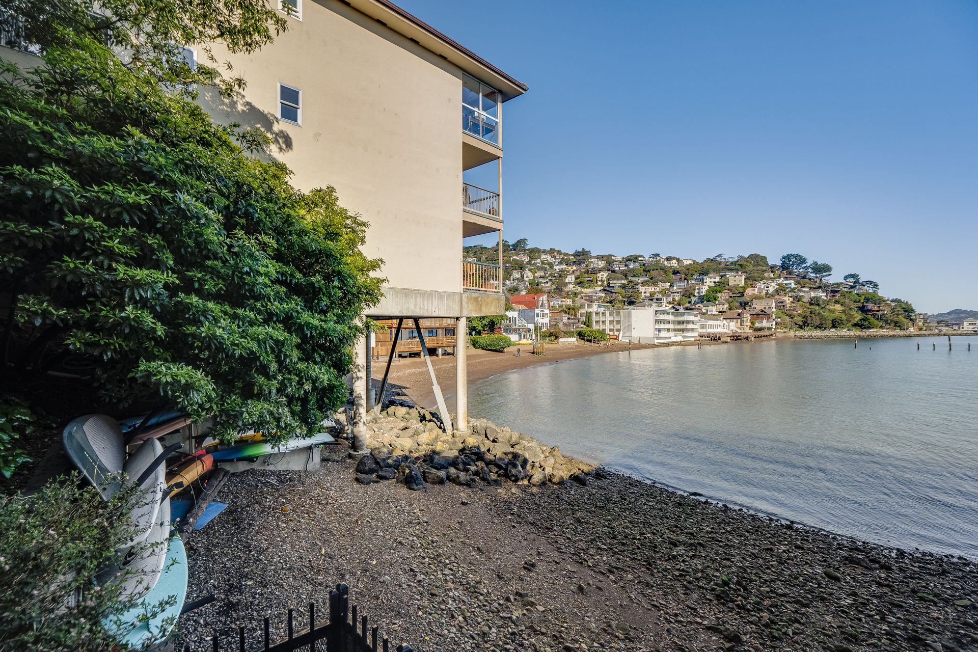 Enjoy the spectacular views from this top floor, waterfront condo in the most desirable building. Listen to the waves, watch the boats sailing by, listen to the birds and hear the seals. Relax with beautiful views of Sausalito hills, Tiburon and Angel Island. The living room has a fireplace. The glass enclosed deck makes for an ideal office! Enjoy the views from the common area gym, sauna or hot tub area. There is access to the beach and a boat dock for loading and unloading or launching your kayak. The elevator is in the complex. Find a washer and dryer in the unit. The home is close to restaurants and shops, a biking path, hiking trails and is minutes to the ferry, 101 and Golden Gate Bridge.