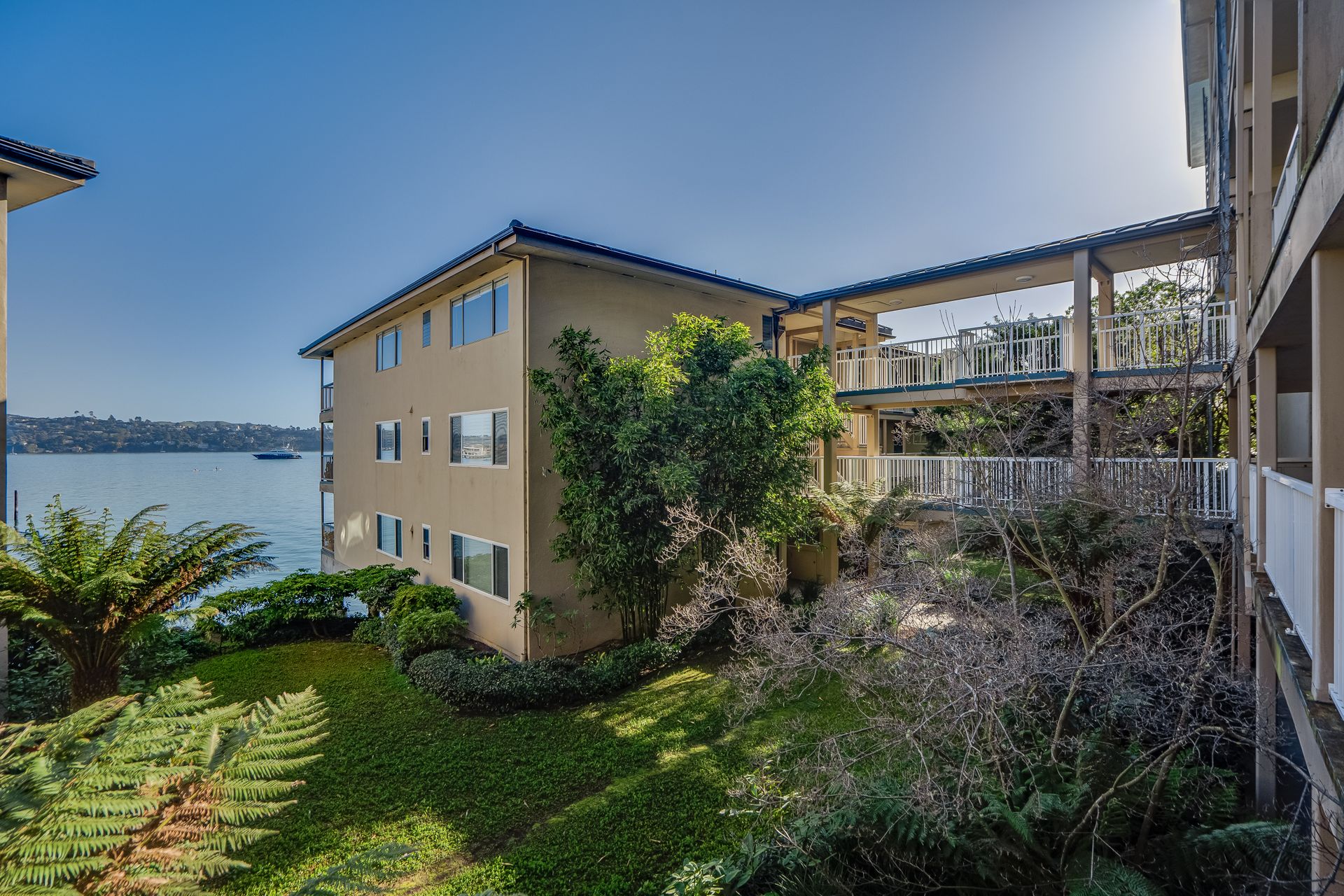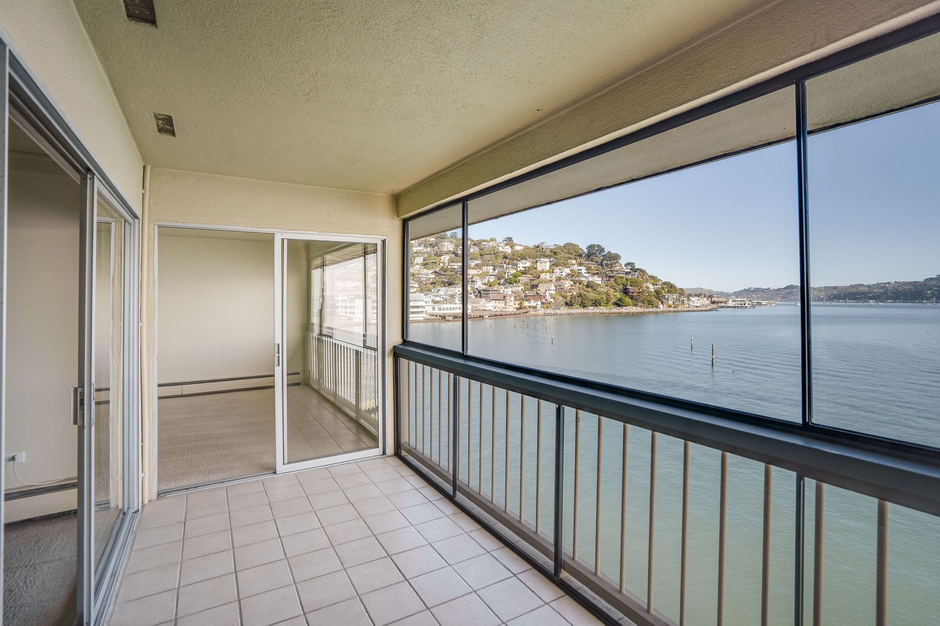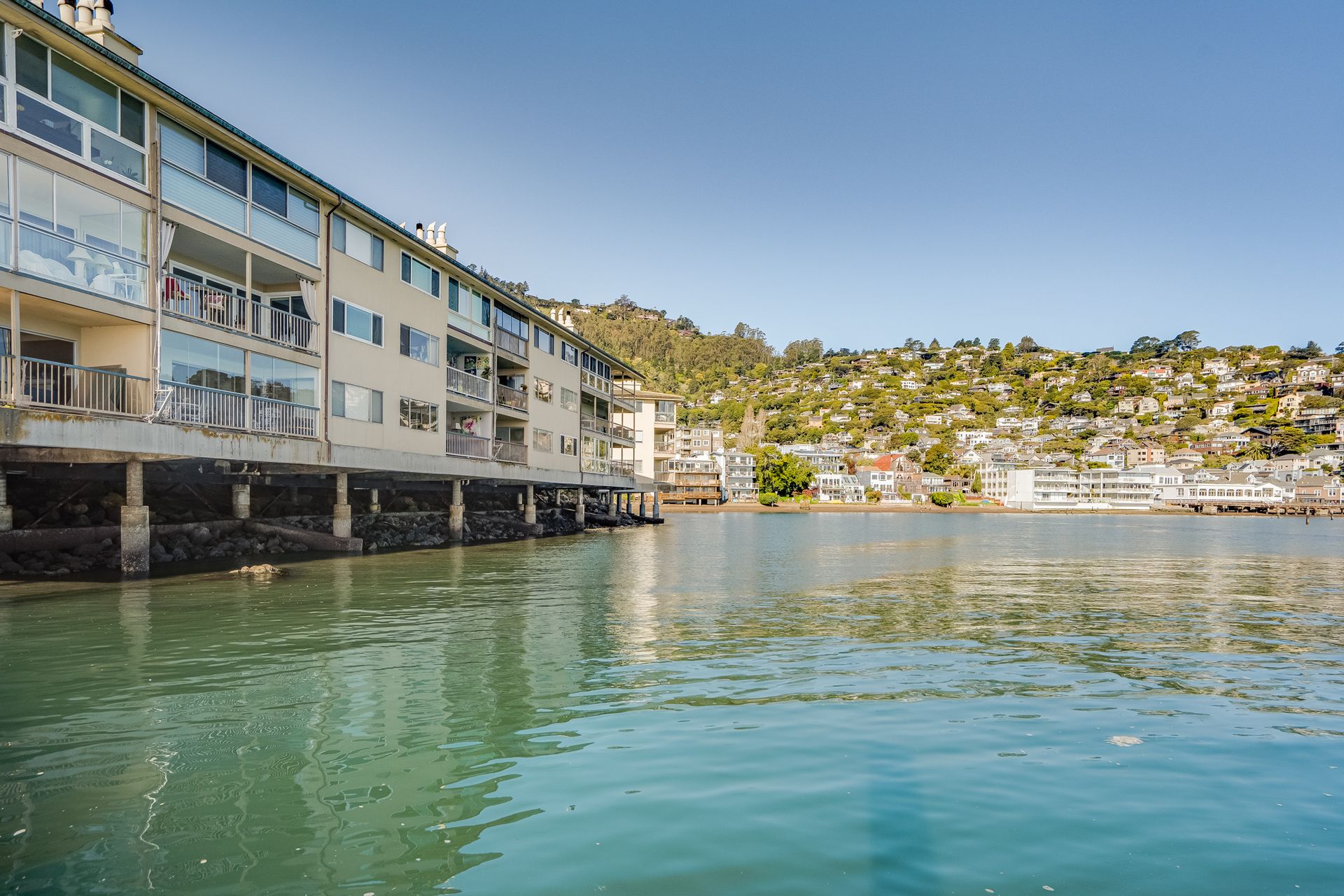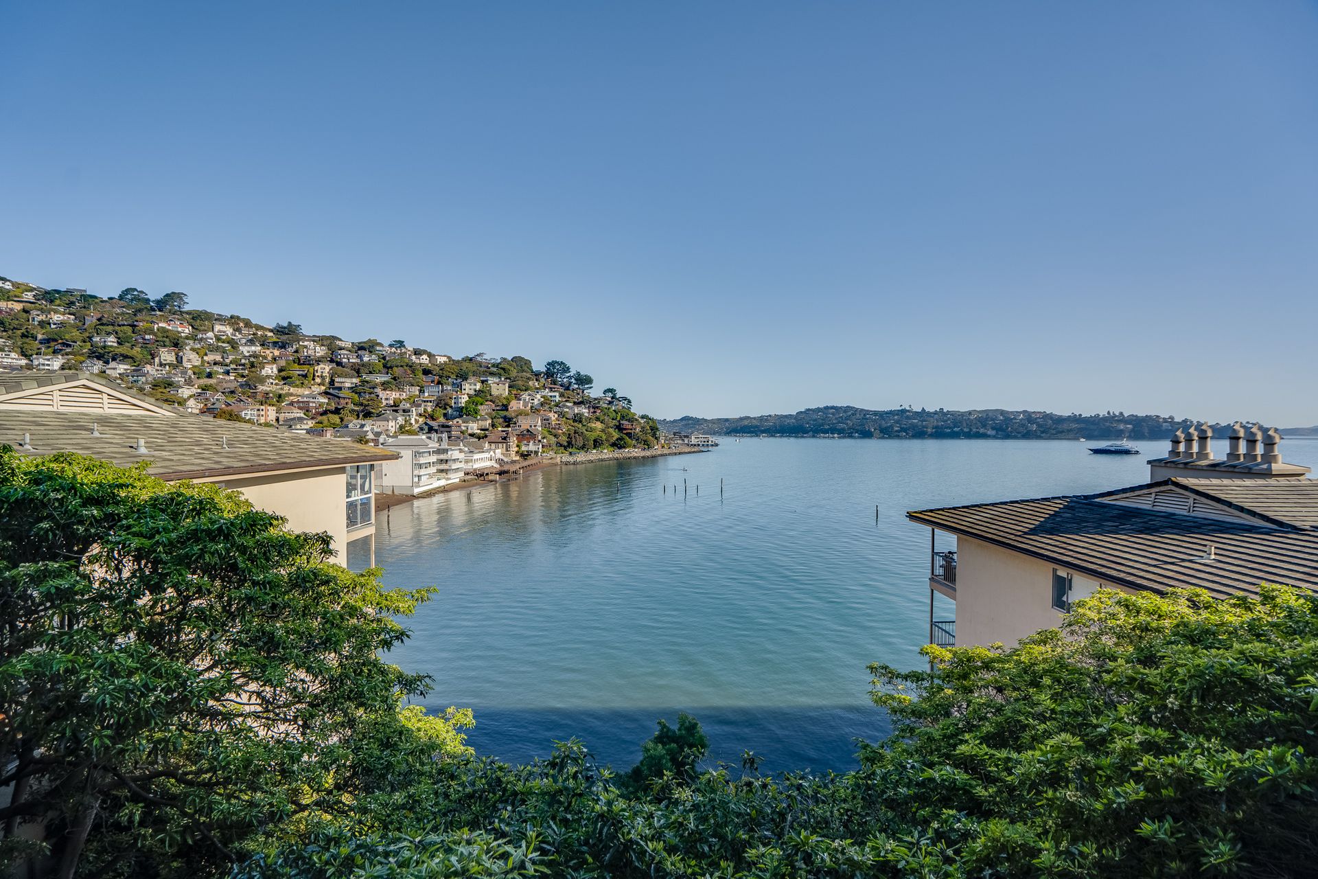 Enjoy the spectacular views from this top floor, waterfront condo in the most desirable building. Listen to the waves, watch the boats sailing by, listen to the birds and hear the seals. Relax with beautiful views of Sausalito hills, Tiburon and Angel Island. The living room has a fireplace. The glass enclosed deck makes for an ideal office! Enjoy the views from the common area gym, sauna or hot tub area. There is access to the beach and a boat dock for loading and unloading or launching your kayak. The elevator is in the complex. Find a washer and dryer in the unit. The home is close to restaurants and shops, a biking path, hiking trails and is minutes to the ferry, 101 and Golden Gate Bridge.