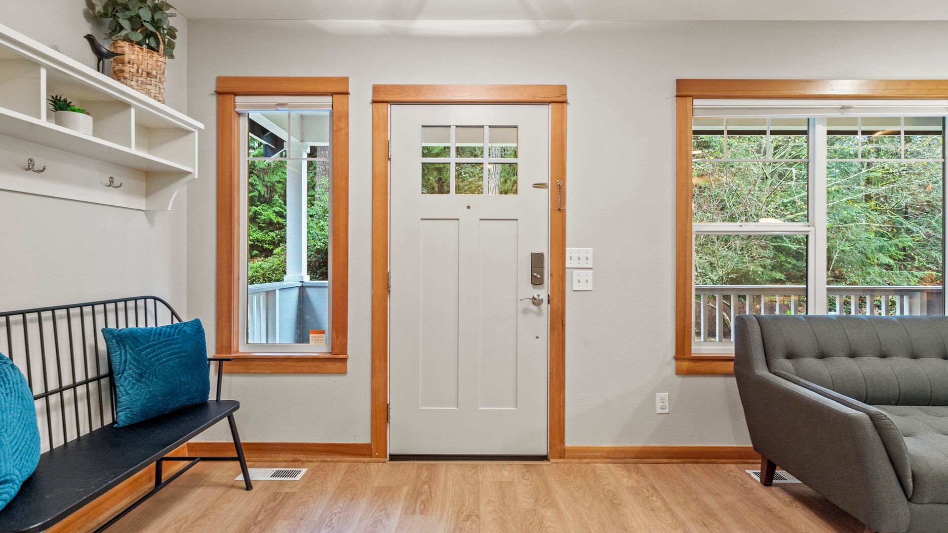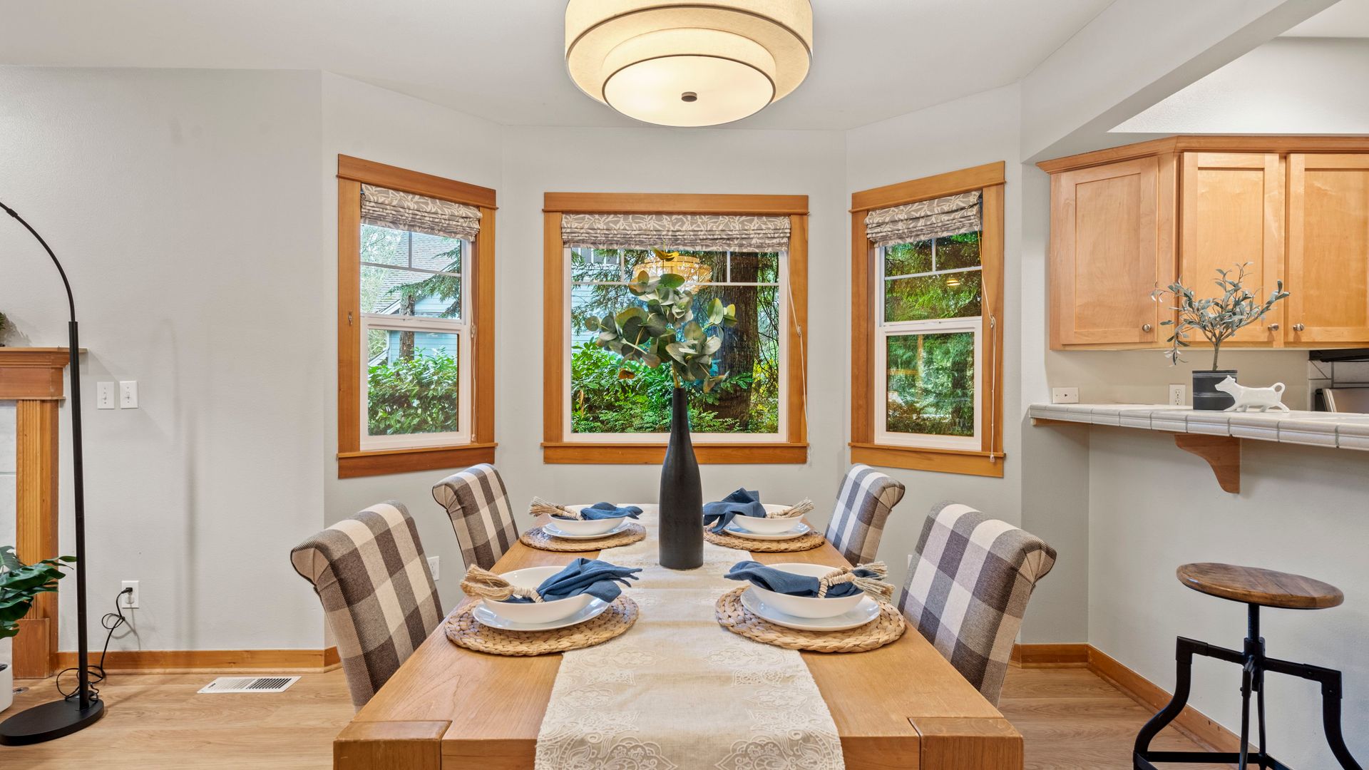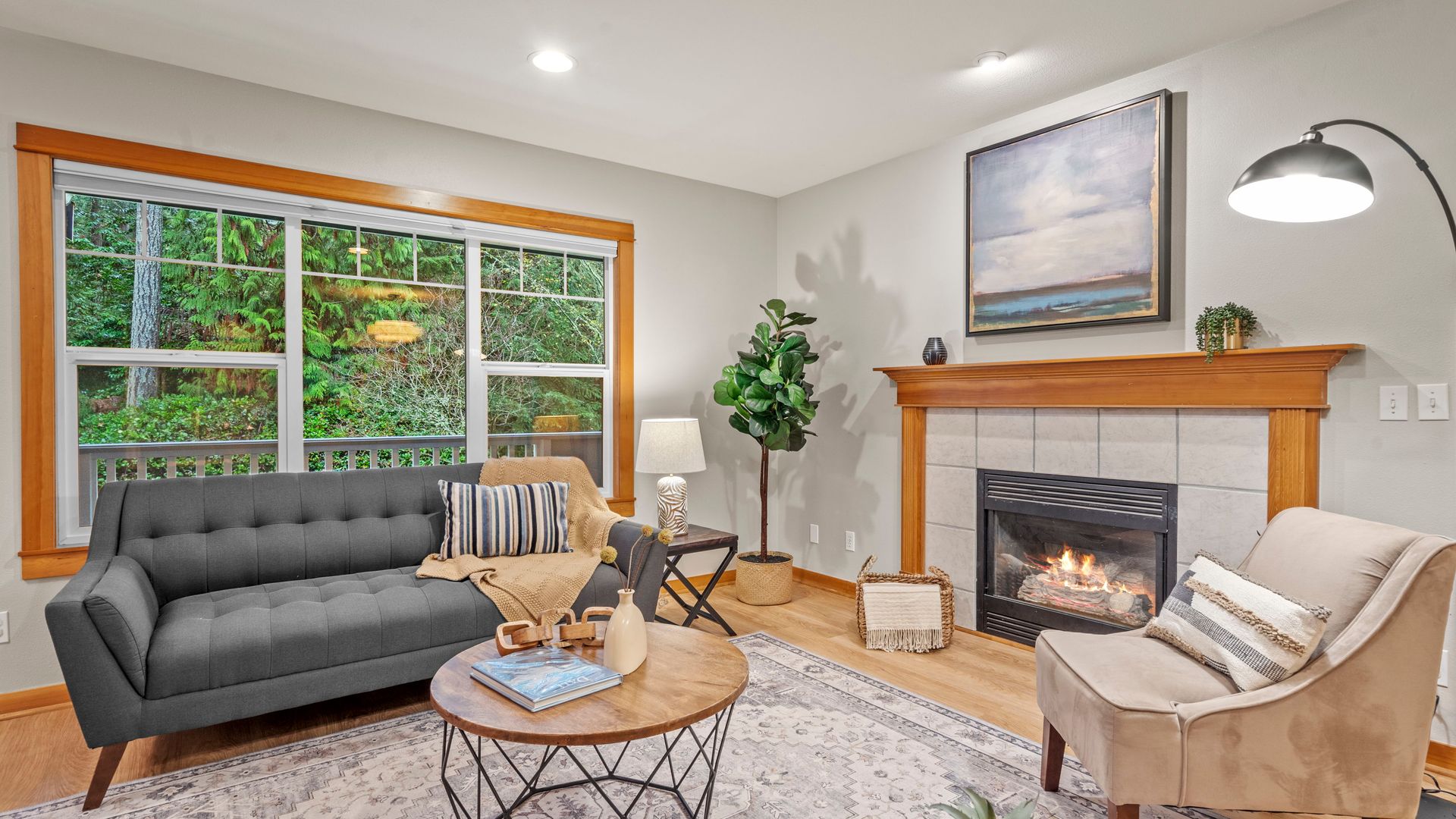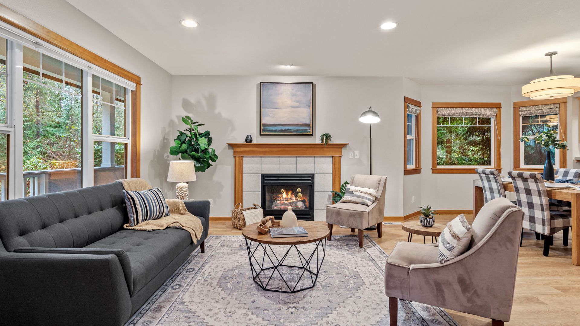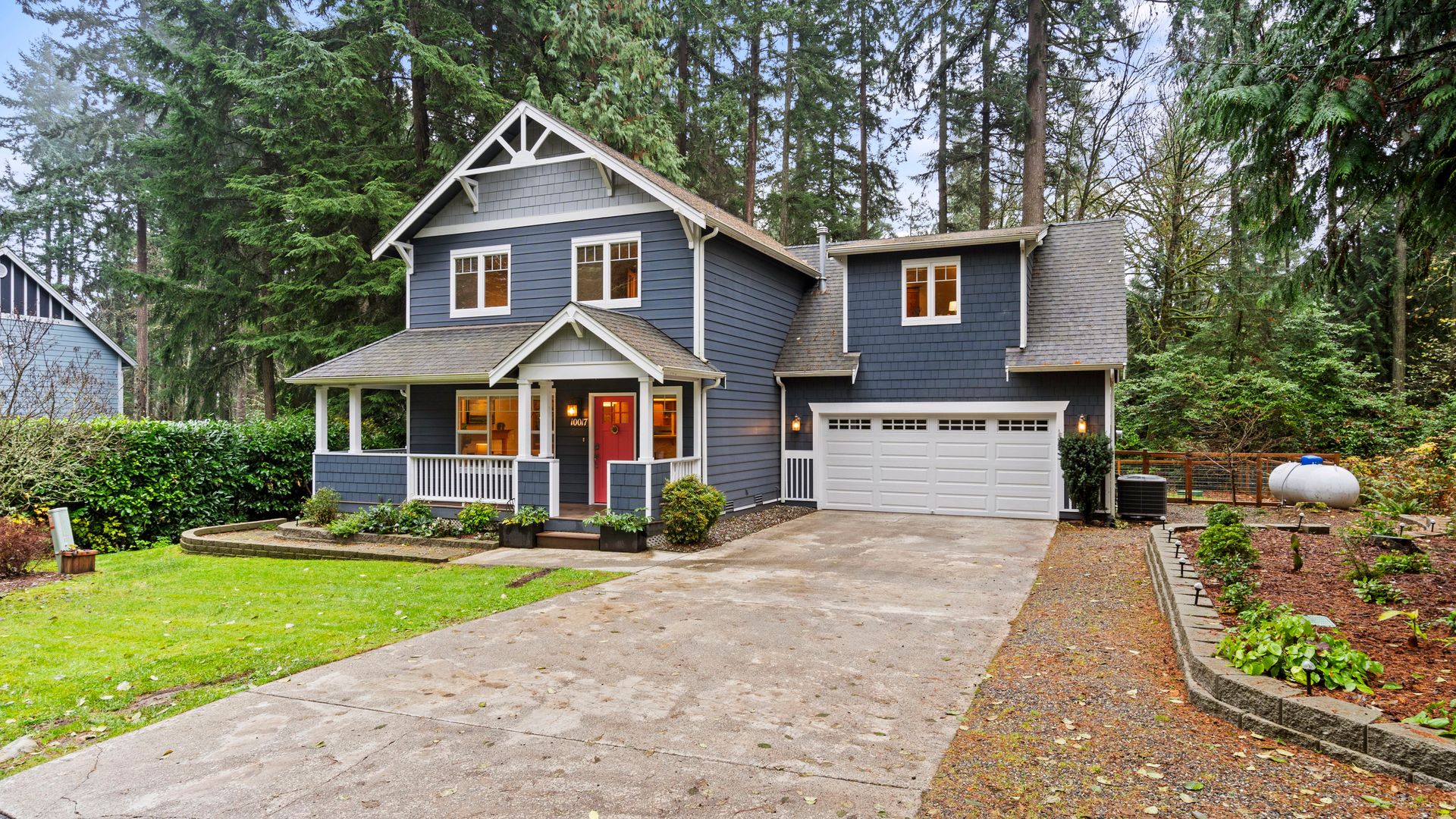 Immerse yourself in the peaceful ambiance of this quiet street, shared by only five homes. This three bed/two and one-half bath Craftsman rests on a spacious lot surrounded by nature and common green space. Head into the inviting family room on the main level combined with the dining area and kitchen containing newer appliances. Upstairs you will find newer carpet (2021) in the three bedrooms, along with a full bath, a three-quarter bath off the primary, laundry facilities and a versatile bonus room. Entertain outside with ease on the roomy composite deck built in 2019 and the fully fenced backyard. The EV charger and generator connection round out the details. Don't miss this private oasis while still being close to the attractions of BI and Seattle!