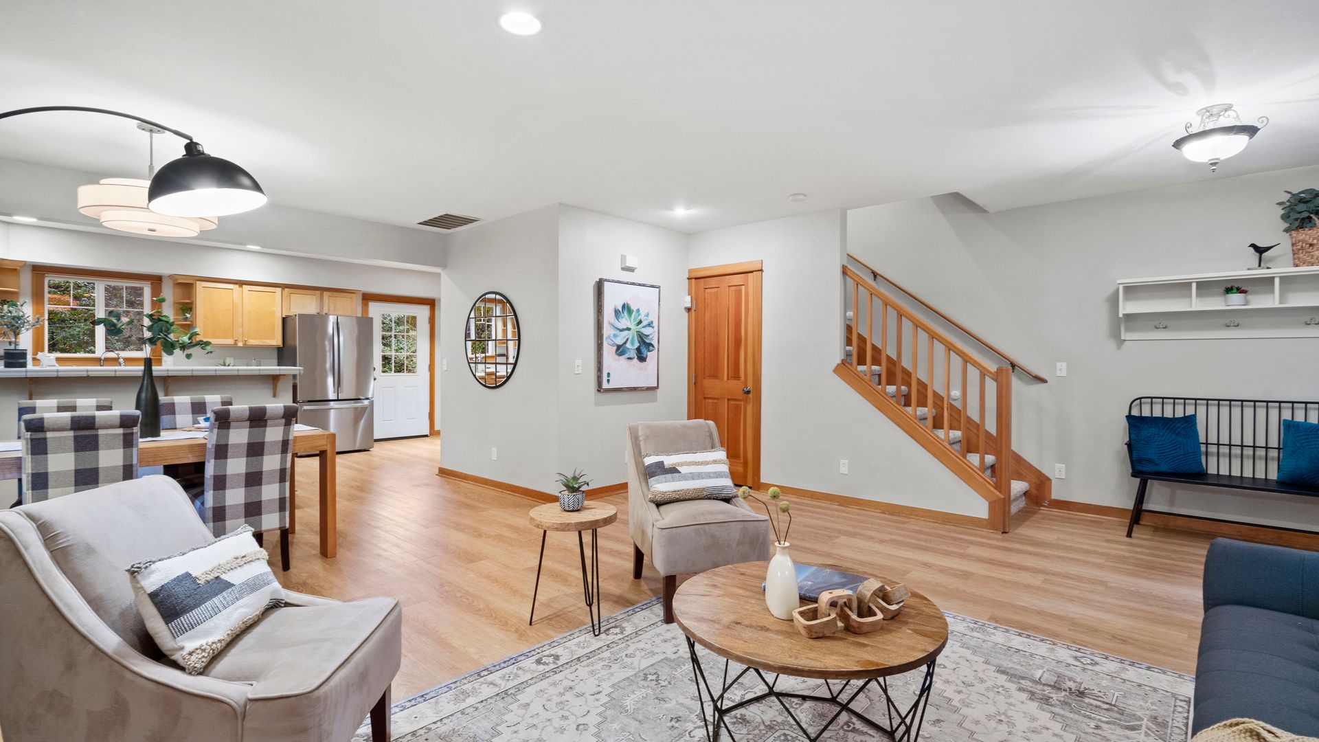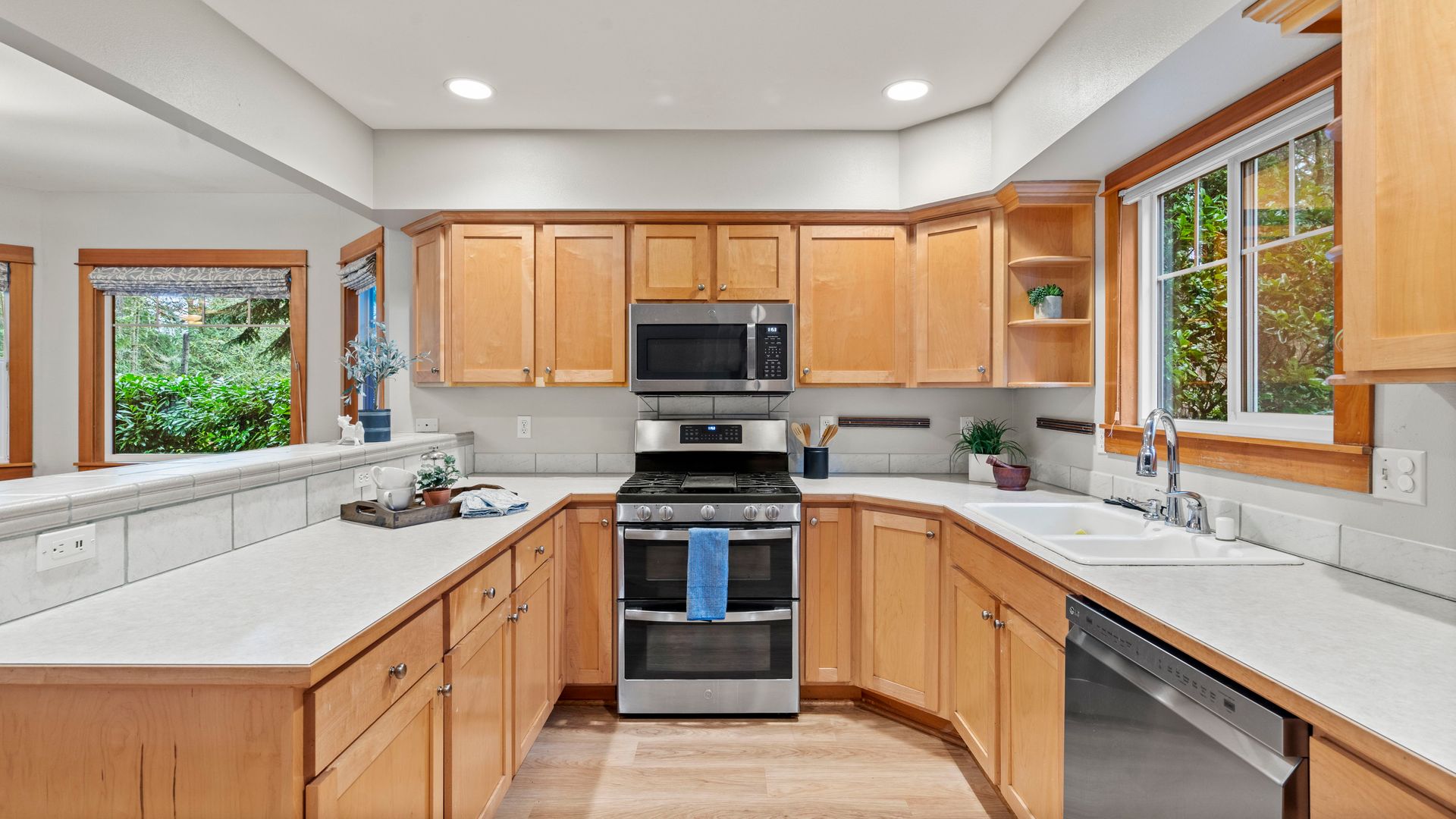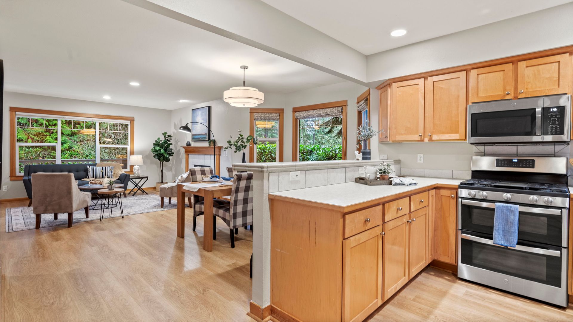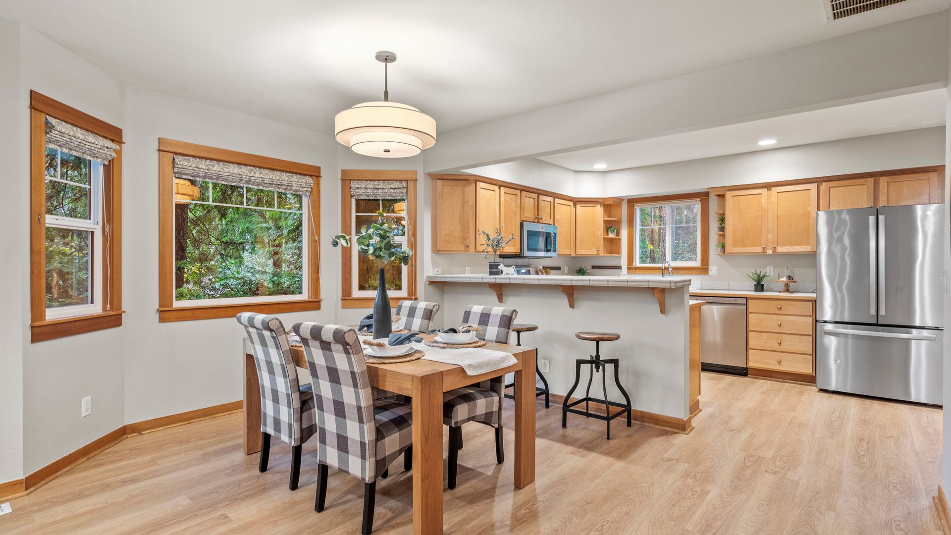 Immerse yourself in the peaceful ambiance of this quiet street, shared by only five homes. This three bed/two and one-half bath Craftsman rests on a spacious lot surrounded by nature and common green space. Head into the inviting family room on the main level combined with the dining area and kitchen containing newer appliances. Upstairs you will find newer carpet (2021) in the three bedrooms, along with a full bath, a three-quarter bath off the primary, laundry facilities and a versatile bonus room. Entertain outside with ease on the roomy composite deck built in 2019 and the fully fenced backyard. The EV charger and generator connection round out the details. Don't miss this private oasis while still being close to the attractions of BI and Seattle!