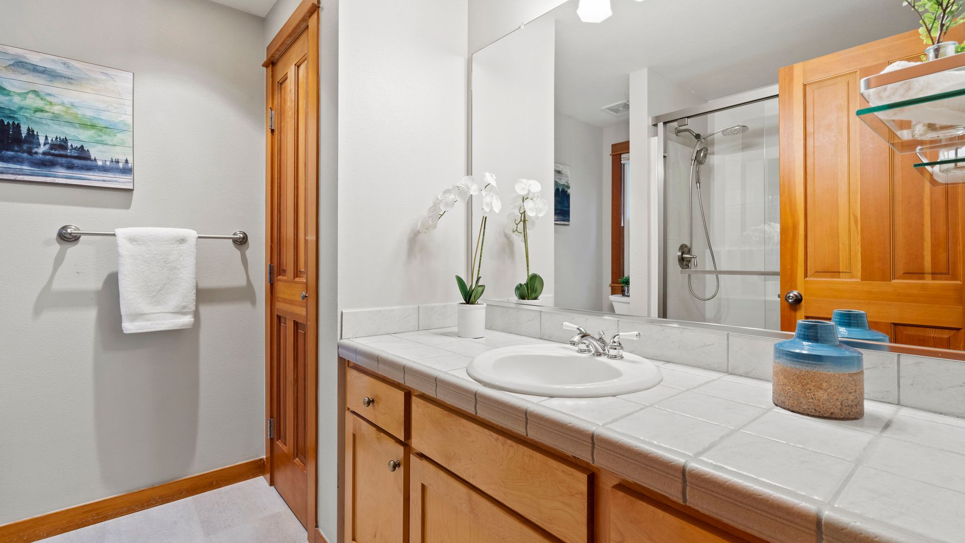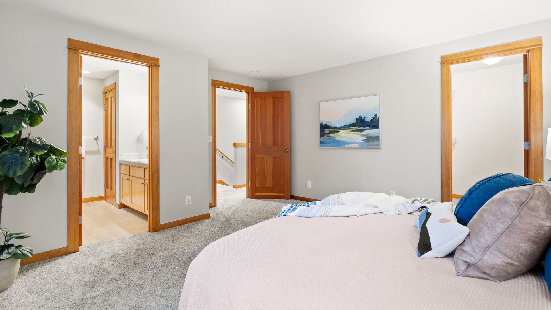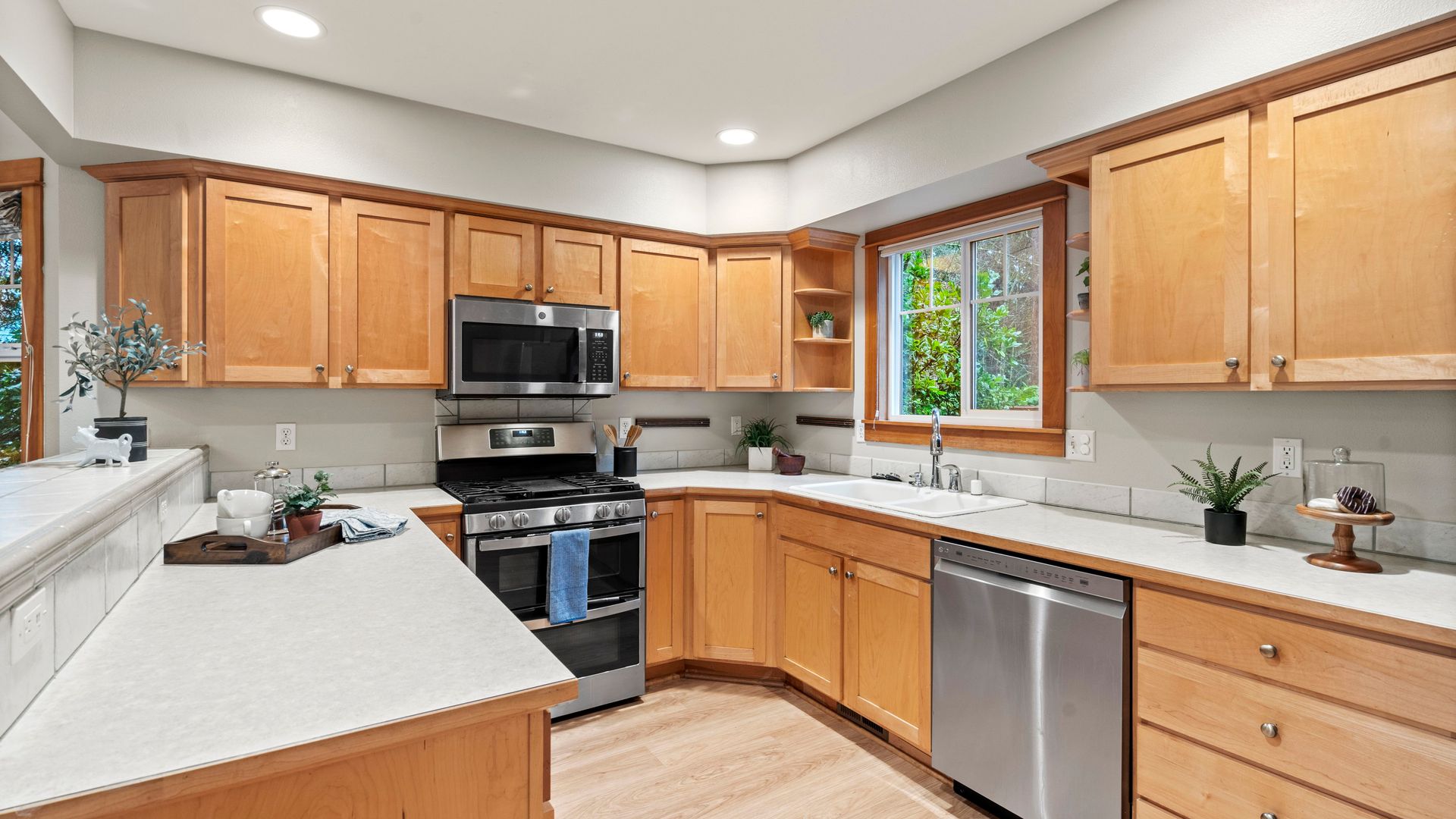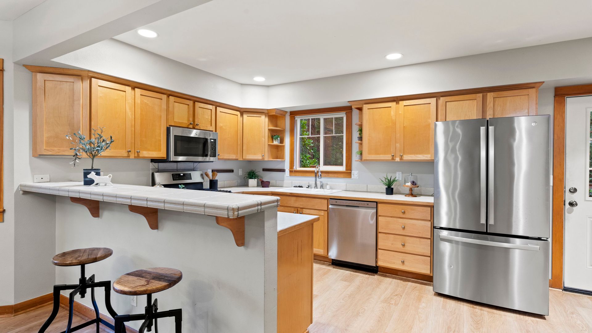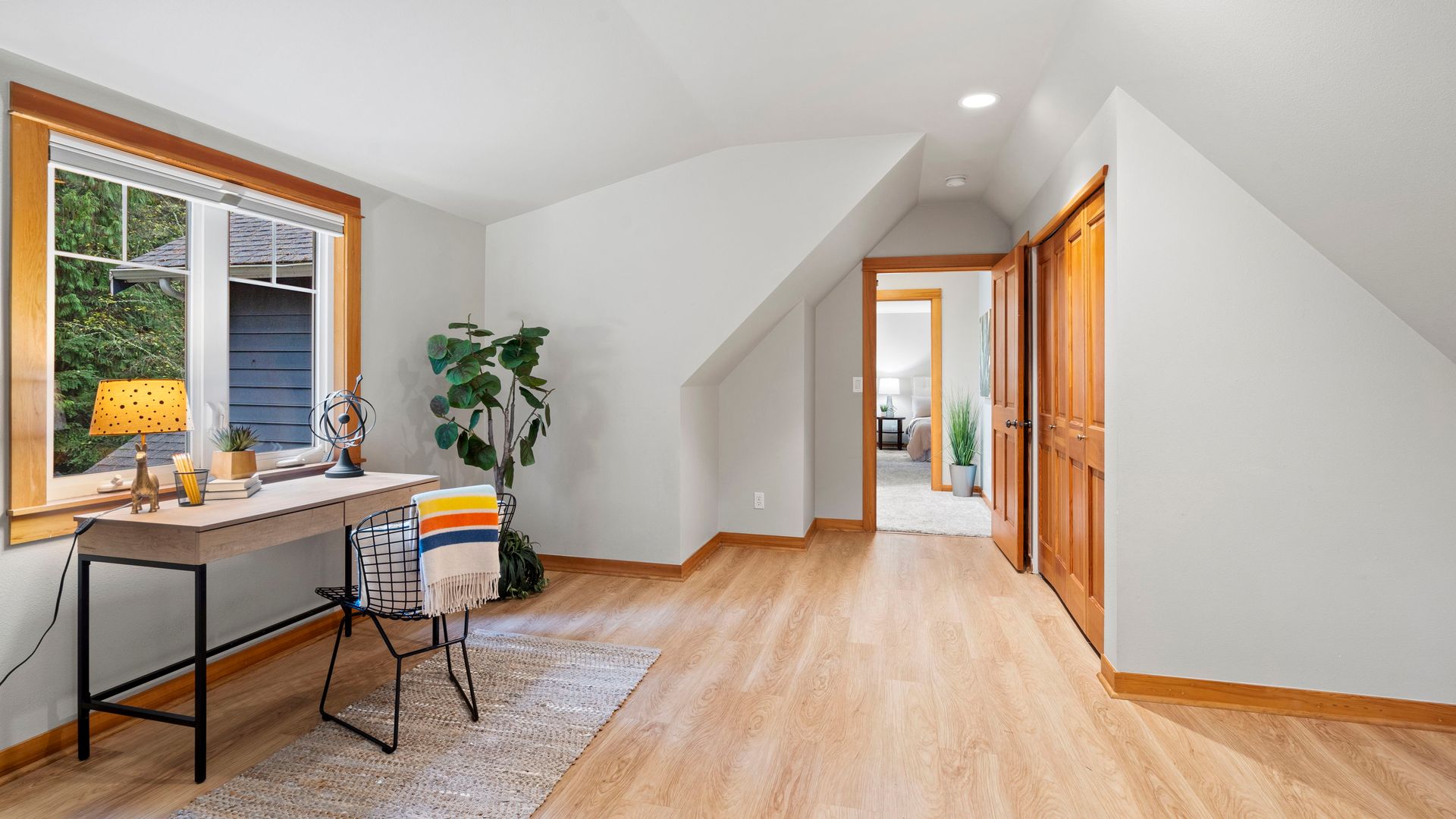 Immerse yourself in the peaceful ambiance of this quiet street, shared by only five homes. This three bed/two and one-half bath Craftsman rests on a spacious lot surrounded by nature and common green space. Head into the inviting family room on the main level combined with the dining area and kitchen containing newer appliances. Upstairs you will find newer carpet (2021) in the three bedrooms, along with a full bath, a three-quarter bath off the primary, laundry facilities and a versatile bonus room. Entertain outside with ease on the roomy composite deck built in 2019 and the fully fenced backyard. The EV charger and generator connection round out the details. Don't miss this private oasis while still being close to the attractions of BI and Seattle!