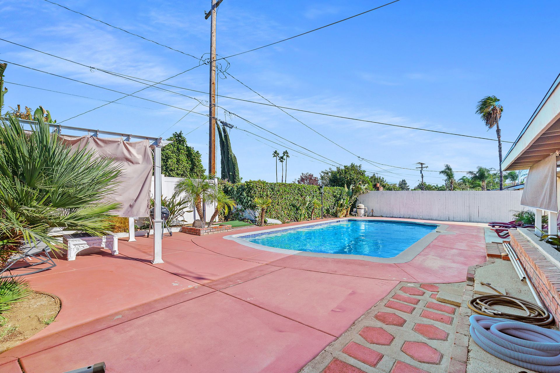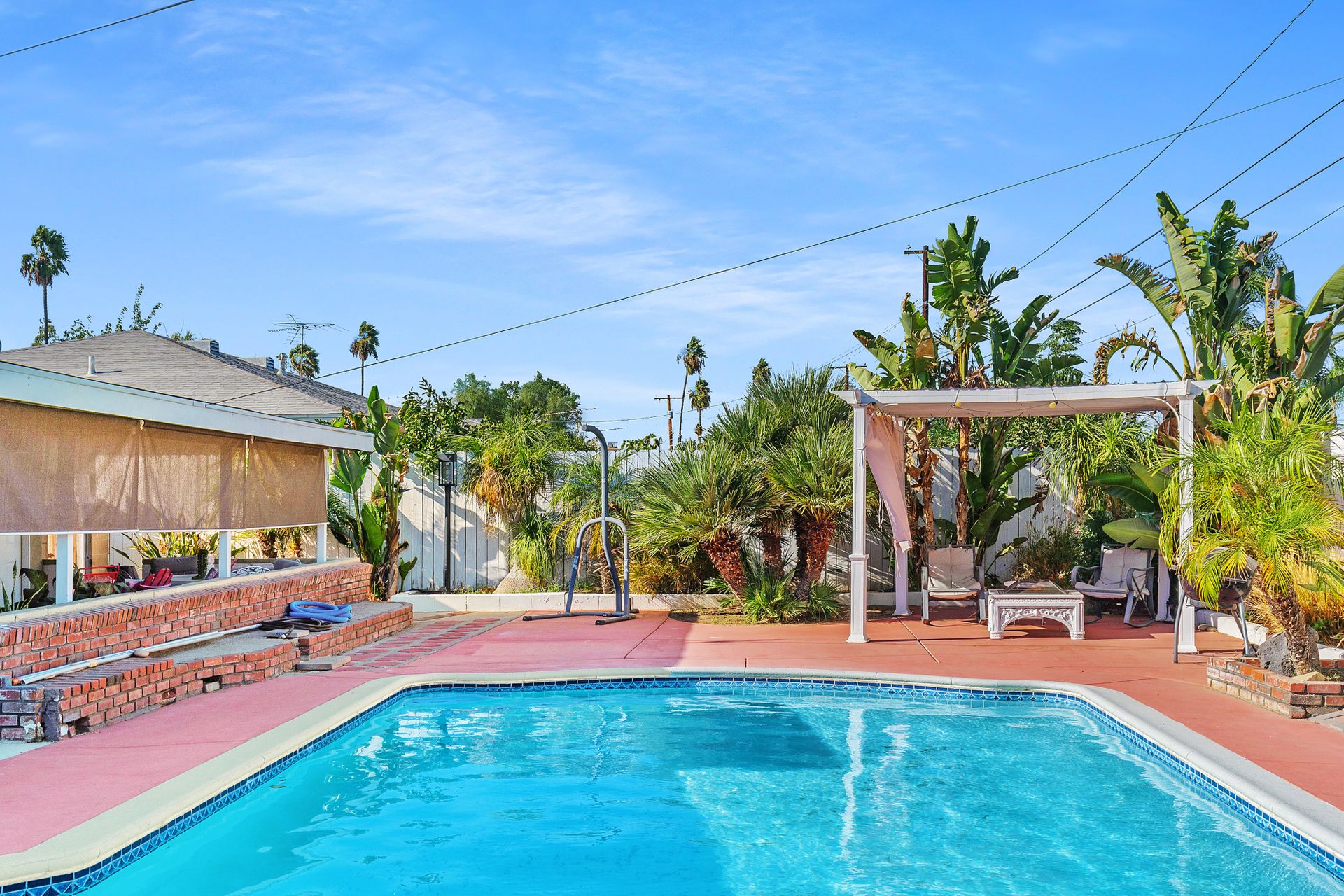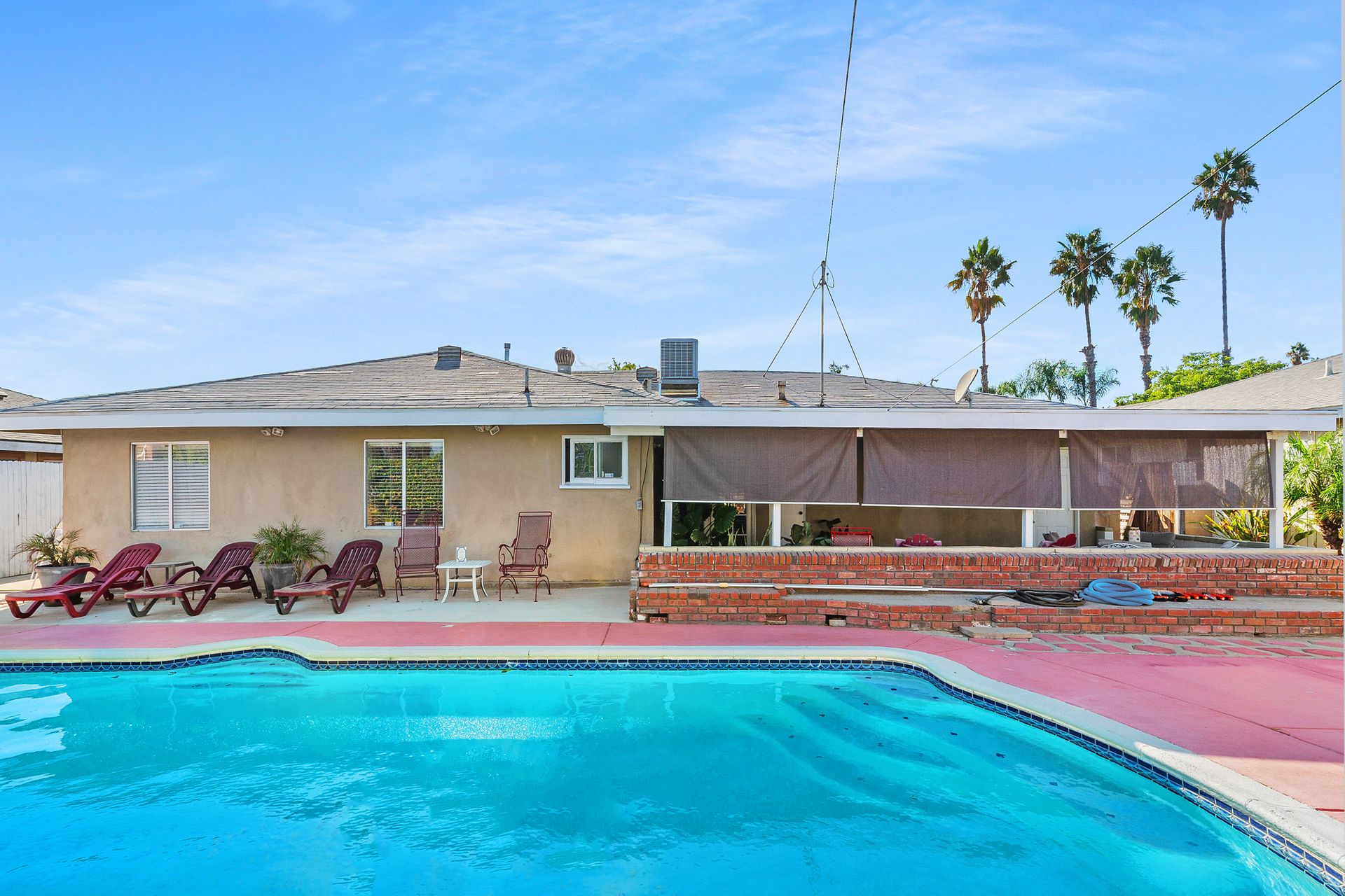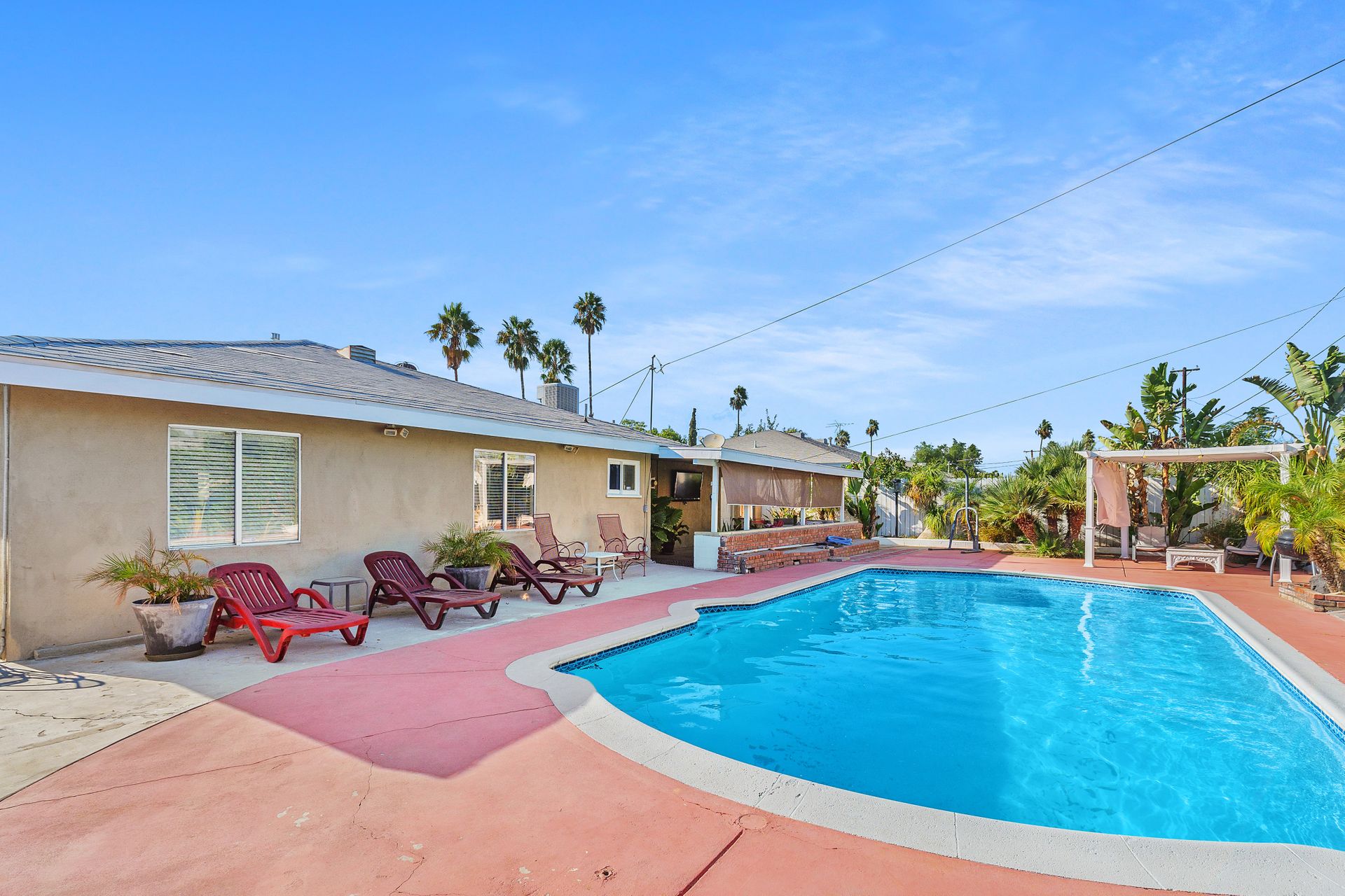 Charming Riverside pool home situated on a beautifully manicured lot. This single-story home boasts of well-designed living space, featuring three bedrooms and two bathrooms. Upon entry, you're greeted by a large open living room that sets the stage for stylish and comfortable living. All common areas include tile flooring. The primary suite is generously sized and includes an ensuite with a walk-in shower. The two additional bedrooms on the opposite side of the house are bright and inviting, each equipped with large closets and ceiling fans. The open kitchen includes Formica countertops and backsplash, ample cabinetry, a built-in oven along with a newer LG range. It's waiting for its next culinary enthusiast!! Find the dining area centrally located adjacent to the kitchen for seamless flow. French doors open to your outdoor covered patio with a TV and gas fire pit. Perfect for indoor-outdoor living. Step outside to discover a true backyard paradise. Enjoy the sparkling pool, spacious area, gazebo with a second (wood) fire pit, two Ponytail palm trees, and a Mediterranean Fan palm. This outdoor space is ideal for relaxation and entertainment alike. Experience the ideal blend of comfort, style, and outdoor living in this welcoming home.