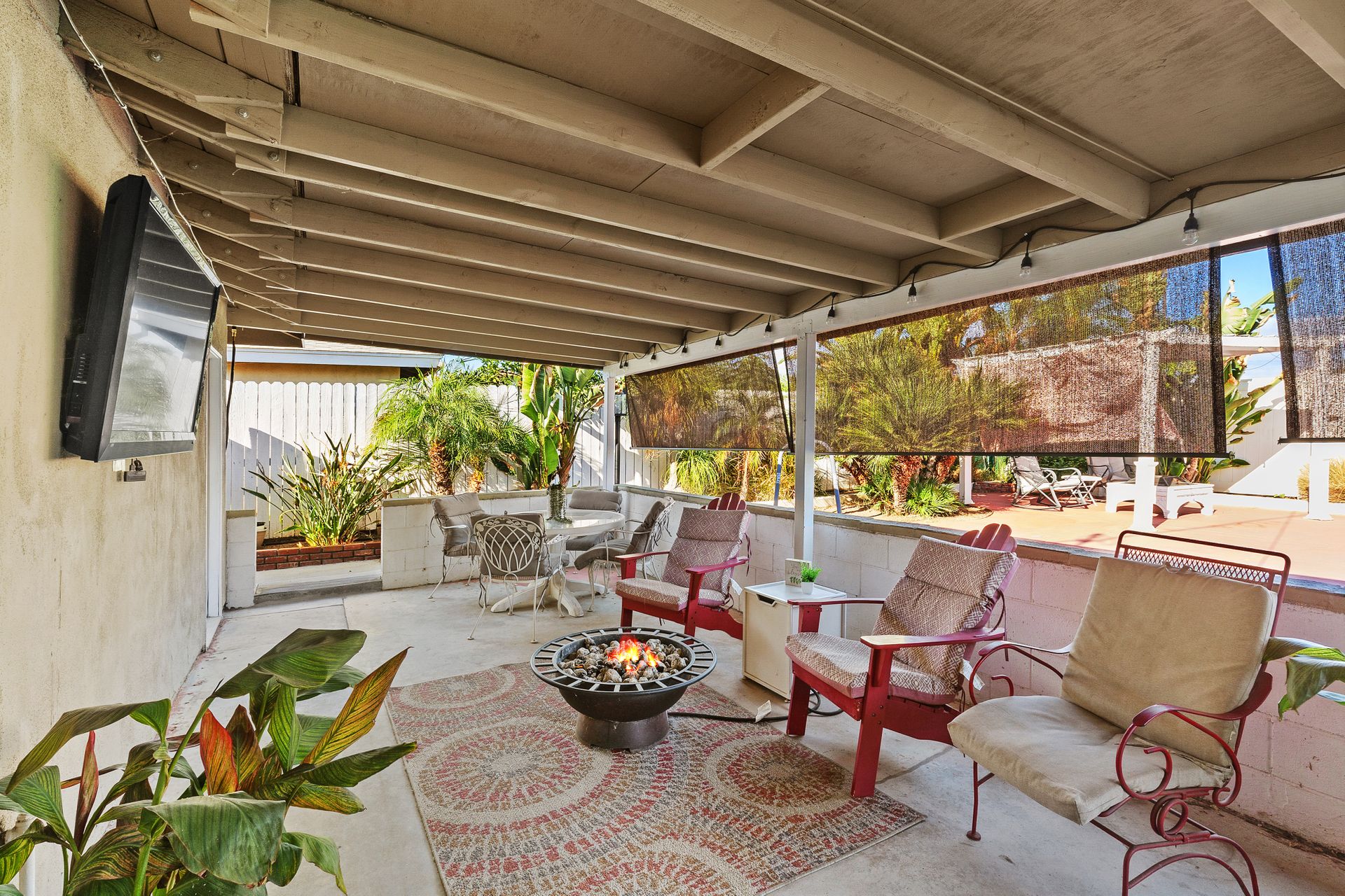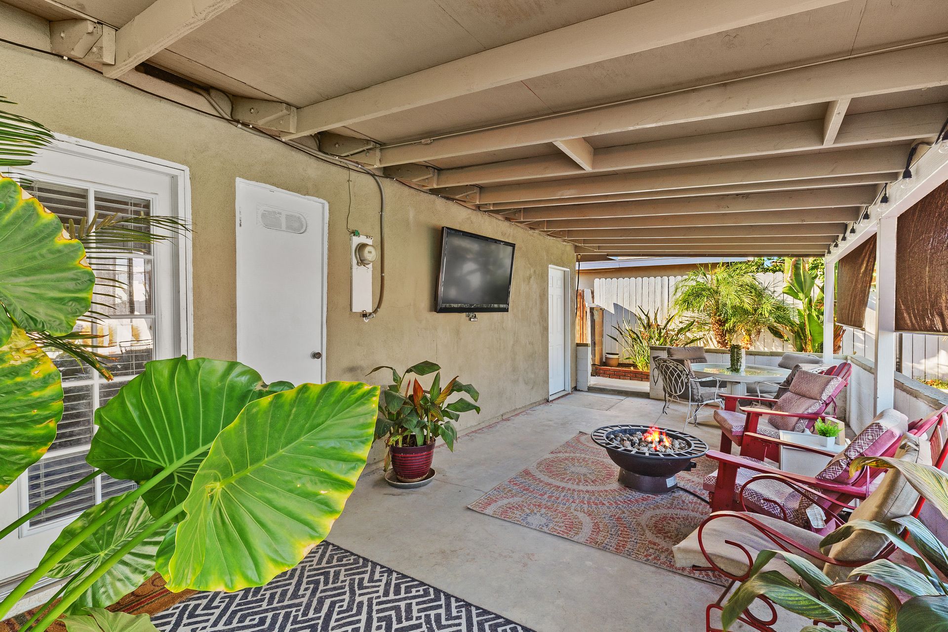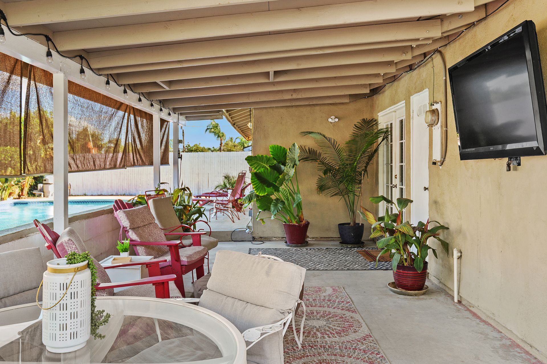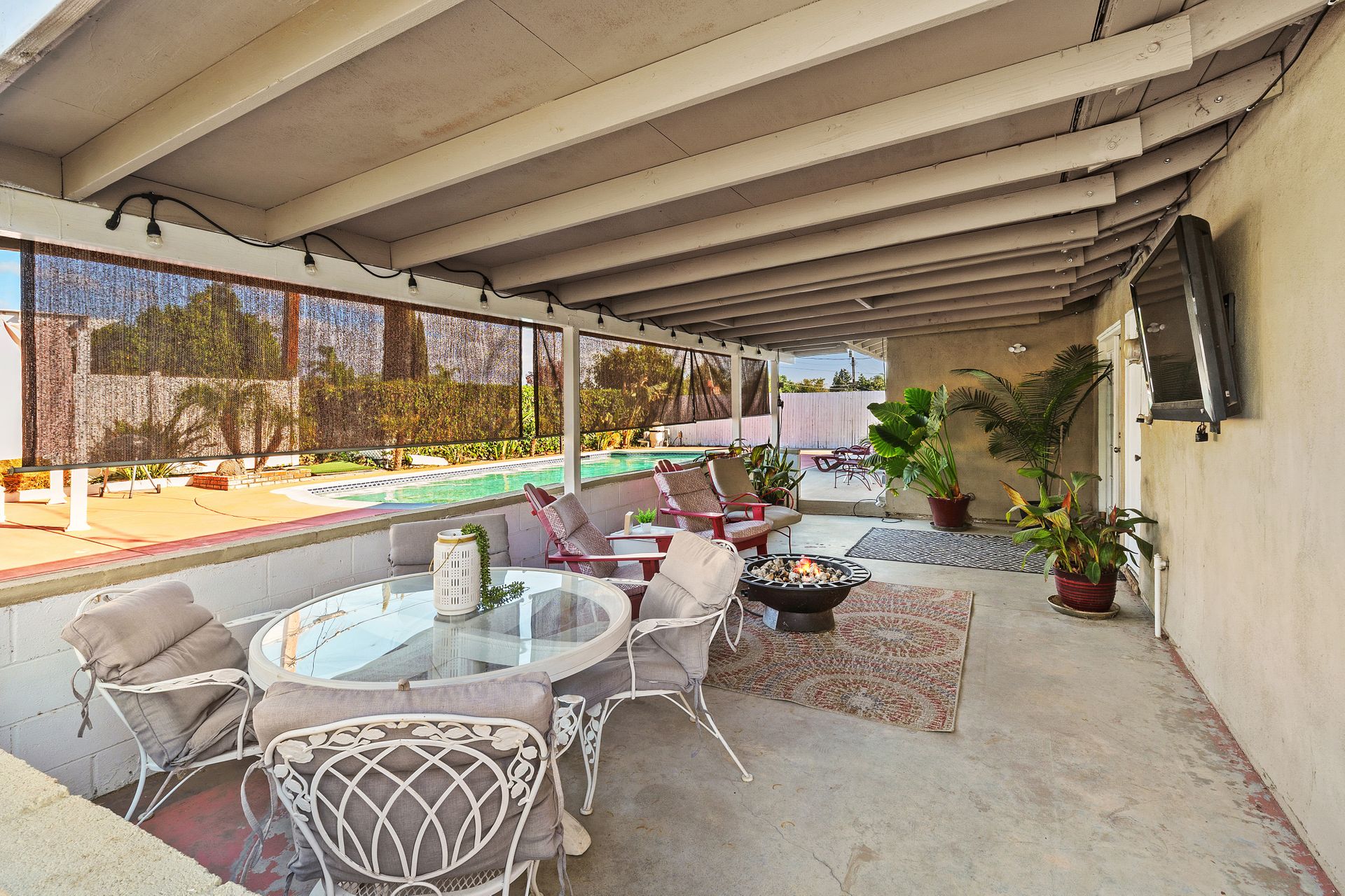 Charming Riverside pool home situated on a beautifully manicured lot. This single-story home boasts of well-designed living space, featuring three bedrooms and two bathrooms. Upon entry, you're greeted by a large open living room that sets the stage for stylish and comfortable living. All common areas include tile flooring. The primary suite is generously sized and includes an ensuite with a walk-in shower. The two additional bedrooms on the opposite side of the house are bright and inviting, each equipped with large closets and ceiling fans. The open kitchen includes Formica countertops and backsplash, ample cabinetry, a built-in oven along with a newer LG range. It's waiting for its next culinary enthusiast!! Find the dining area centrally located adjacent to the kitchen for seamless flow. French doors open to your outdoor covered patio with a TV and gas fire pit. Perfect for indoor-outdoor living. Step outside to discover a true backyard paradise. Enjoy the sparkling pool, spacious area, gazebo with a second (wood) fire pit, two Ponytail palm trees, and a Mediterranean Fan palm. This outdoor space is ideal for relaxation and entertainment alike. Experience the ideal blend of comfort, style, and outdoor living in this welcoming home.