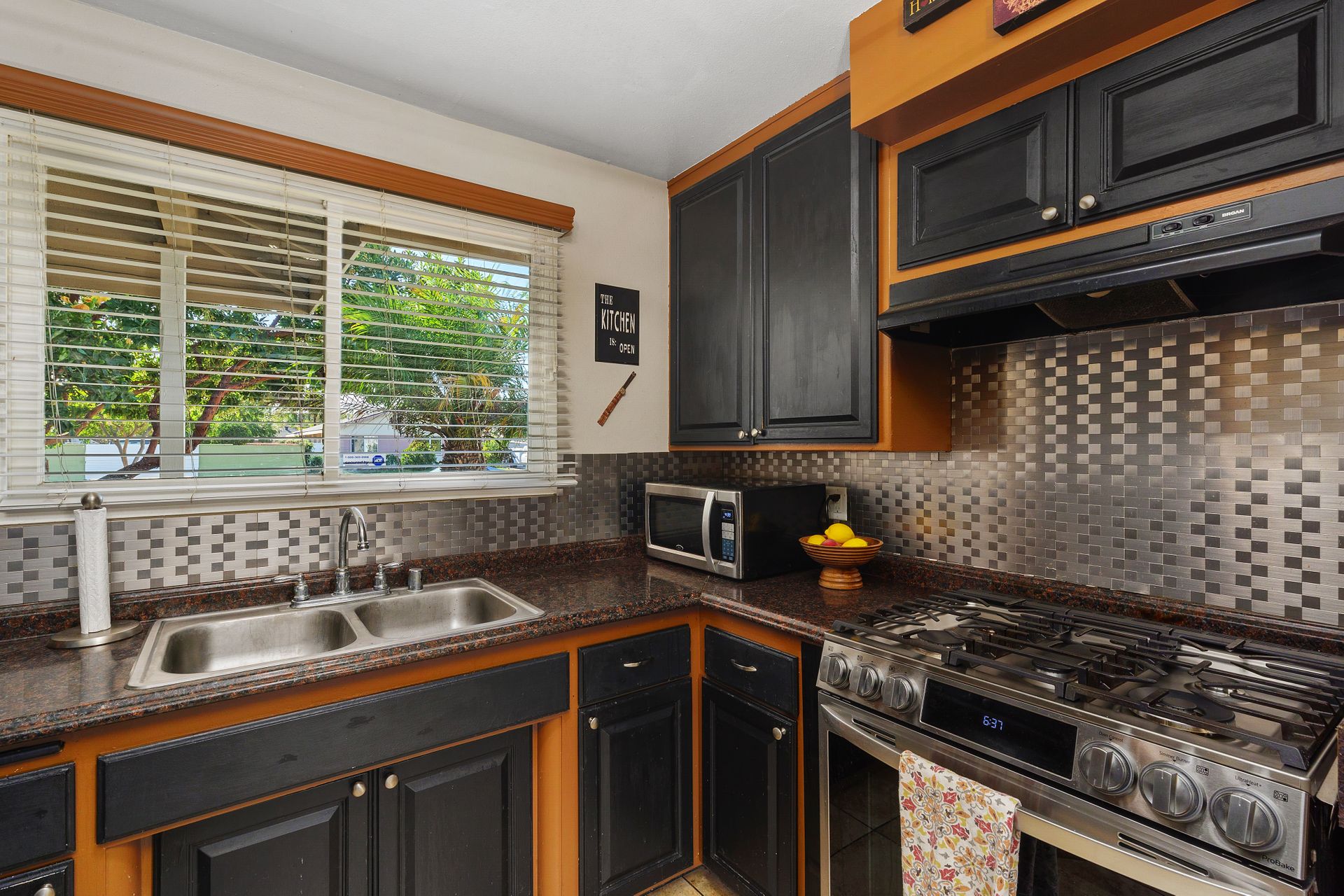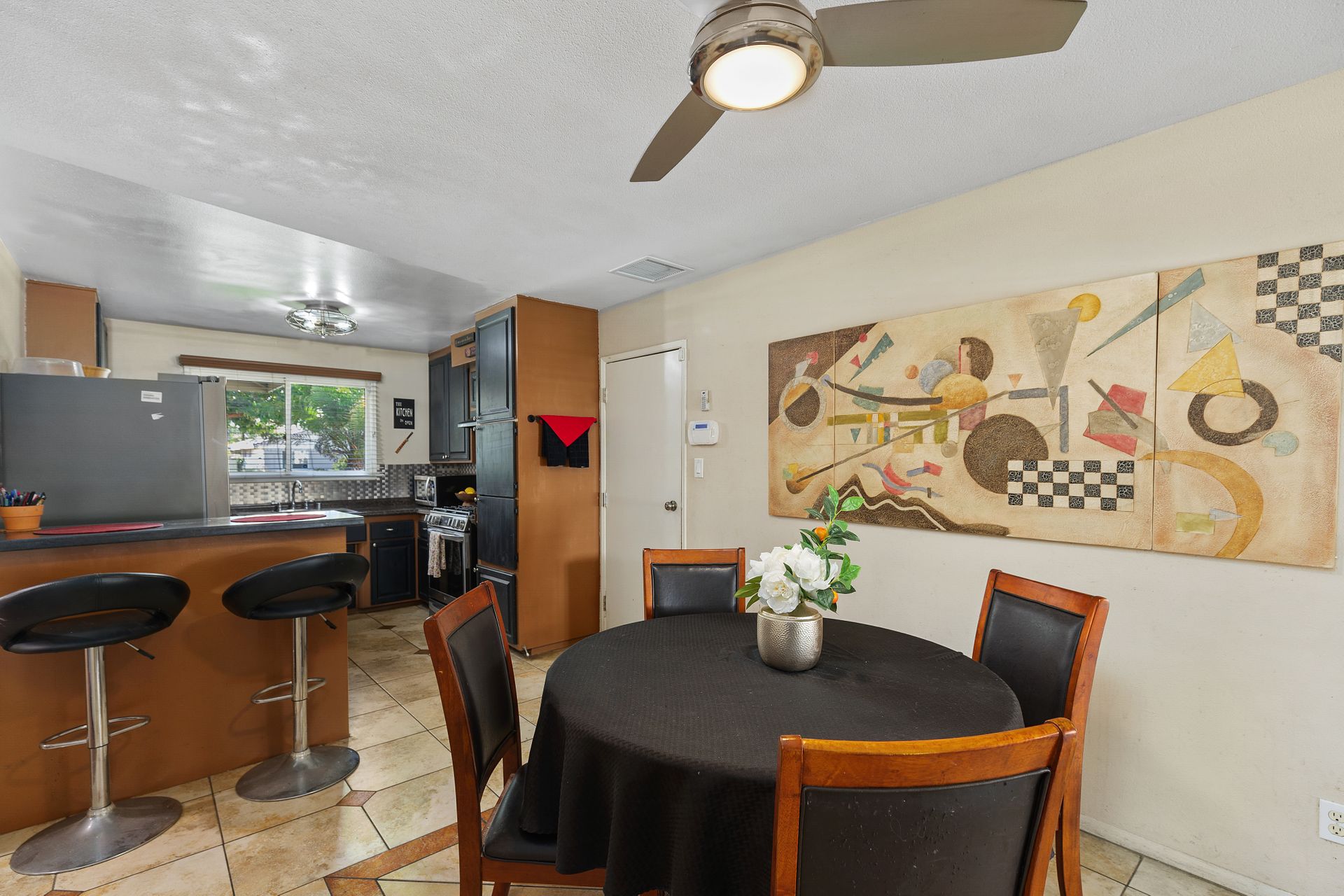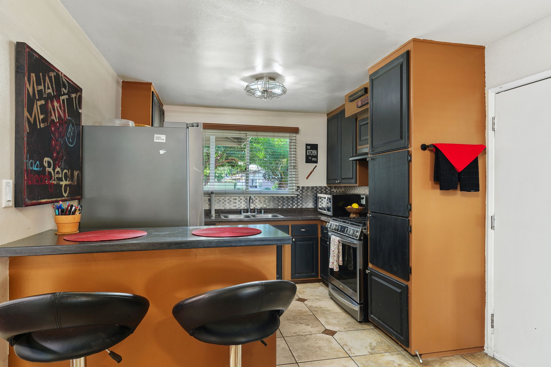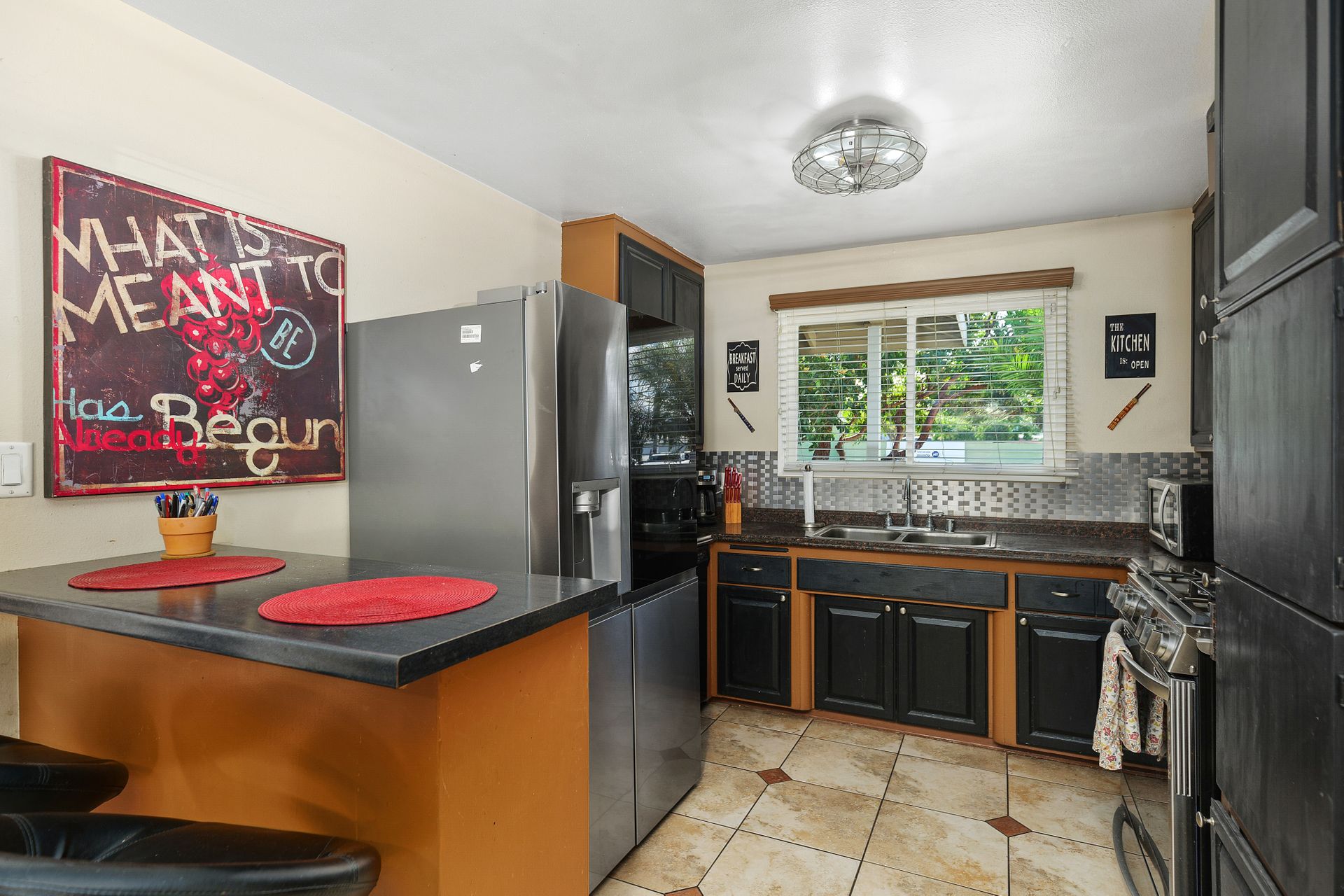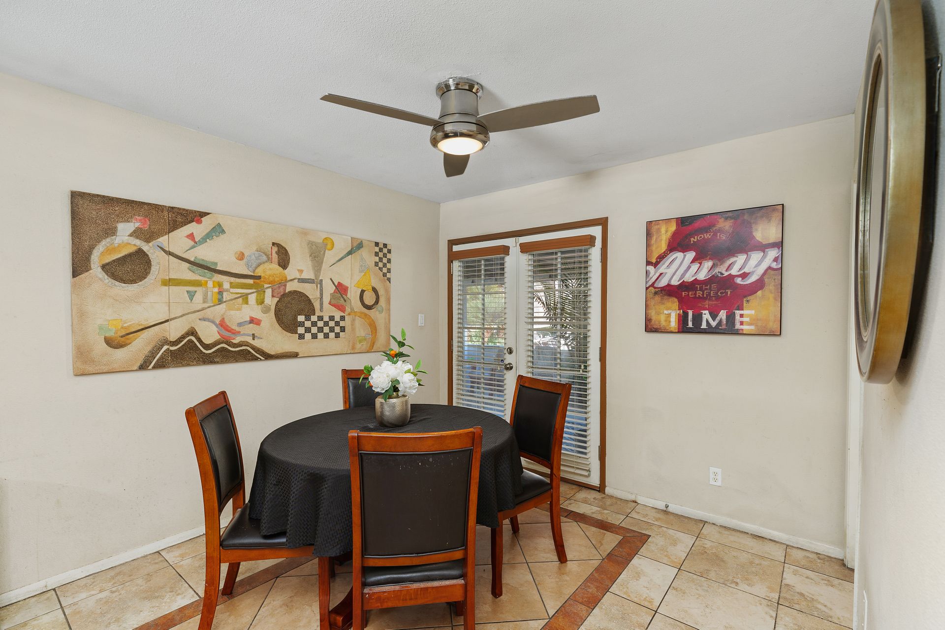 Charming Riverside pool home situated on a beautifully manicured lot. This single-story home boasts of well-designed living space, featuring three bedrooms and two bathrooms. Upon entry, you're greeted by a large open living room that sets the stage for stylish and comfortable living. All common areas include tile flooring. The primary suite is generously sized and includes an ensuite with a walk-in shower. The two additional bedrooms on the opposite side of the house are bright and inviting, each equipped with large closets and ceiling fans. The open kitchen includes Formica countertops and backsplash, ample cabinetry, a built-in oven along with a newer LG range. It's waiting for its next culinary enthusiast!! Find the dining area centrally located adjacent to the kitchen for seamless flow. French doors open to your outdoor covered patio with a TV and gas fire pit. Perfect for indoor-outdoor living. Step outside to discover a true backyard paradise. Enjoy the sparkling pool, spacious area, gazebo with a second (wood) fire pit, two Ponytail palm trees, and a Mediterranean Fan palm. This outdoor space is ideal for relaxation and entertainment alike. Experience the ideal blend of comfort, style, and outdoor living in this welcoming home.