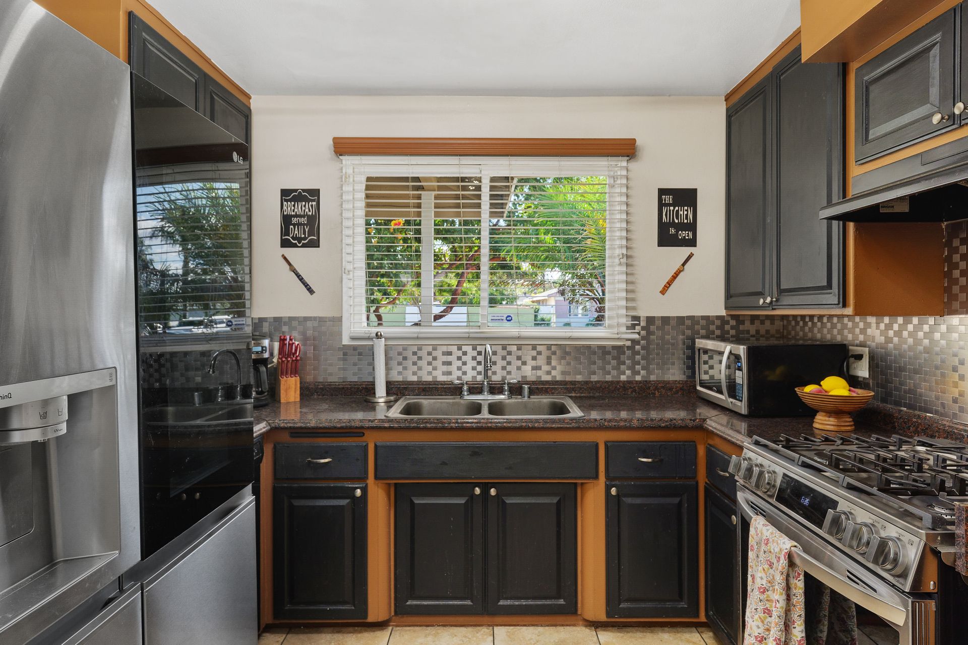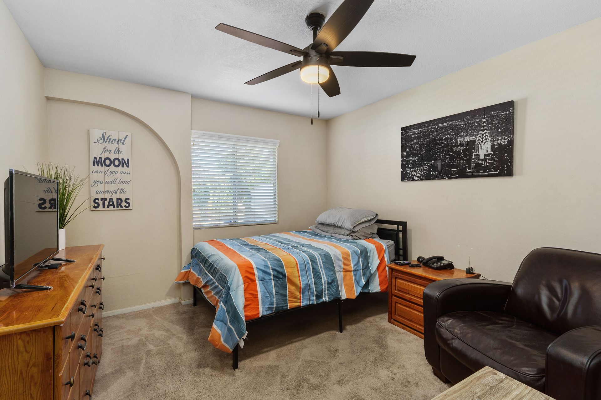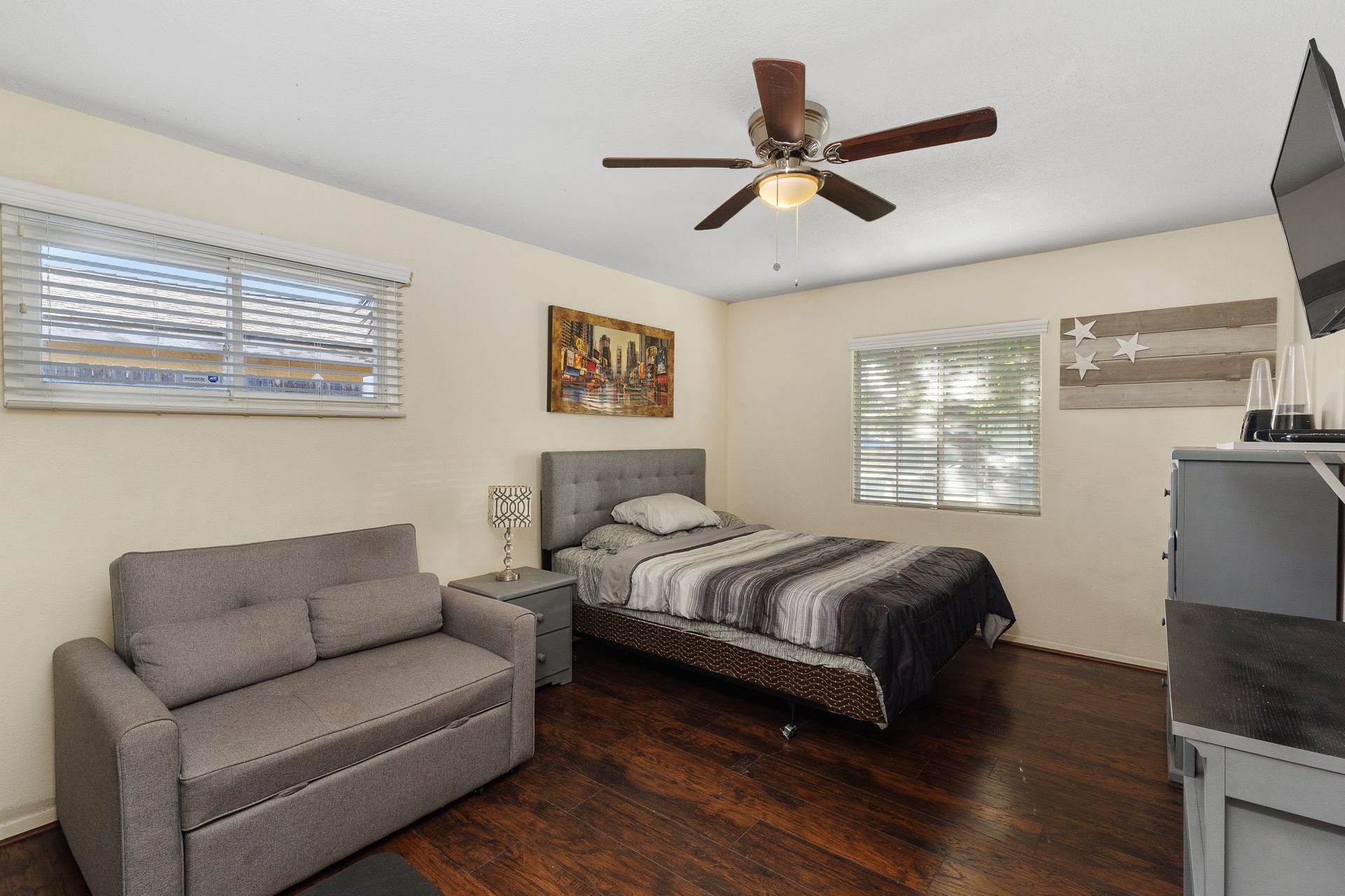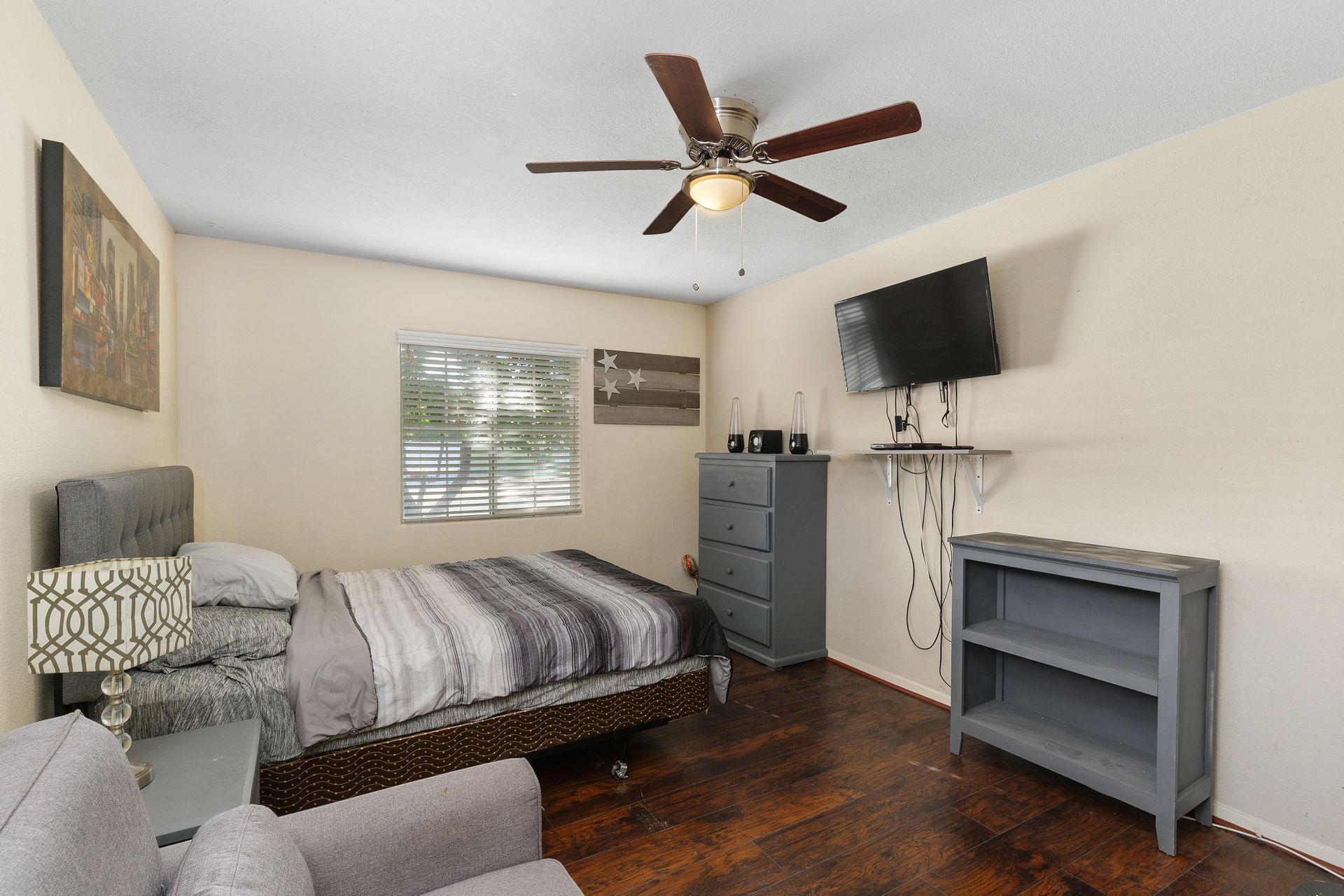 Charming Riverside pool home situated on a beautifully manicured lot. This single-story home boasts of well-designed living space, featuring three bedrooms and two bathrooms. Upon entry, you're greeted by a large open living room that sets the stage for stylish and comfortable living. All common areas include tile flooring. The primary suite is generously sized and includes an ensuite with a walk-in shower. The two additional bedrooms on the opposite side of the house are bright and inviting, each equipped with large closets and ceiling fans. The open kitchen includes Formica countertops and backsplash, ample cabinetry, a built-in oven along with a newer LG range. It's waiting for its next culinary enthusiast!! Find the dining area centrally located adjacent to the kitchen for seamless flow. French doors open to your outdoor covered patio with a TV and gas fire pit. Perfect for indoor-outdoor living. Step outside to discover a true backyard paradise. Enjoy the sparkling pool, spacious area, gazebo with a second (wood) fire pit, two Ponytail palm trees, and a Mediterranean Fan palm. This outdoor space is ideal for relaxation and entertainment alike. Experience the ideal blend of comfort, style, and outdoor living in this welcoming home.