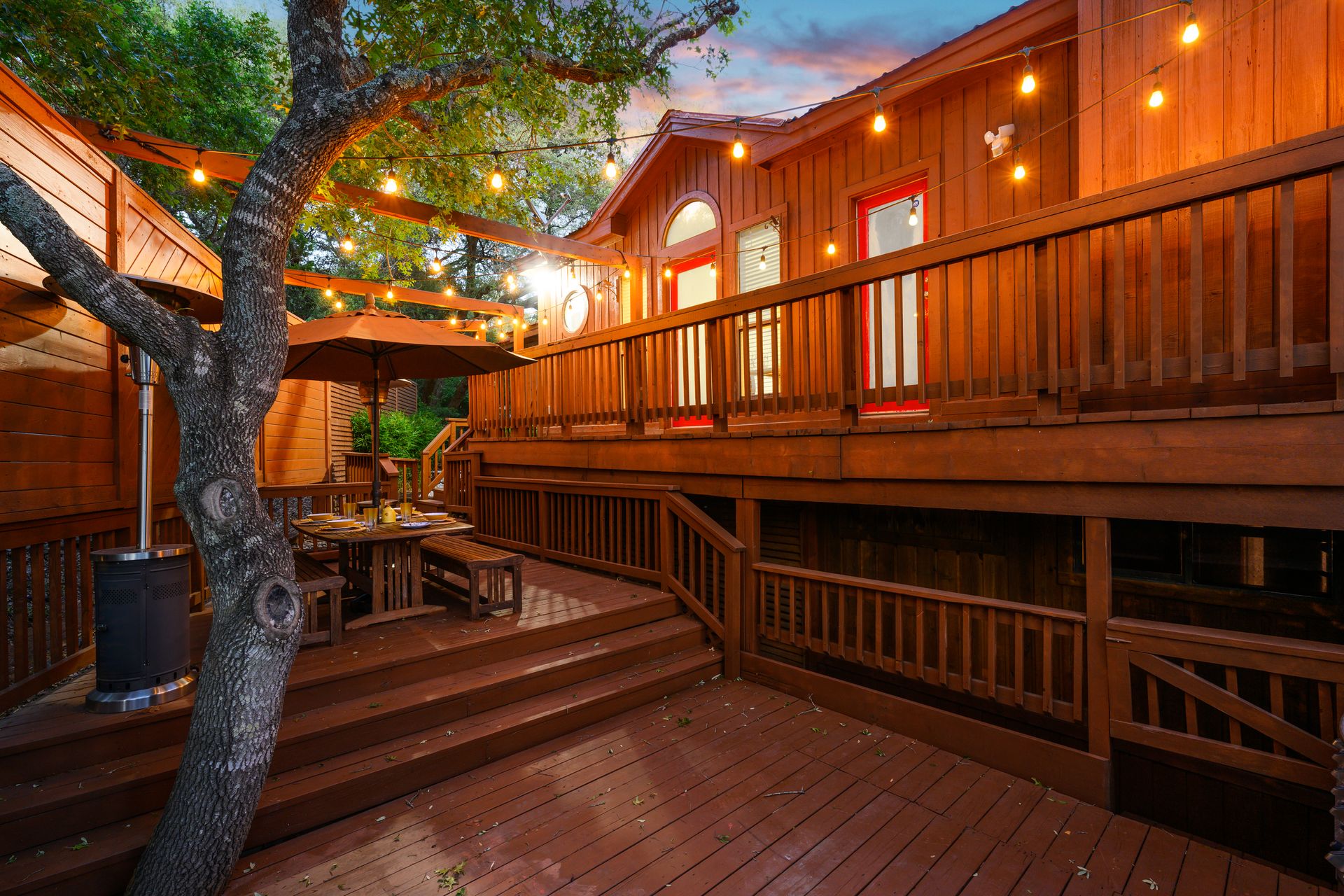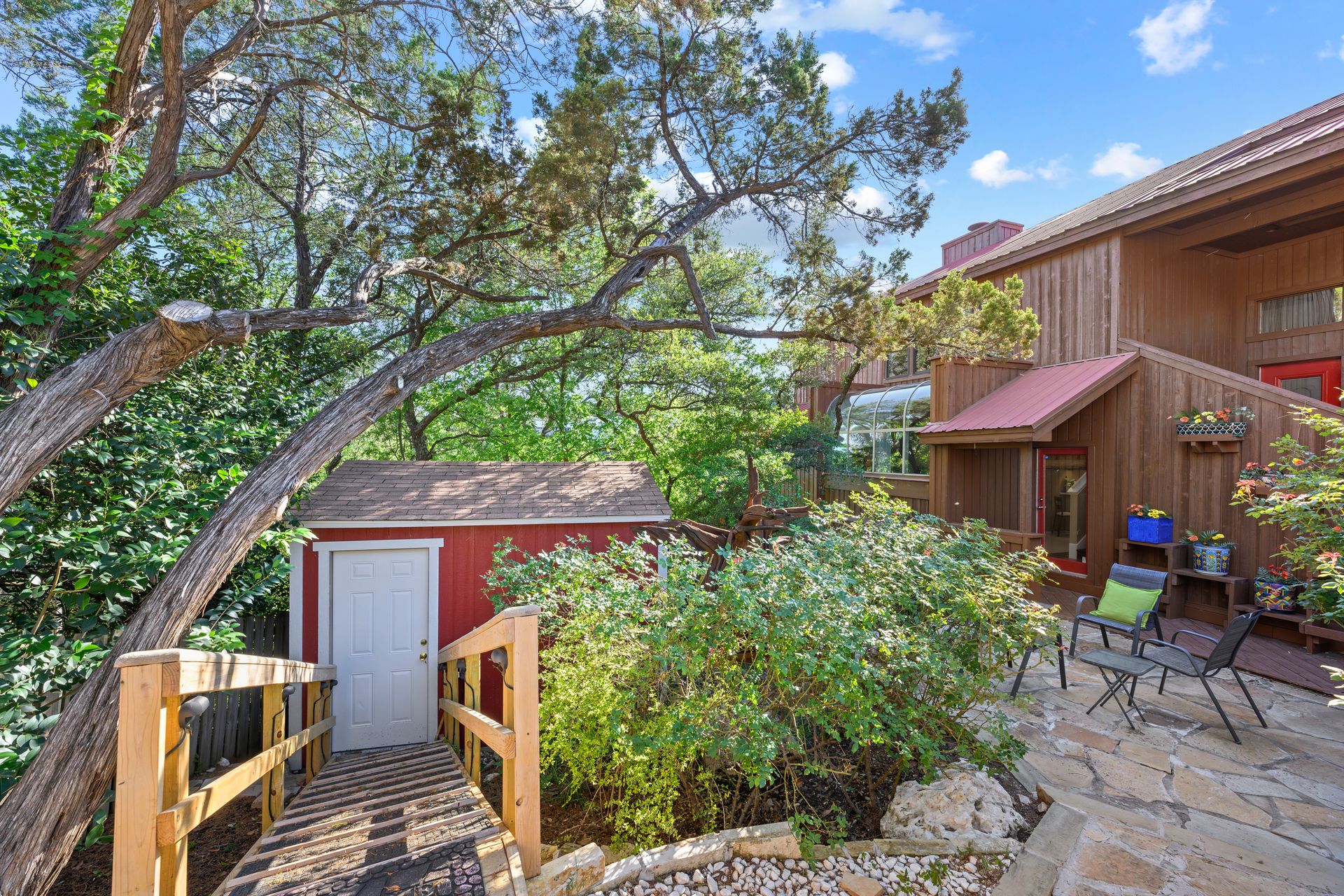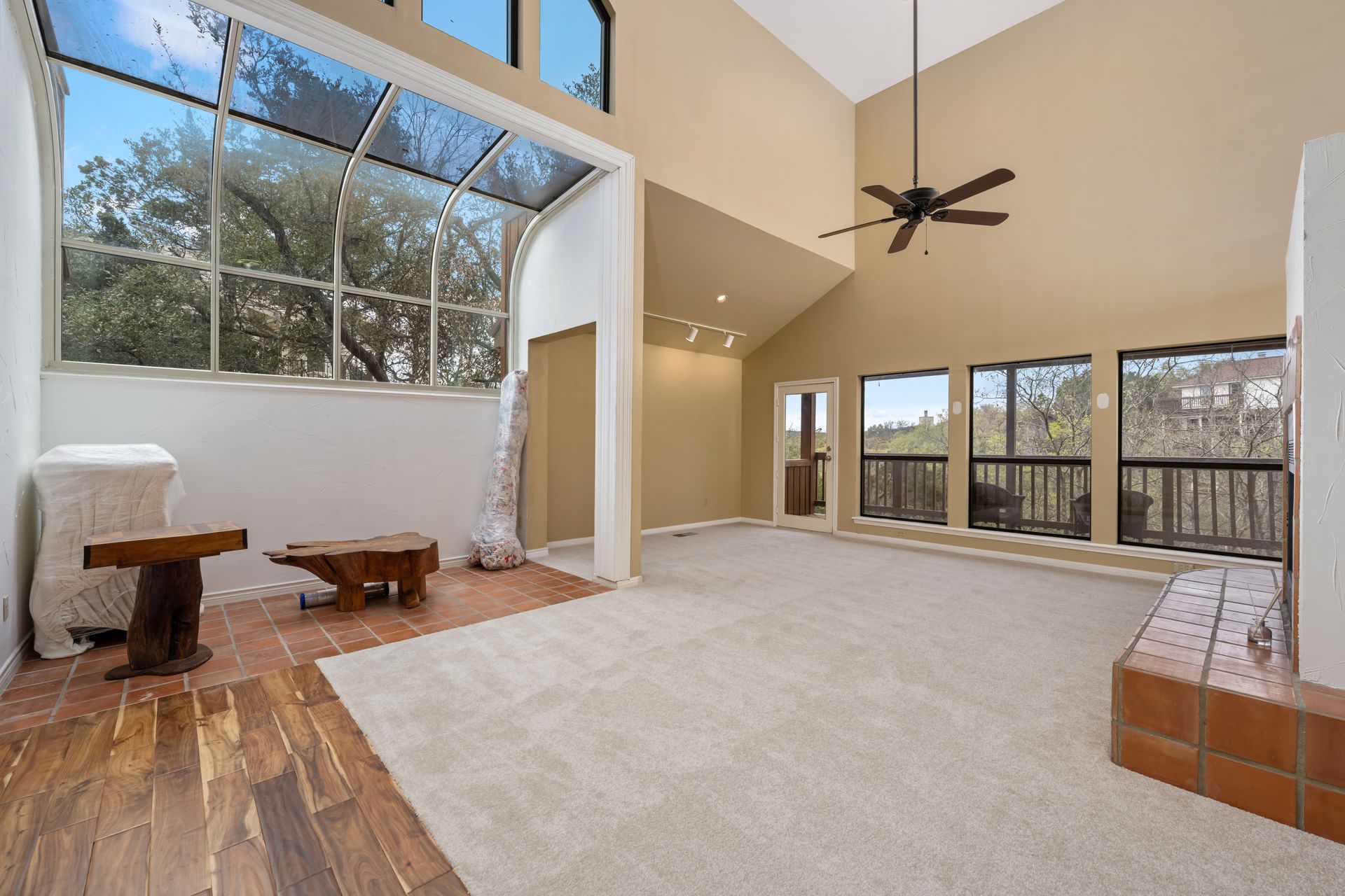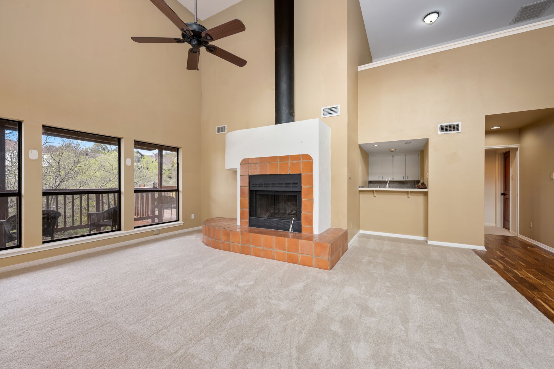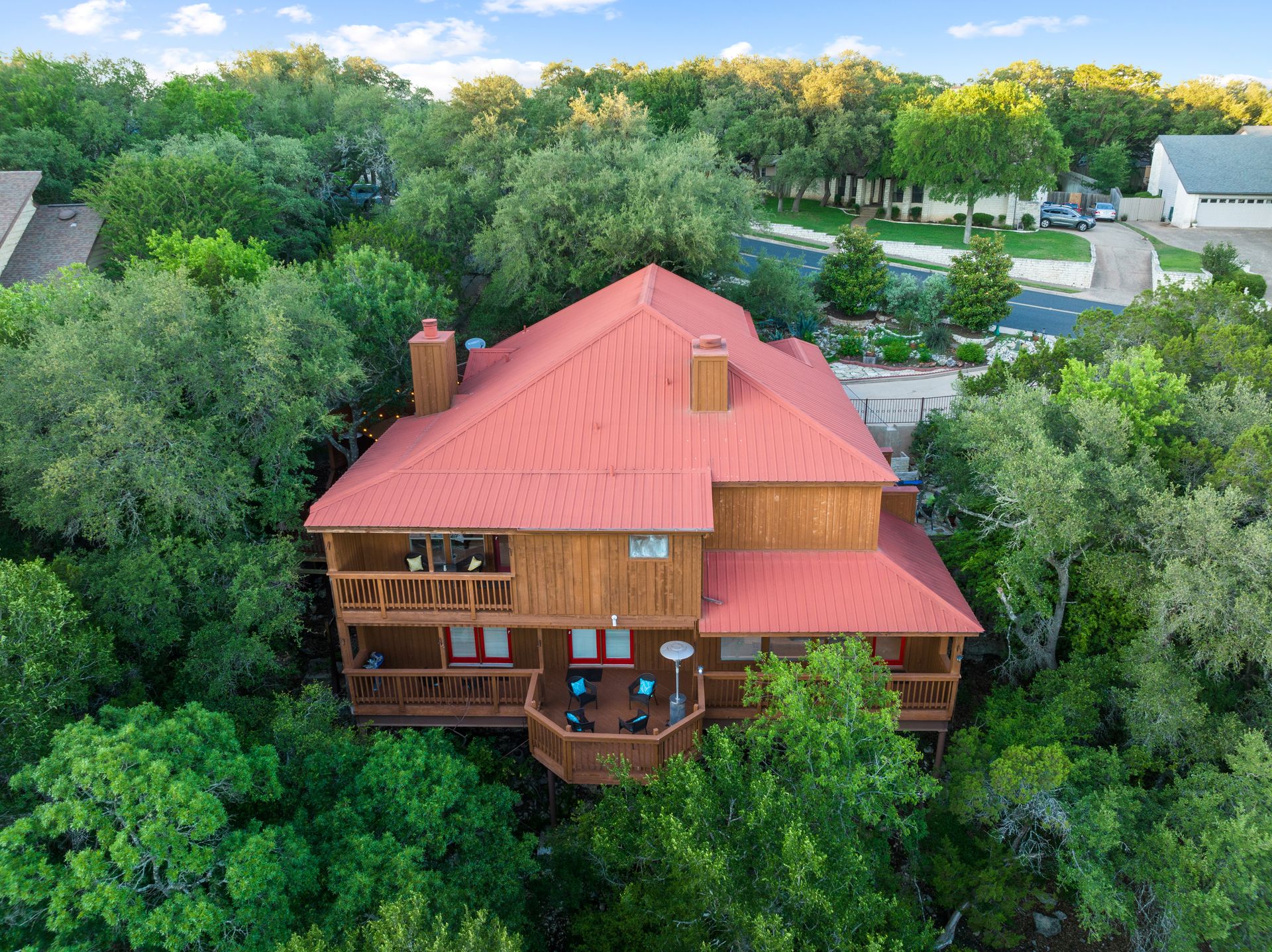 Stunning canyon views and sunsets with a low maintenance is yours with this Unique Multi-level home. Zoned to the sought after RRISD Laural Mountain Elementary, Canyon Vista Middle School, and Westwood High School. The large stately primary bedroom is on the main level with a private deck and fireplace. The kitchen is suited for both casual and formal dining with ample counter space and a grilling deck for a night of al fresco dining. The main-level loft is the perfect flex space to meet your personal needs. Large open family room with vintage Saltillo Tile fireplace, solarium, wet bar... the list goes on.Every room has a deck to the outdoors and a Sunken Rose Garden patio features a Bois D’Arc Kinetic Sculpture and is a lovely place to enjoy the outdoors is the icing on the cake! One block from the neighborhood park with trails and open spaces to enjoy.