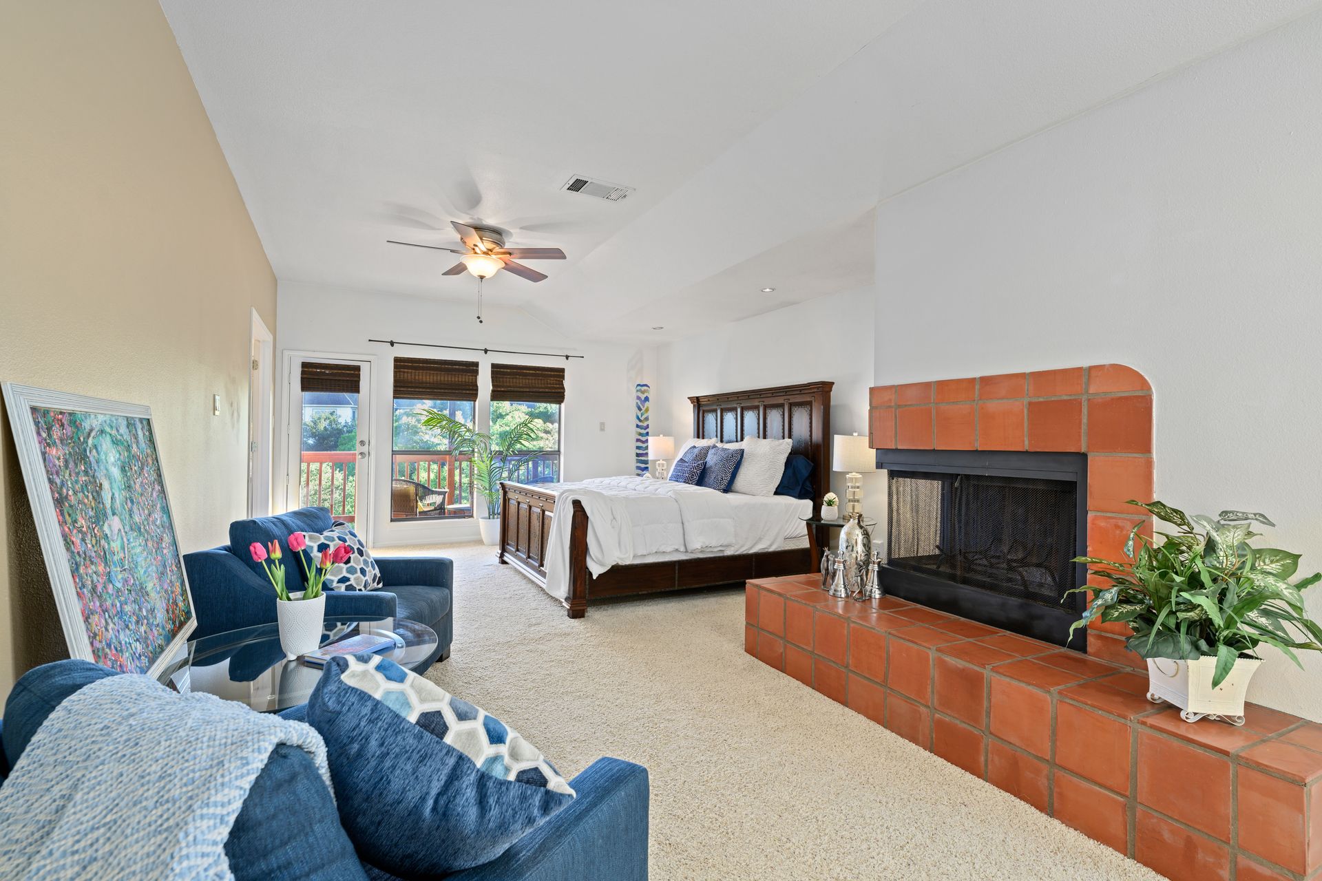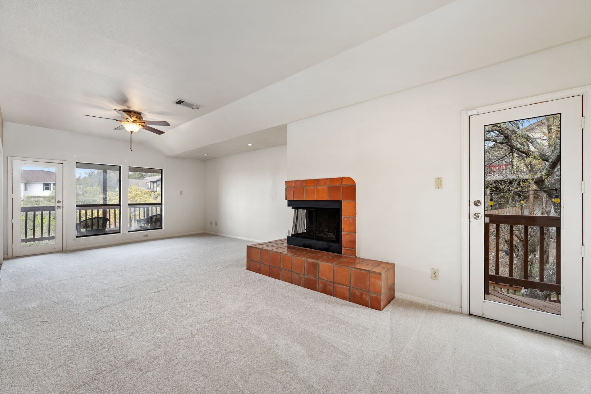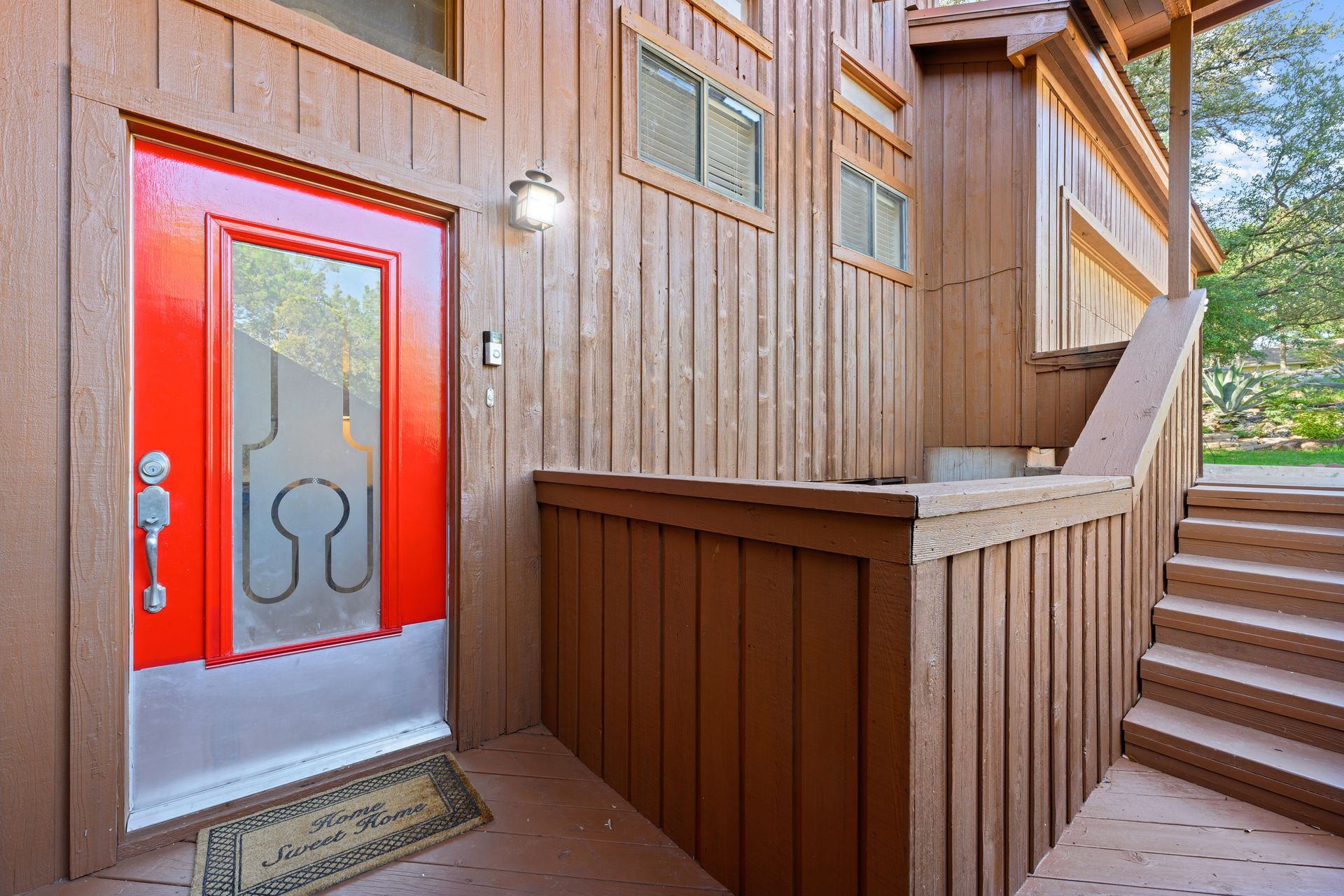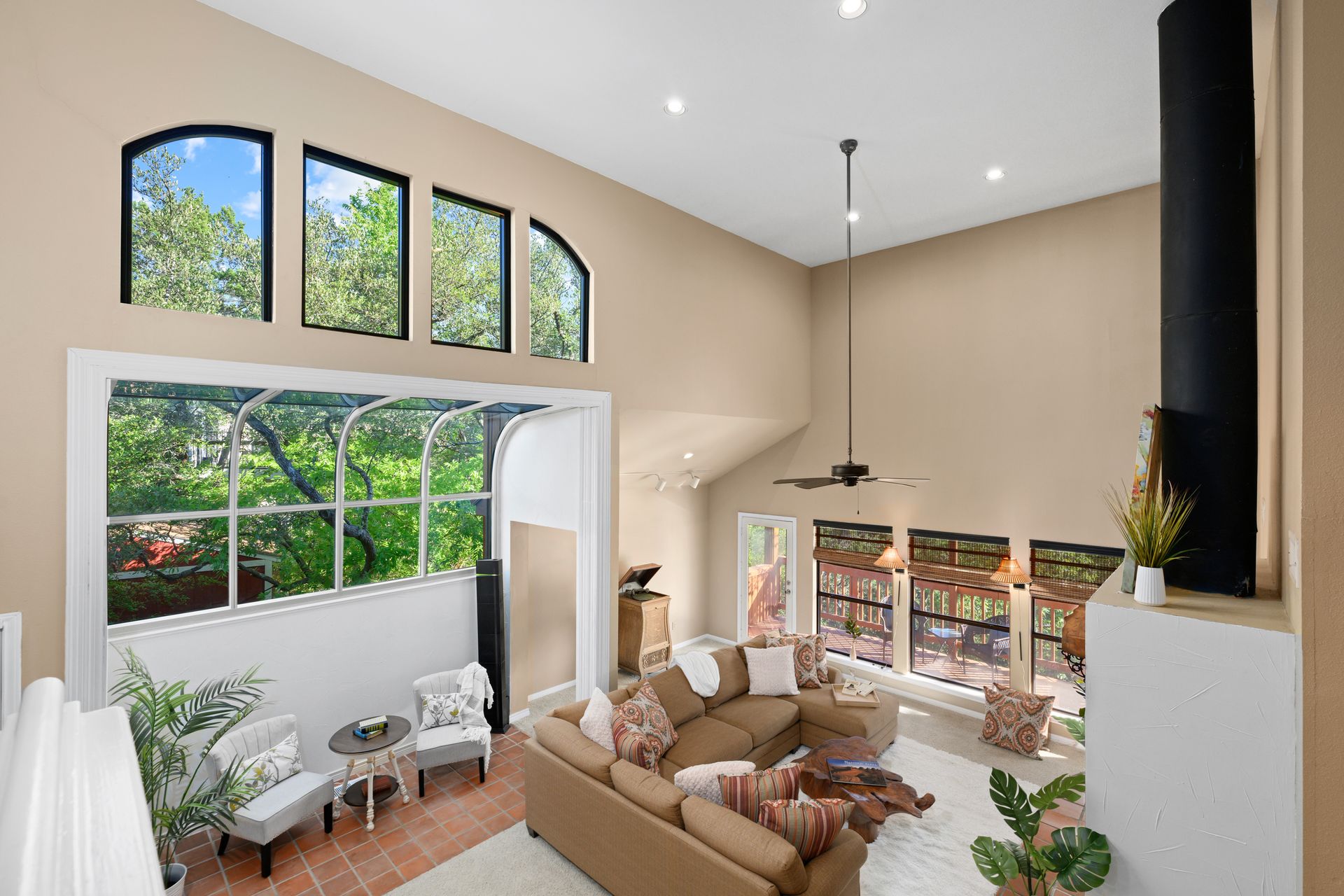 Stunning canyon views and sunsets with a low maintenance is yours with this Unique Multi-level home. Zoned to the sought after RRISD Laural Mountain Elementary, Canyon Vista Middle School, and Westwood High School. The large stately primary bedroom is on the main level with a private deck and fireplace. The kitchen is suited for both casual and formal dining with ample counter space and a grilling deck for a night of al fresco dining. The main-level loft is the perfect flex space to meet your personal needs. Large open family room with vintage Saltillo Tile fireplace, solarium, wet bar... the list goes on.Every room has a deck to the outdoors and a Sunken Rose Garden patio features a Bois D’Arc Kinetic Sculpture and is a lovely place to enjoy the outdoors is the icing on the cake! One block from the neighborhood park with trails and open spaces to enjoy.