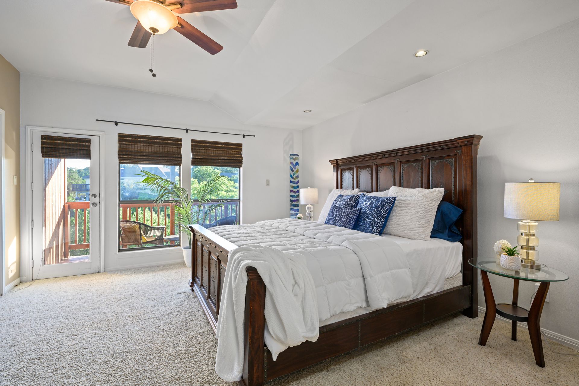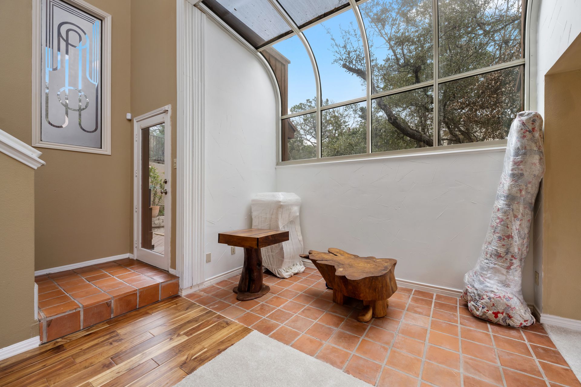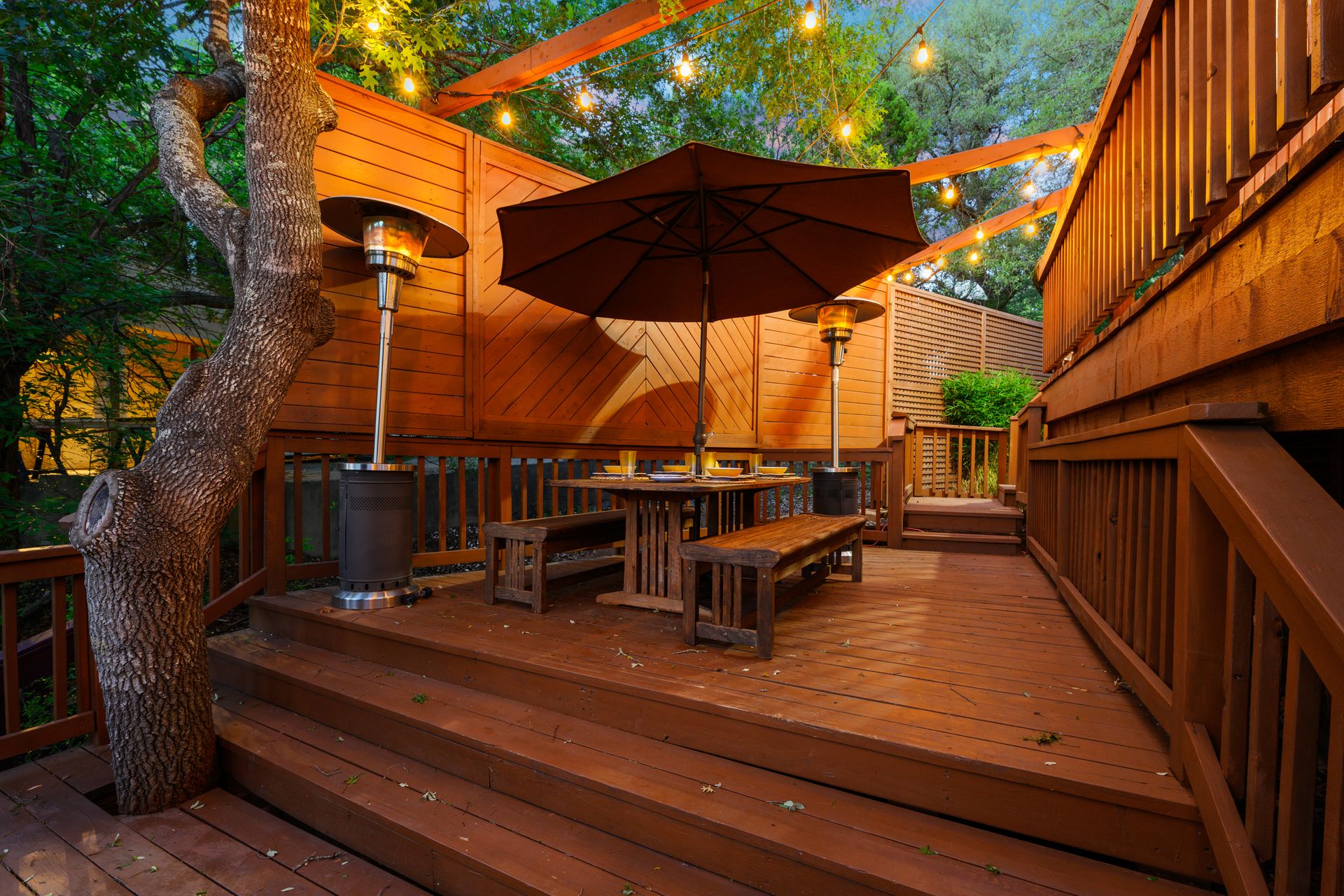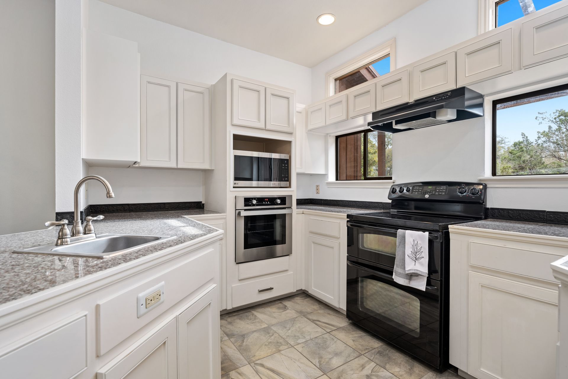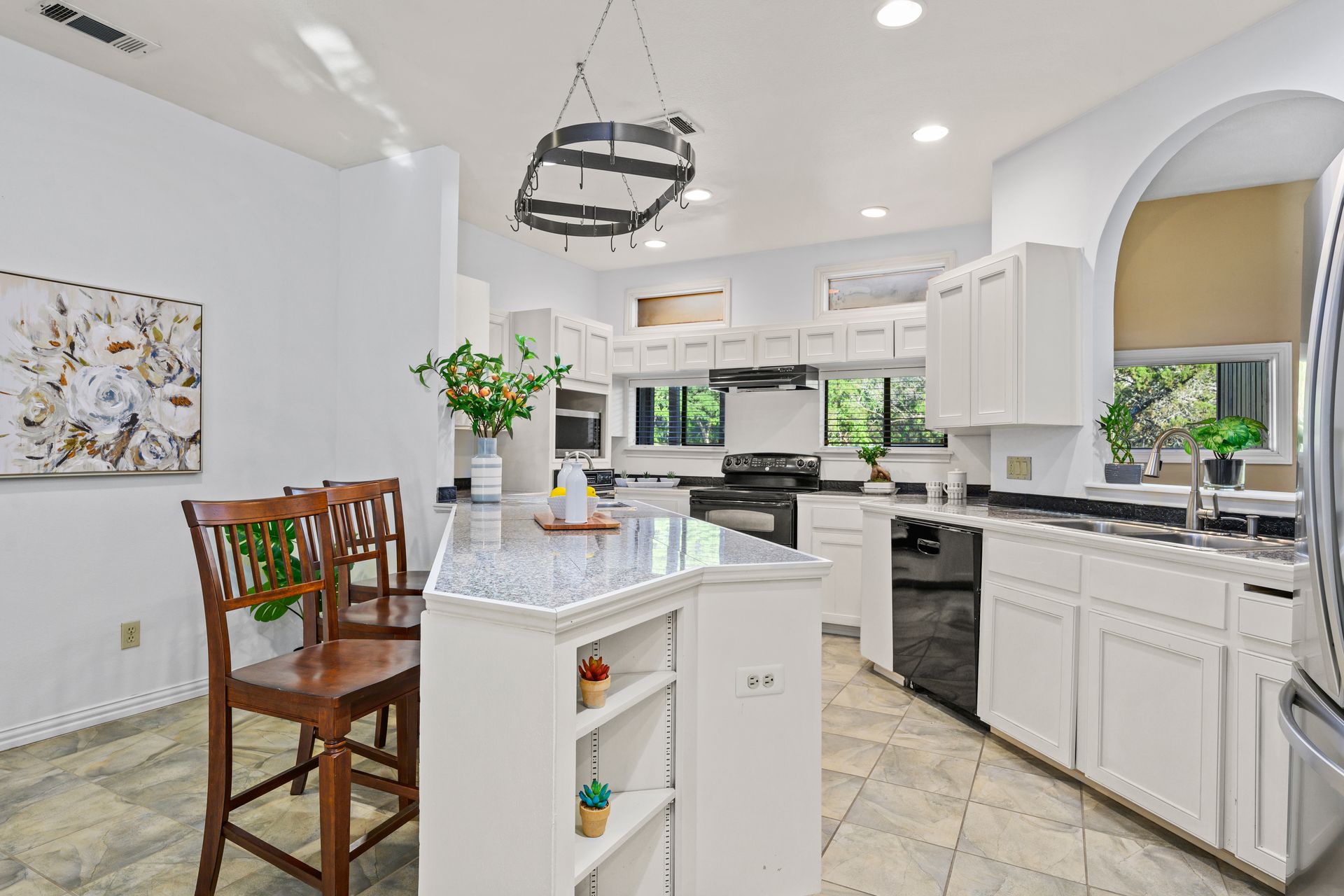 Stunning canyon views and sunsets with a low maintenance is yours with this Unique Multi-level home. Zoned to the sought after RRISD Laural Mountain Elementary, Canyon Vista Middle School, and Westwood High School. The large stately primary bedroom is on the main level with a private deck and fireplace. The kitchen is suited for both casual and formal dining with ample counter space and a grilling deck for a night of al fresco dining. The main-level loft is the perfect flex space to meet your personal needs. Large open family room with vintage Saltillo Tile fireplace, solarium, wet bar... the list goes on.Every room has a deck to the outdoors and a Sunken Rose Garden patio features a Bois D’Arc Kinetic Sculpture and is a lovely place to enjoy the outdoors is the icing on the cake! One block from the neighborhood park with trails and open spaces to enjoy.