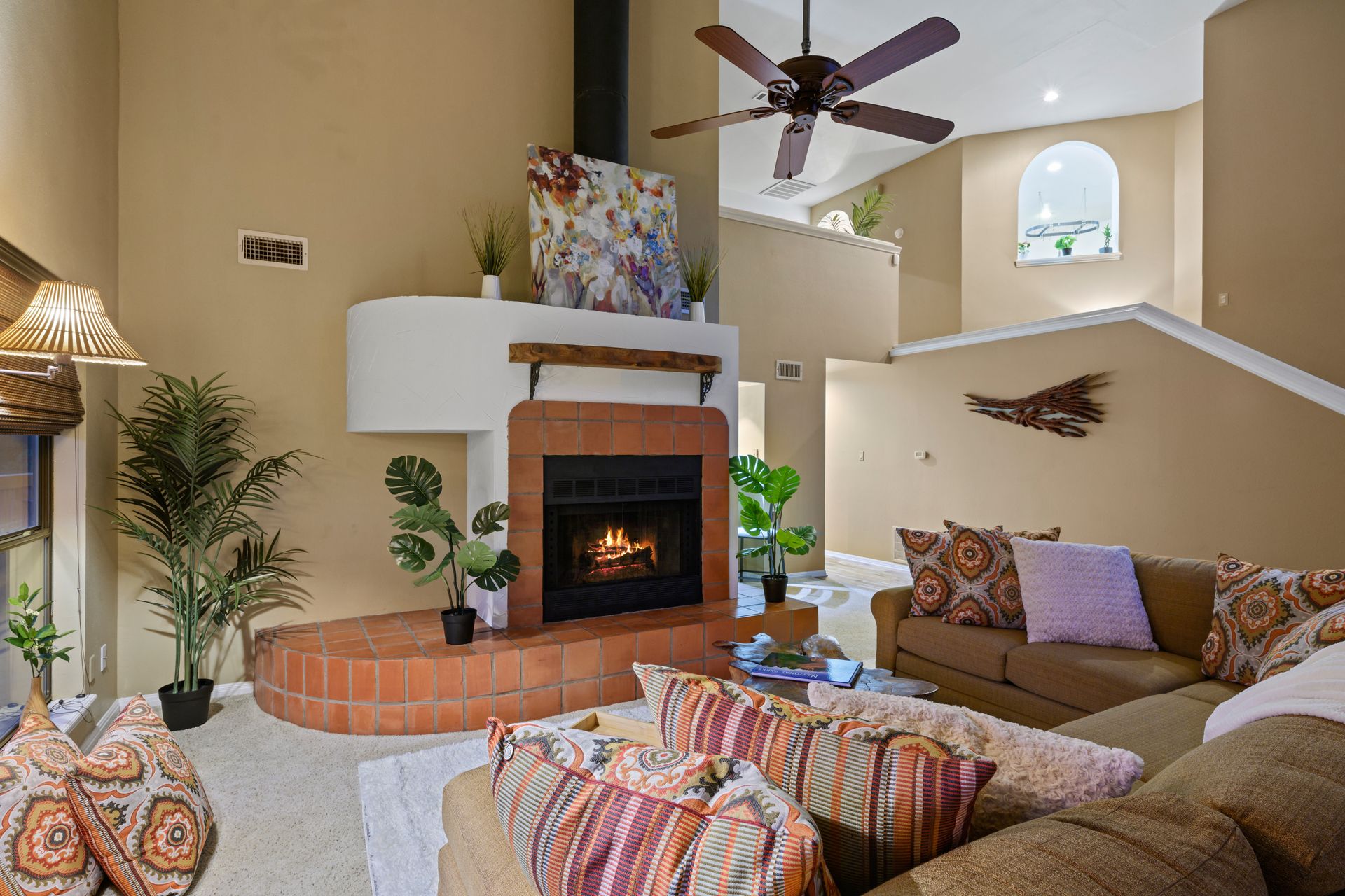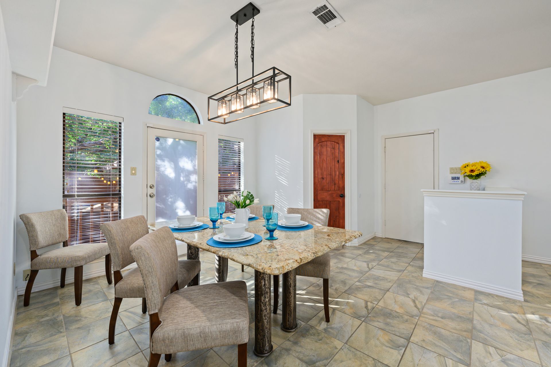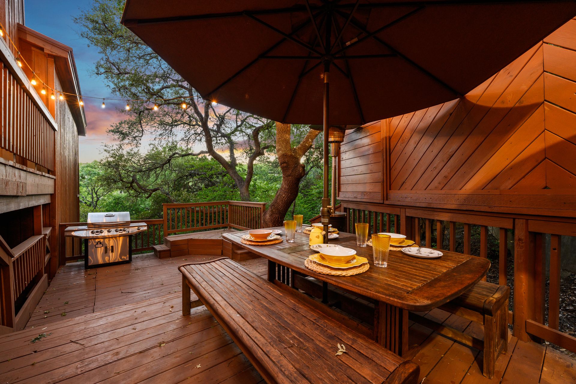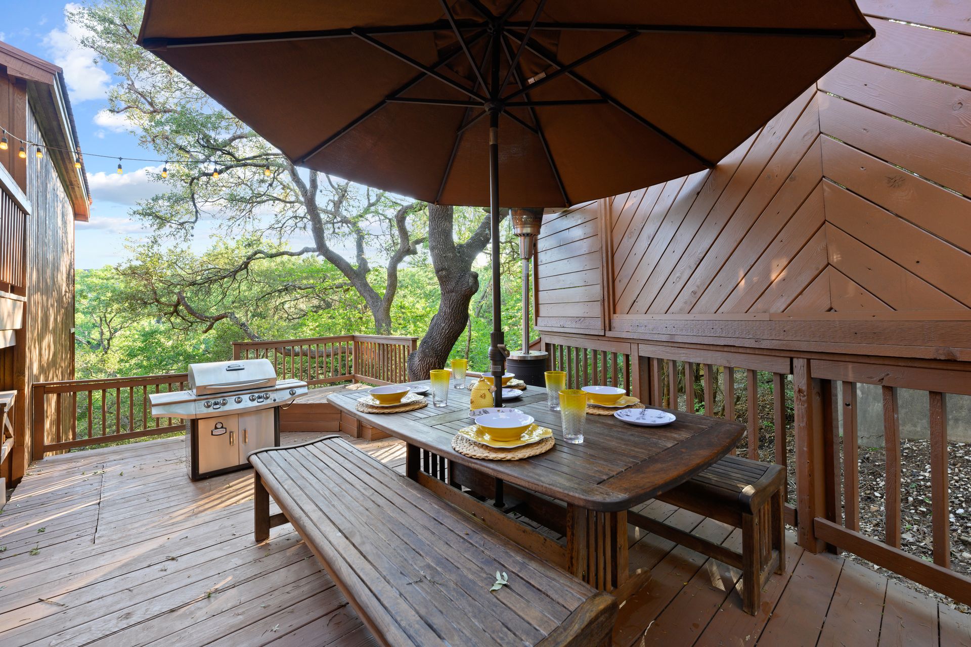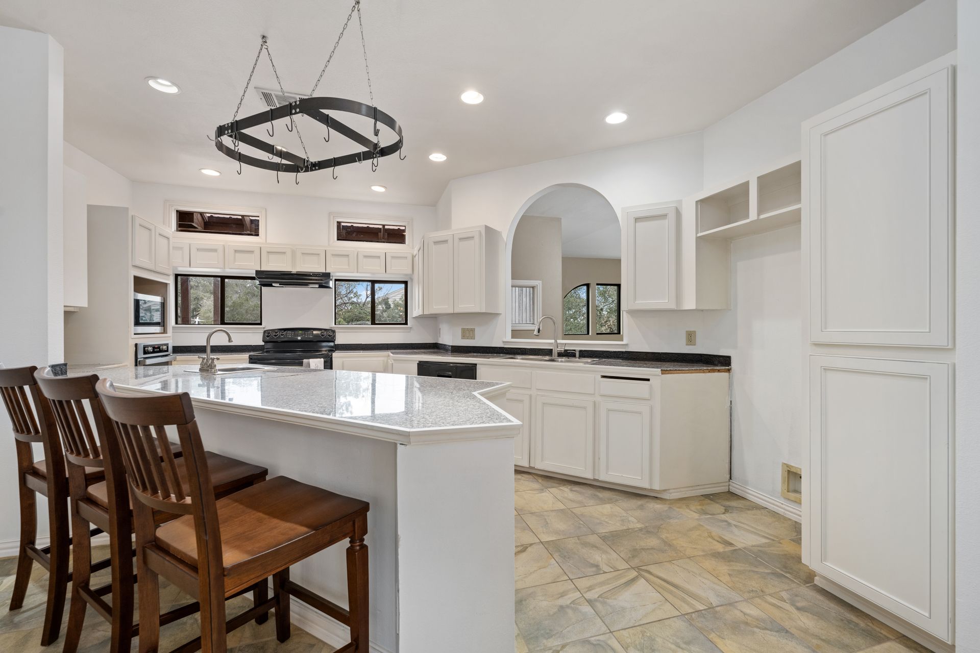 Stunning canyon views and sunsets with a low maintenance is yours with this Unique Multi-level home. Zoned to the sought after RRISD Laural Mountain Elementary, Canyon Vista Middle School, and Westwood High School. The large stately primary bedroom is on the main level with a private deck and fireplace. The kitchen is suited for both casual and formal dining with ample counter space and a grilling deck for a night of al fresco dining. The main-level loft is the perfect flex space to meet your personal needs. Large open family room with vintage Saltillo Tile fireplace, solarium, wet bar... the list goes on.Every room has a deck to the outdoors and a Sunken Rose Garden patio features a Bois D’Arc Kinetic Sculpture and is a lovely place to enjoy the outdoors is the icing on the cake! One block from the neighborhood park with trails and open spaces to enjoy.