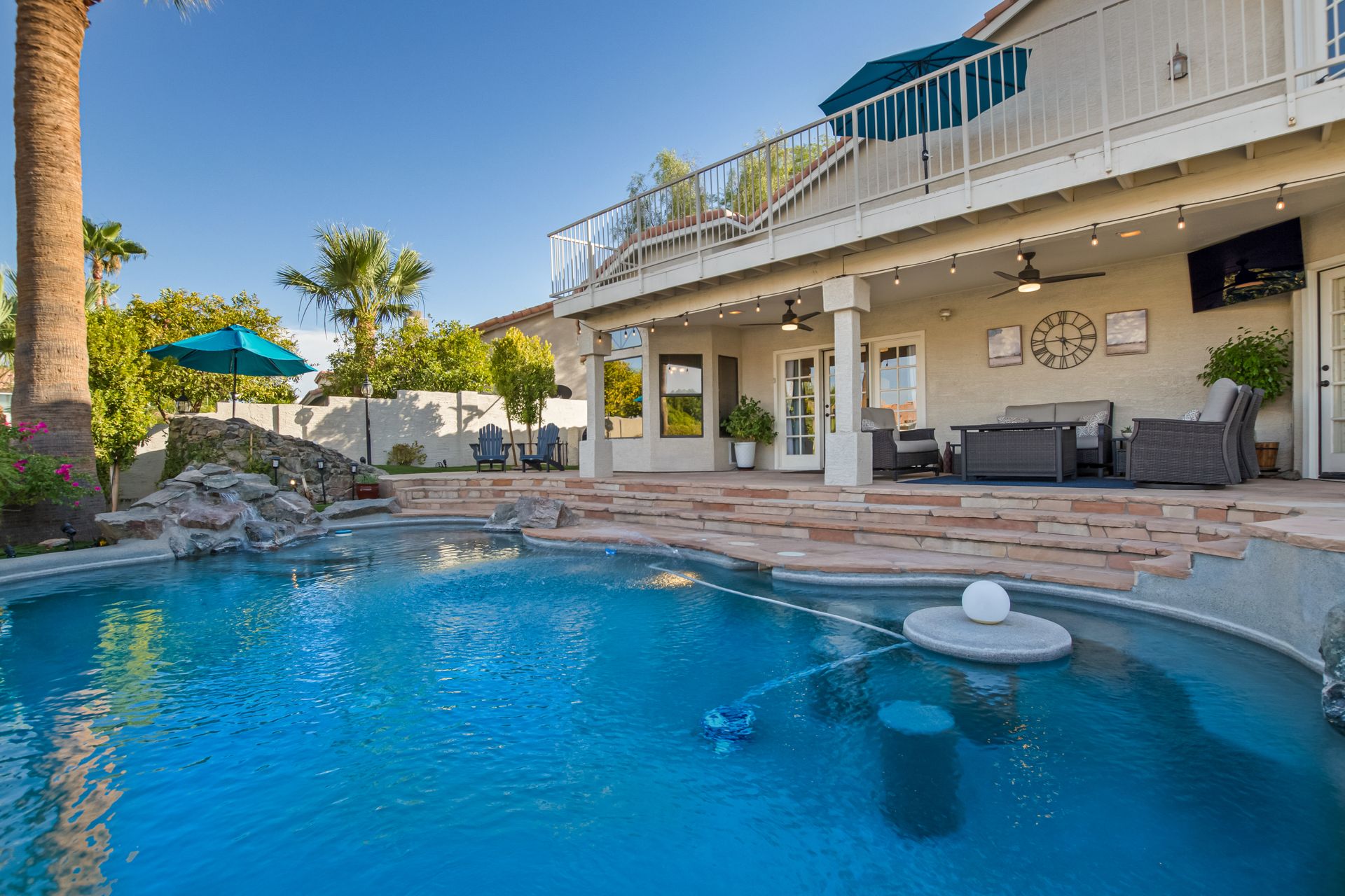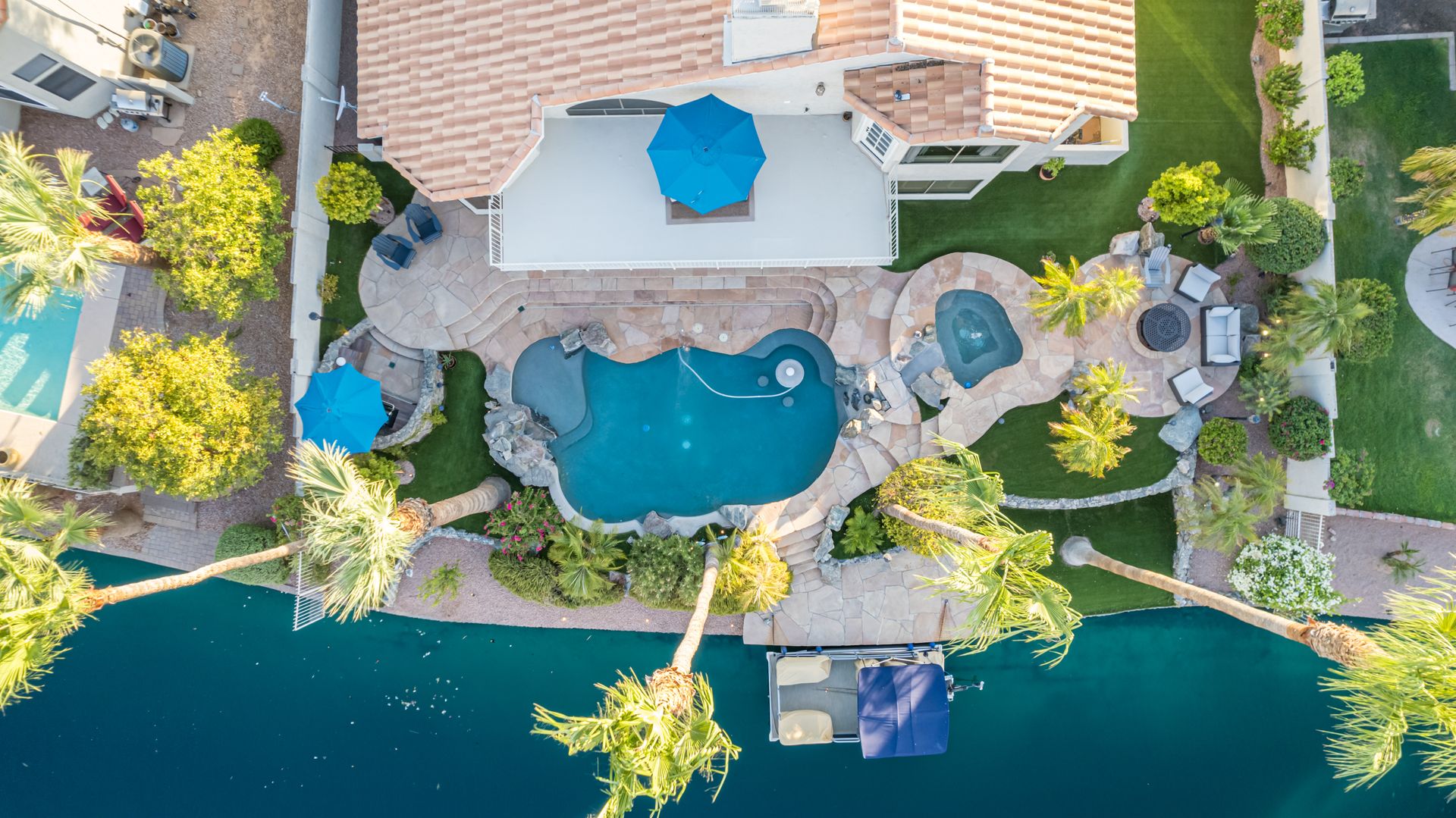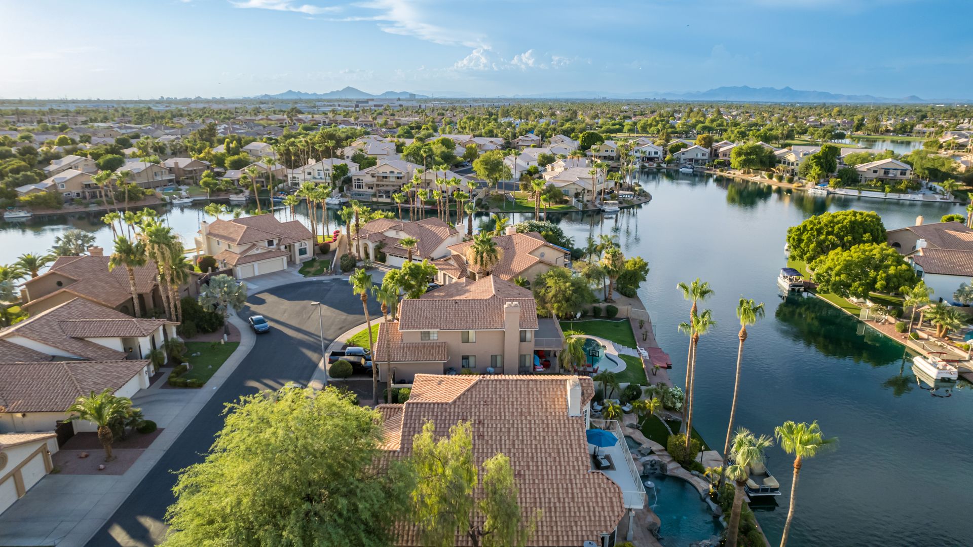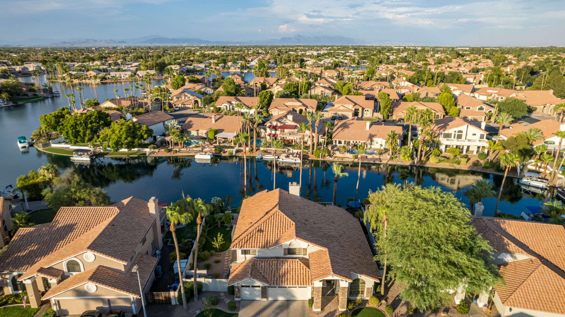 Welcome to Key Harbor, the epitome of waterfront living on The Islands in Gilbert, Arizona. This exquisite 3,126 square-foot, five-bedroom, two-and-one-half-bathroom home seamlessly combines luxurious comfort with breathtaking waterfront views. The open-concept living area is filled with natural light, showcasing stunning vistas. The kitchen features high-end Thermador appliances, granite countertops, and ample storage. The downstairs primary suite offers waterfront views, an en-suite bathroom with a jetted tub, a separate shower, and two walk-in closets. Upstairs, a coffee bar and four well-appointed bedrooms await. Make your way outside to the expansive patio, pool, heated spa, sitting areas, and built-in barbeque perfect for unwinding or hosting gatherings. Own this waterfront sanctuary and embrace an exceptional lifestyle of luxury, breathtaking views, and unparalleled lifestyle!