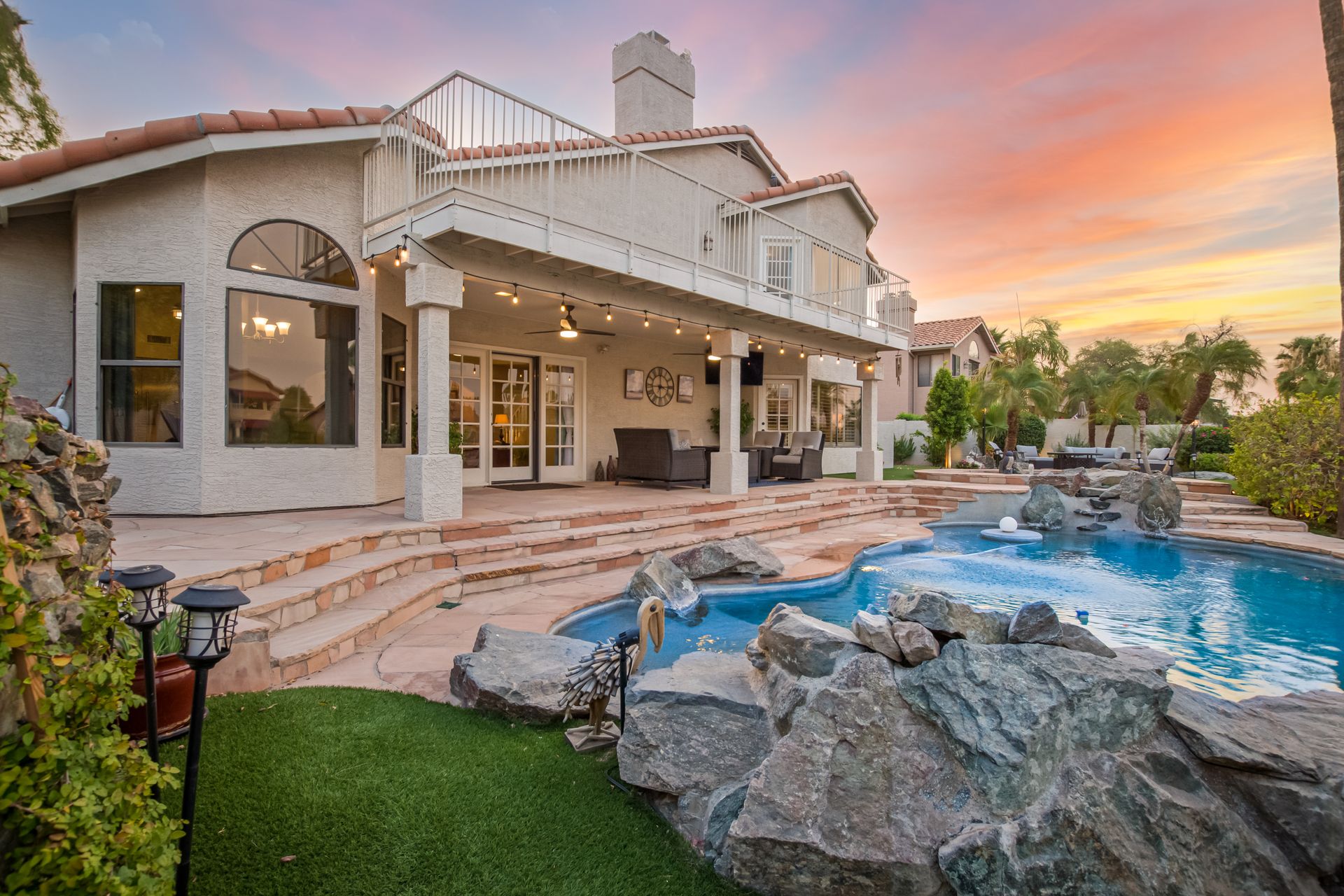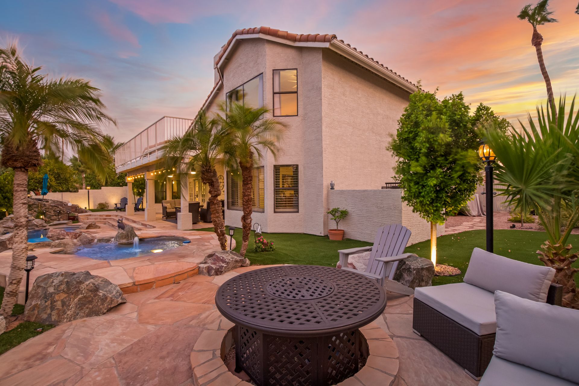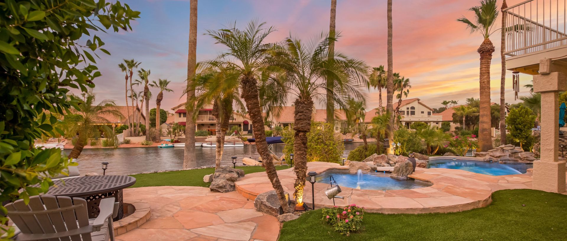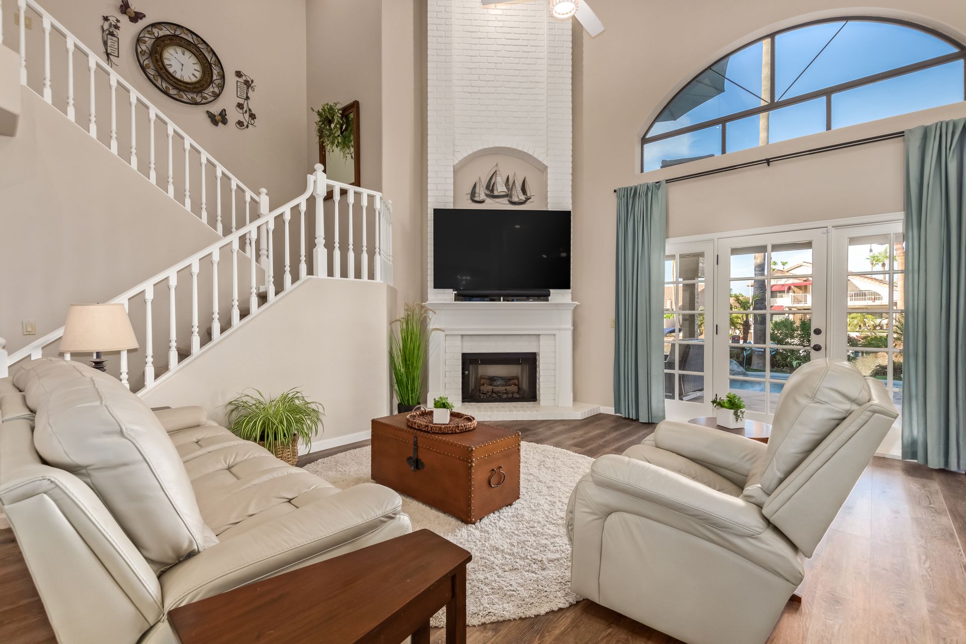 Welcome to Key Harbor, the epitome of waterfront living on The Islands in Gilbert, Arizona. This exquisite 3,126 square-foot, five-bedroom, two-and-one-half-bathroom home seamlessly combines luxurious comfort with breathtaking waterfront views. The open-concept living area is filled with natural light, showcasing stunning vistas. The kitchen features high-end Thermador appliances, granite countertops, and ample storage. The downstairs primary suite offers waterfront views, an en-suite bathroom with a jetted tub, a separate shower, and two walk-in closets. Upstairs, a coffee bar and four well-appointed bedrooms await. Make your way outside to the expansive patio, pool, heated spa, sitting areas, and built-in barbeque perfect for unwinding or hosting gatherings. Own this waterfront sanctuary and embrace an exceptional lifestyle of luxury, breathtaking views, and unparalleled lifestyle!