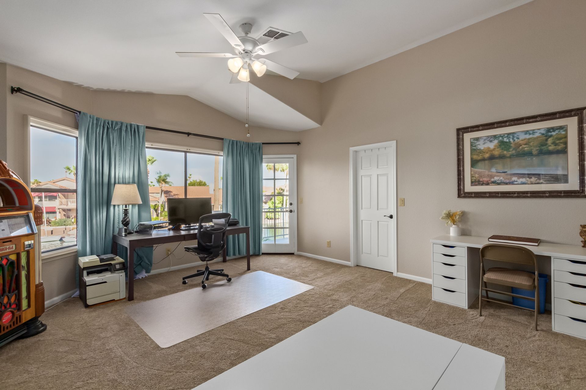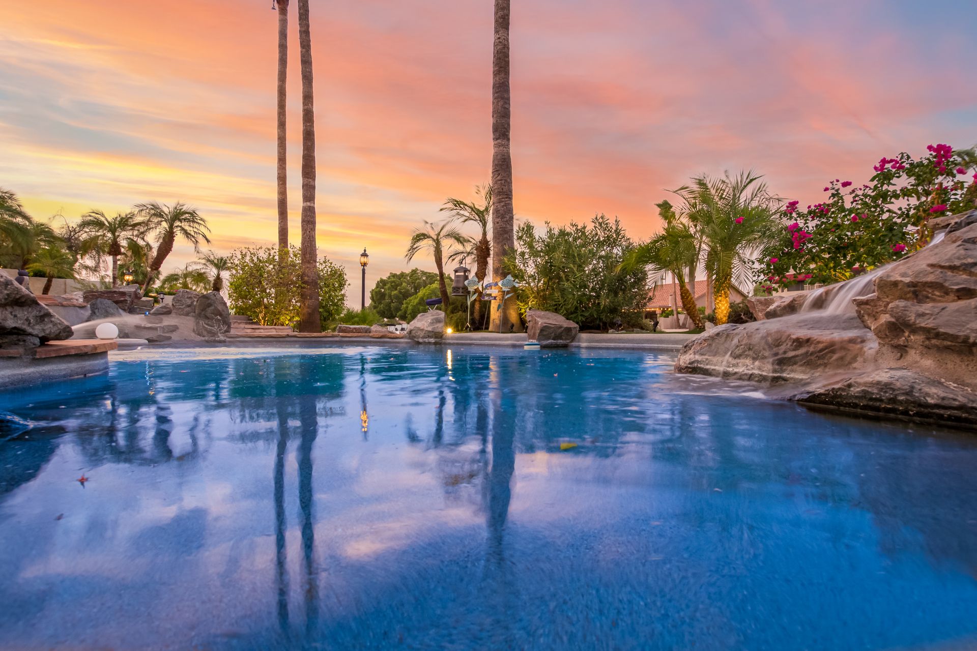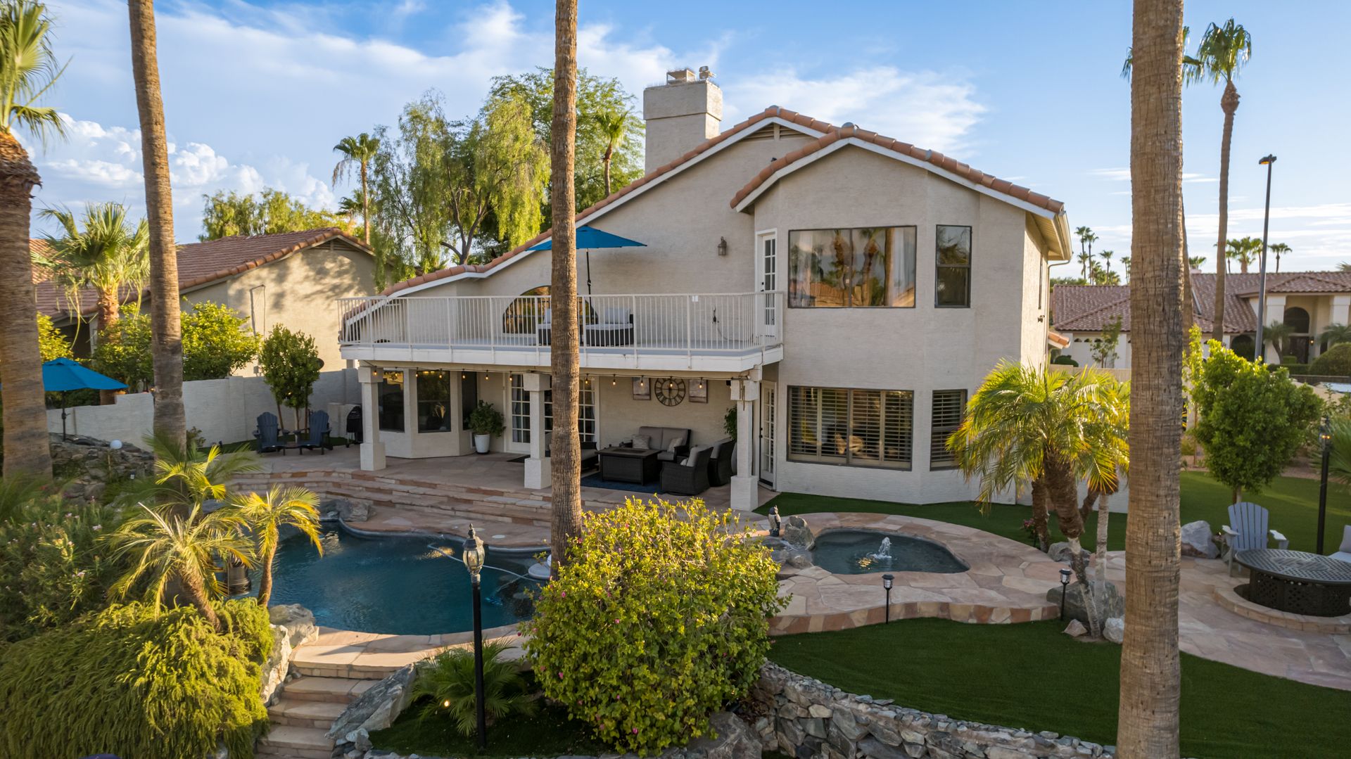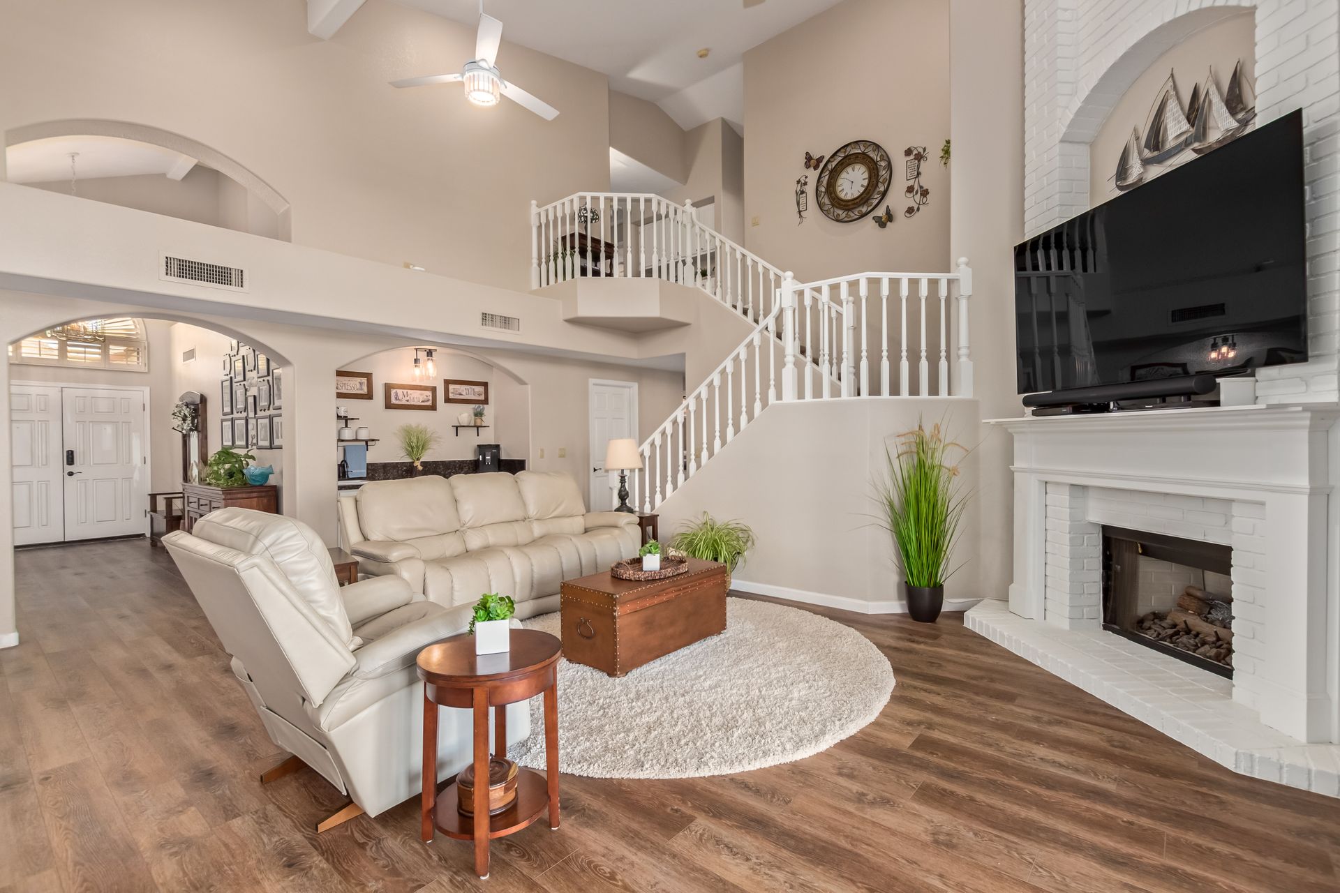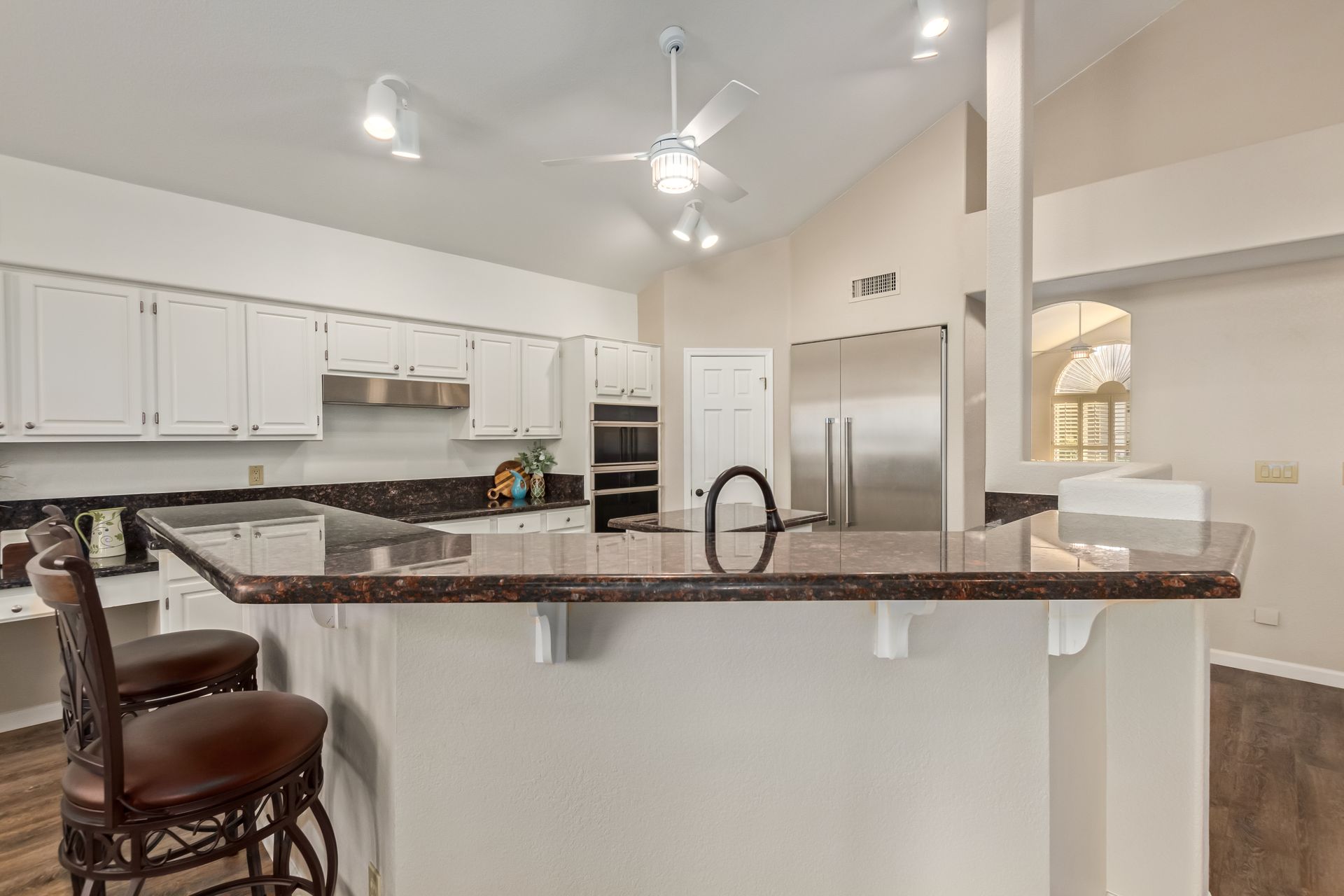 Welcome to Key Harbor, the epitome of waterfront living on The Islands in Gilbert, Arizona. This exquisite 3,126 square-foot, five-bedroom, two-and-one-half-bathroom home seamlessly combines luxurious comfort with breathtaking waterfront views. The open-concept living area is filled with natural light, showcasing stunning vistas. The kitchen features high-end Thermador appliances, granite countertops, and ample storage. The downstairs primary suite offers waterfront views, an en-suite bathroom with a jetted tub, a separate shower, and two walk-in closets. Upstairs, a coffee bar and four well-appointed bedrooms await. Make your way outside to the expansive patio, pool, heated spa, sitting areas, and built-in barbeque perfect for unwinding or hosting gatherings. Own this waterfront sanctuary and embrace an exceptional lifestyle of luxury, breathtaking views, and unparalleled lifestyle!
