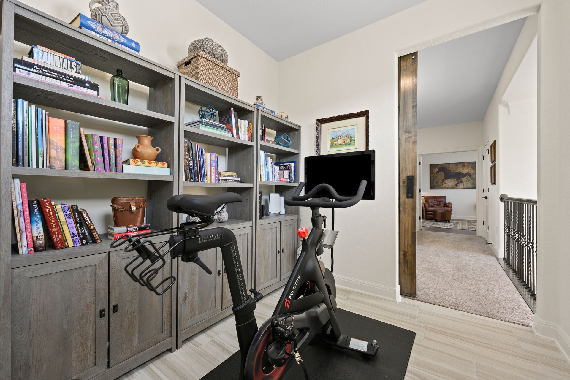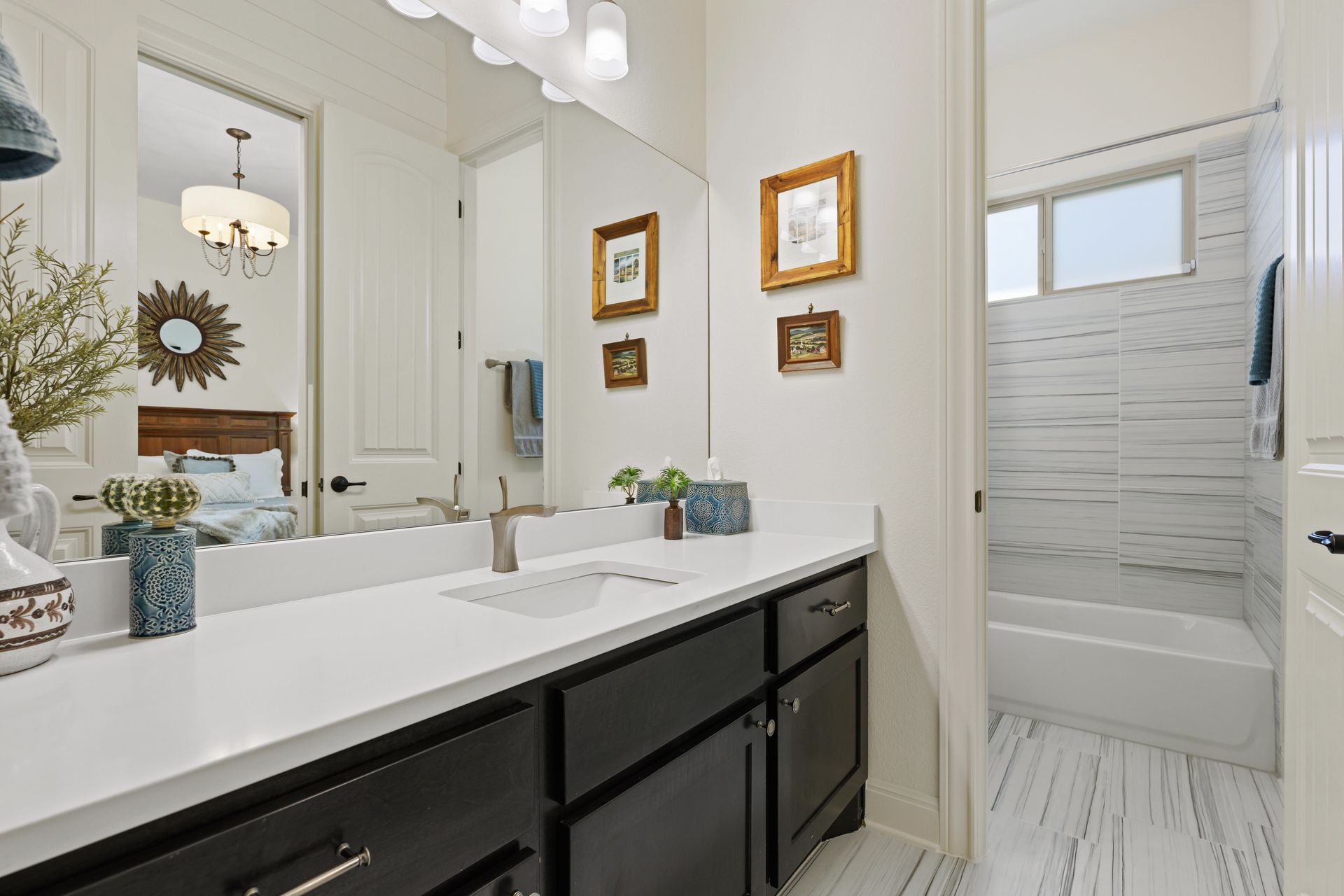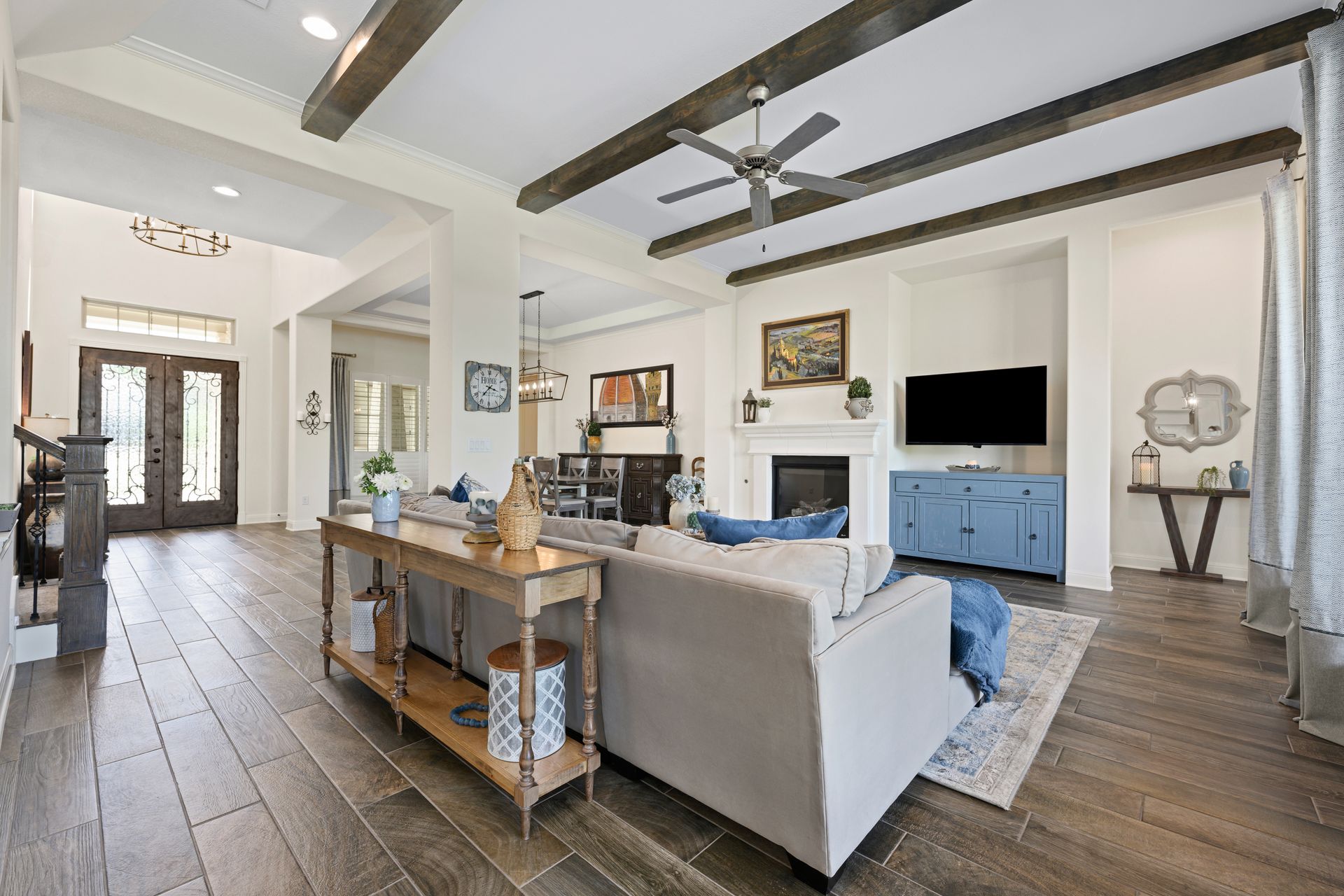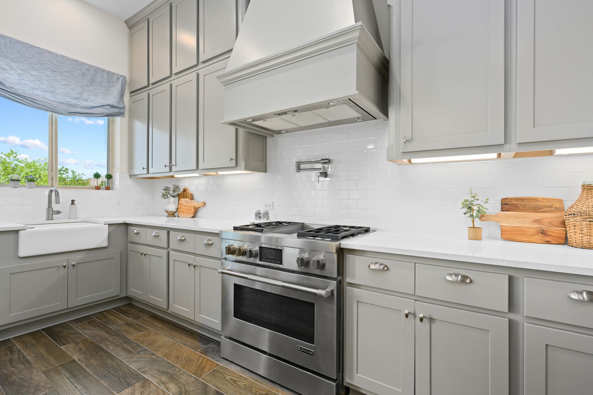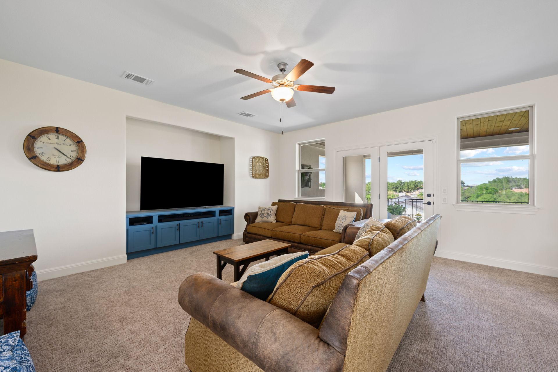 Hill Country Craftsman home is a true escape in the active boating and lifestyle community of The Enclave at Rough Hollow. This private corner half-acre + home site blends seamlessly into its surroundings and is complimented by the recently completed home with stately white limestone columns, concrete tile roof, stained corbels, and pergola. Transitional architectural details enhance the dramatic ceilings and custom lighting and window treatments throughout. Grand areas with a massive kitchen open to living area, informal and formal dining and covered outdoor living area with kitchen, all overlooking private fenced rear yard with room for pool and additional outdoor activities. Custom gray painted shaker style cabinets with quartz countertops and farmhouse sink are enhanced by Jenn-Air® appliances that includes four burner range with griddle, built-in ovens and microwave, built-in refrigerator and wine refrigerator. Private master wing with sitting area and a thoughtfully designed bath with dual vanities, dual closets, walk-in shower, soaking tub, shiplap walls and barn door entry. First floor guest suite in addition to a private office that is adjacent full bath and can also be used as an additional downstairs suite. Upstairs office with built-in cabinetry is secluded and adjacent to exercise room with full bath. Upstairs living area with covered outdoor living and two bedrooms and additional bath. The Enclave has two gated entrances and is ideally positioned for living convenience and is walking distance from the Rough Hollow Marina, Canyon Grille and gyms. The shopping and dining centers, and exemplary Lake Travis schools are just minutes away. Community has onsite marina and restaurant, 4 pools with lazy river, play scape, pet, and park areas, tennis, pickle, bocce, and basketball courts, dog park, soccer fields, two pavilions, 23 miles of hike and bike trails, stand up paddle boards, kayaks, ship store, onsite activity and HOA director.