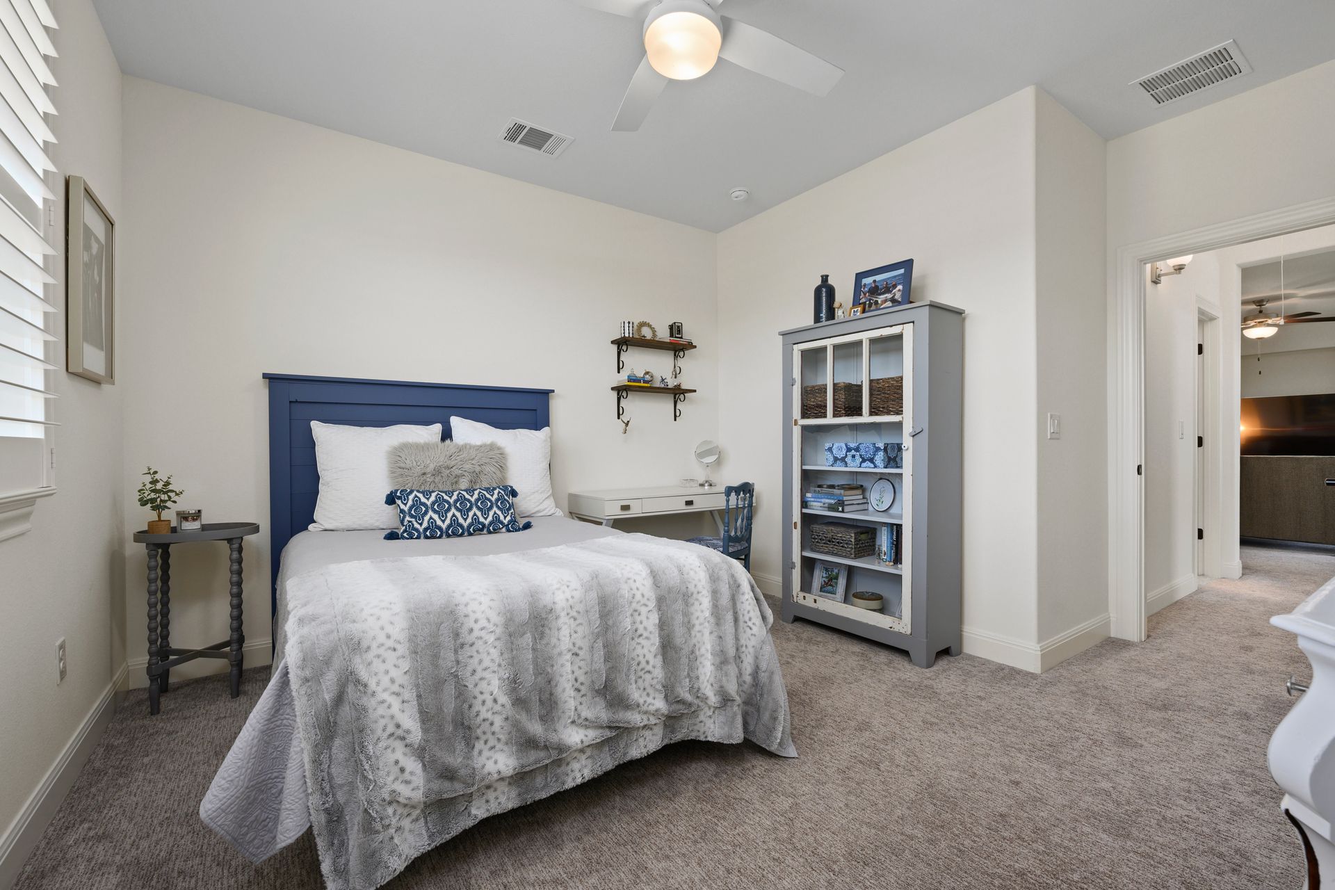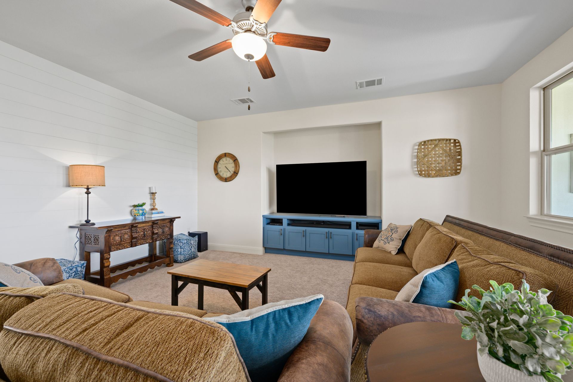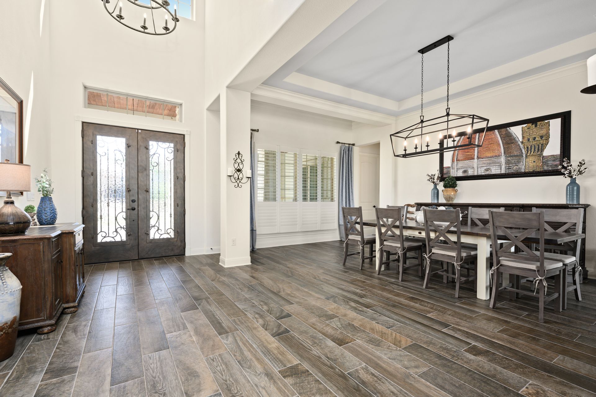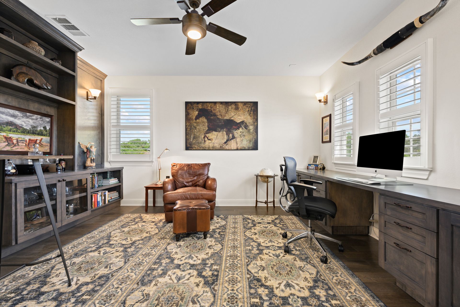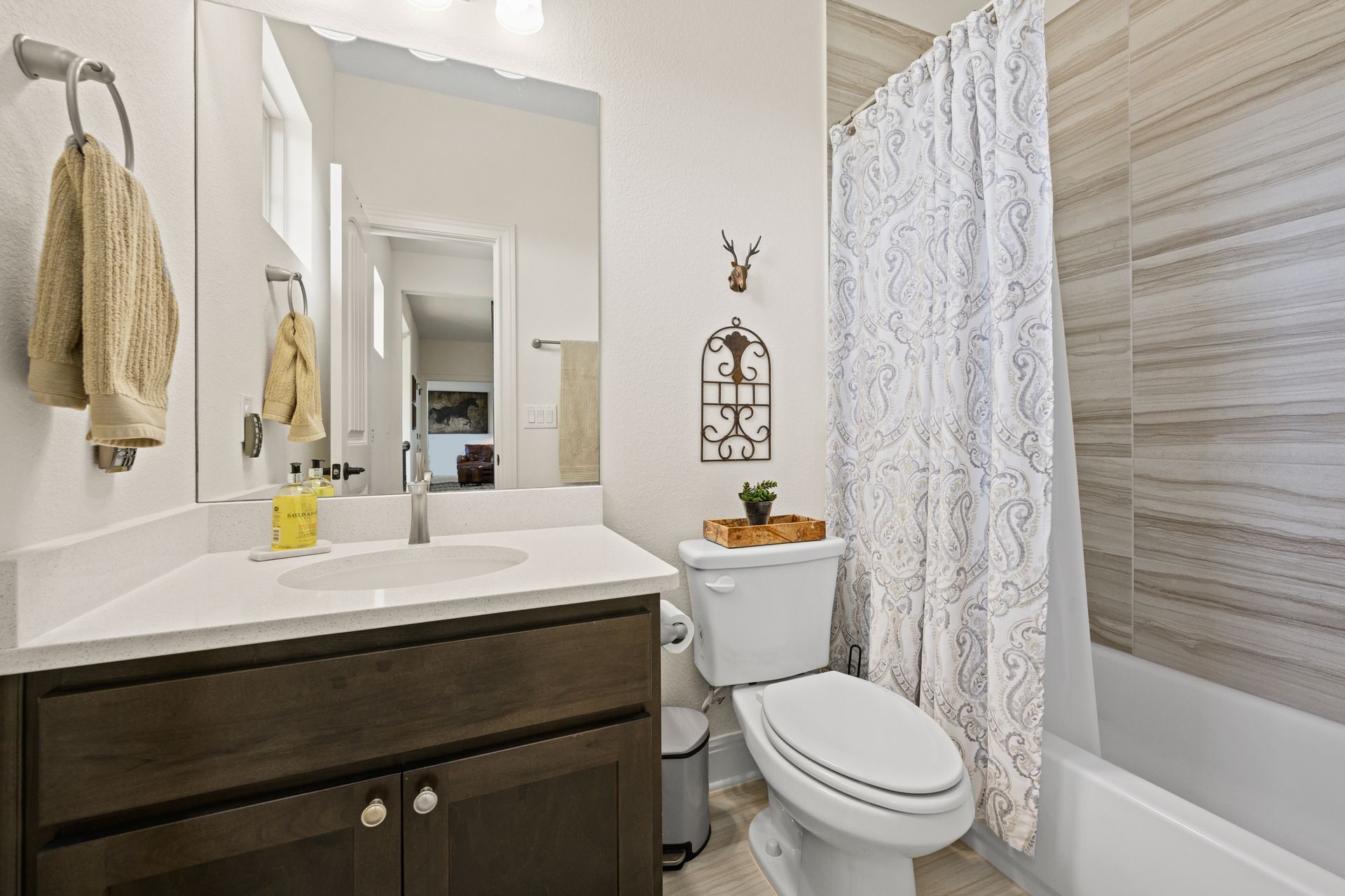 Hill Country Craftsman home is a true escape in the active boating and lifestyle community of The Enclave at Rough Hollow. This private corner half-acre + home site blends seamlessly into its surroundings and is complimented by the recently completed home with stately white limestone columns, concrete tile roof, stained corbels, and pergola. Transitional architectural details enhance the dramatic ceilings and custom lighting and window treatments throughout. Grand areas with a massive kitchen open to living area, informal and formal dining and covered outdoor living area with kitchen, all overlooking private fenced rear yard with room for pool and additional outdoor activities. Custom gray painted shaker style cabinets with quartz countertops and farmhouse sink are enhanced by Jenn-Air® appliances that includes four burner range with griddle, built-in ovens and microwave, built-in refrigerator and wine refrigerator. Private master wing with sitting area and a thoughtfully designed bath with dual vanities, dual closets, walk-in shower, soaking tub, shiplap walls and barn door entry. First floor guest suite in addition to a private office that is adjacent full bath and can also be used as an additional downstairs suite. Upstairs office with built-in cabinetry is secluded and adjacent to exercise room with full bath. Upstairs living area with covered outdoor living and two bedrooms and additional bath. The Enclave has two gated entrances and is ideally positioned for living convenience and is walking distance from the Rough Hollow Marina, Canyon Grille and gyms. The shopping and dining centers, and exemplary Lake Travis schools are just minutes away. Community has onsite marina and restaurant, 4 pools with lazy river, play scape, pet, and park areas, tennis, pickle, bocce, and basketball courts, dog park, soccer fields, two pavilions, 23 miles of hike and bike trails, stand up paddle boards, kayaks, ship store, onsite activity and HOA director.