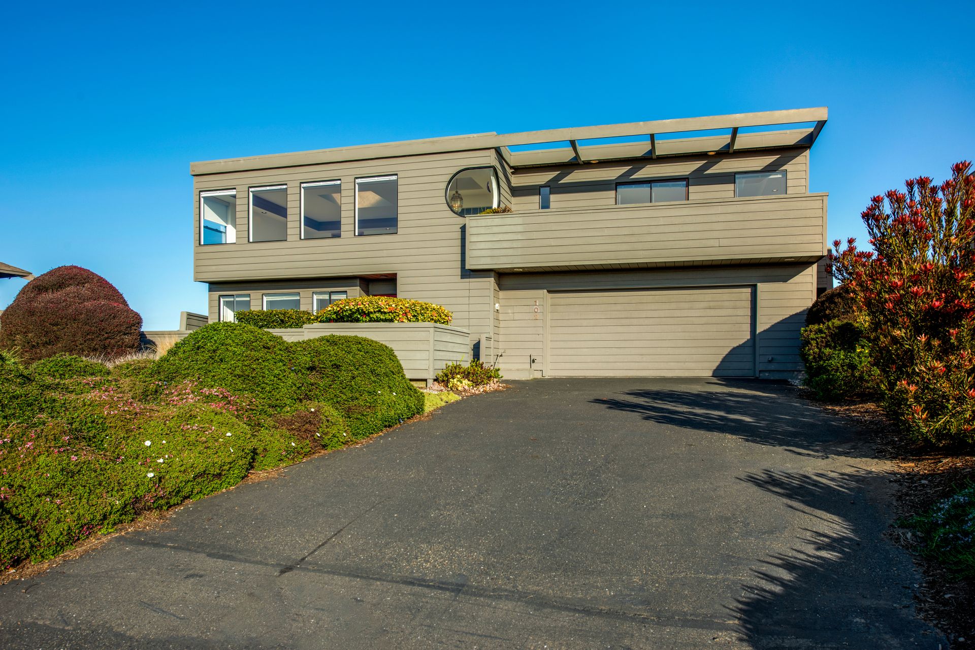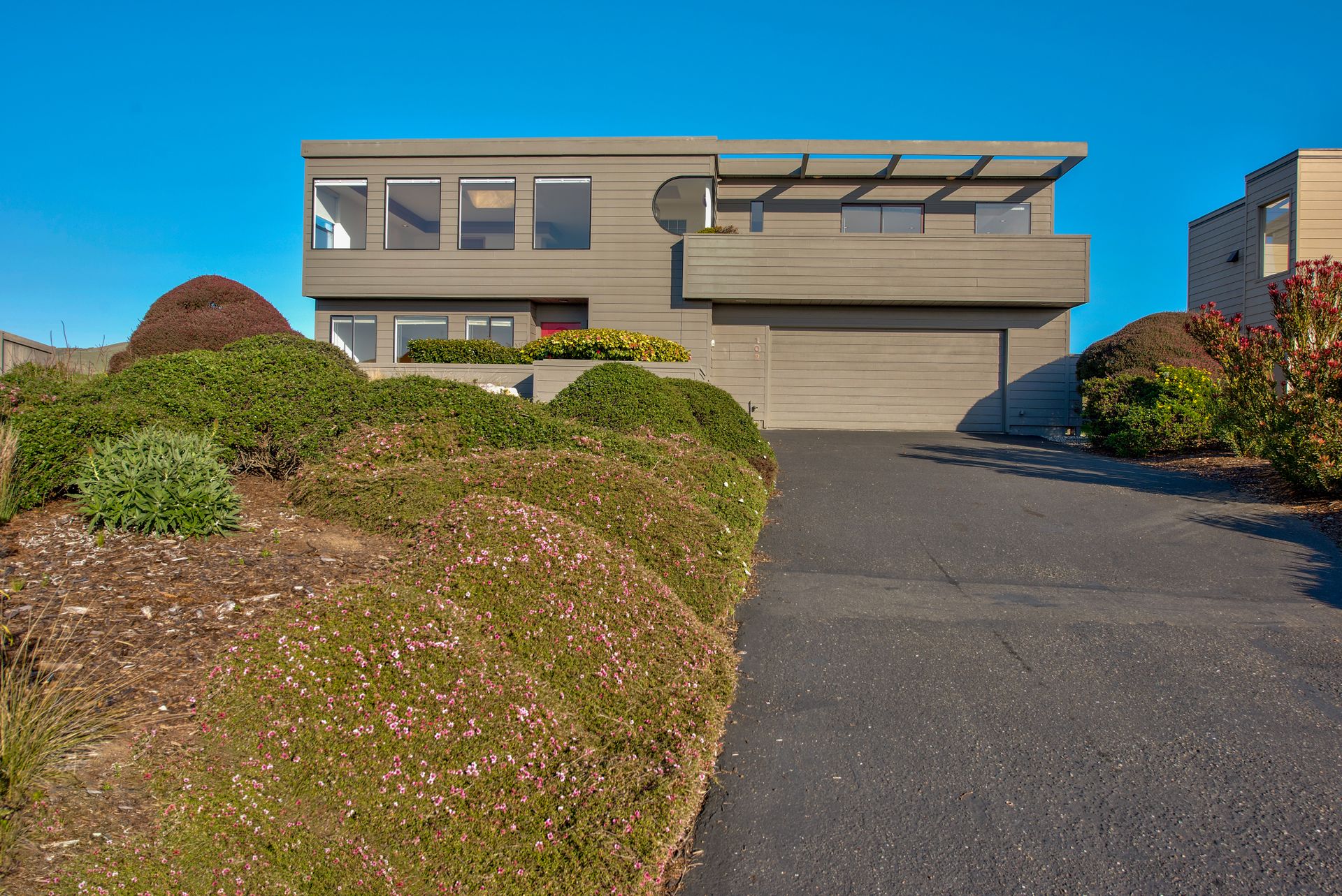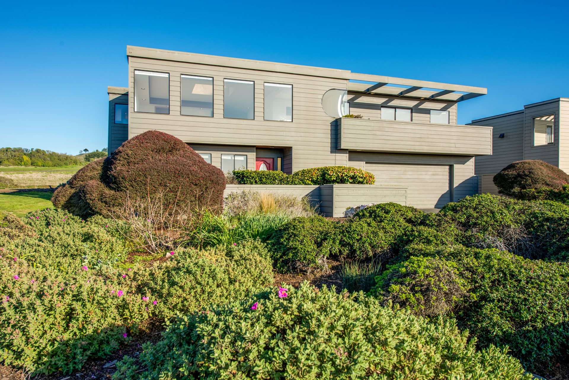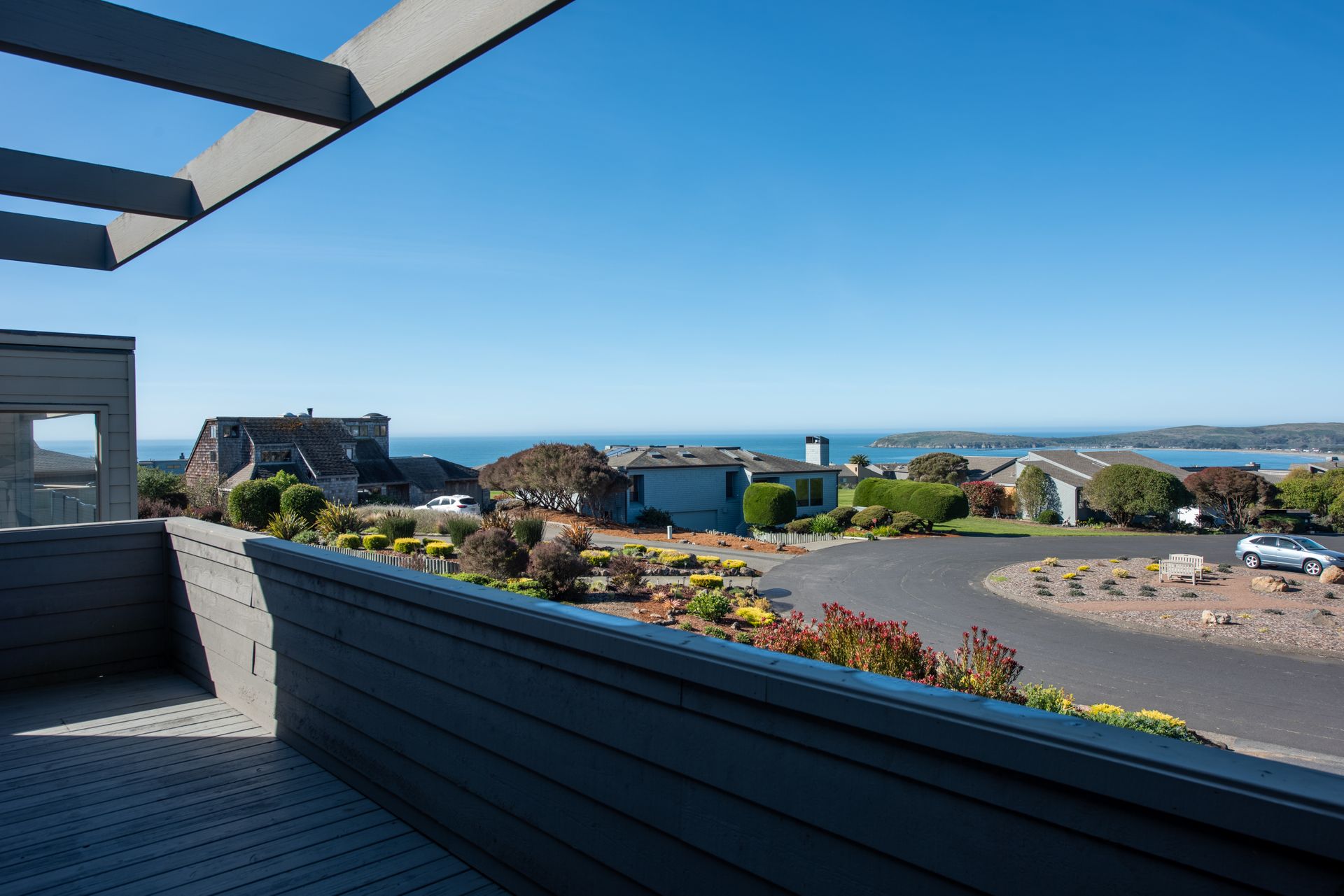 Take advantage of grand views of the bay, ocean, Bodega Head, the golf course and coastal hills on a peaceful cul-de-sac location with extra parking. The upstairs features a great room, kitchen and dining room area with plentiful natural light. The kitchen has granite countertops, stainless steel appliances and Bamboo wood flooring throughout and onto the dining area. The master bedroom has access on both sides to the exterior decks, with the ocean and bay facing deck in the front and the large, wind protected deck with a hot tub in the back. The master also has a large walk-in closet and a bathroom with double sinks, a shower and jetted tub. There are two bedrooms, a bathroom and a family room on the ground level. There is a spacious two-car garage and a large storage area from the garage to the home.