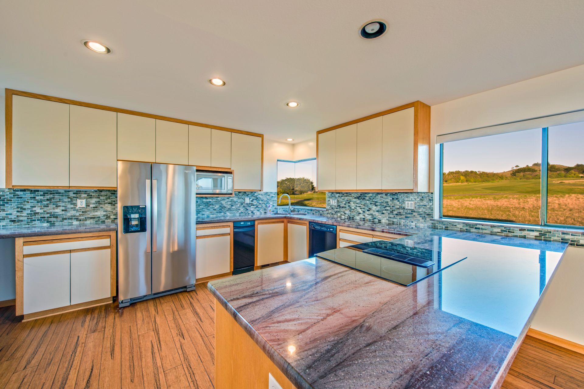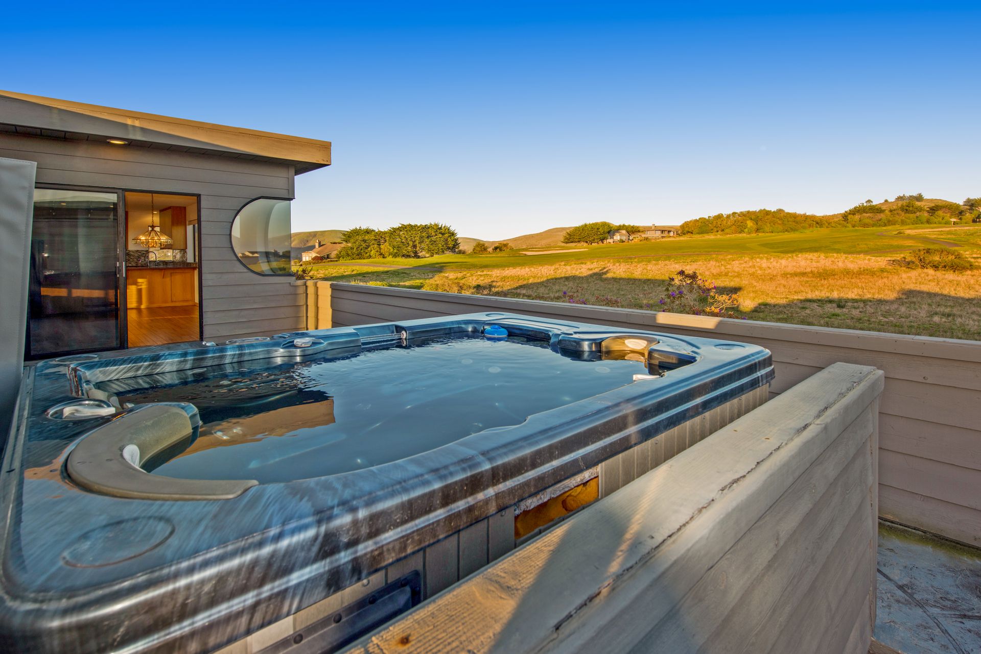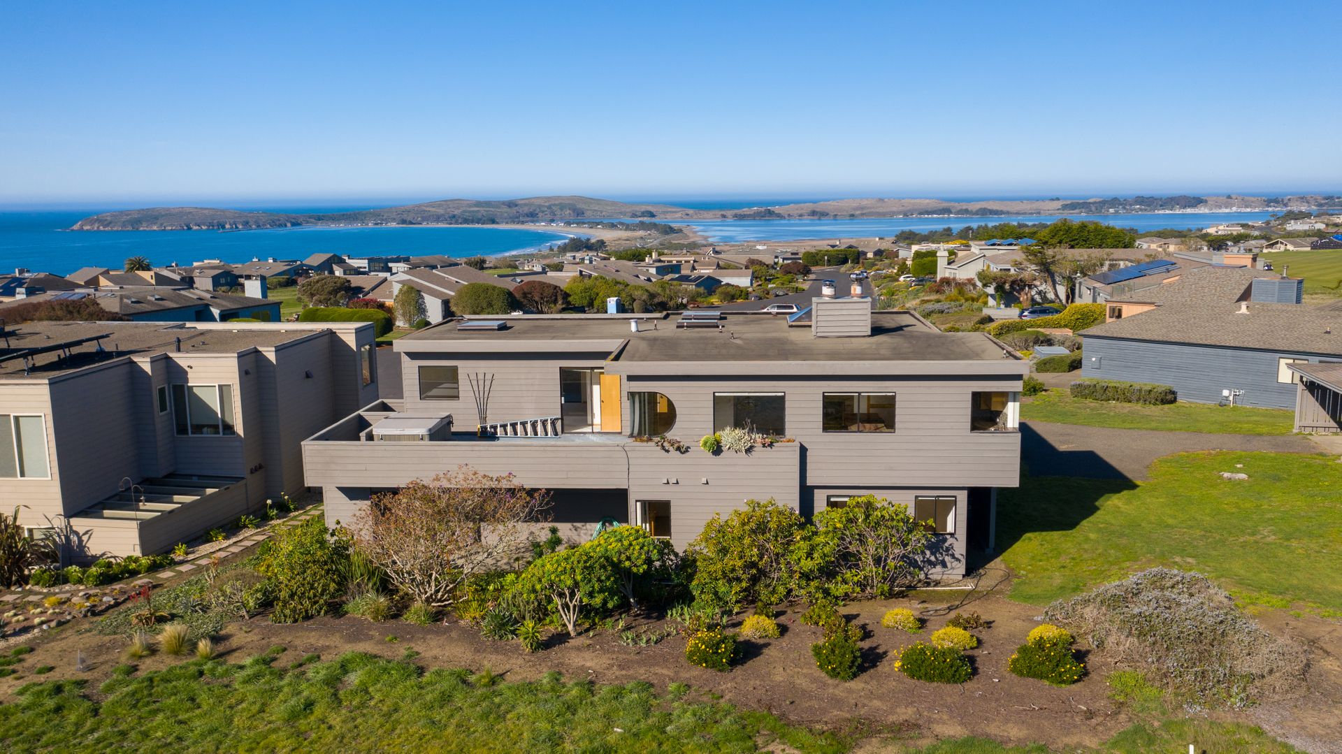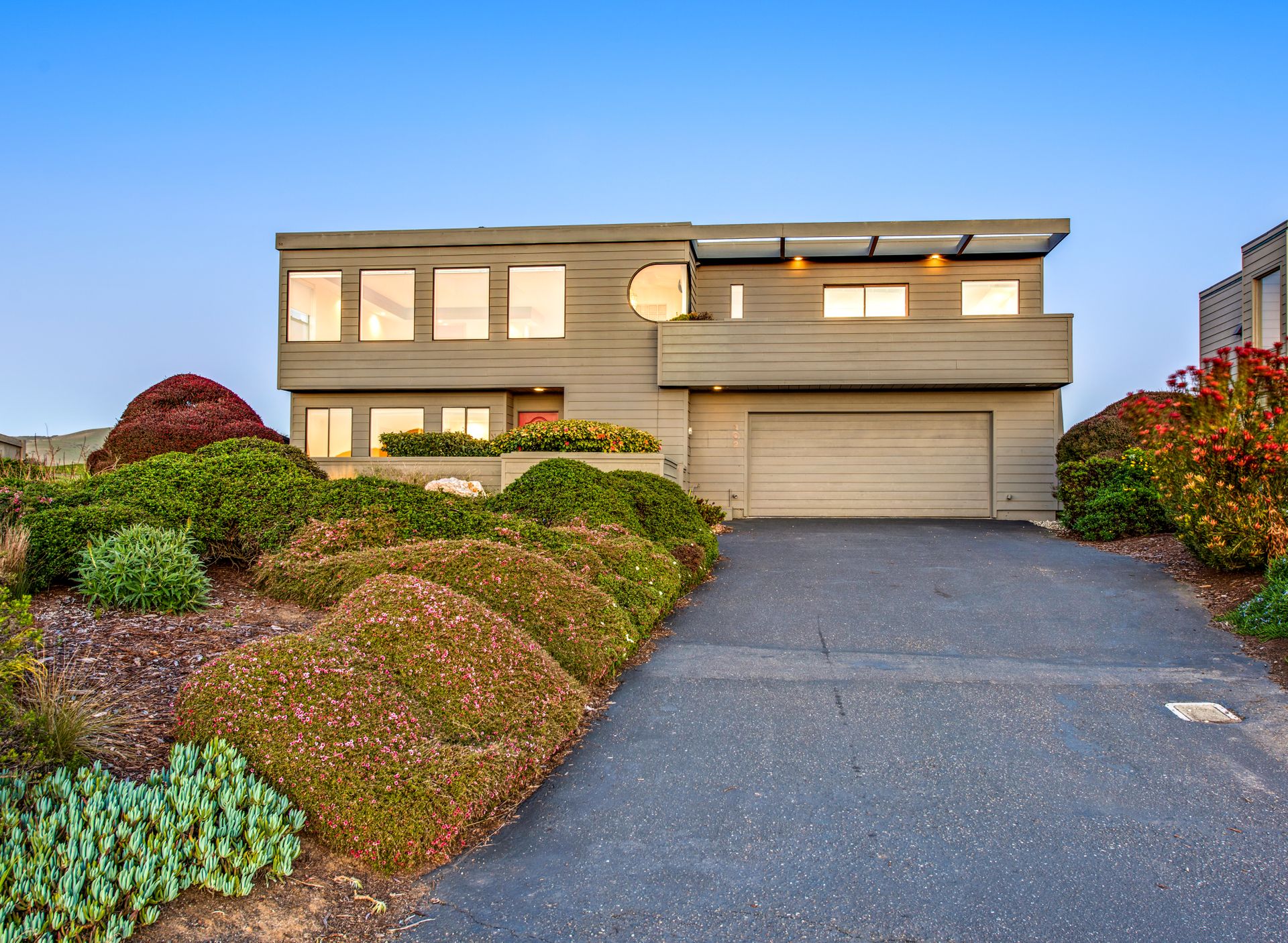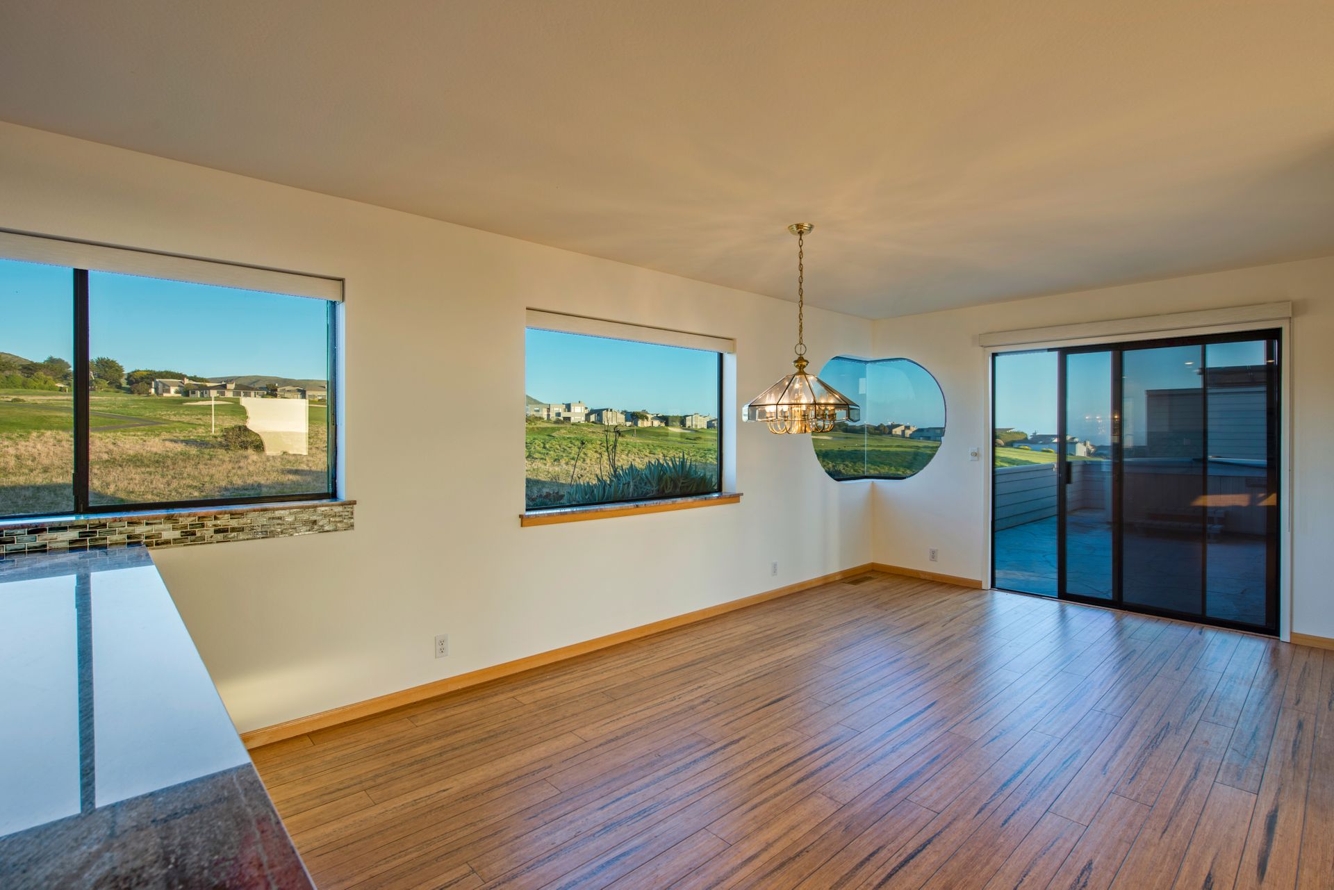 Take advantage of grand views of the bay, ocean, Bodega Head, the golf course and coastal hills on a peaceful cul-de-sac location with extra parking. The upstairs features a great room, kitchen and dining room area with plentiful natural light. The kitchen has granite countertops, stainless steel appliances and Bamboo wood flooring throughout and onto the dining area. The master bedroom has access on both sides to the exterior decks, with the ocean and bay facing deck in the front and the large, wind protected deck with a hot tub in the back. The master also has a large walk-in closet and a bathroom with double sinks, a shower and jetted tub. There are two bedrooms, a bathroom and a family room on the ground level. There is a spacious two-car garage and a large storage area from the garage to the home.