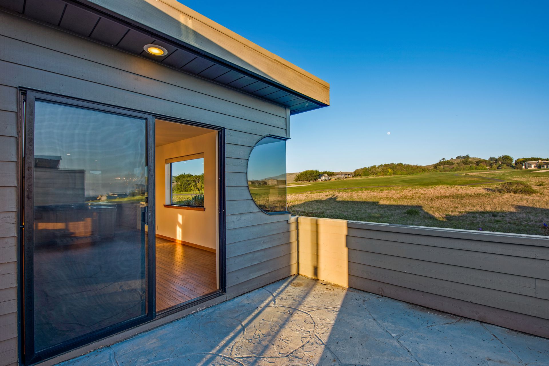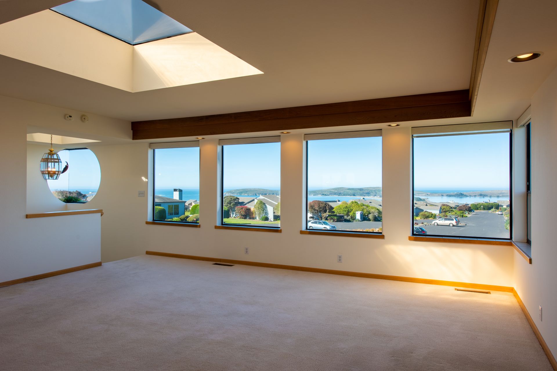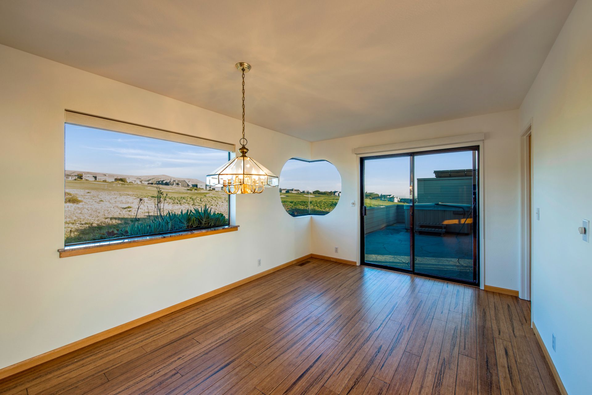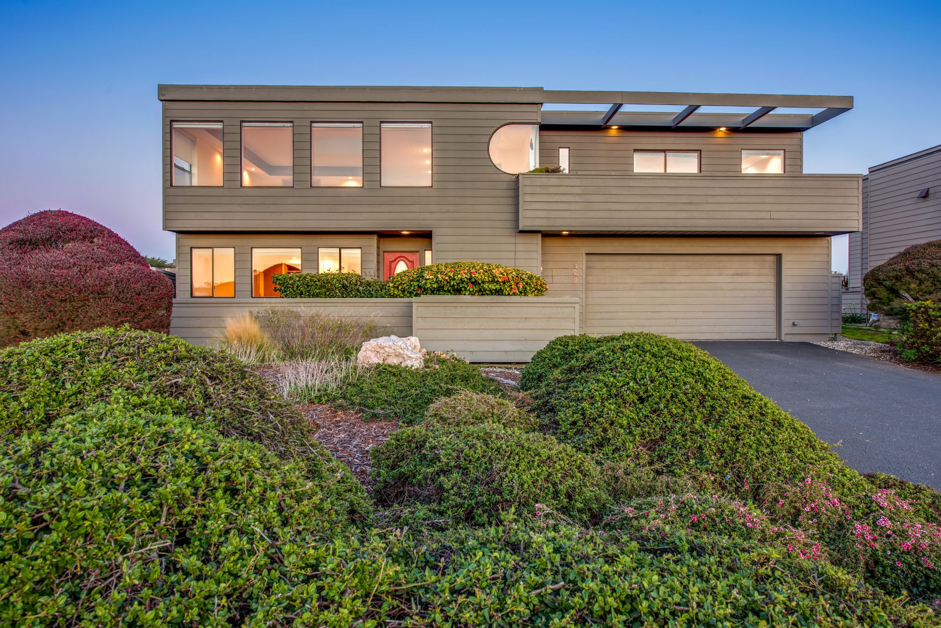 Take advantage of grand views of the bay, ocean, Bodega Head, the golf course and coastal hills on a peaceful cul-de-sac location with extra parking. The upstairs features a great room, kitchen and dining room area with plentiful natural light. The kitchen has granite countertops, stainless steel appliances and Bamboo wood flooring throughout and onto the dining area. The master bedroom has access on both sides to the exterior decks, with the ocean and bay facing deck in the front and the large, wind protected deck with a hot tub in the back. The master also has a large walk-in closet and a bathroom with double sinks, a shower and jetted tub. There are two bedrooms, a bathroom and a family room on the ground level. There is a spacious two-car garage and a large storage area from the garage to the home.