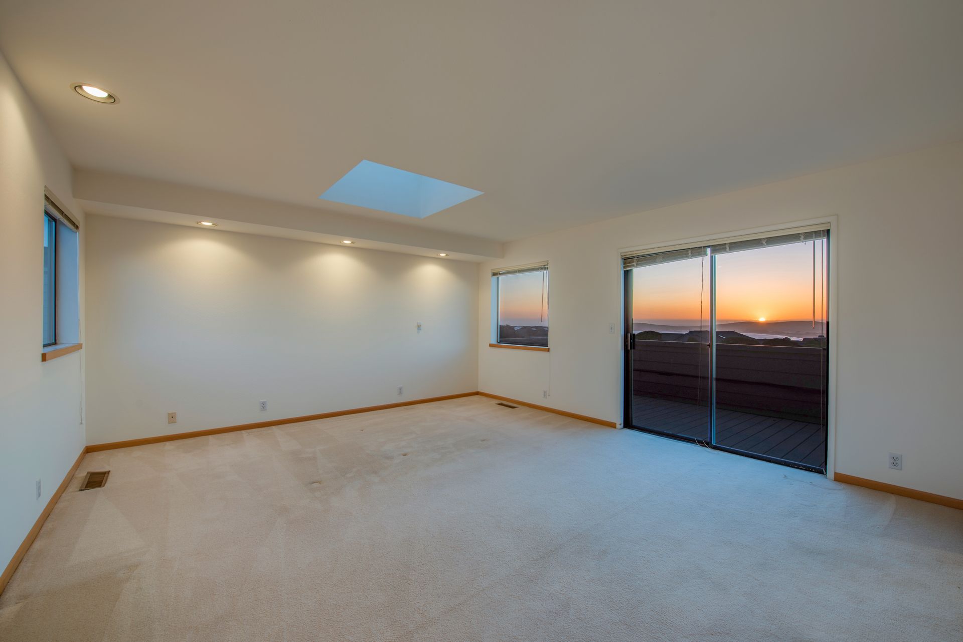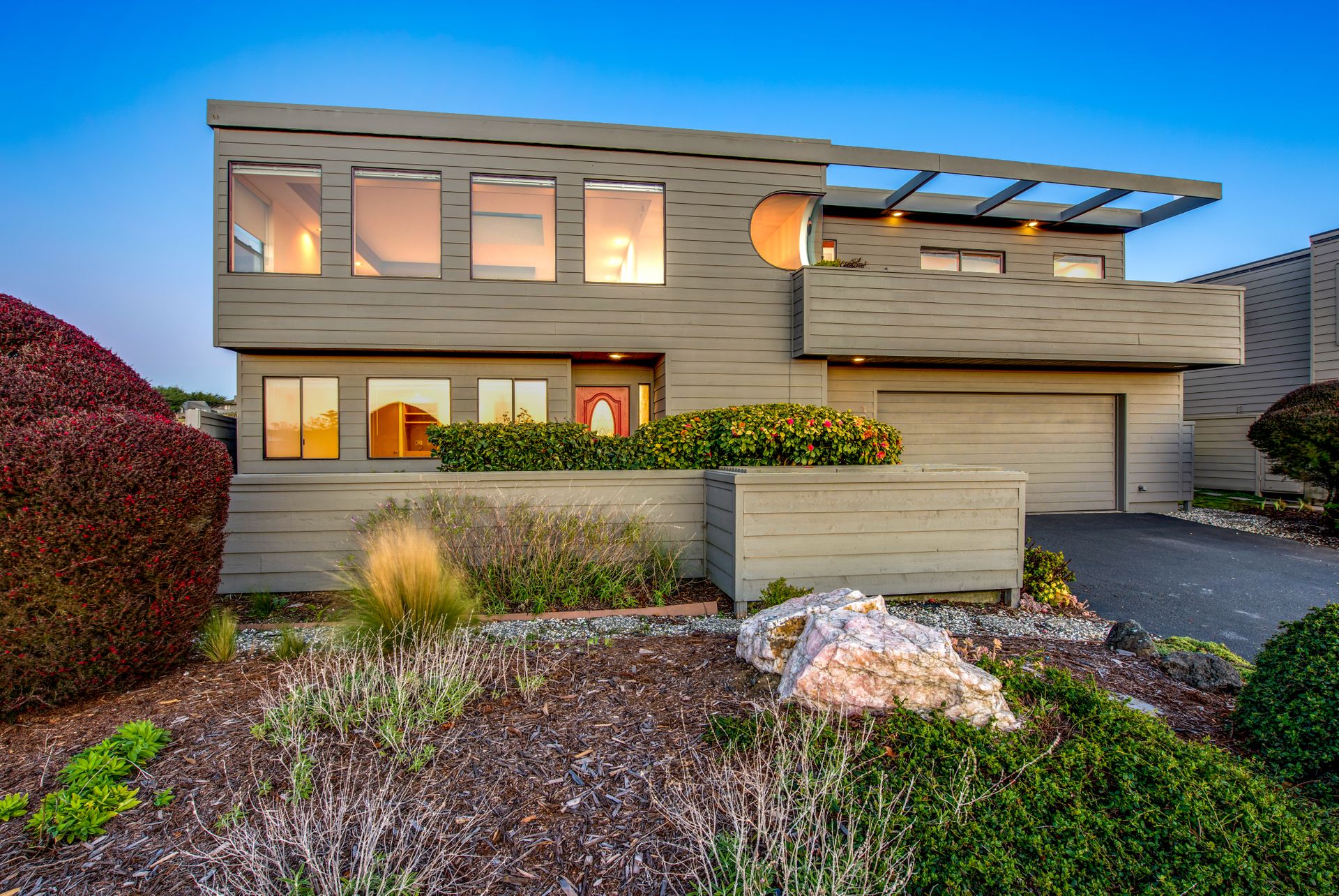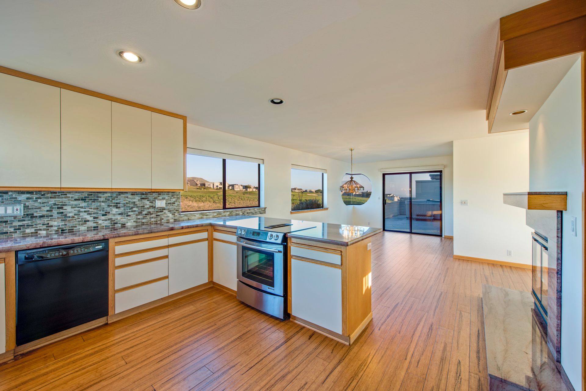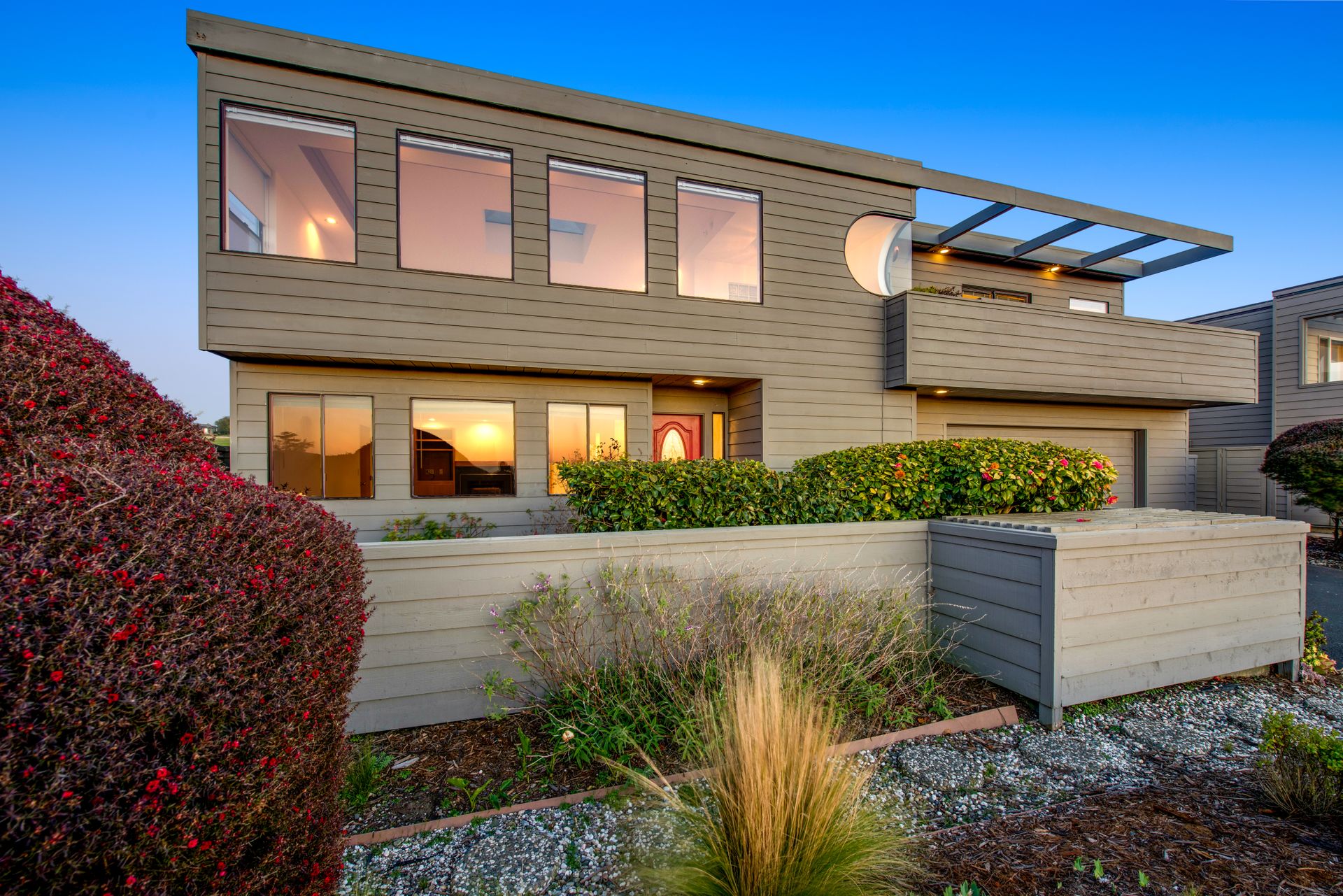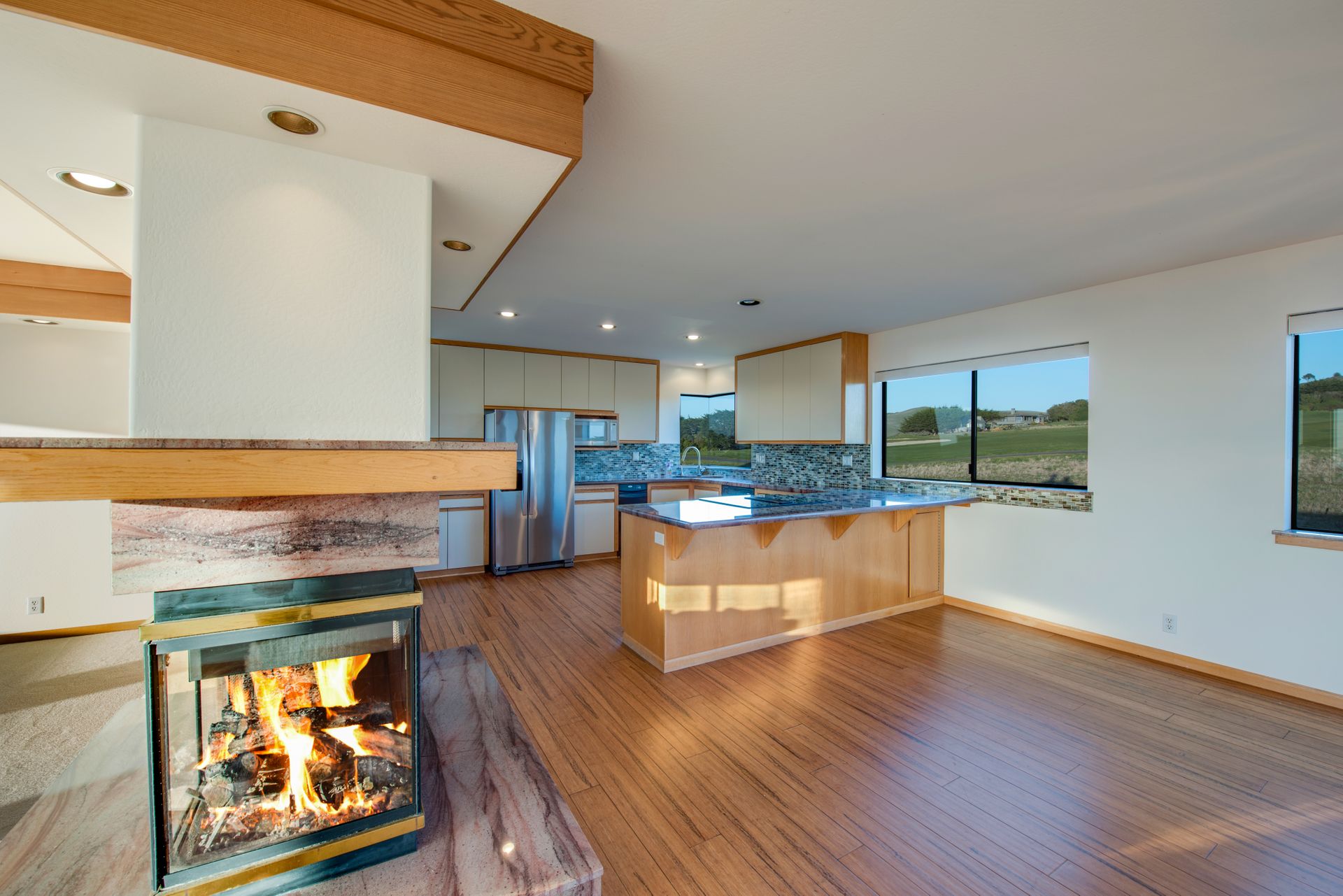 Take advantage of grand views of the bay, ocean, Bodega Head, the golf course and coastal hills on a peaceful cul-de-sac location with extra parking. The upstairs features a great room, kitchen and dining room area with plentiful natural light. The kitchen has granite countertops, stainless steel appliances and Bamboo wood flooring throughout and onto the dining area. The master bedroom has access on both sides to the exterior decks, with the ocean and bay facing deck in the front and the large, wind protected deck with a hot tub in the back. The master also has a large walk-in closet and a bathroom with double sinks, a shower and jetted tub. There are two bedrooms, a bathroom and a family room on the ground level. There is a spacious two-car garage and a large storage area from the garage to the home.