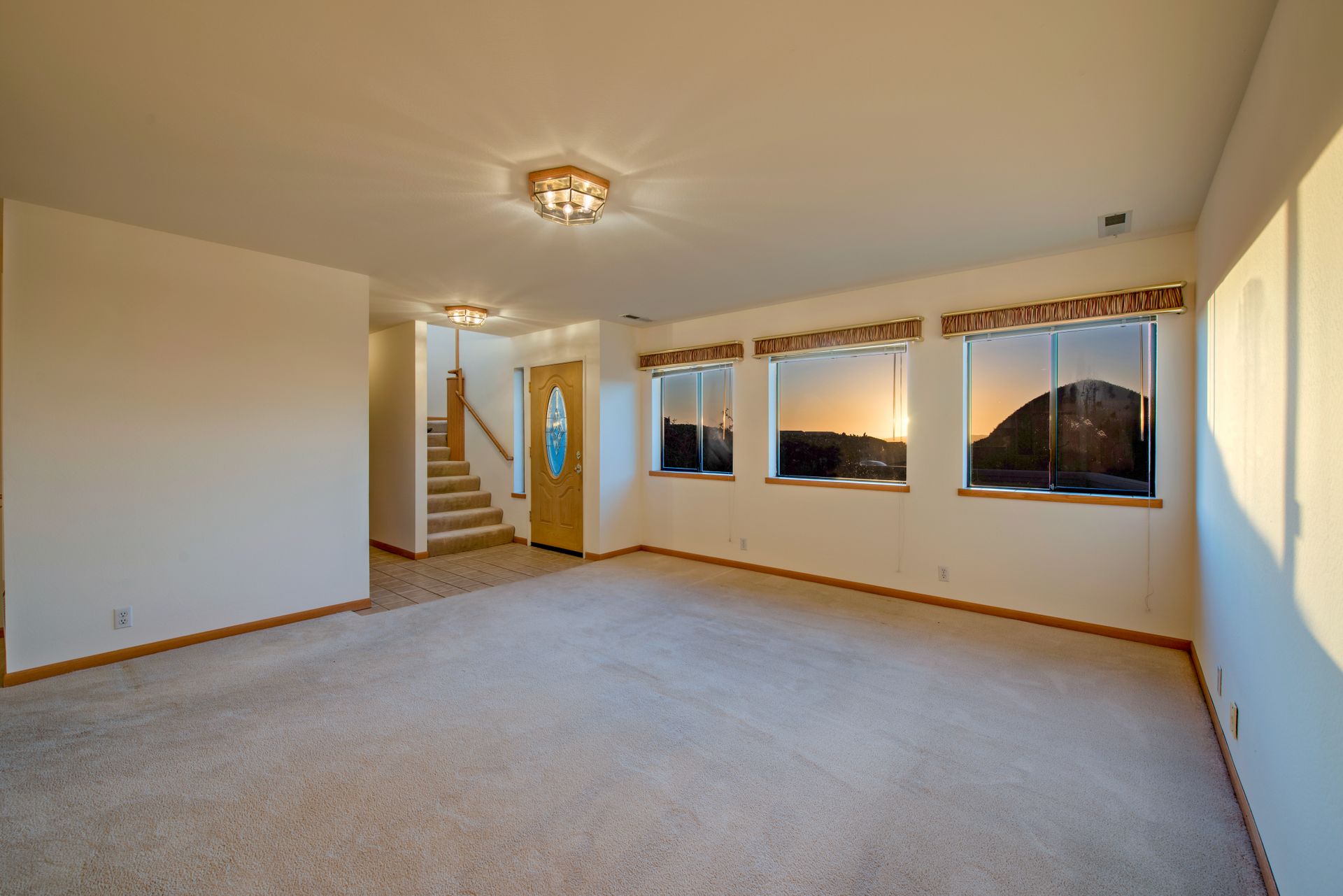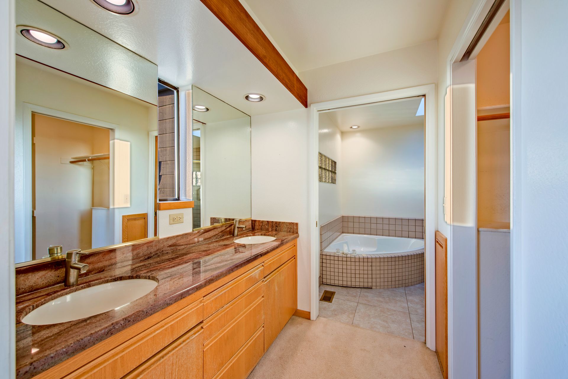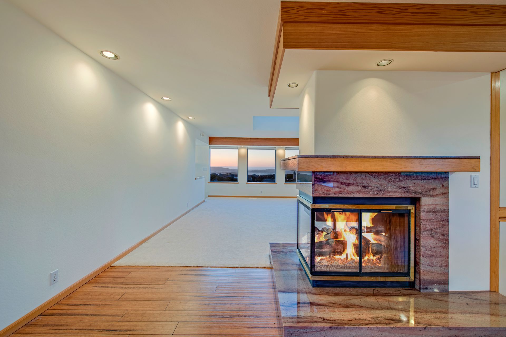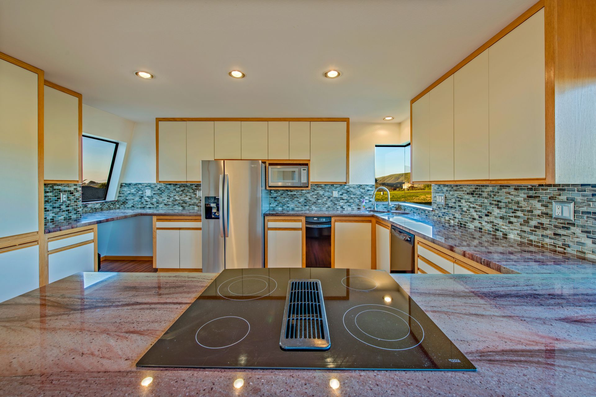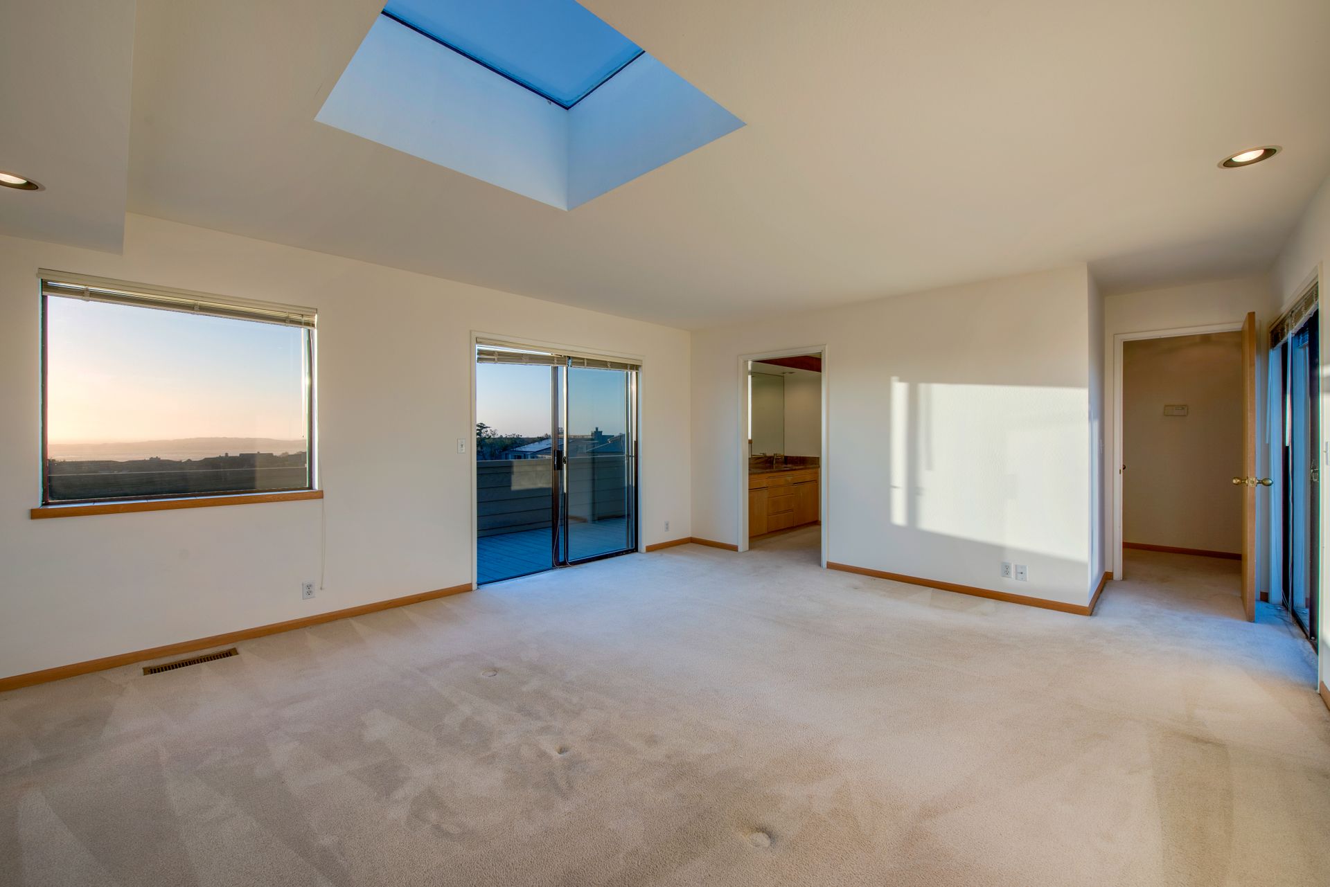 Take advantage of grand views of the bay, ocean, Bodega Head, the golf course and coastal hills on a peaceful cul-de-sac location with extra parking. The upstairs features a great room, kitchen and dining room area with plentiful natural light. The kitchen has granite countertops, stainless steel appliances and Bamboo wood flooring throughout and onto the dining area. The master bedroom has access on both sides to the exterior decks, with the ocean and bay facing deck in the front and the large, wind protected deck with a hot tub in the back. The master also has a large walk-in closet and a bathroom with double sinks, a shower and jetted tub. There are two bedrooms, a bathroom and a family room on the ground level. There is a spacious two-car garage and a large storage area from the garage to the home.