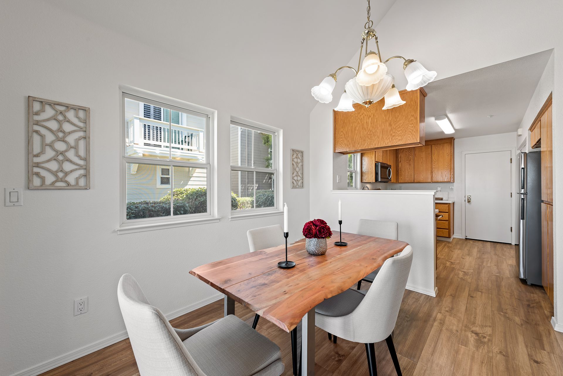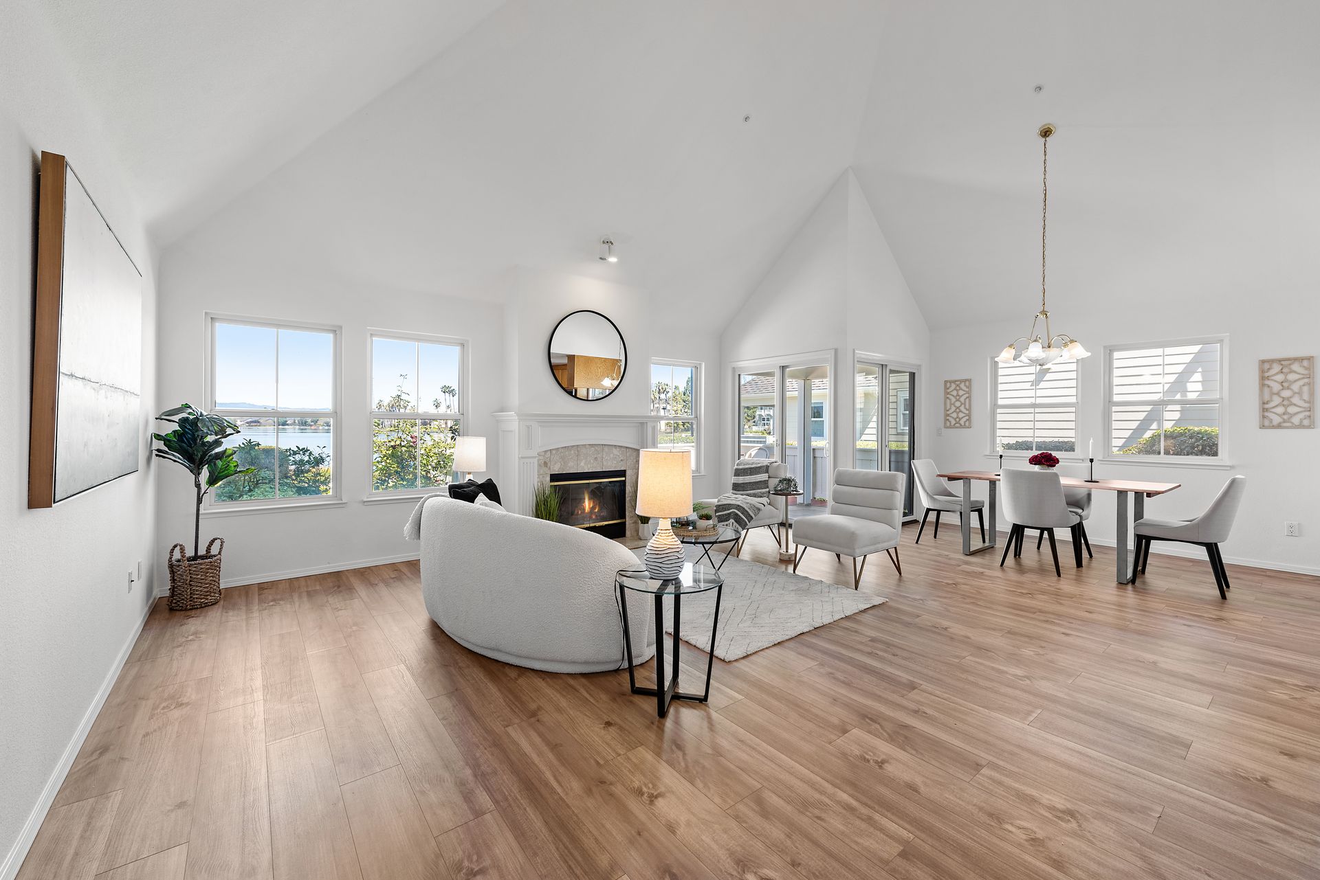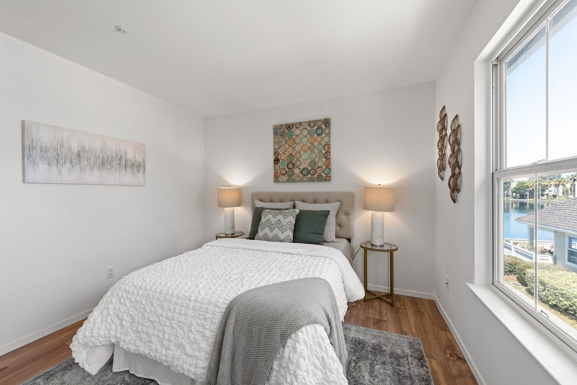 Don’t miss this updated home located in the resort-like Bayfront Court Community. This gorgeous end-unit townhouse features two bedrooms plus a den, office, third bedroom or nursery as well as two and one-half bathrooms. Enjoy high vaulted ceilings in the living room and dining area and cozy up by the beautiful fireplace in the living room making for a warm and comfortable place to entertain. The light-filled home faces the tranquil lagoon making this an ideal location. The open kitchen features ample cabinets and all newly installed appliances. The convenient one-half bath on the first floor makes this a smart choice. The large light-filled primary bedroom features a walk-in closet and a large shower, making this an ideal home and location. Not to be missed is the large attached two-car garage. This complex has a pool, spa and PRIVATE BEACH AREA ON THE LAGOON.