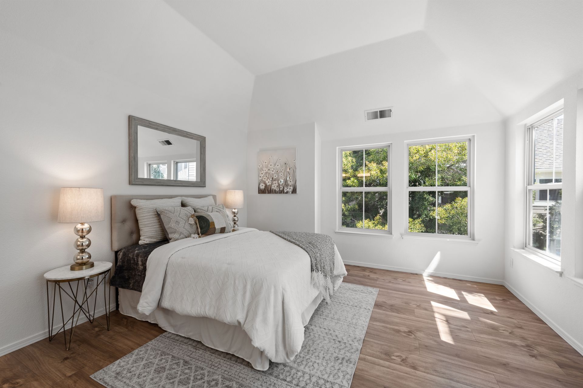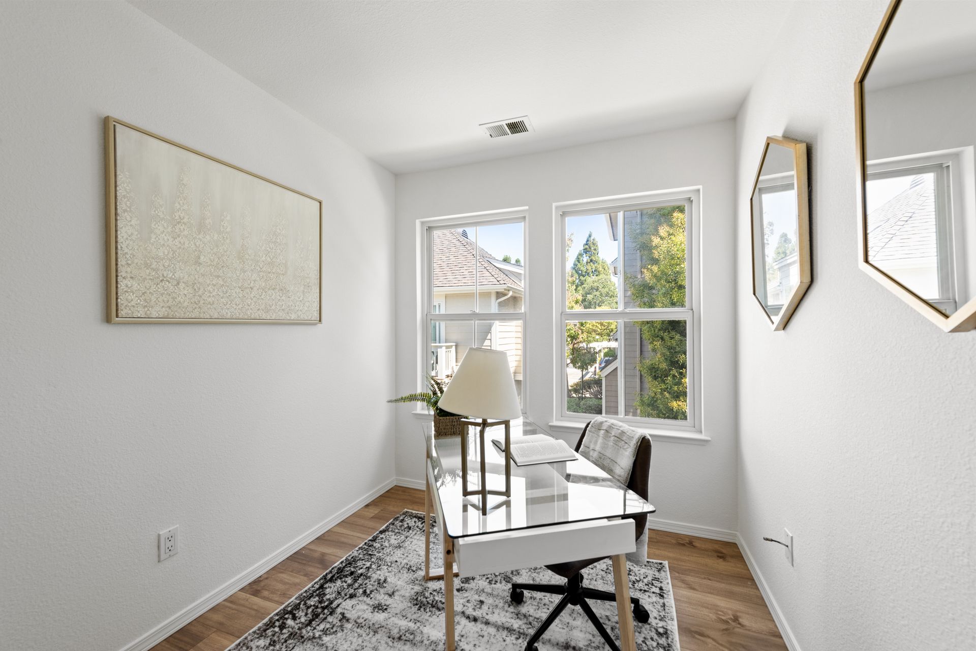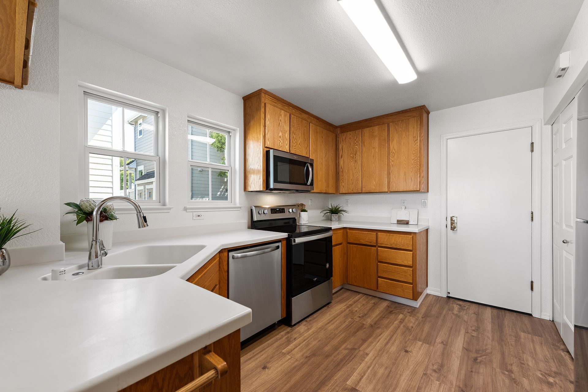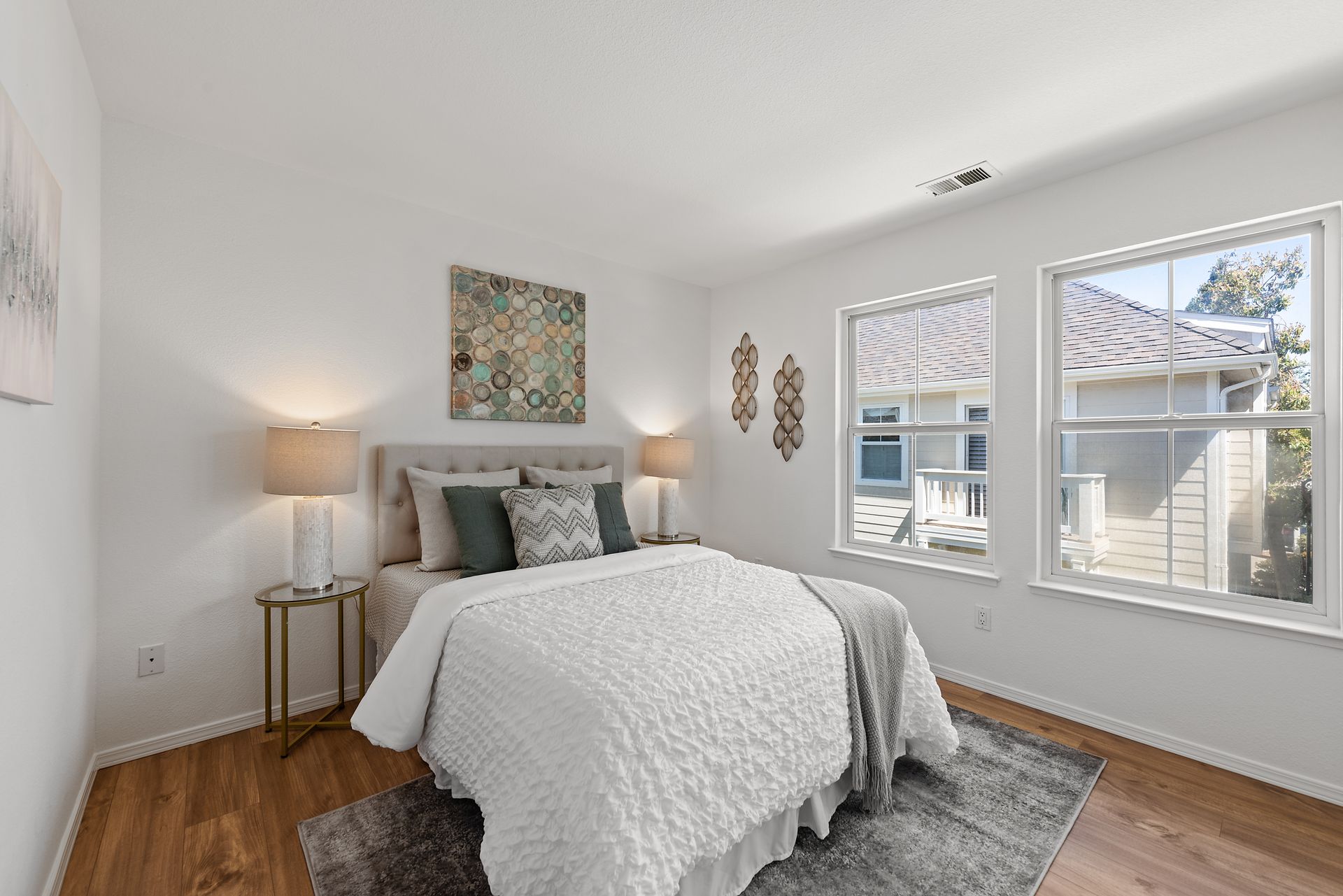 Don’t miss this updated home located in the resort-like Bayfront Court Community. This gorgeous end-unit townhouse features two bedrooms plus a den, office, third bedroom or nursery as well as two and one-half bathrooms. Enjoy high vaulted ceilings in the living room and dining area and cozy up by the beautiful fireplace in the living room making for a warm and comfortable place to entertain. The light-filled home faces the tranquil lagoon making this an ideal location. The open kitchen features ample cabinets and all newly installed appliances. The convenient one-half bath on the first floor makes this a smart choice. The large light-filled primary bedroom features a walk-in closet and a large shower, making this an ideal home and location. Not to be missed is the large attached two-car garage. This complex has a pool, spa and PRIVATE BEACH AREA ON THE LAGOON.