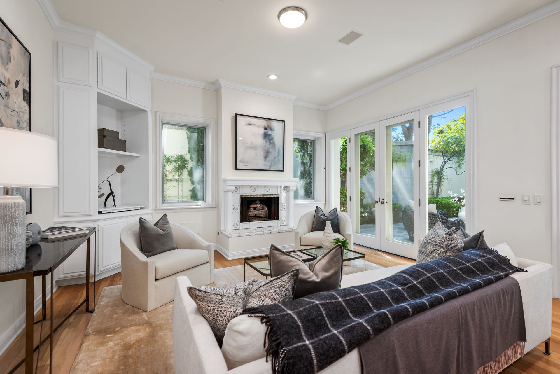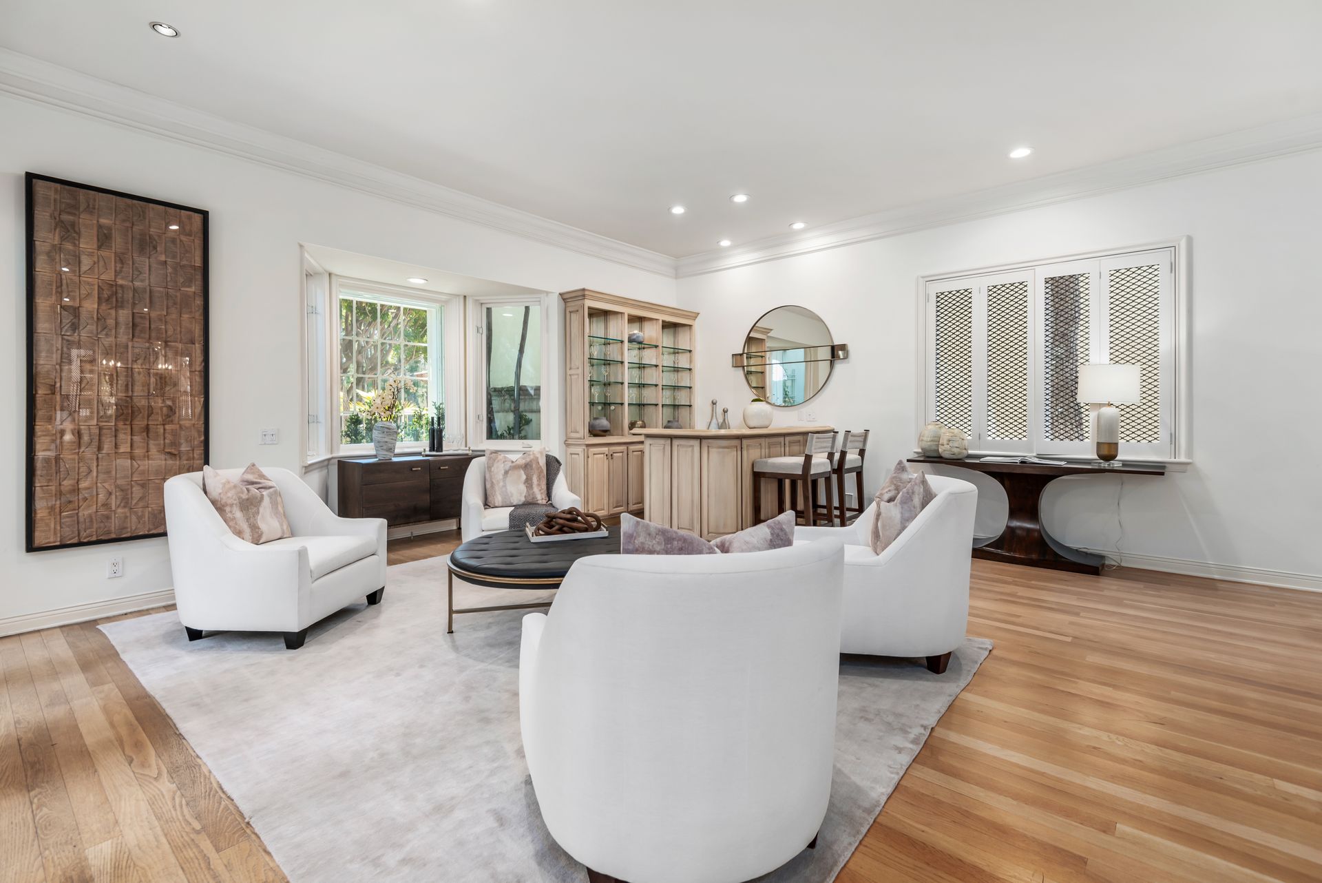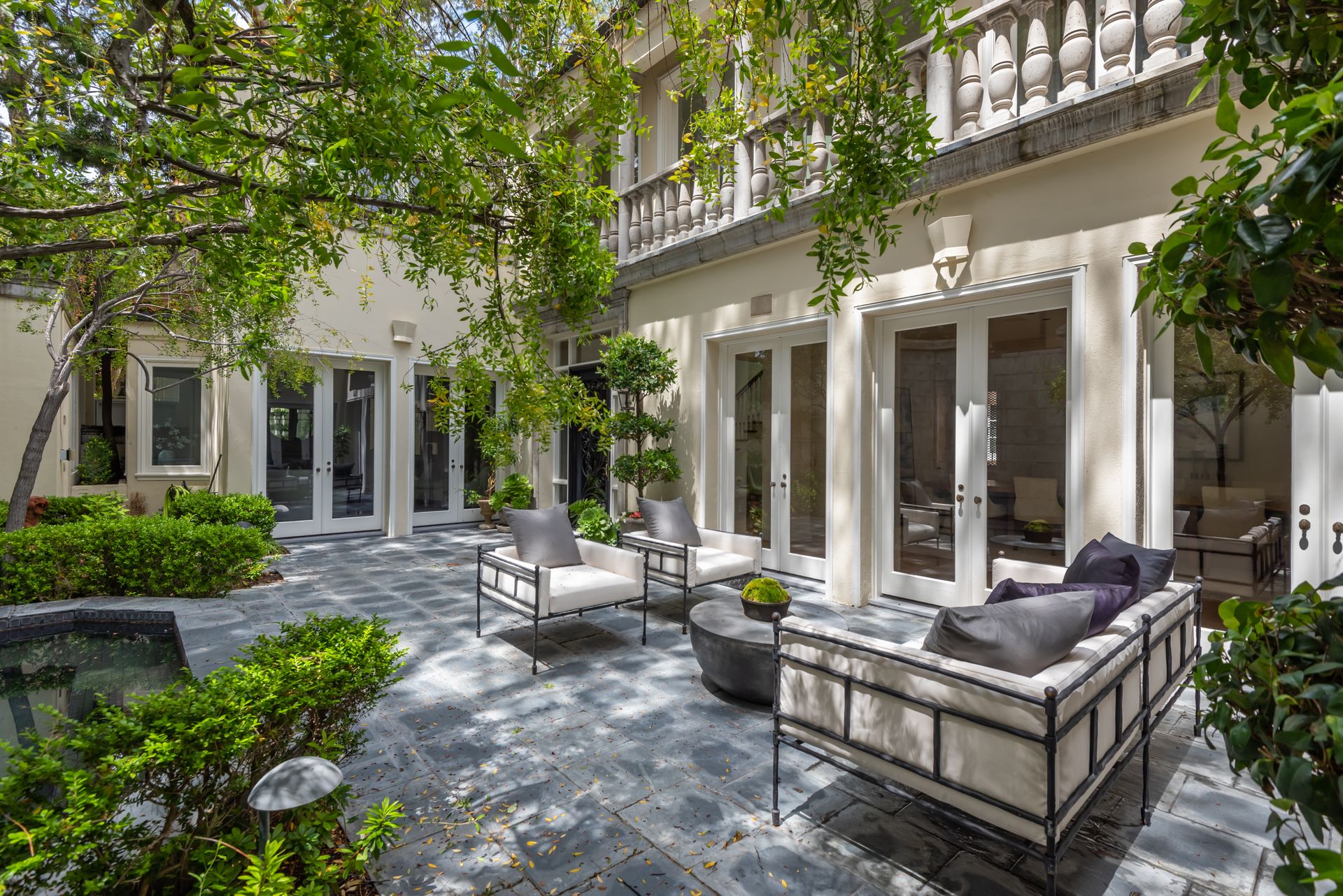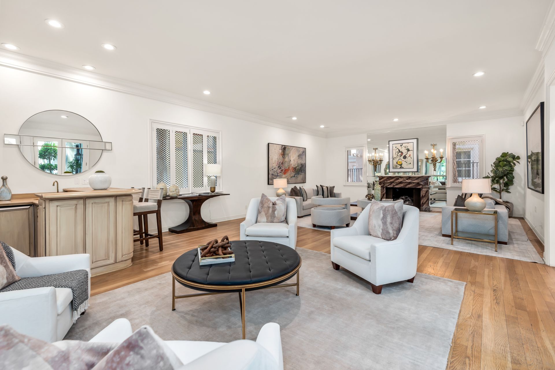 Enter into the enchanting embrace of a sun-drenched courtyard, extending a warm invitation to a captivating two-level haven nestled within the prestigious and secure confines of the coveted Century Woods guard-gated community. Adorned with French doors that seamlessly blend indoor and outdoor spaces, this resplendent five bedroom abode exudes an air of effortless refinement, coaxing you into a lifestyle of unparalleled comfort and elegance. Discover the allure of three majestic fireplaces and a meticulously crafted built-in bar, enhancing the allure of this remarkable dwelling. As you ascend the grandeur of high ceilings, a luxurious foyer bedecked with a glistening crystal chandelier and a gracefully curved stairway beckon you to make a memorable entrance. Nestled within this discreet sanctuary, a verdant tapestry of trees envelops the small, exclusive community, offering a serene ambiance complemented by coveted amenities including a North-South oriented tennis court, a state-of-the-art fitness center and both indoor and outdoor pools and spa facilities. Completing this exceptional retreat is the magnificent Clubhouse, thoughtfully designed by the renowned architect Cliff May, ensuring an unrivaled experience of opulence and sophistication.